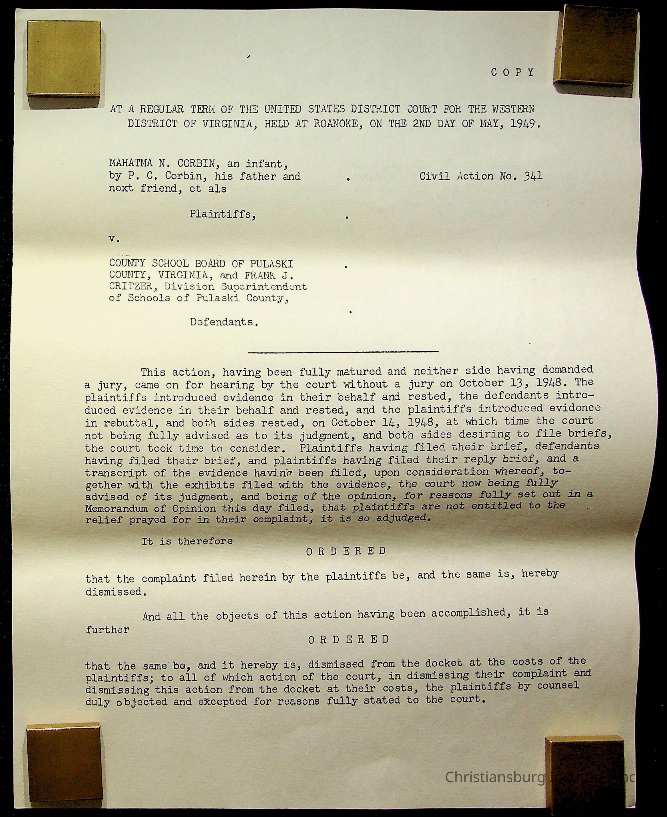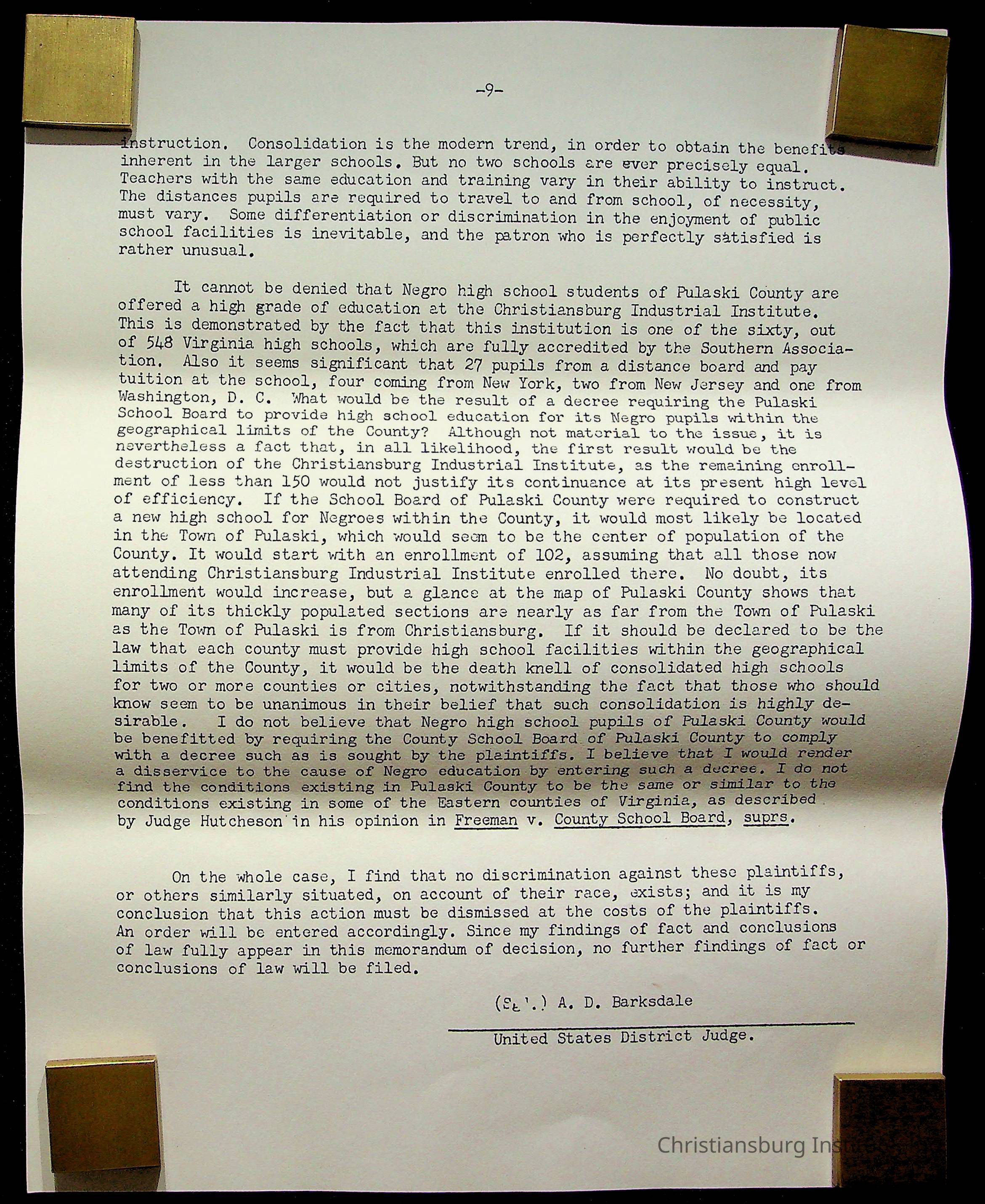 Copyright has been assigned to Christiansburg Institute Museum & Archives by Montgomery County Public Schools. For permission to publish materials created by the donor, contact CIMA@christiansburginstitute.com. Materials not created by Christiansburg Industrial Institute may still be under copyright.