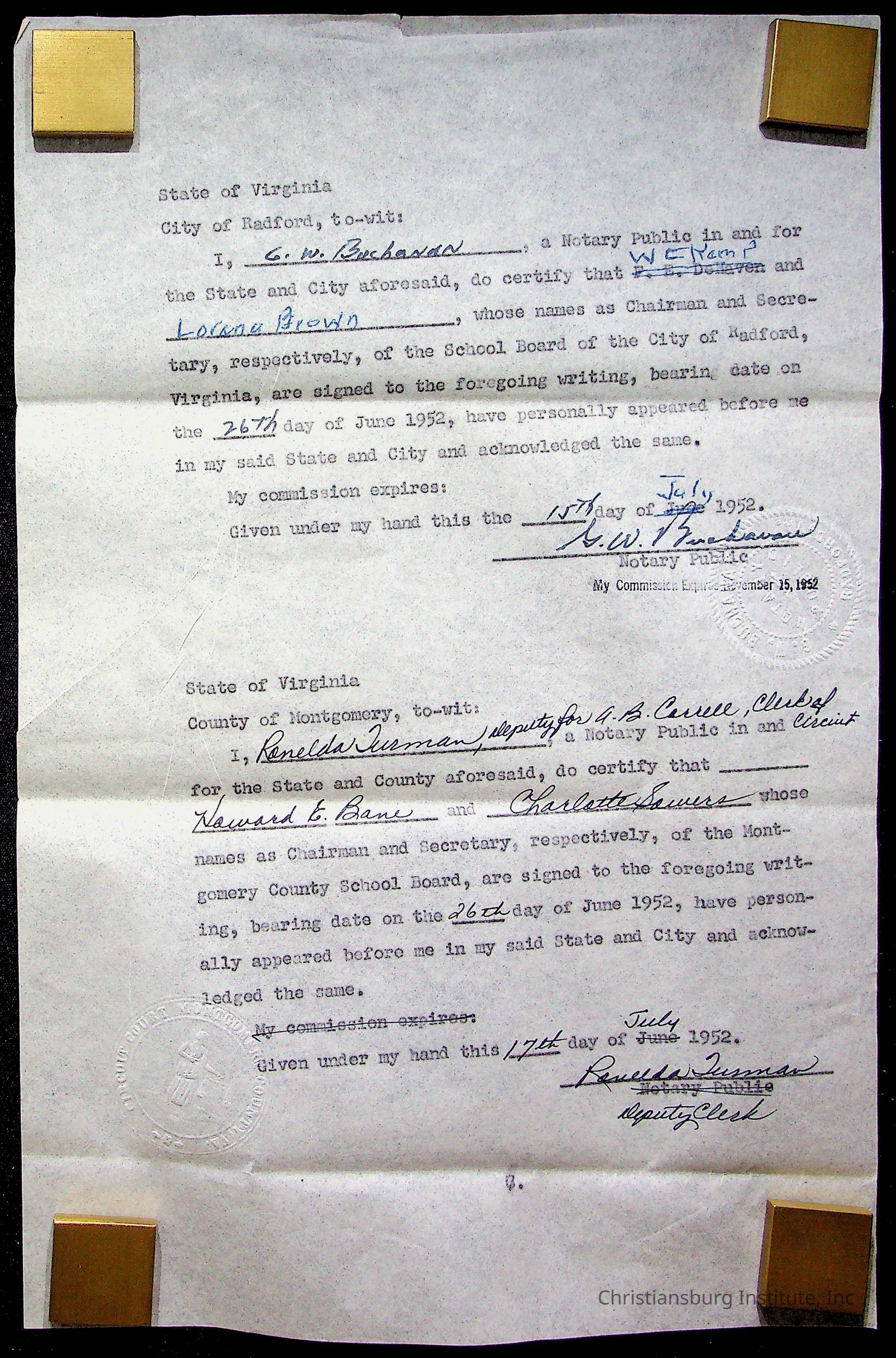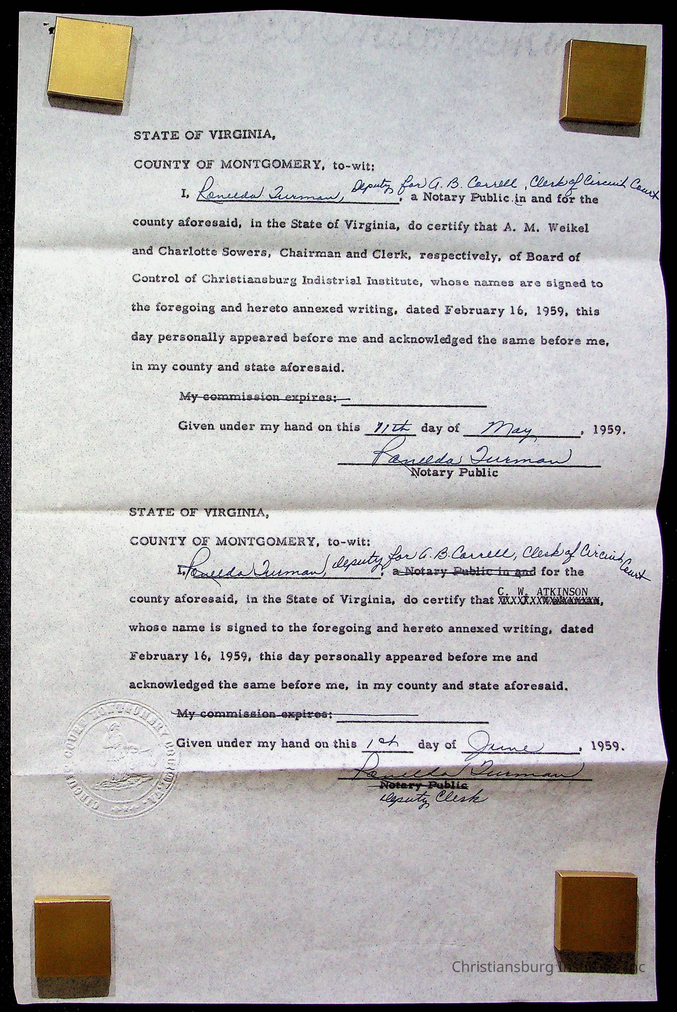 Christiansburg Institute Papers, Deeds, Other Information, 1940s-1960sTags