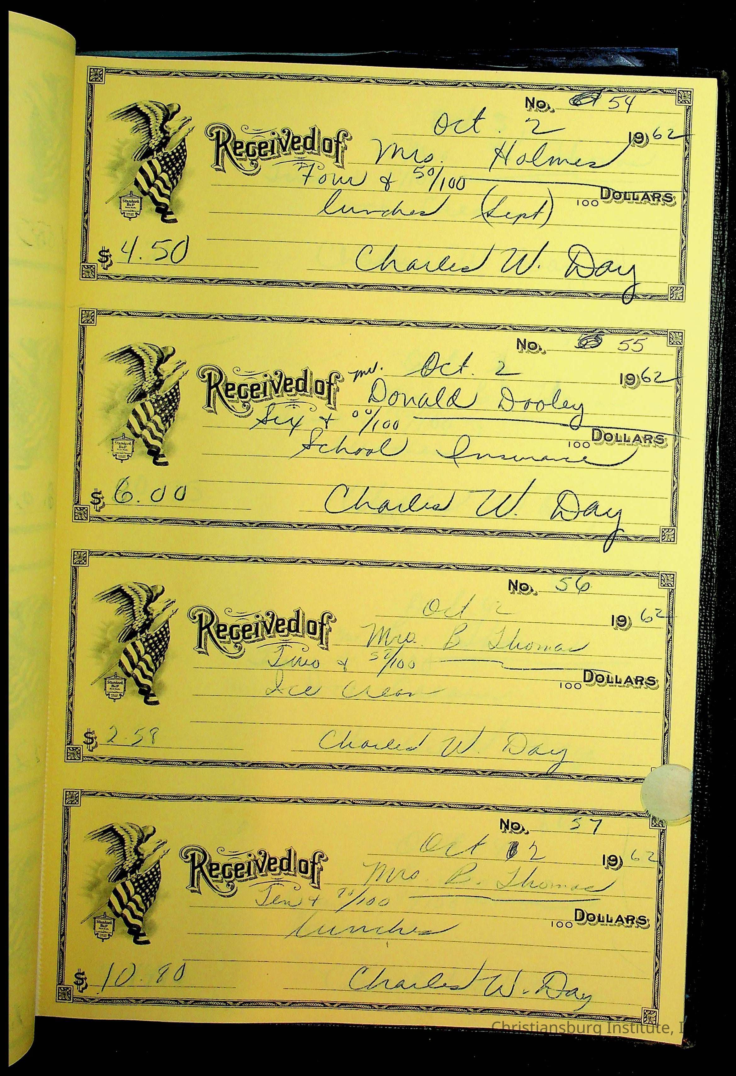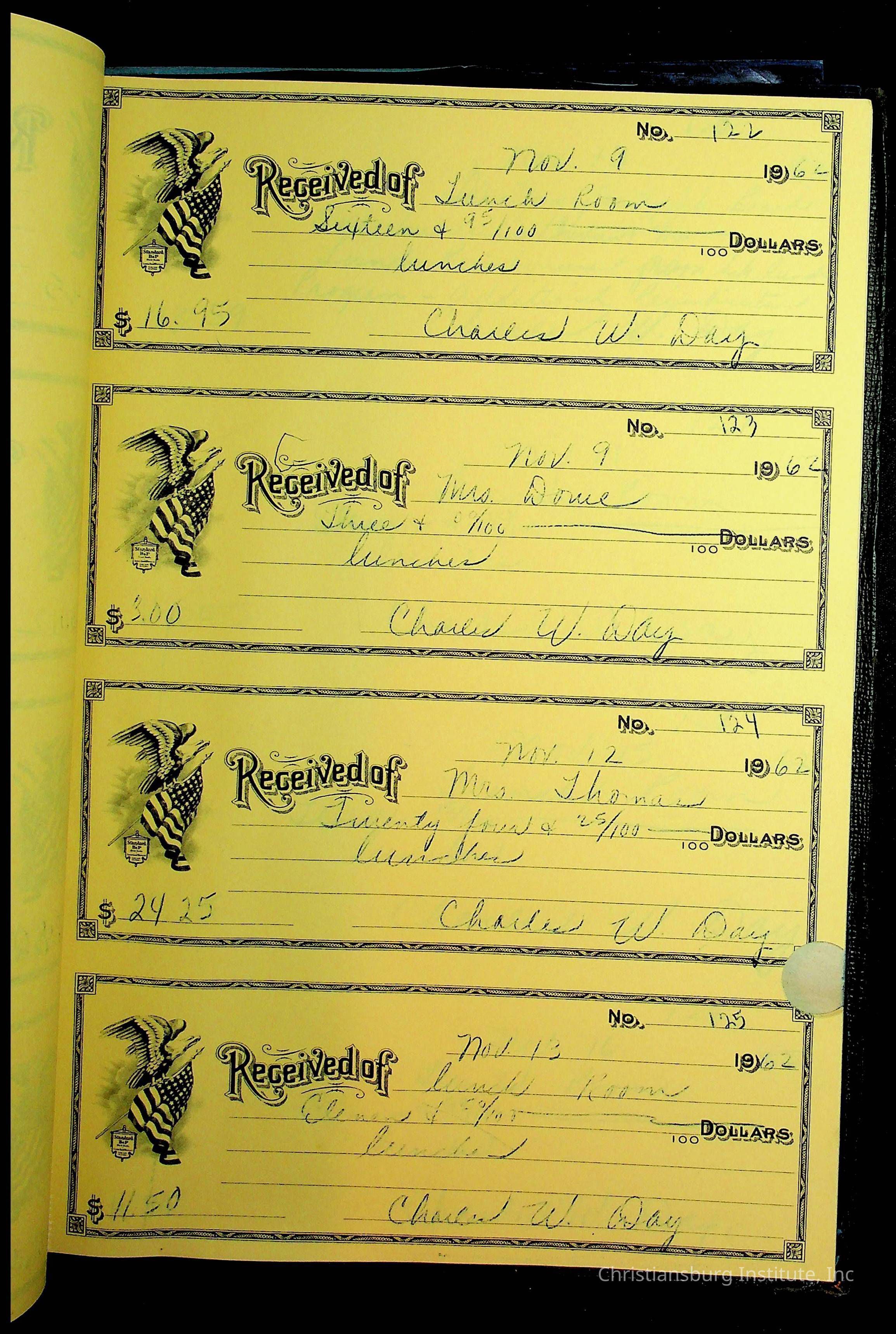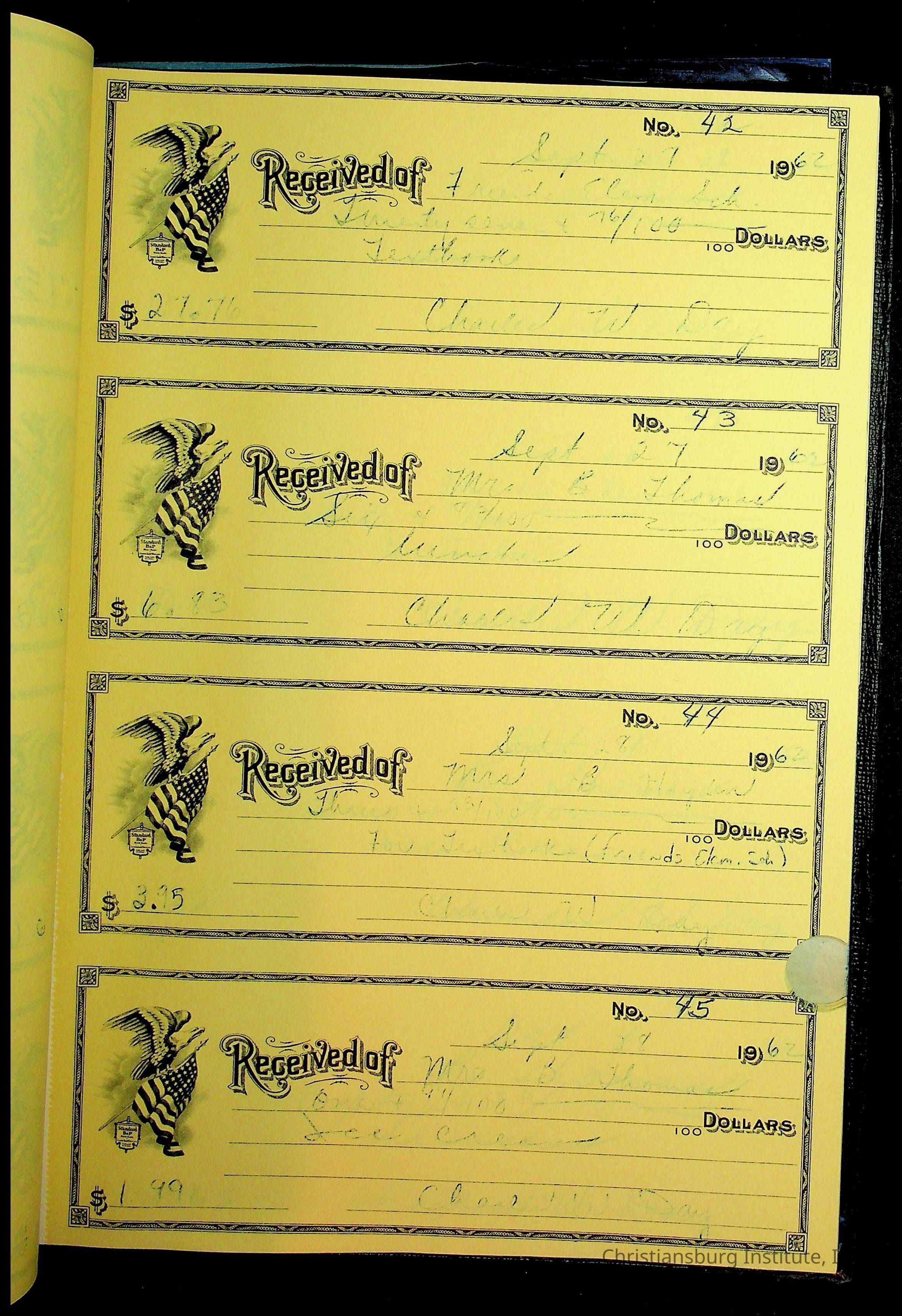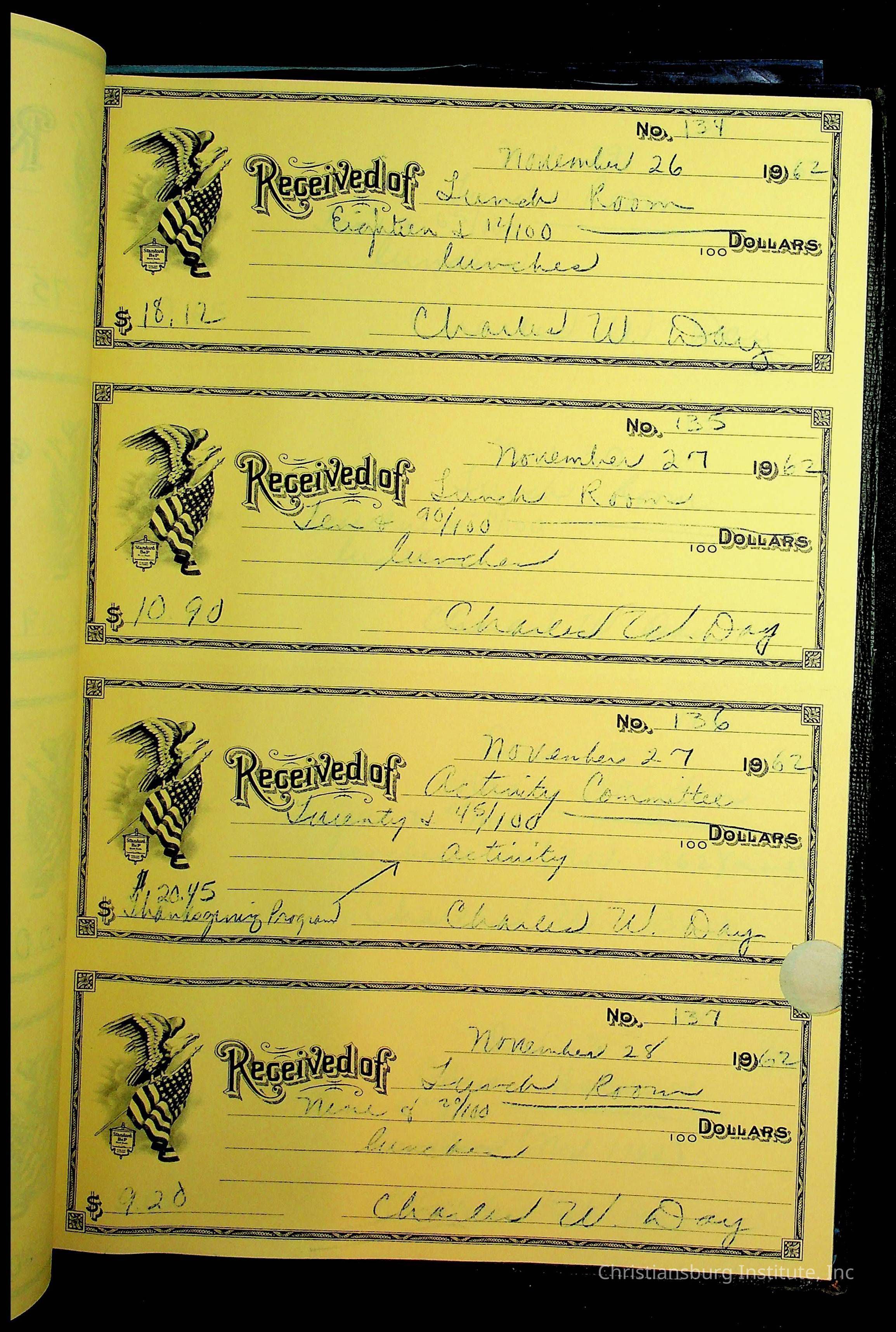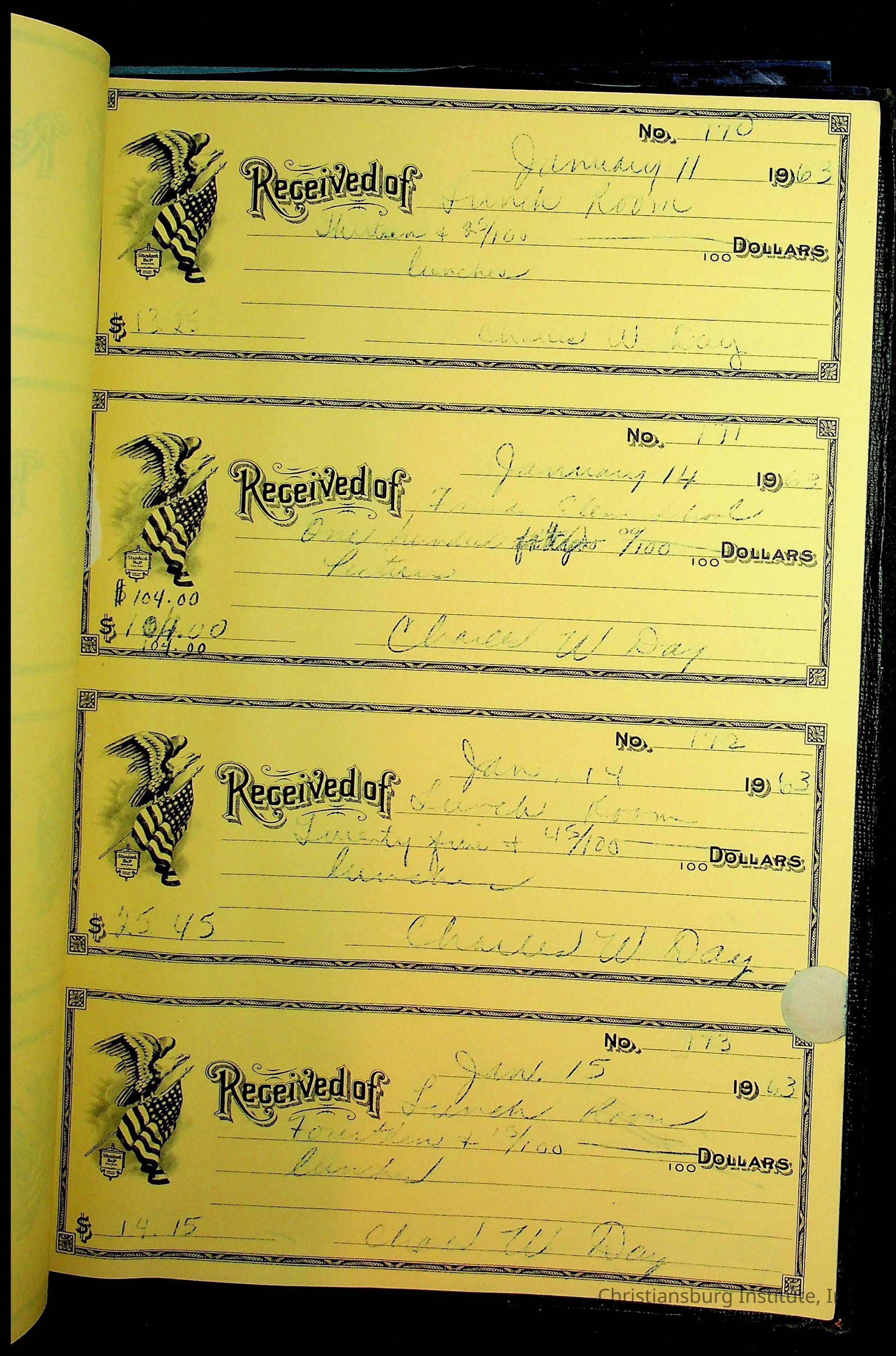 Christiansburg Institute Receipt Book, 1961-1963