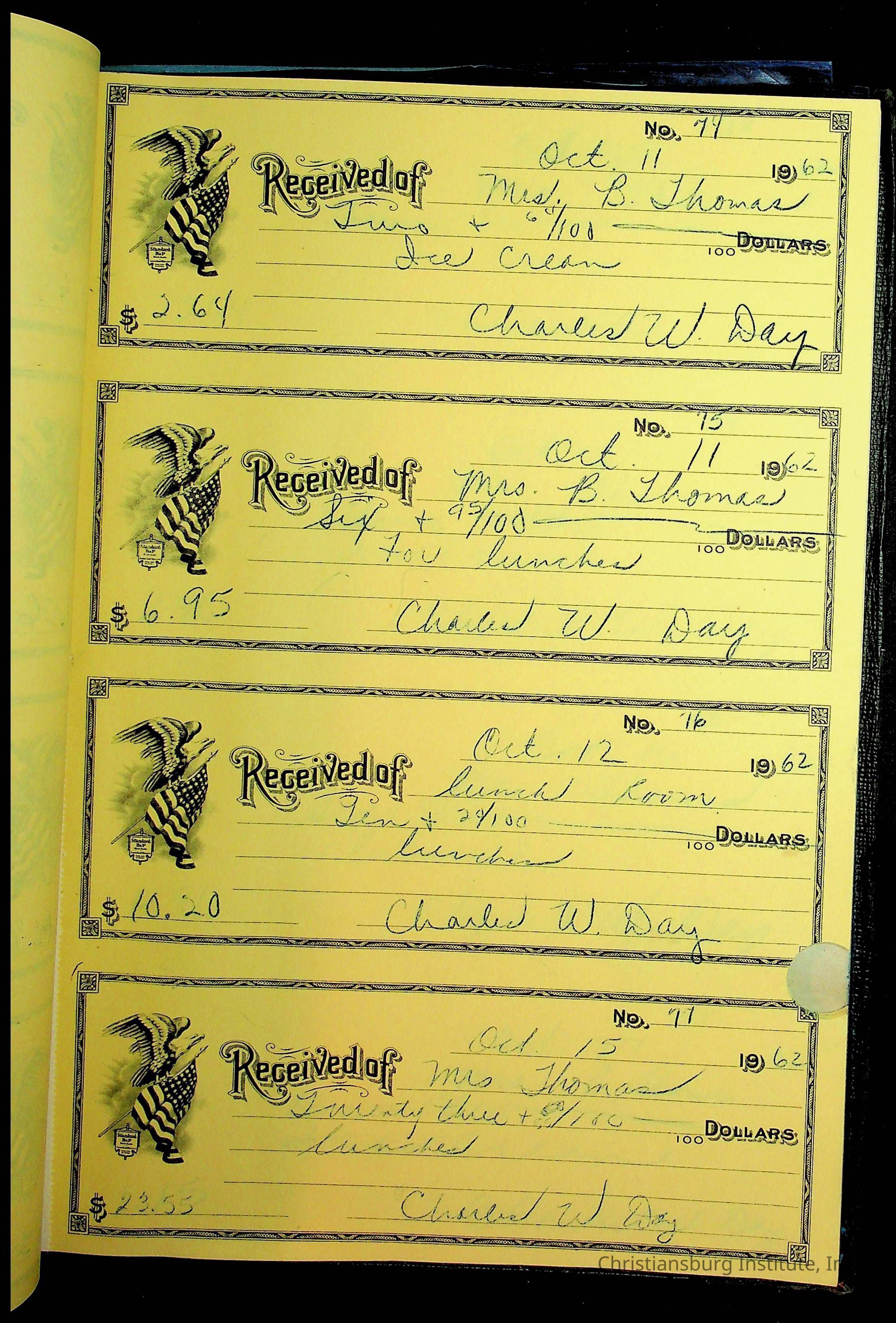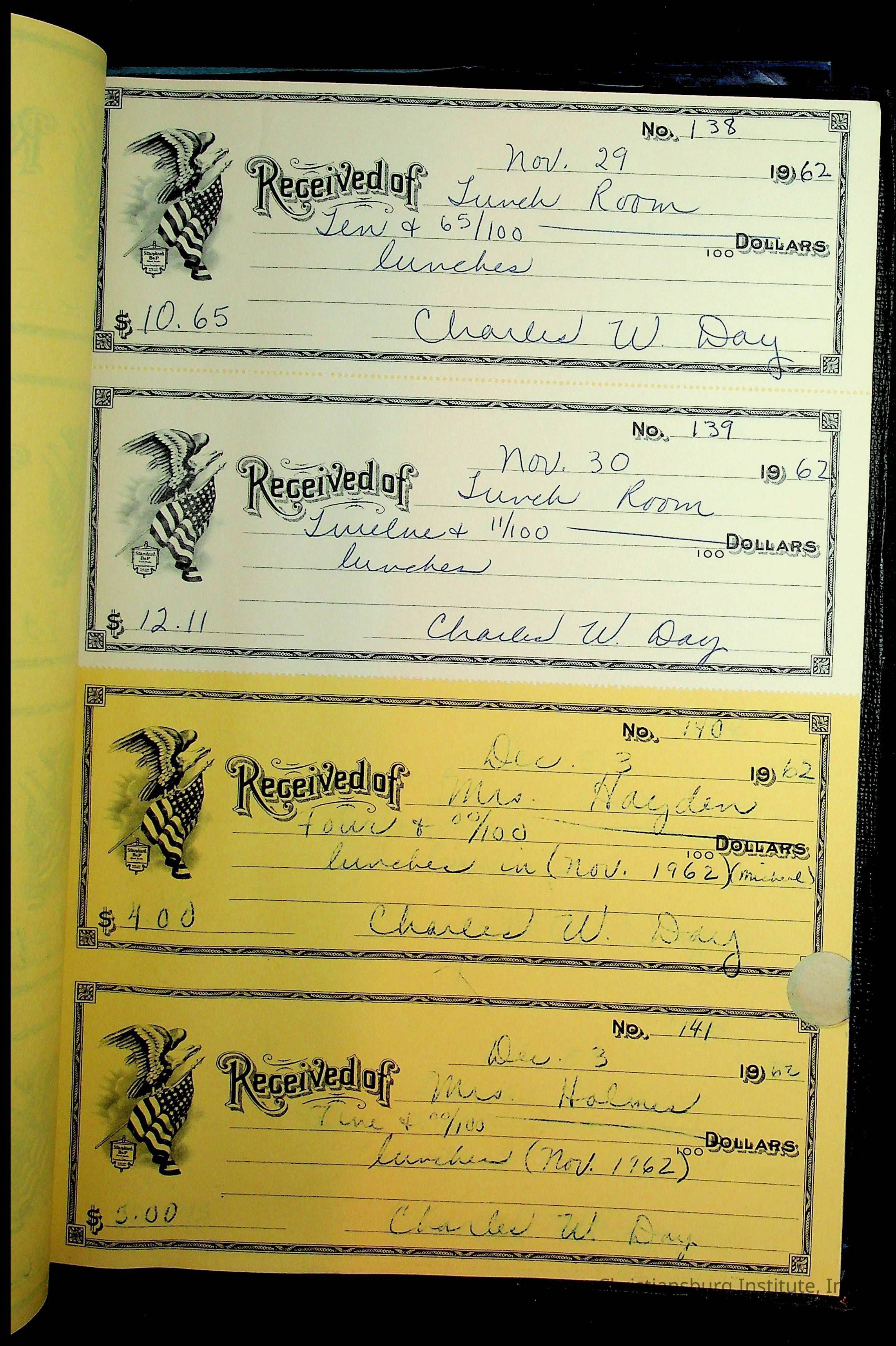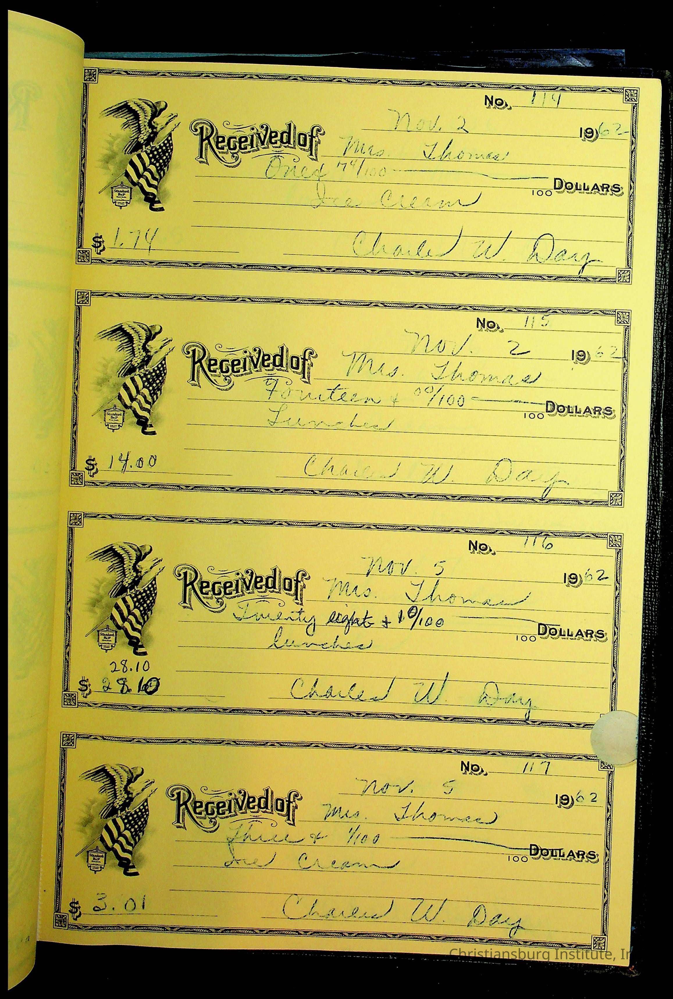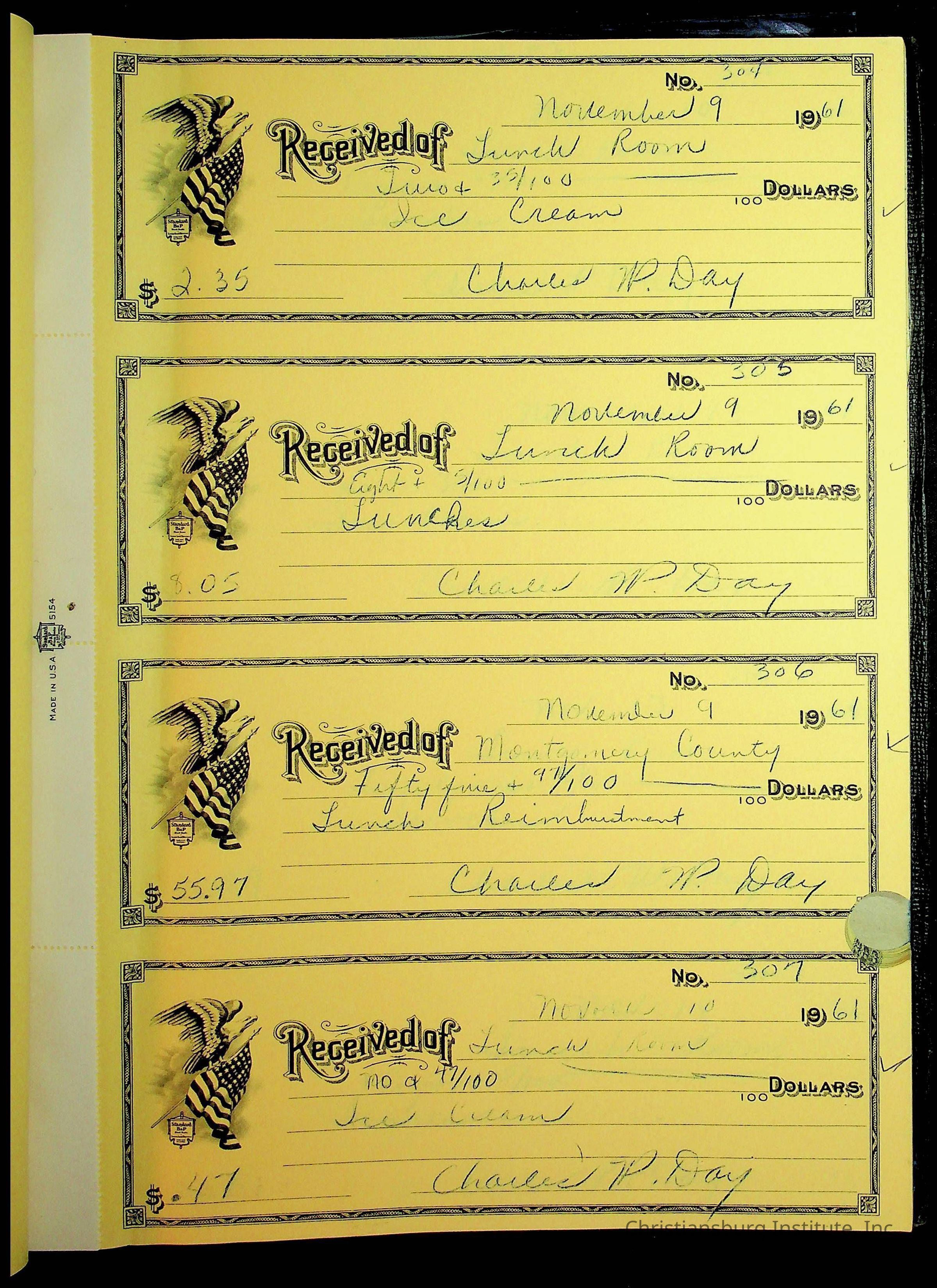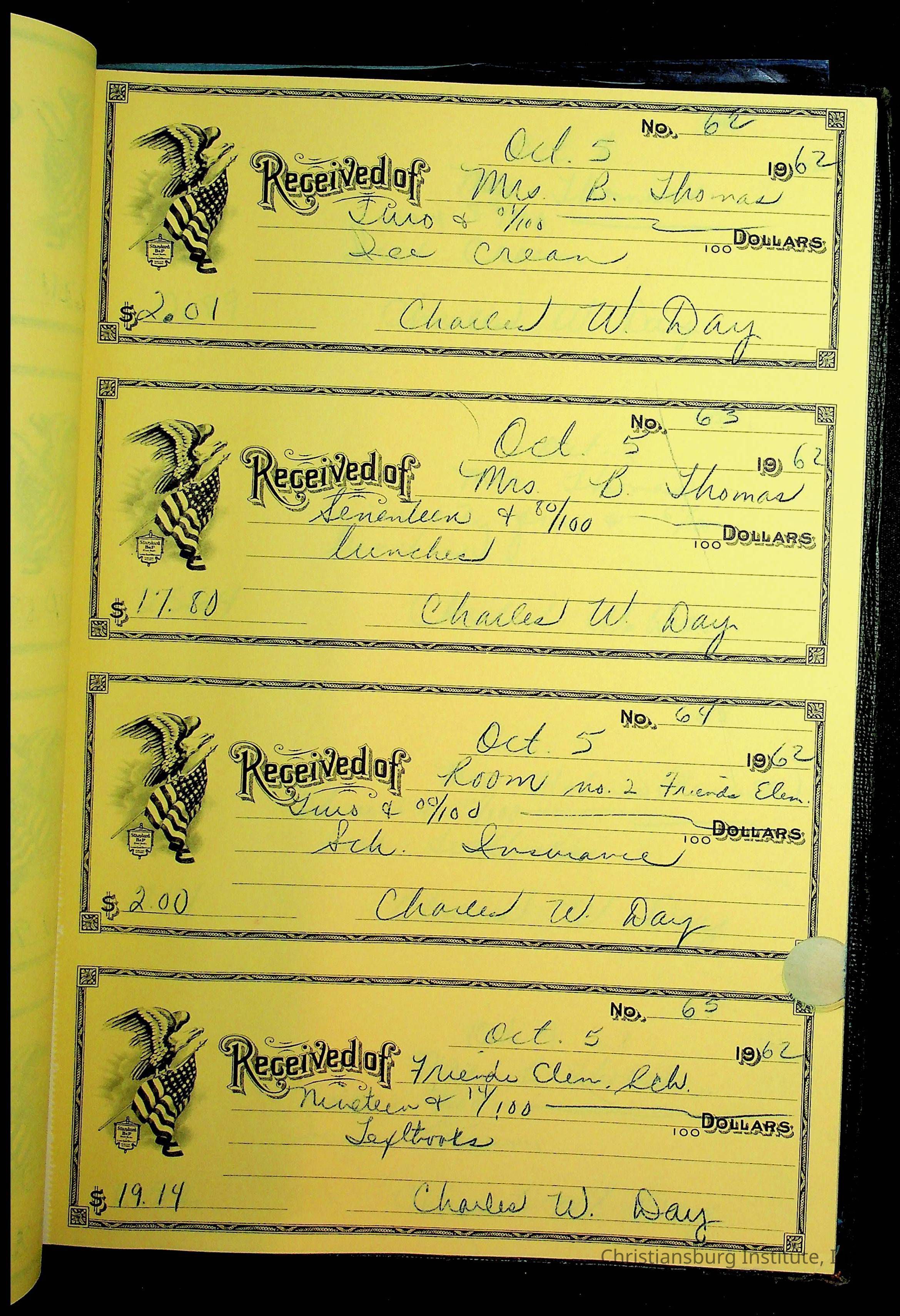 Christiansburg Institute Receipt Book, 1961-1963
