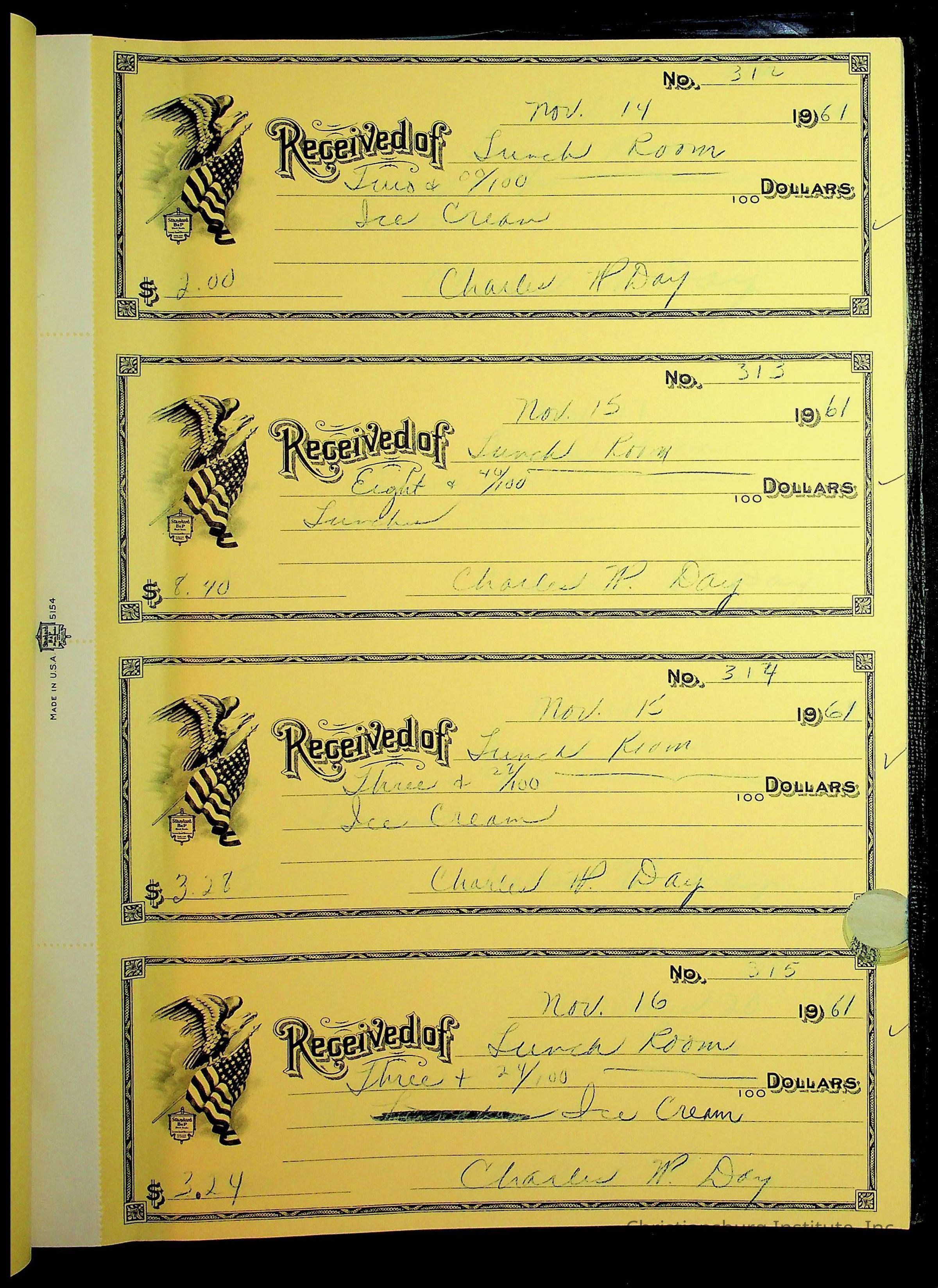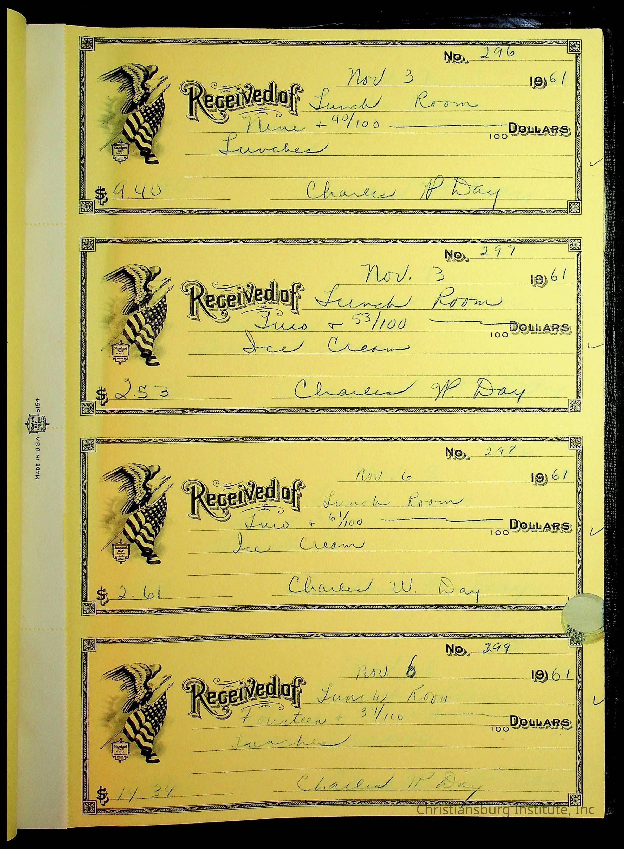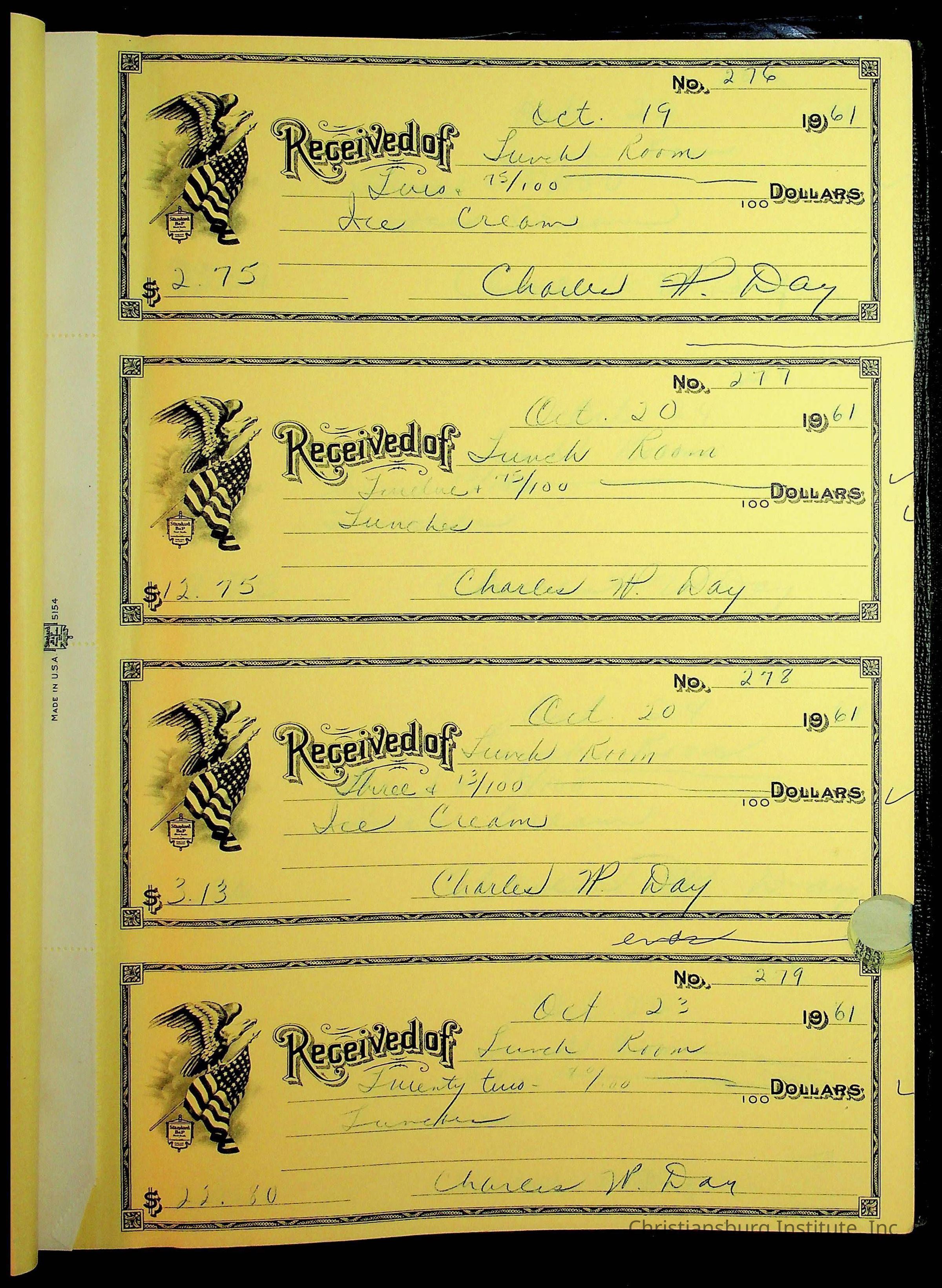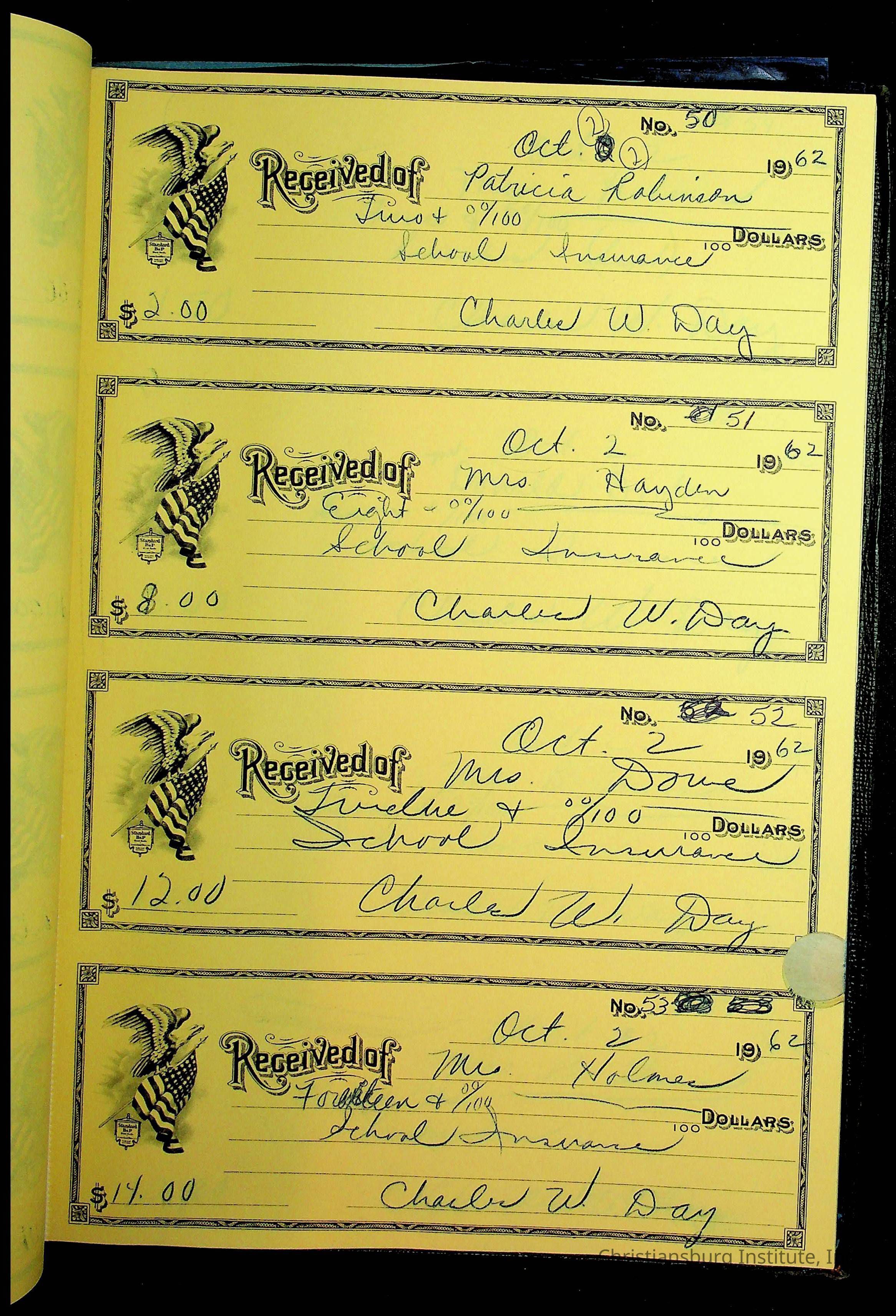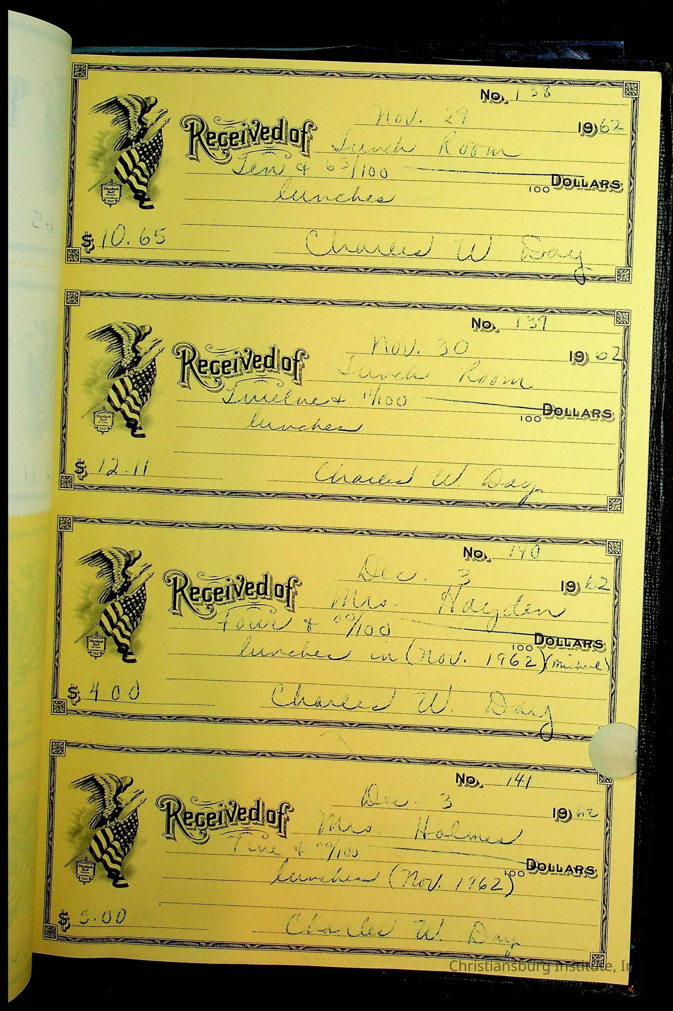 Christiansburg Institute Receipt Book, 1961-1963
