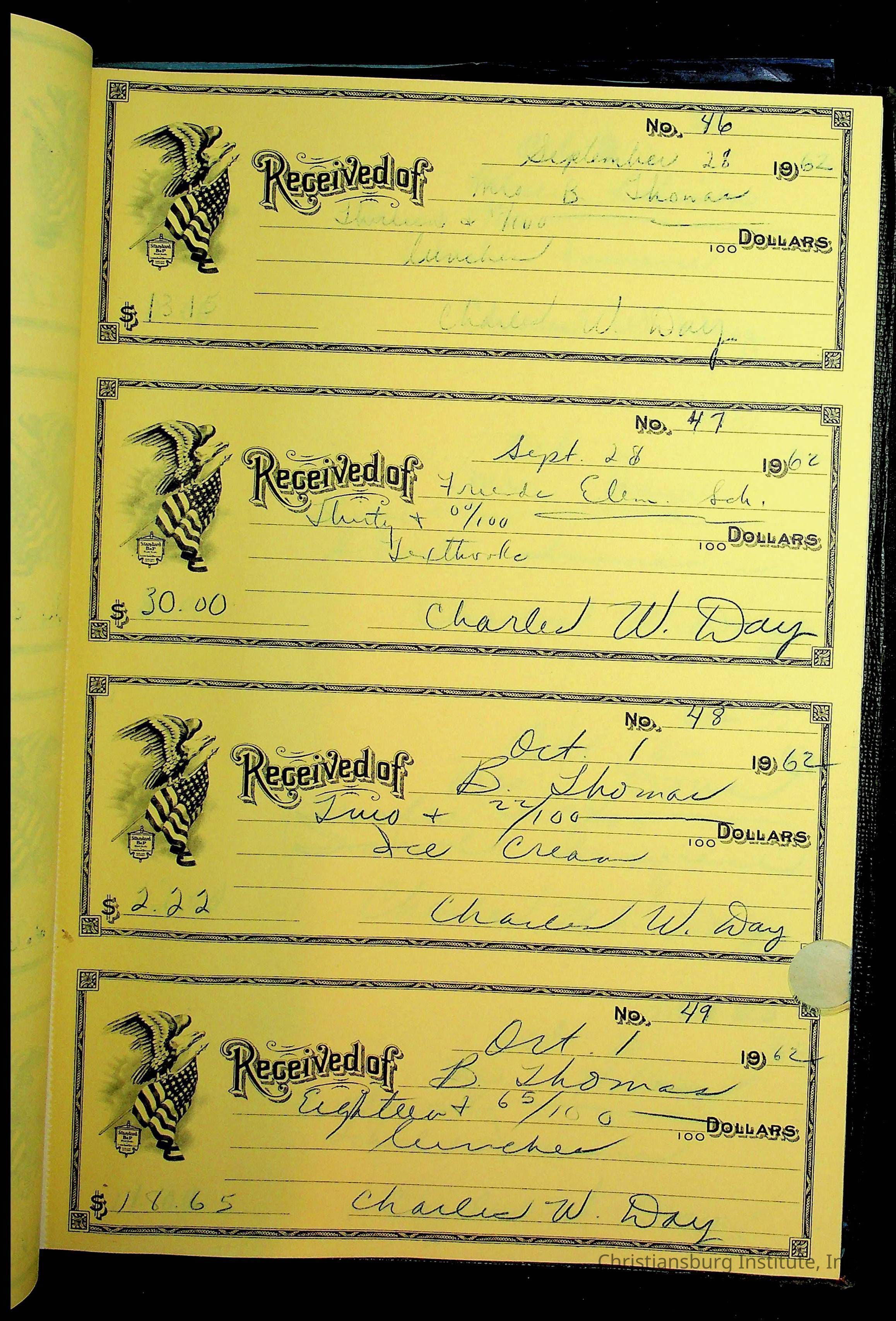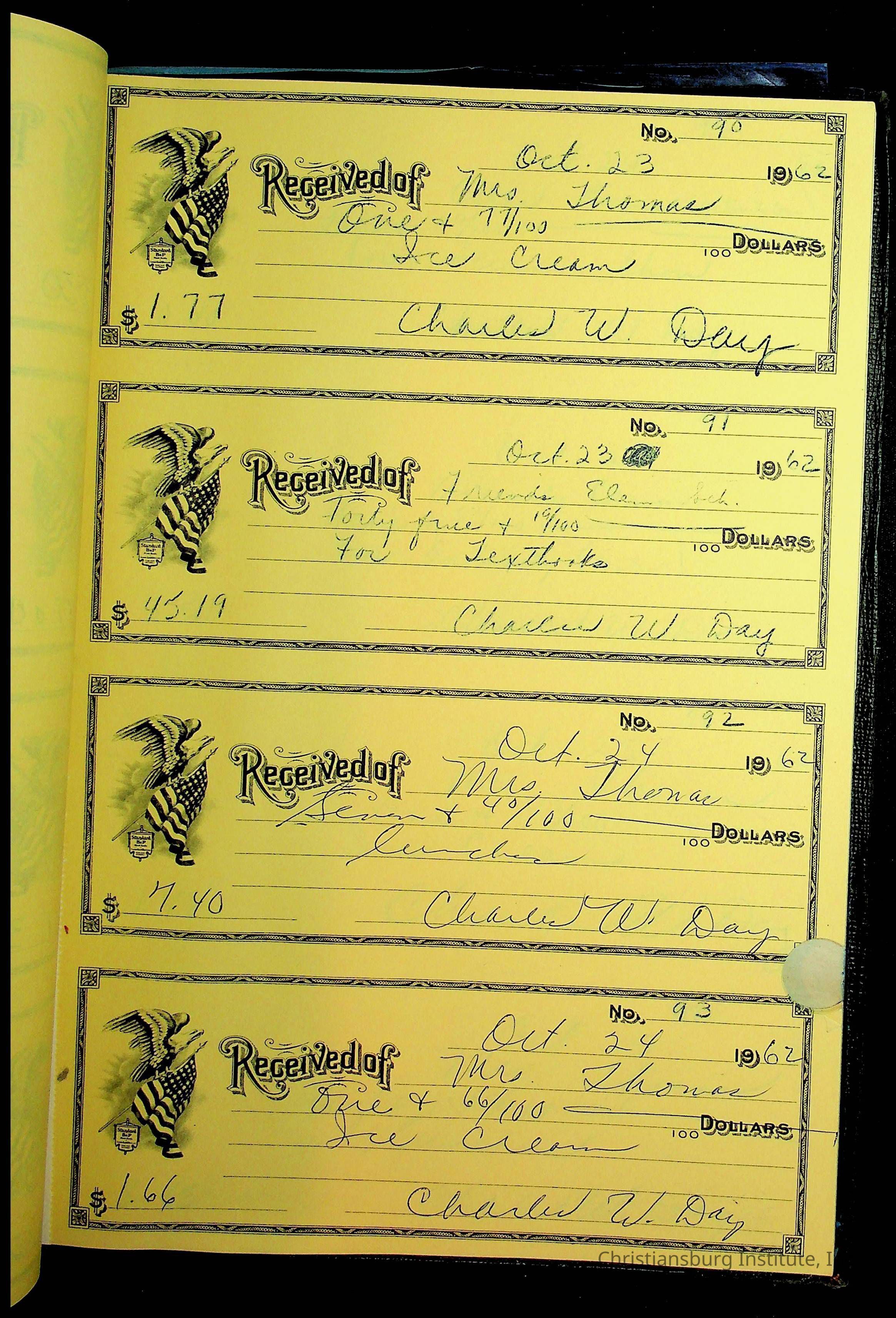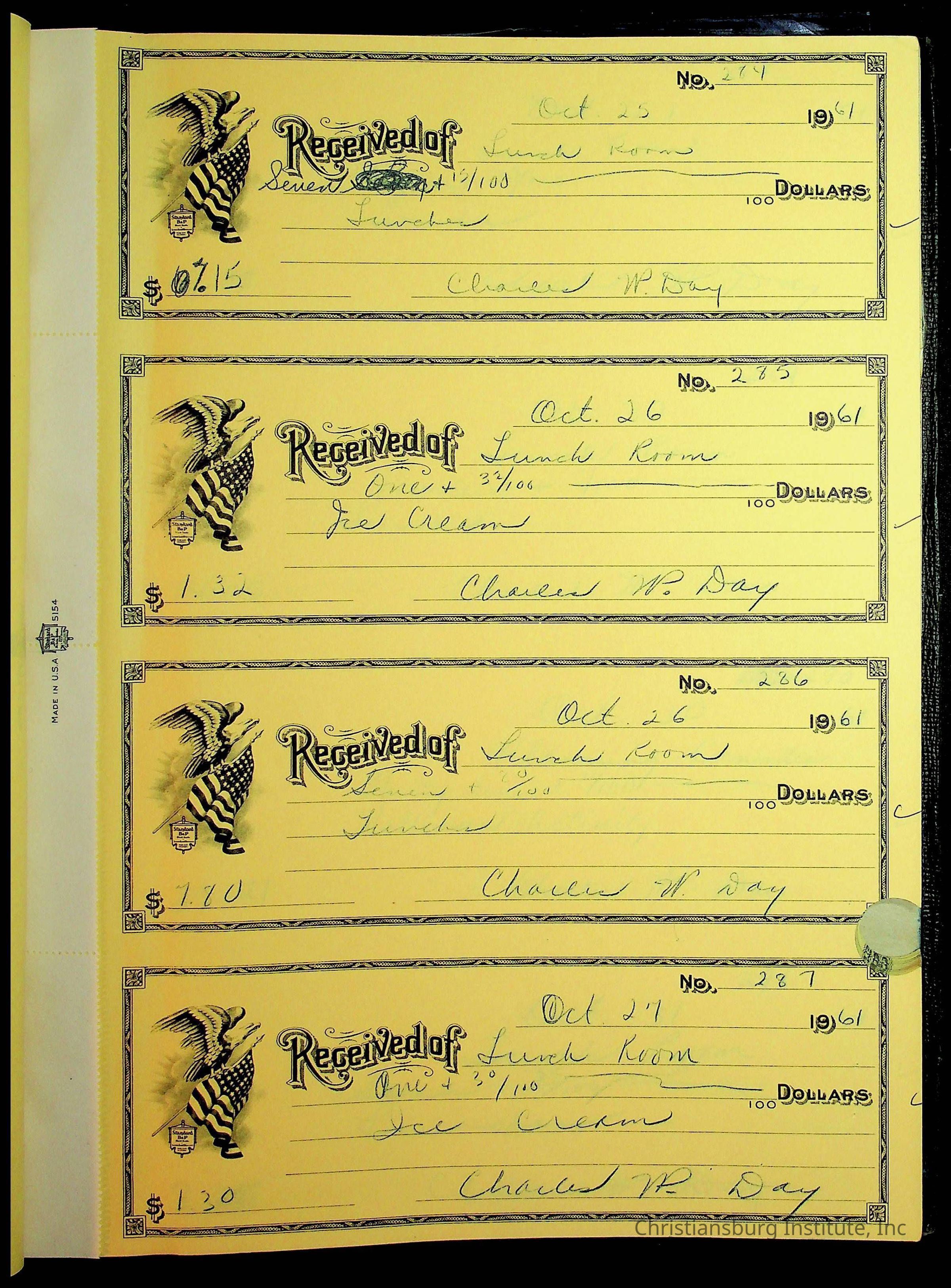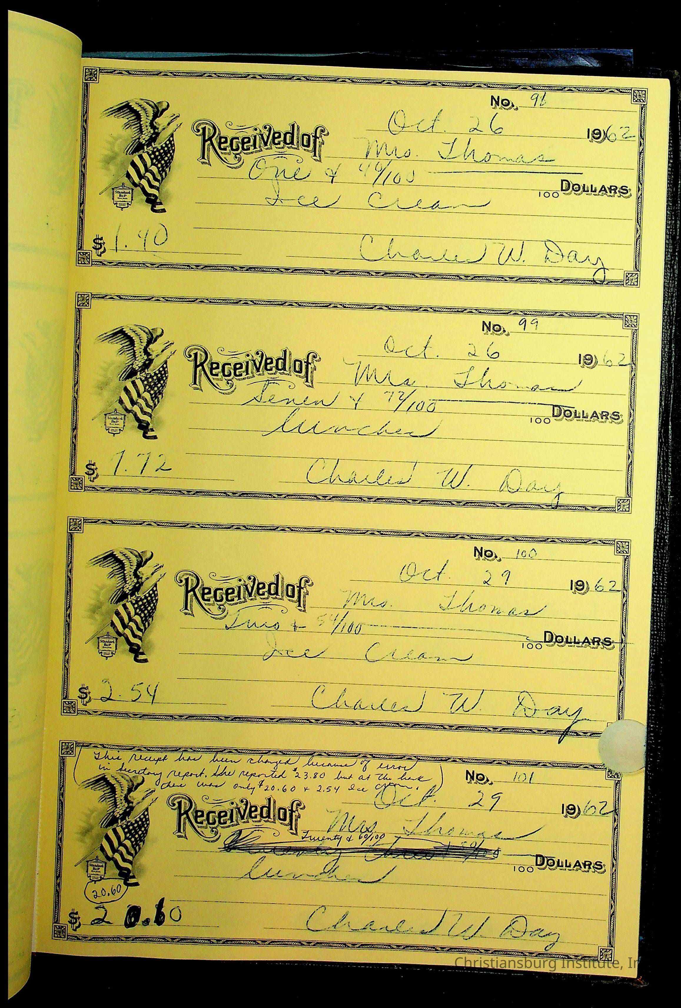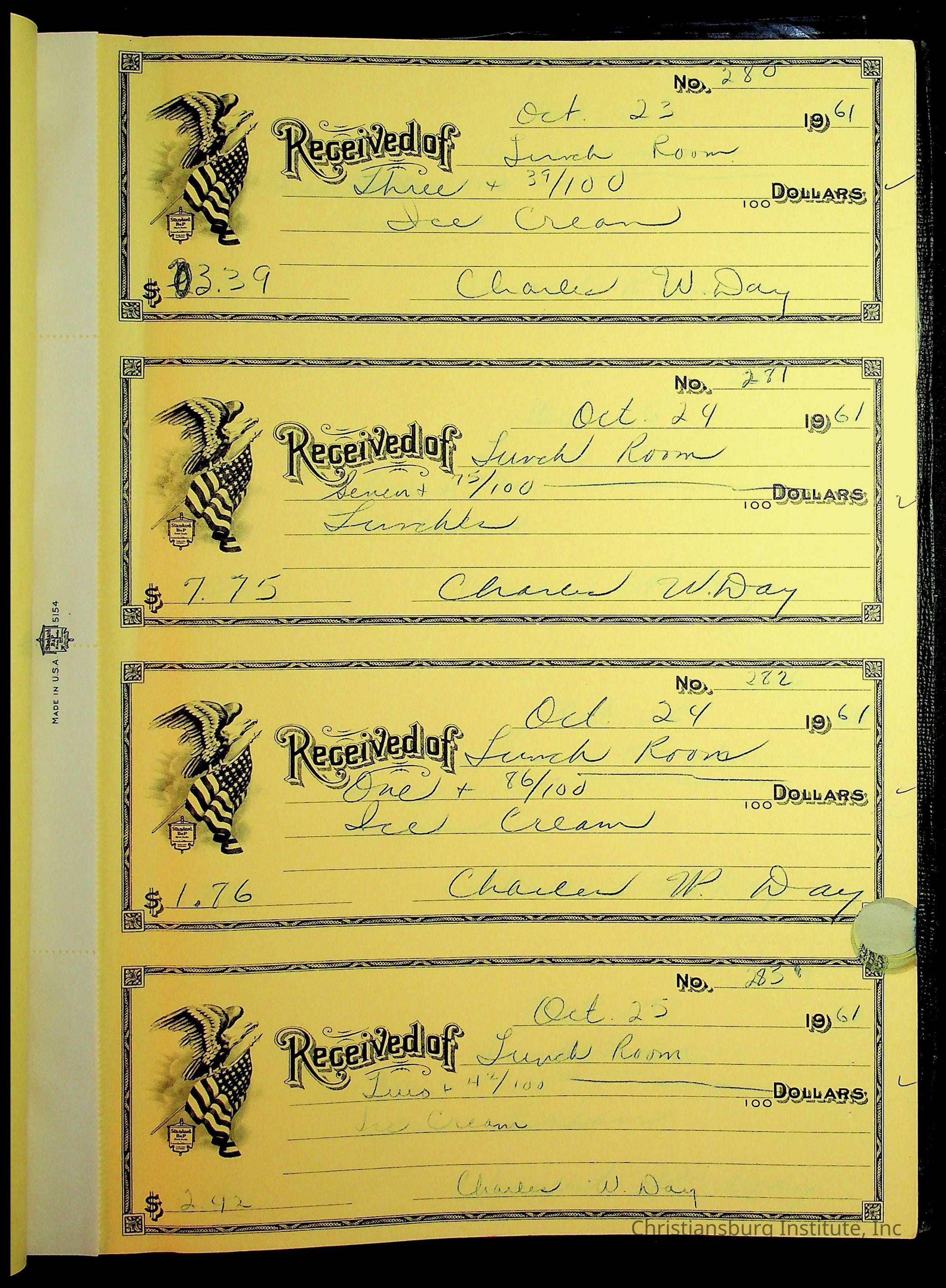 Christiansburg Institute Receipt Book, 1961-1963