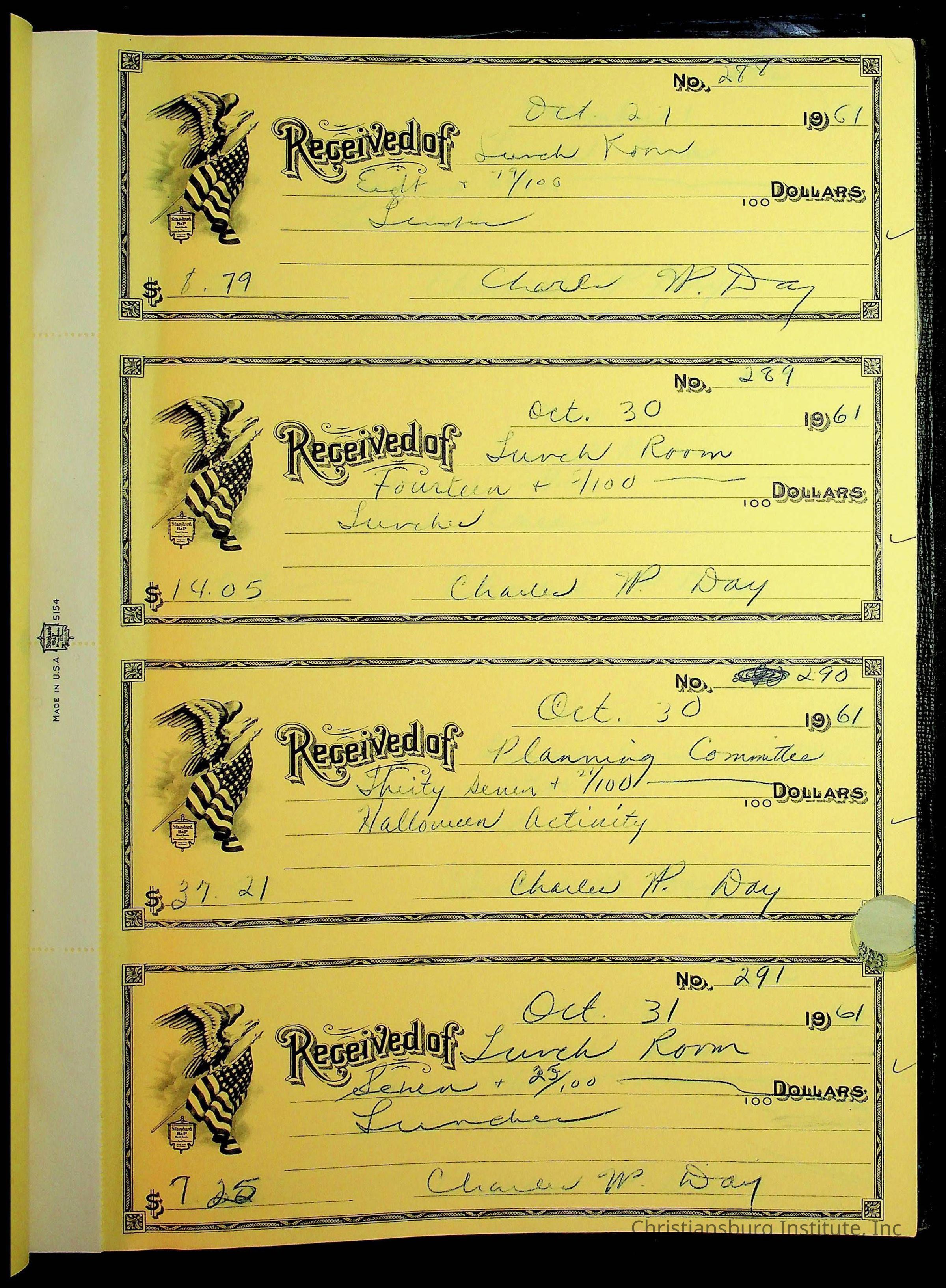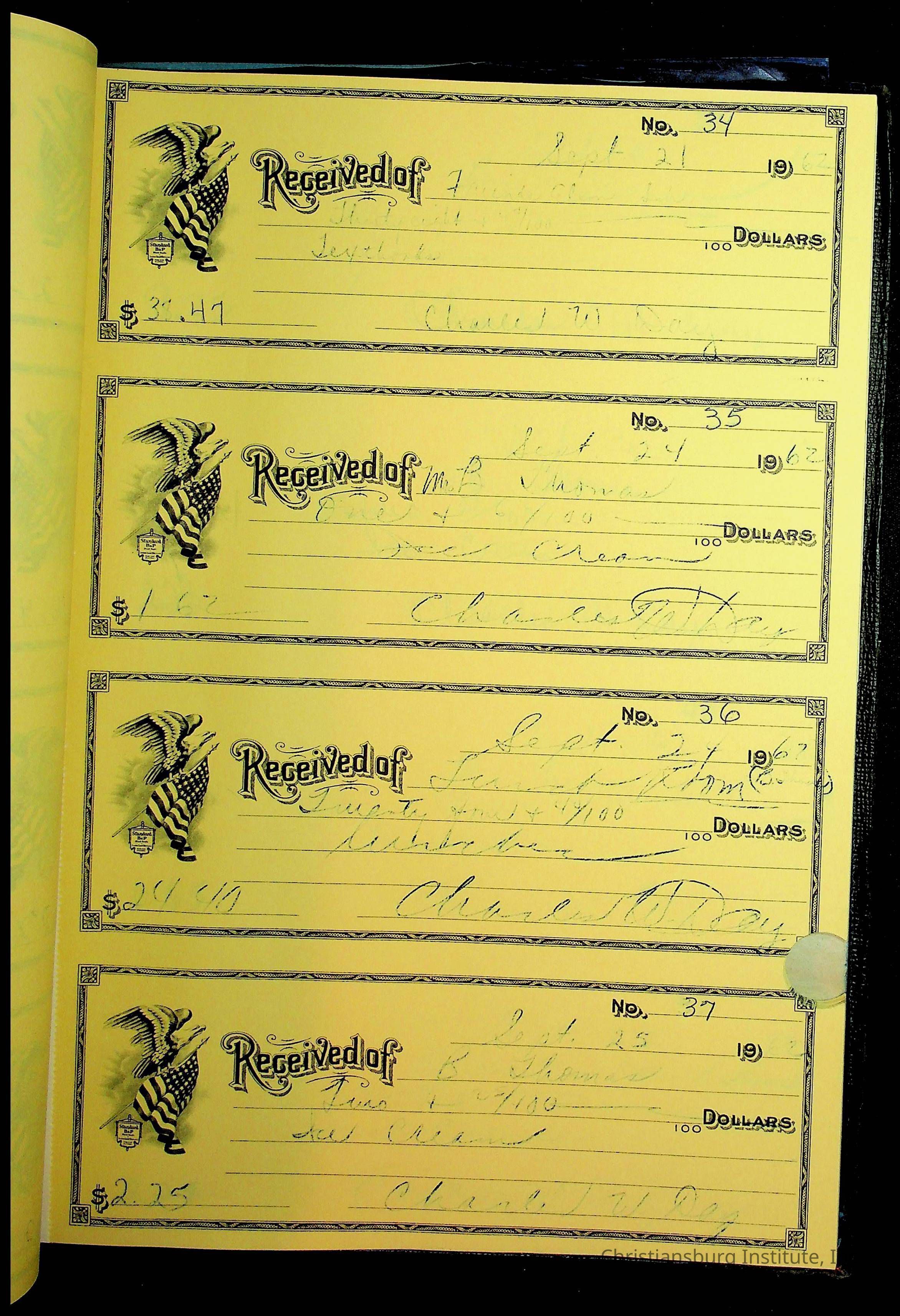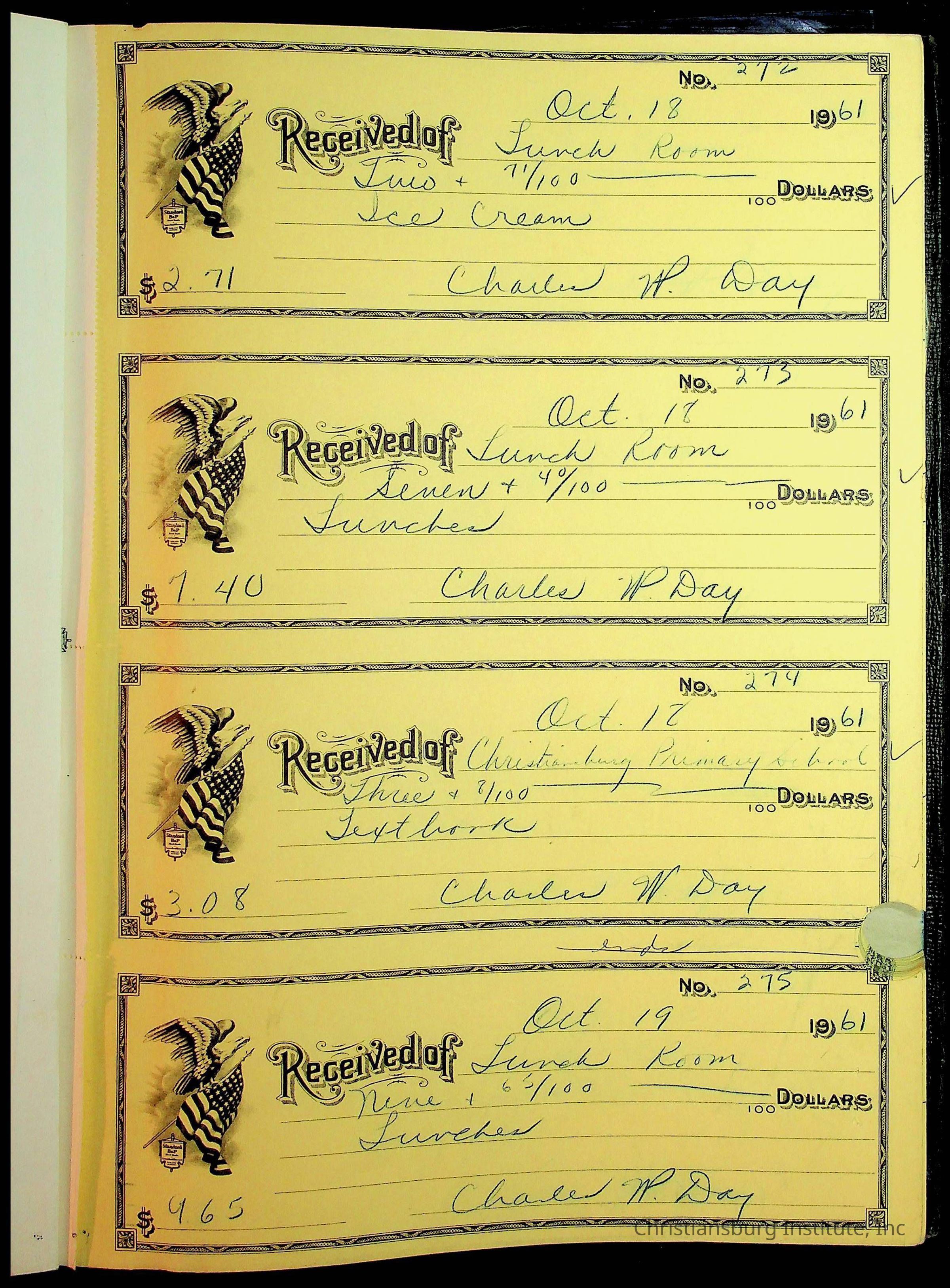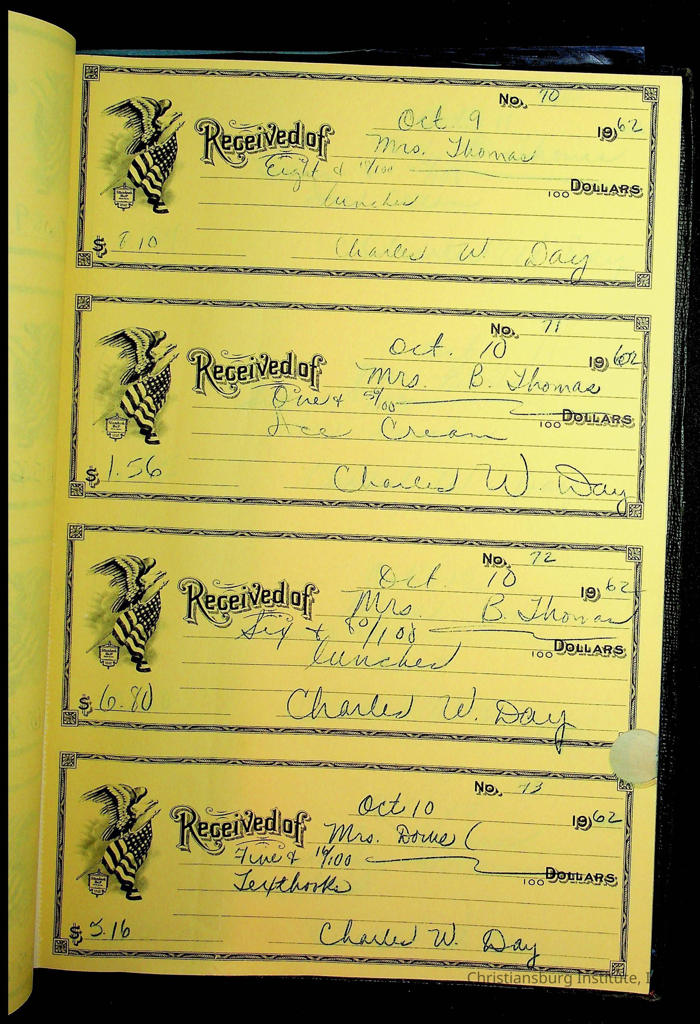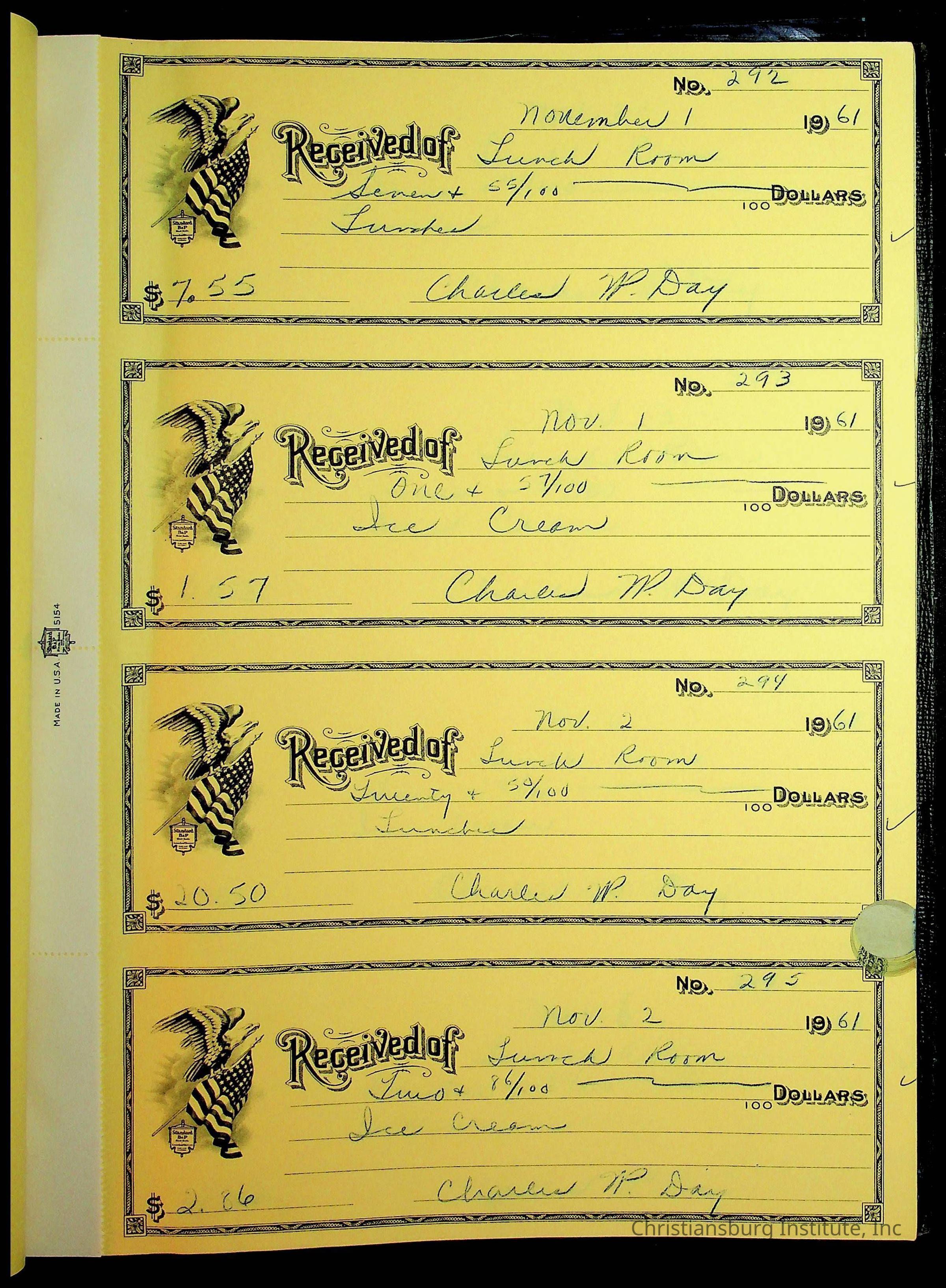 Christiansburg Institute Receipt Book, 1961-1963