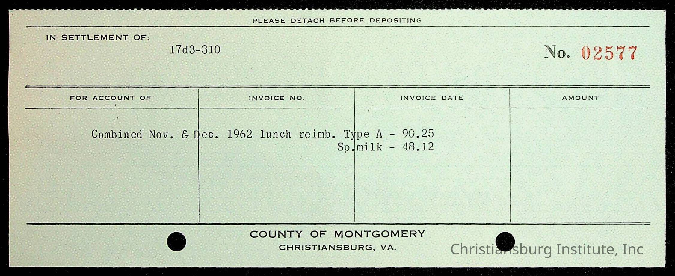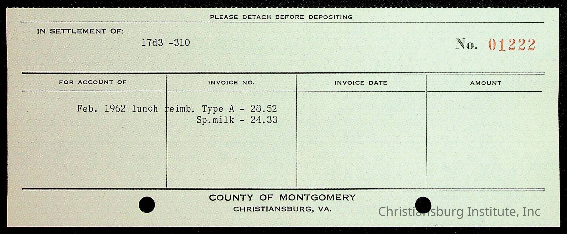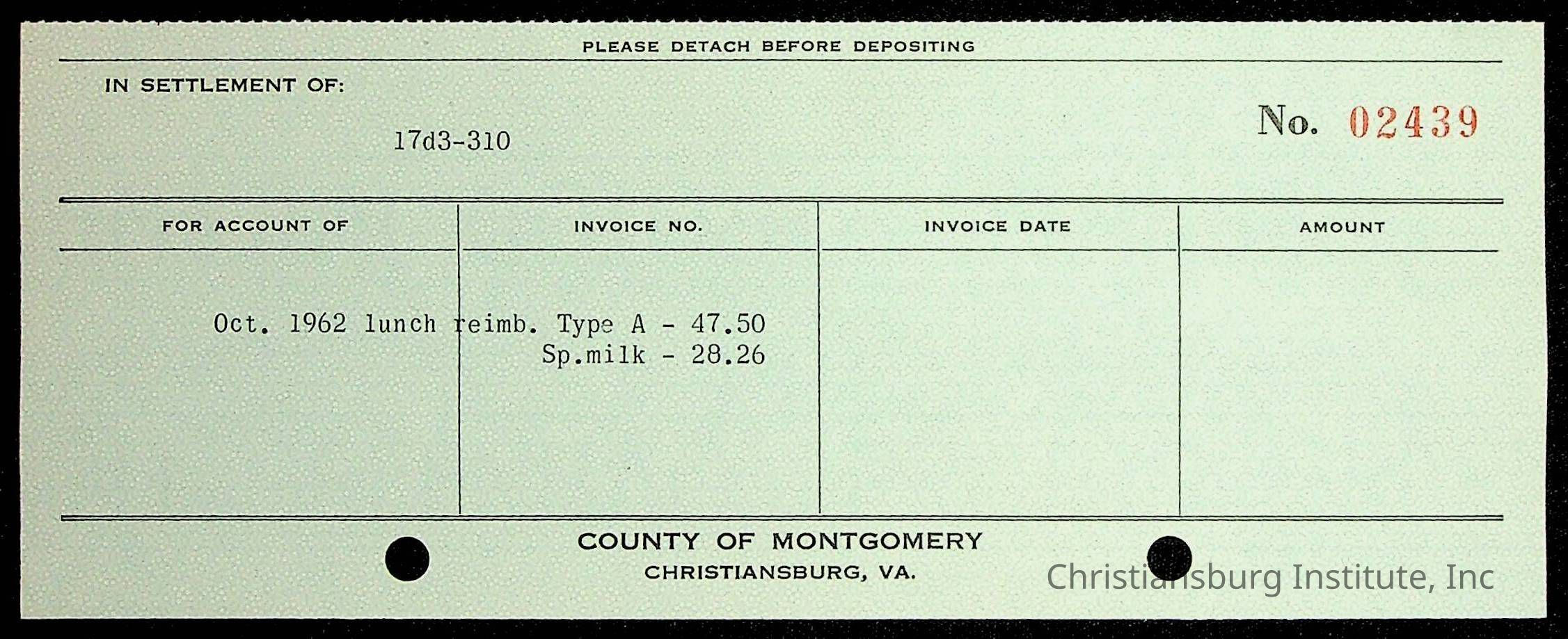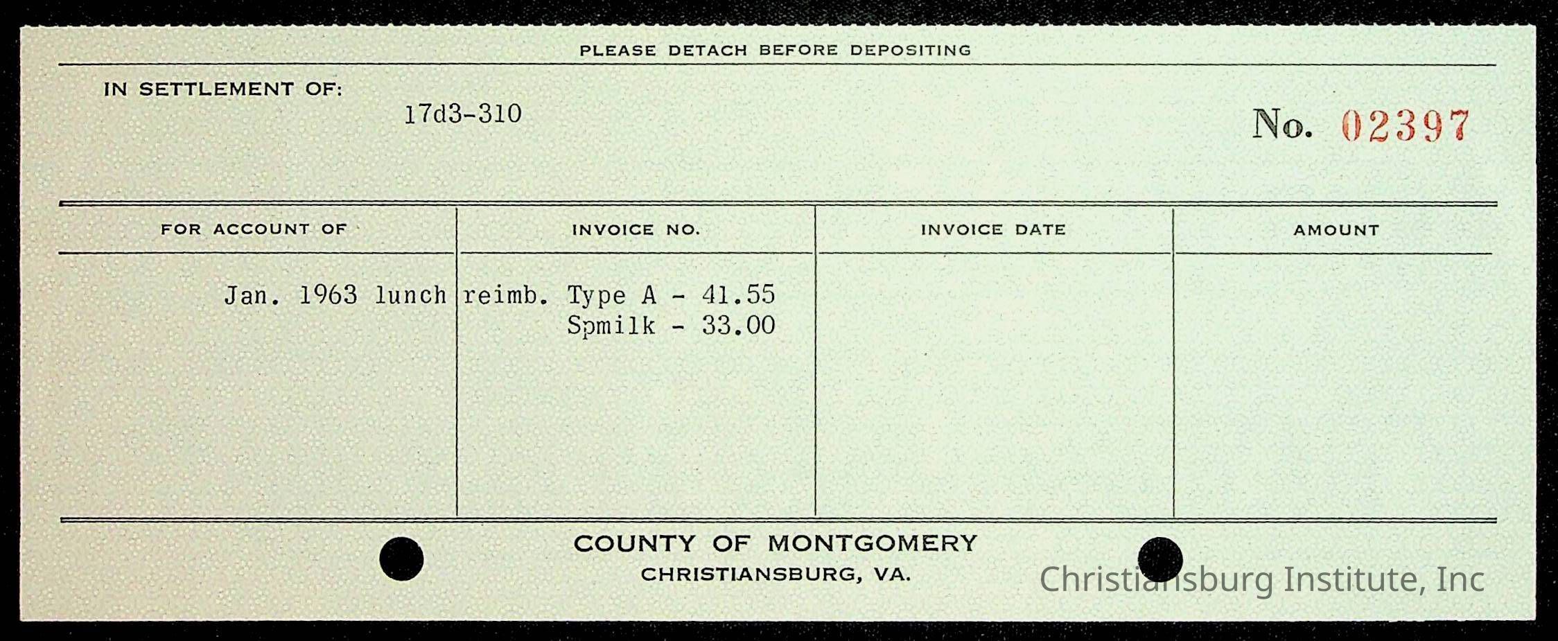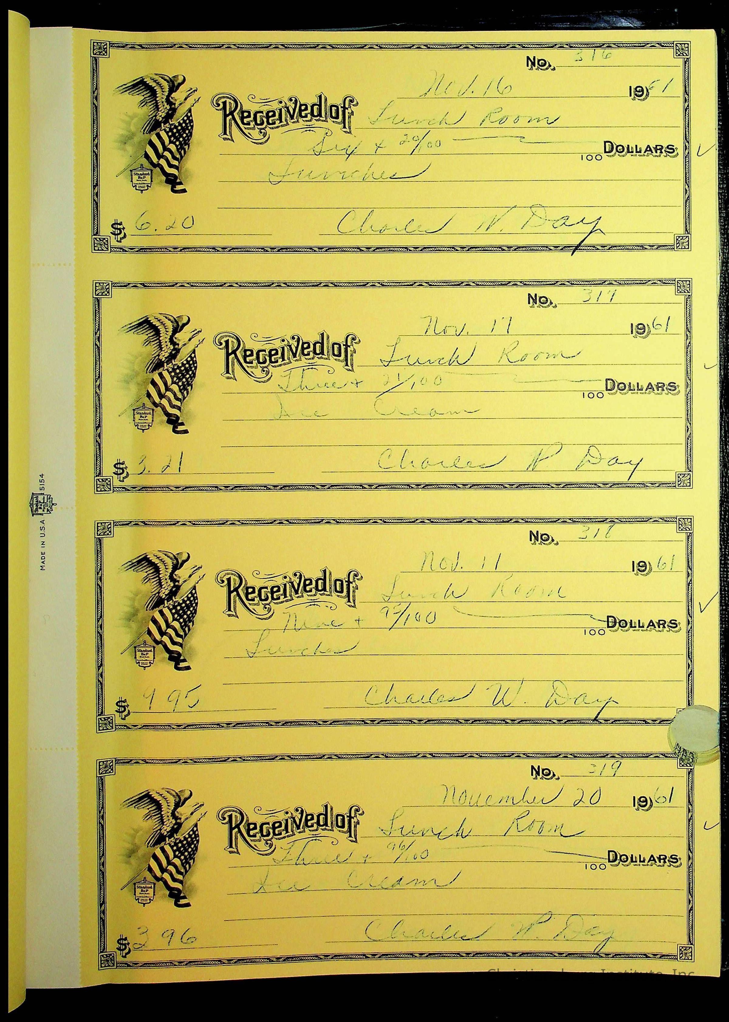 Christiansburg Institute Receipt Book, 1961-1963
