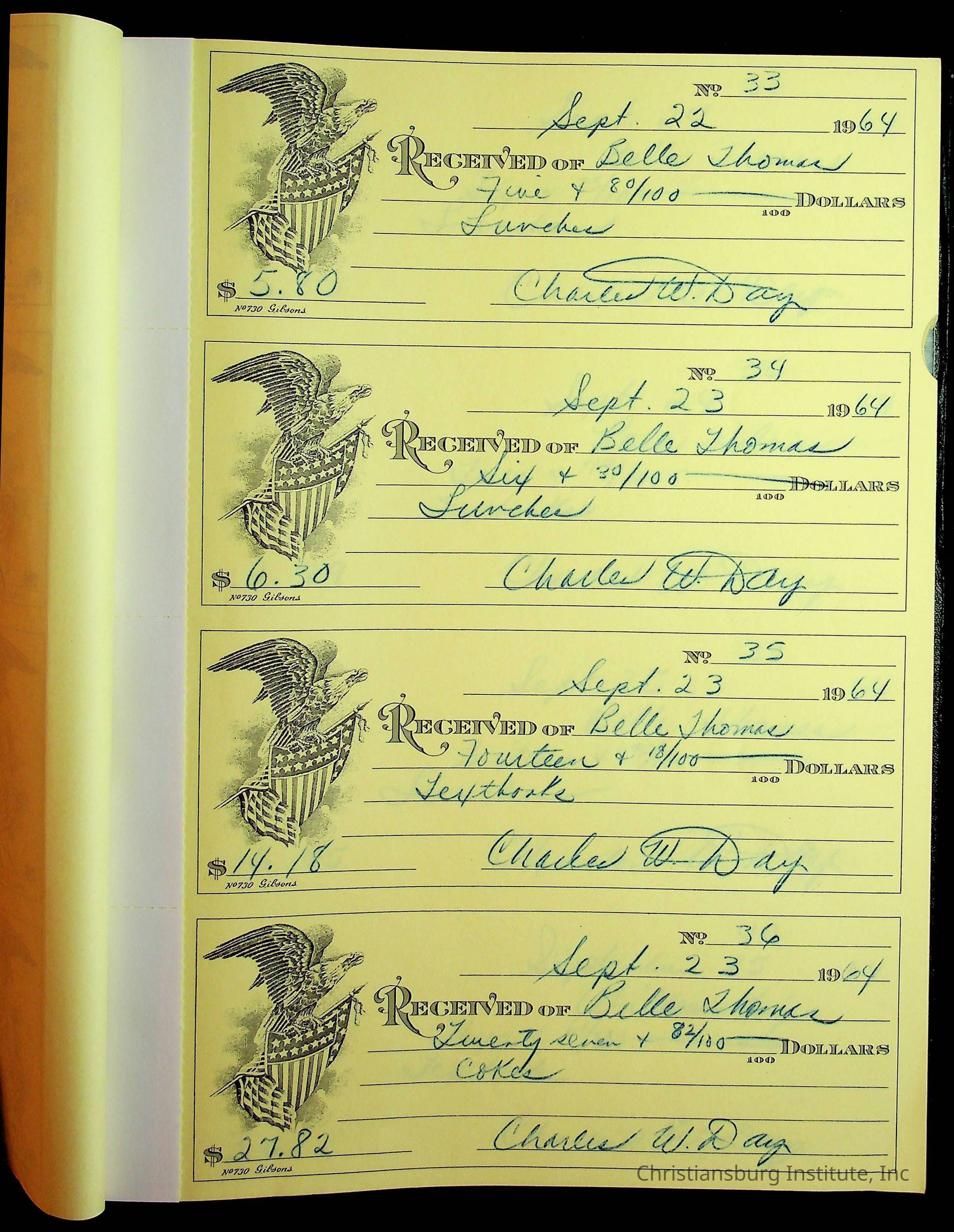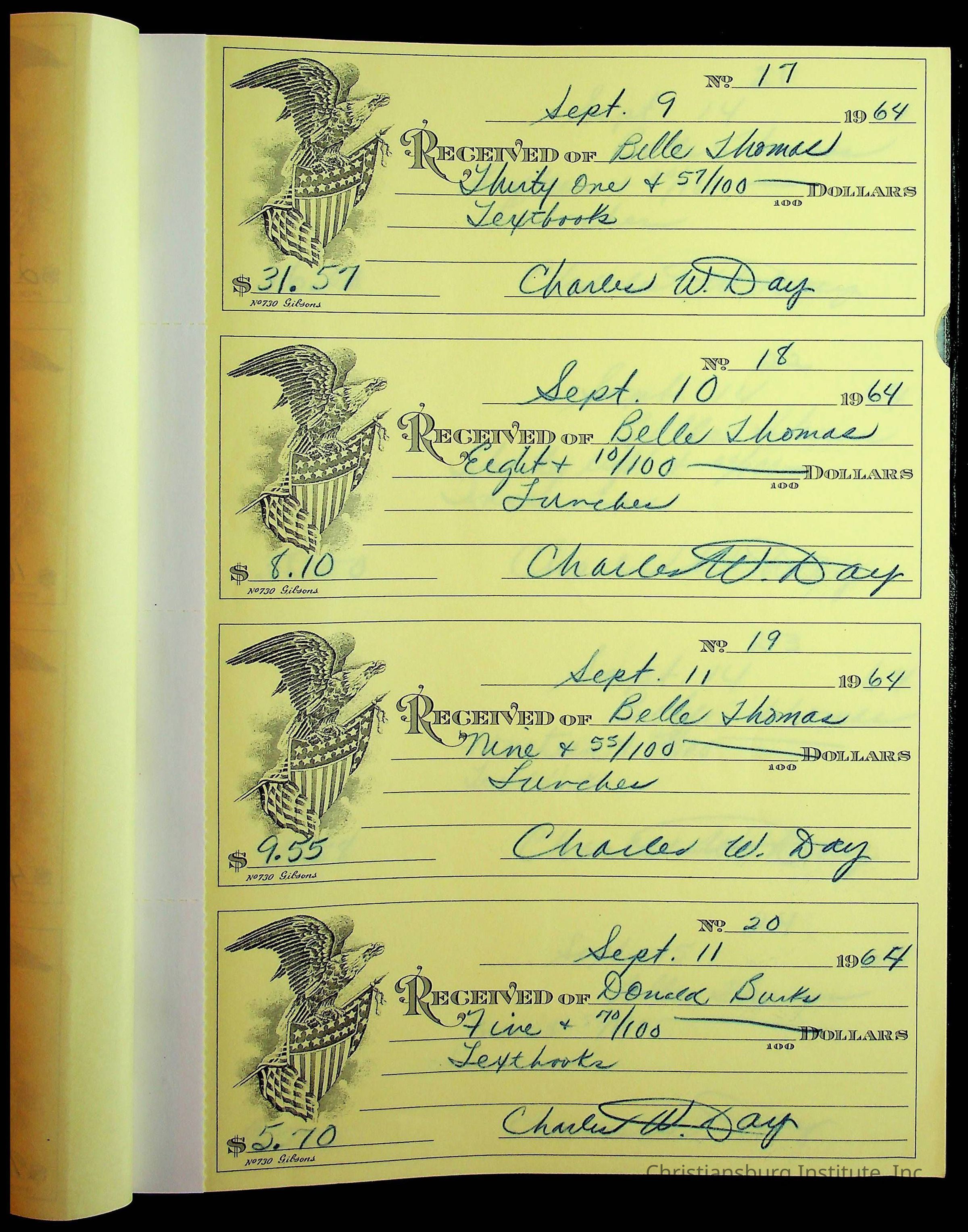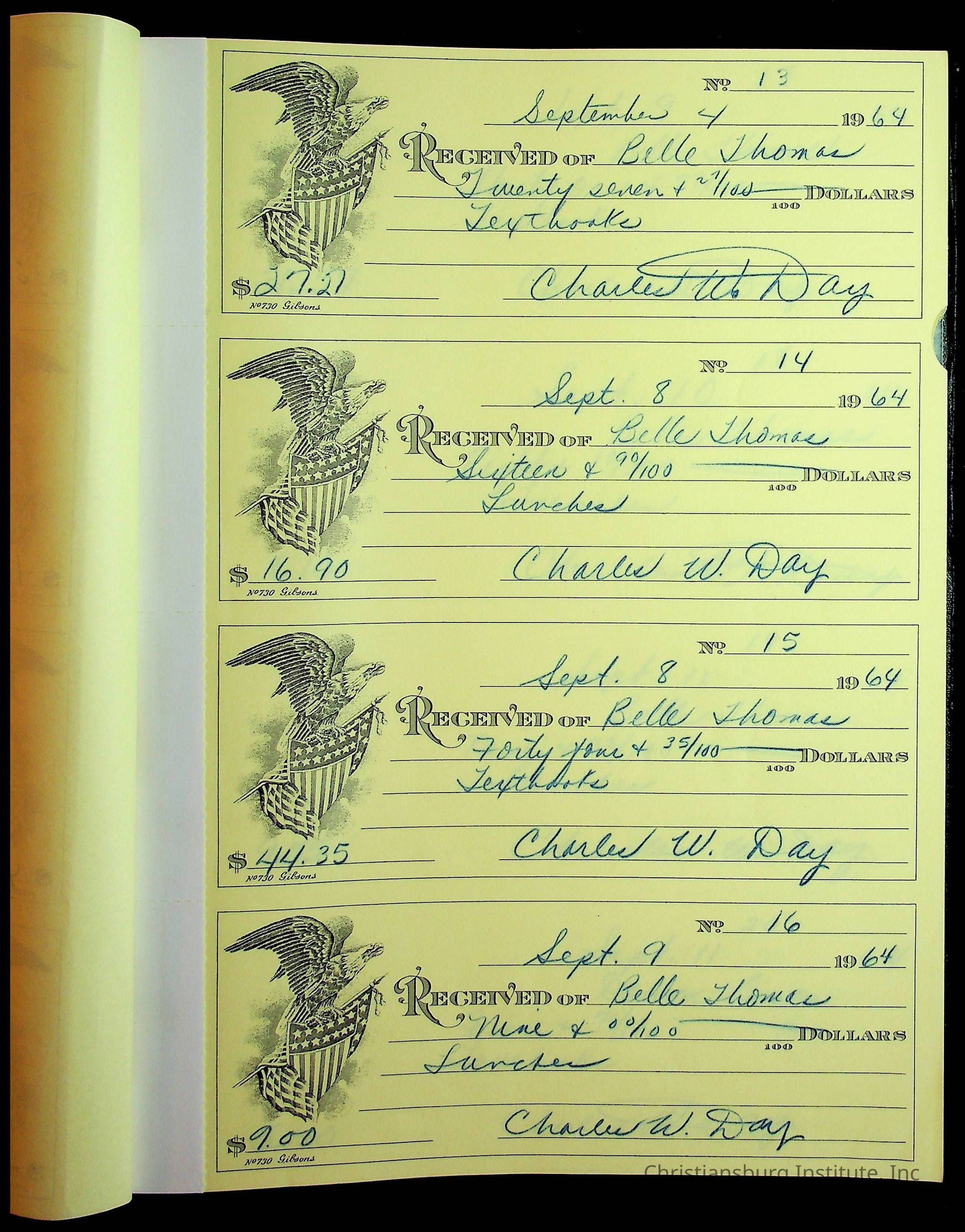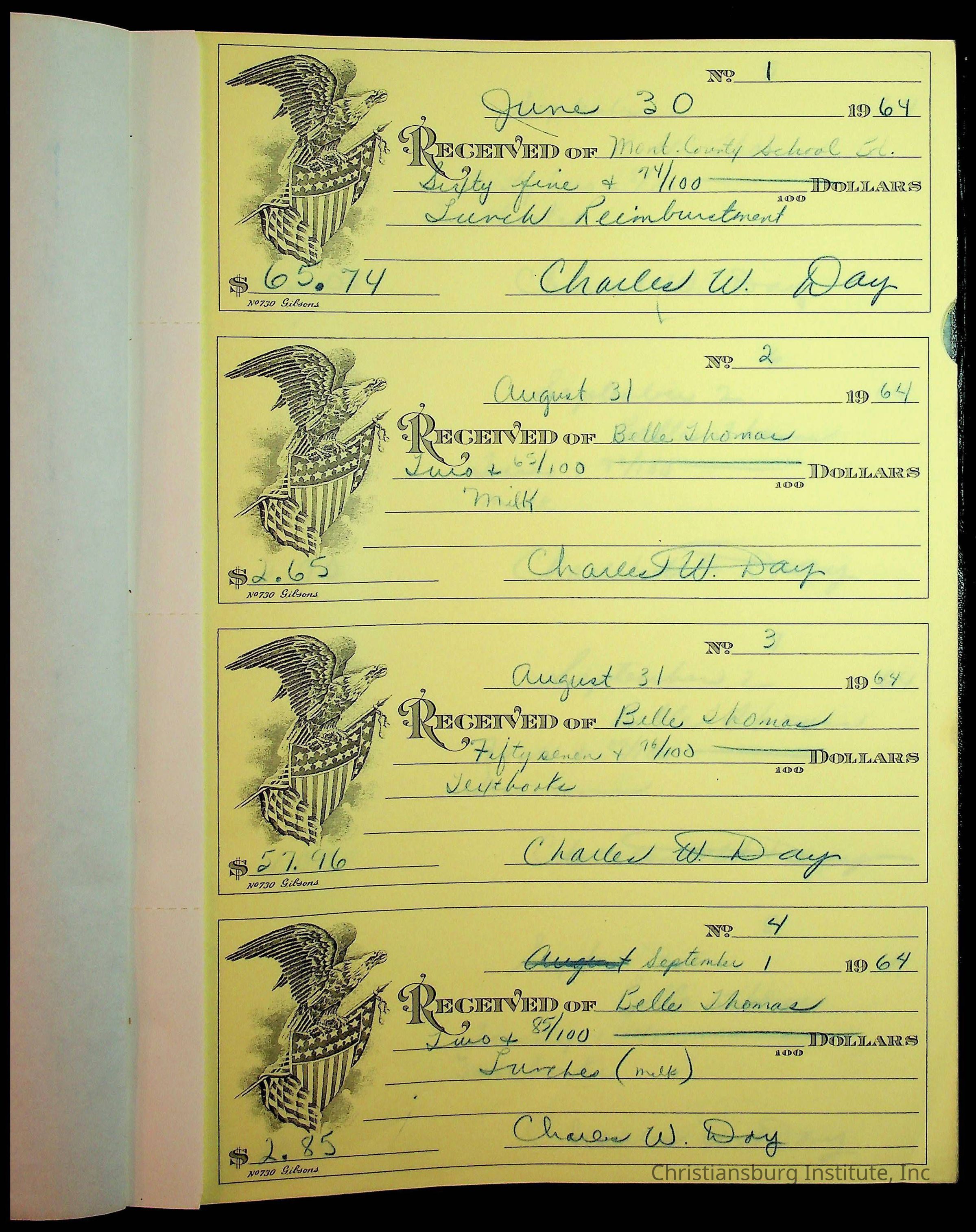 Christiansburg Institute Receipt Book, 1964-1966