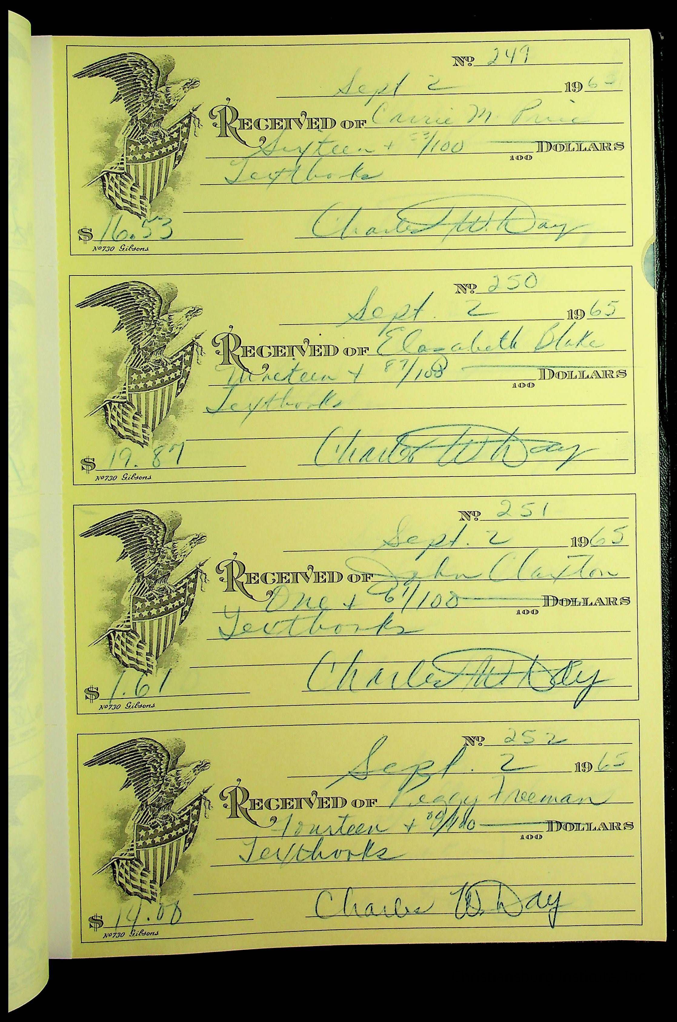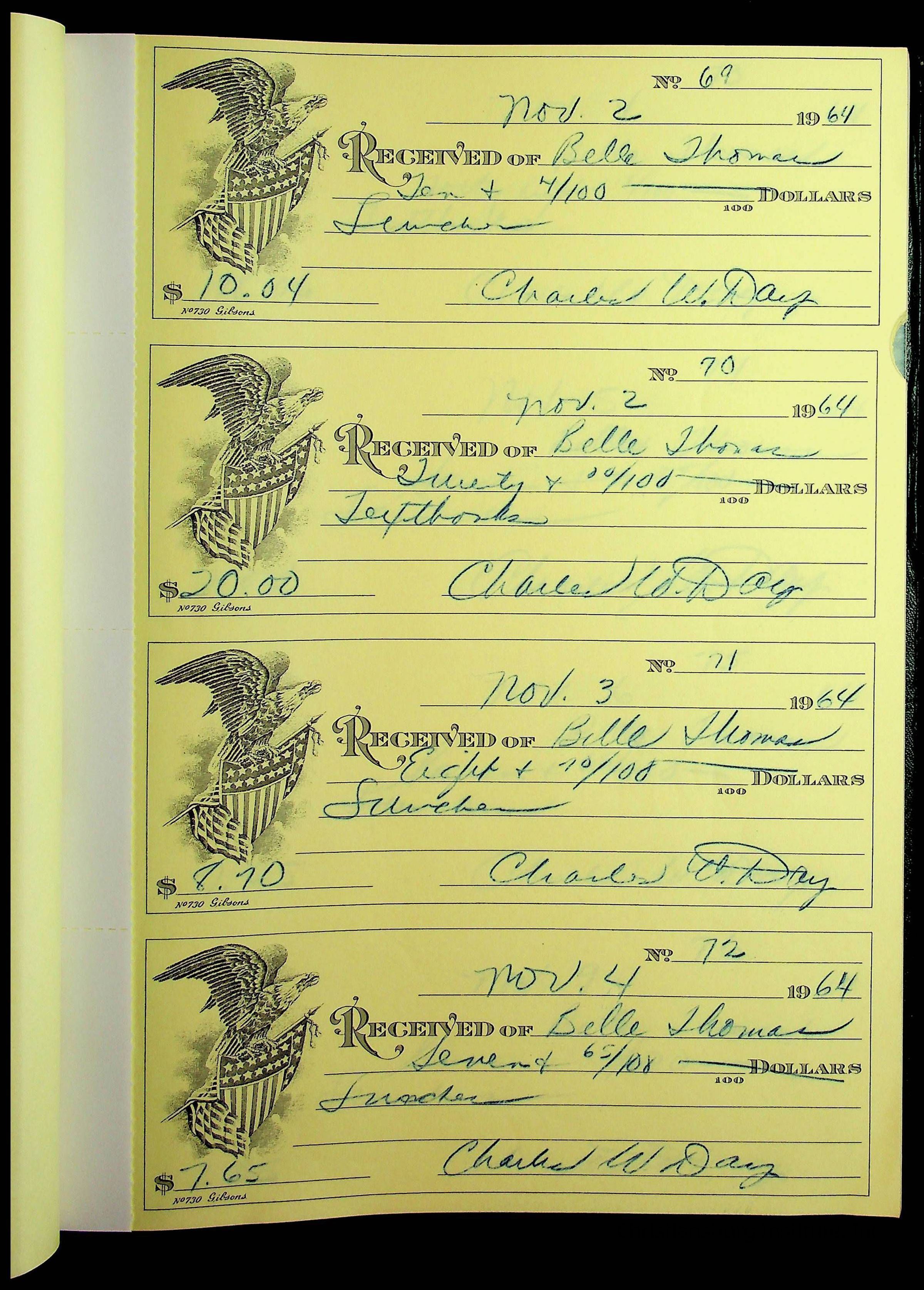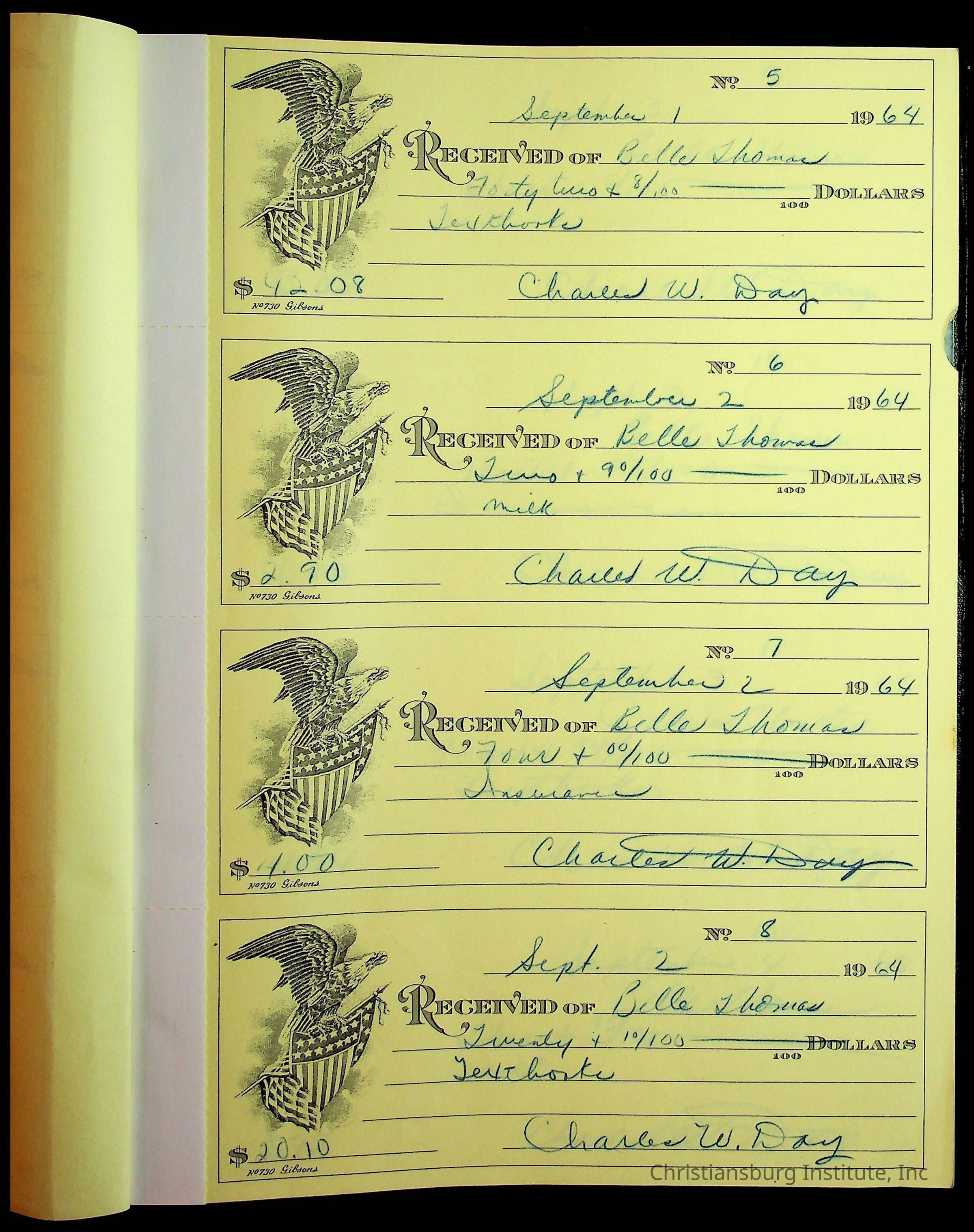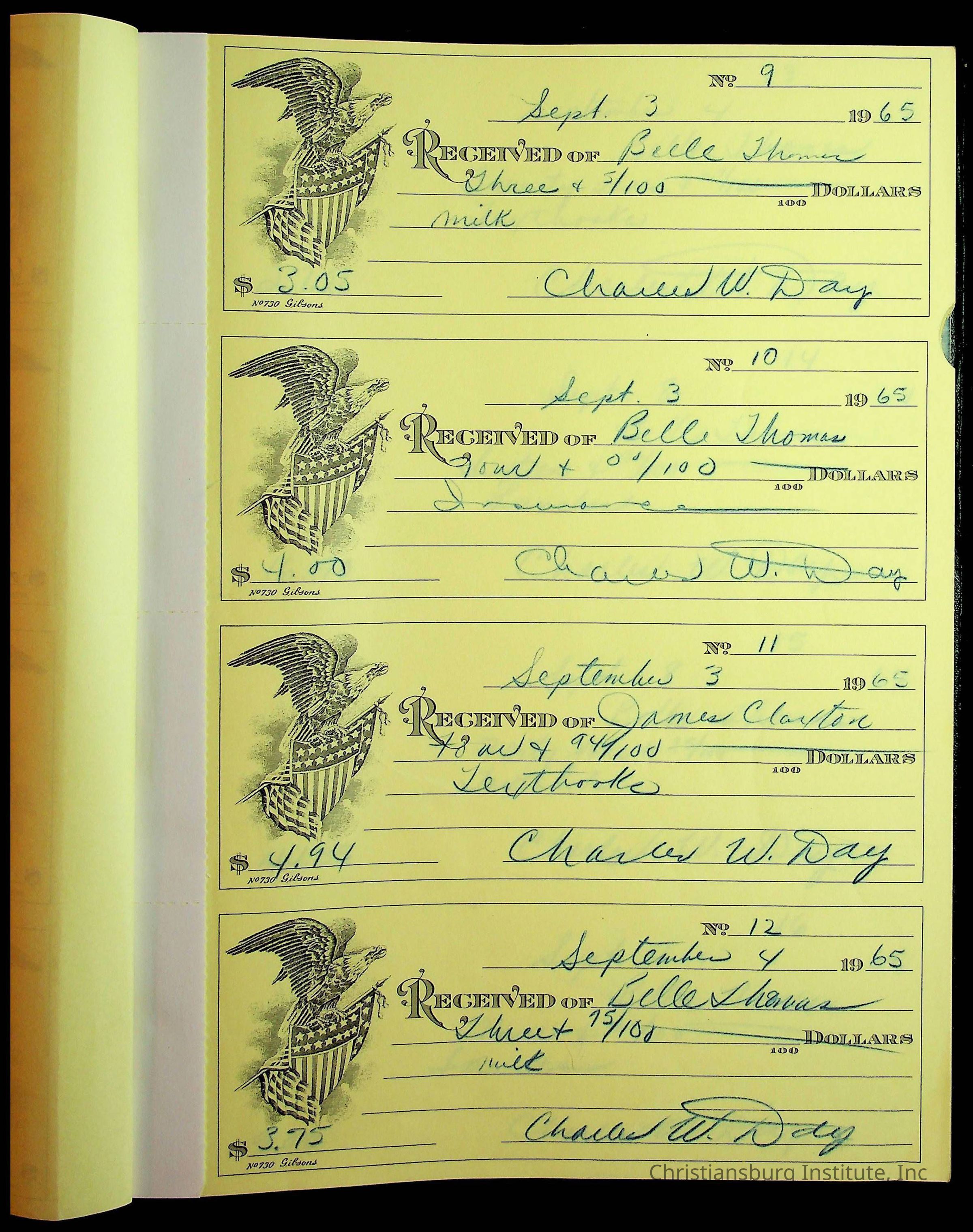 Christiansburg Institute Receipt Book, 1964-1966