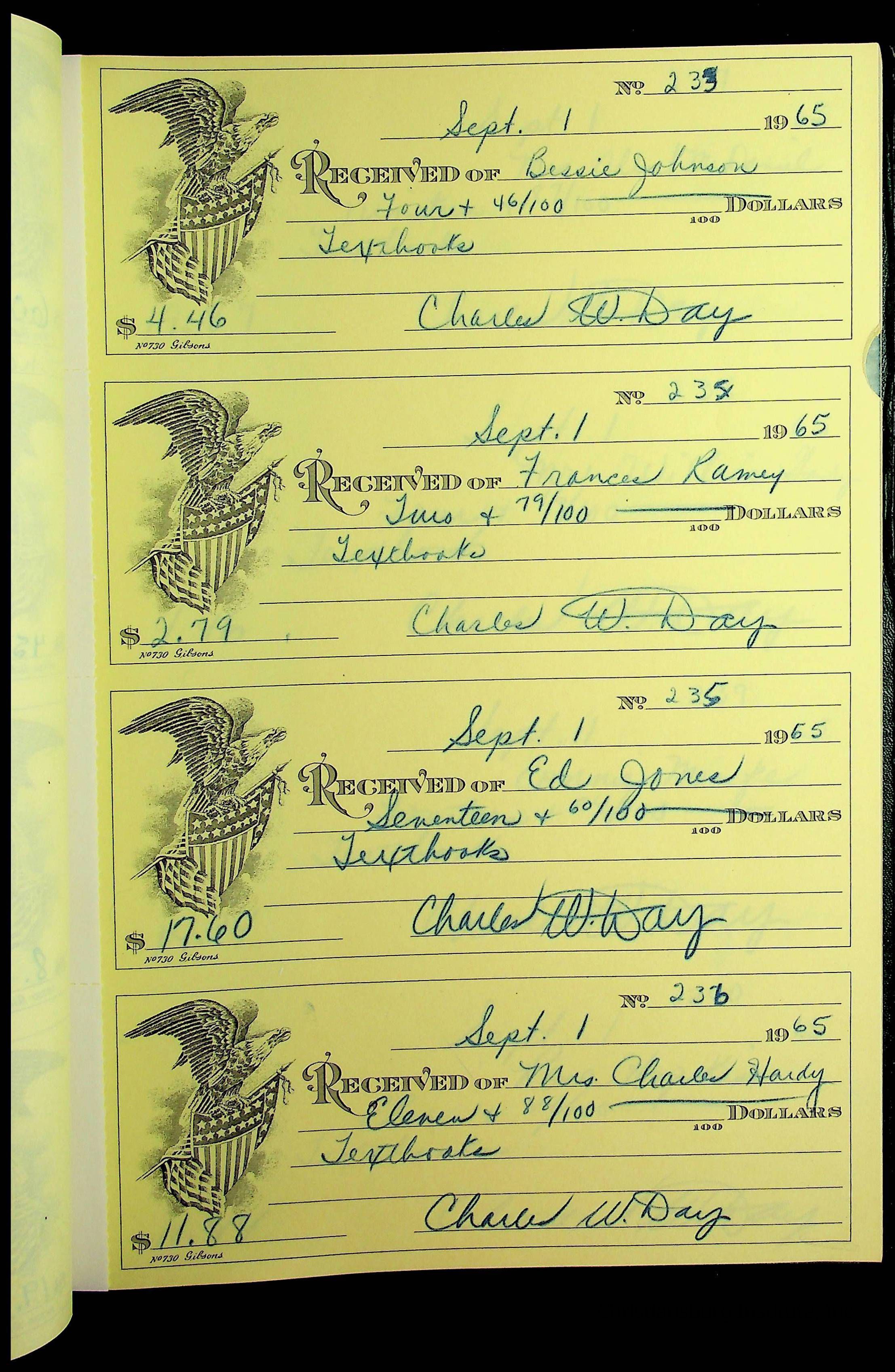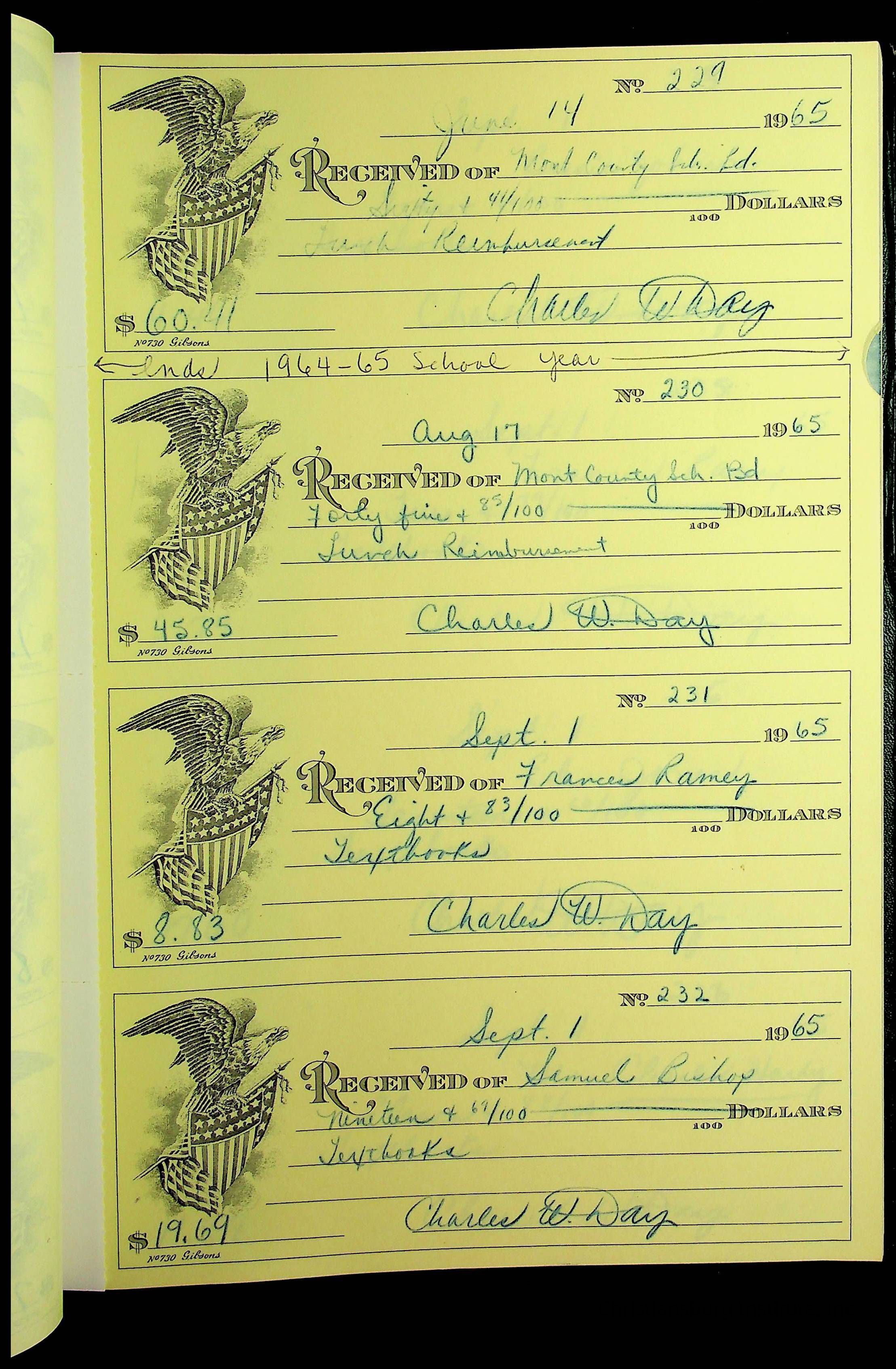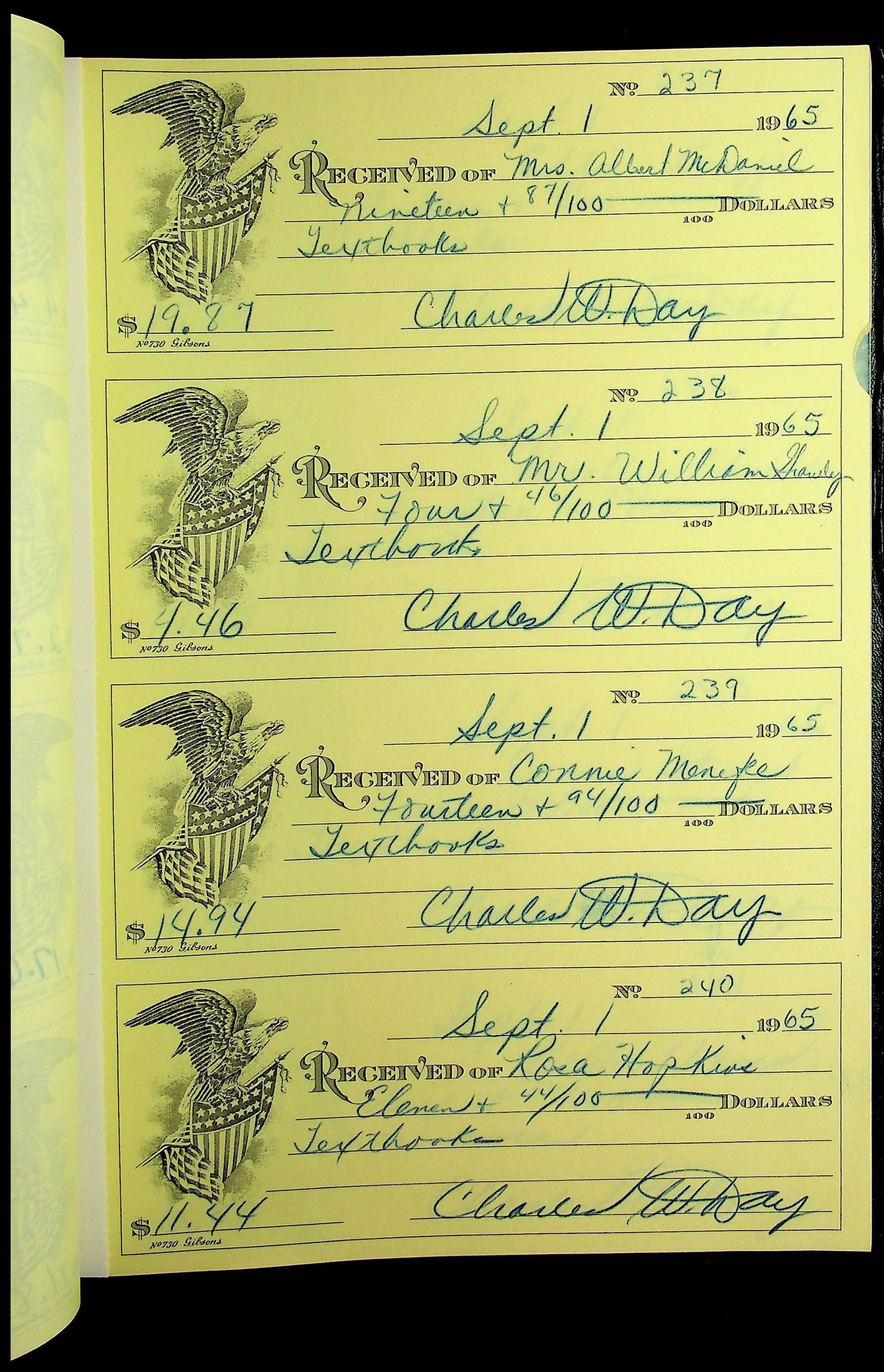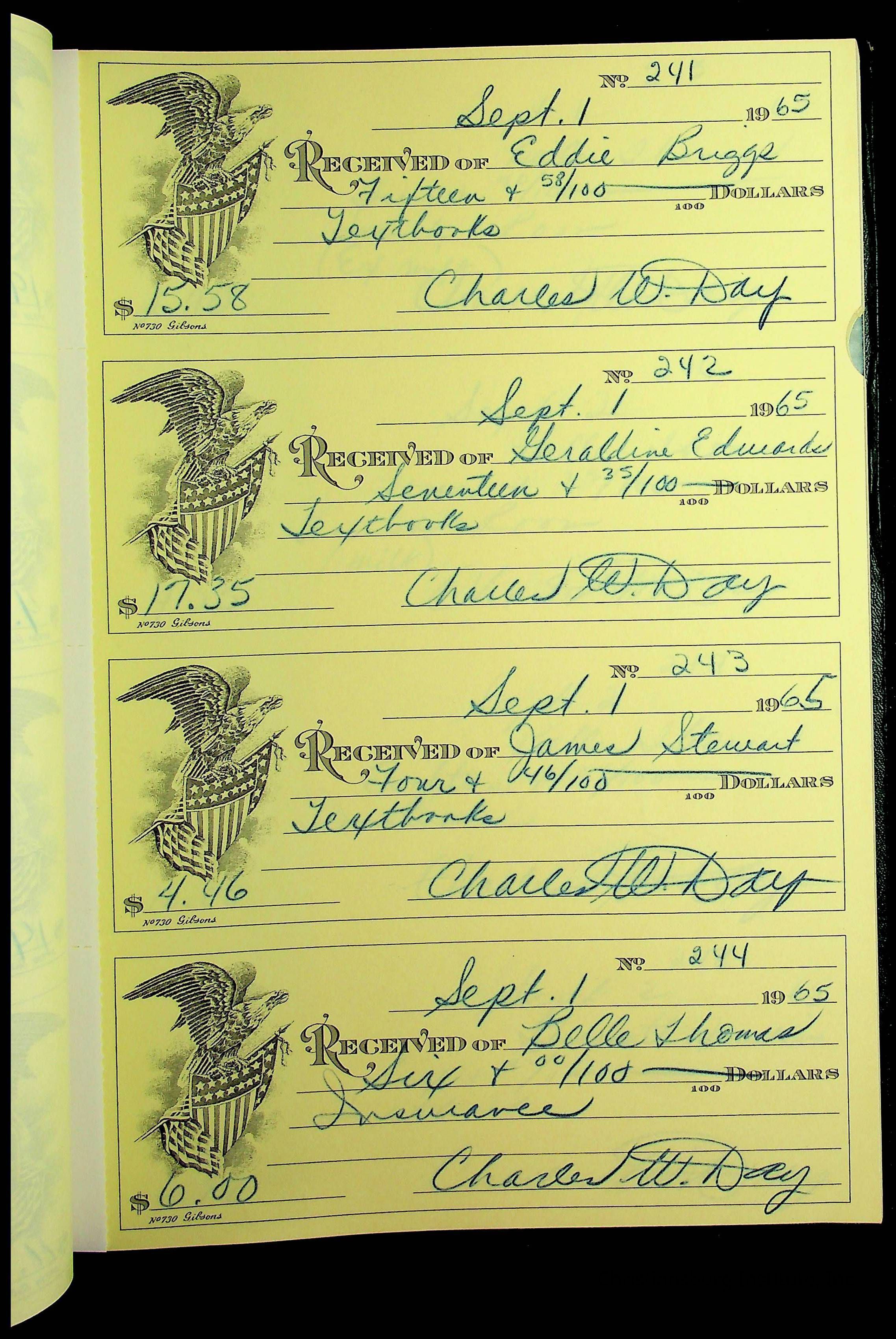 Christiansburg Institute Receipt Book, 1964-1966