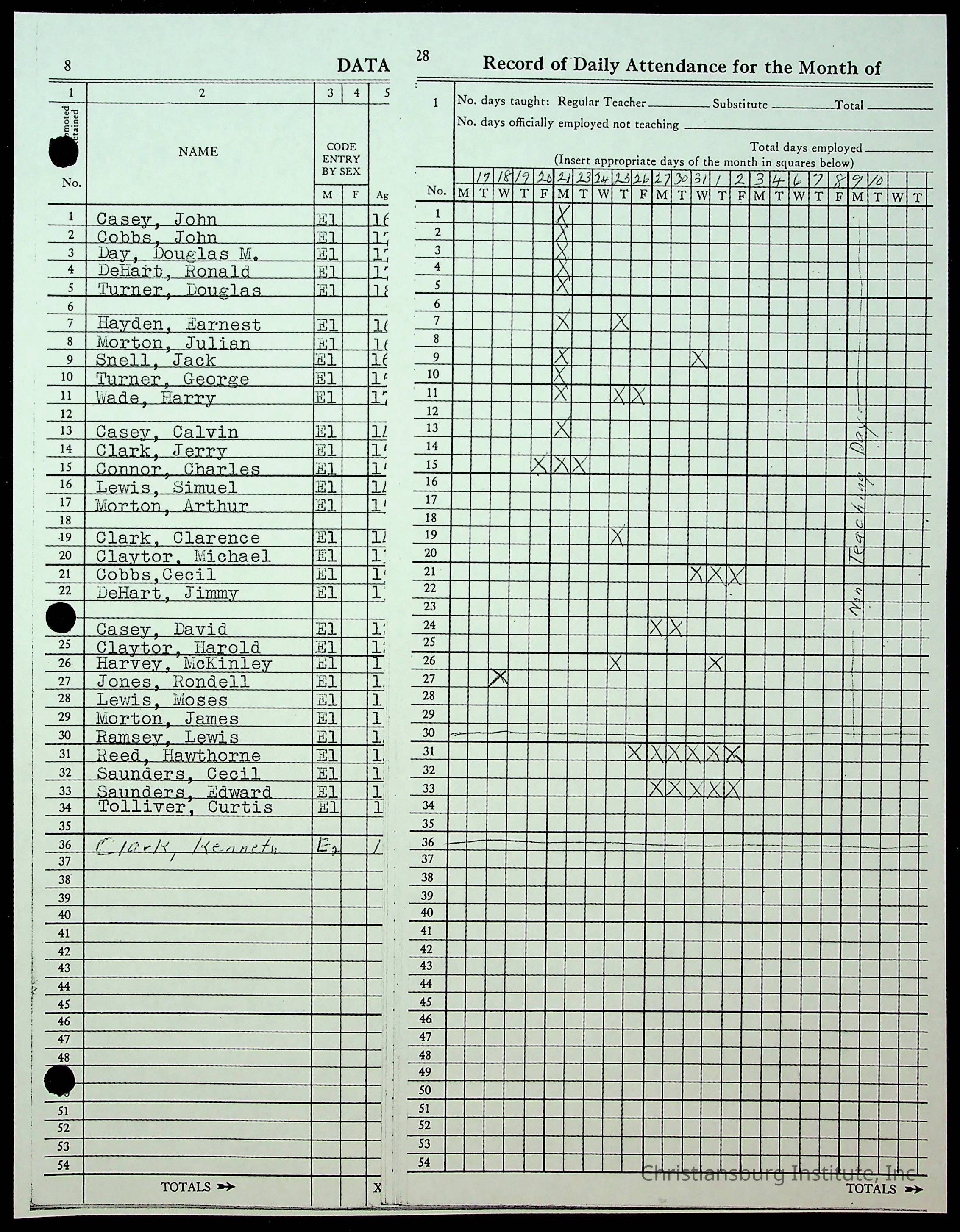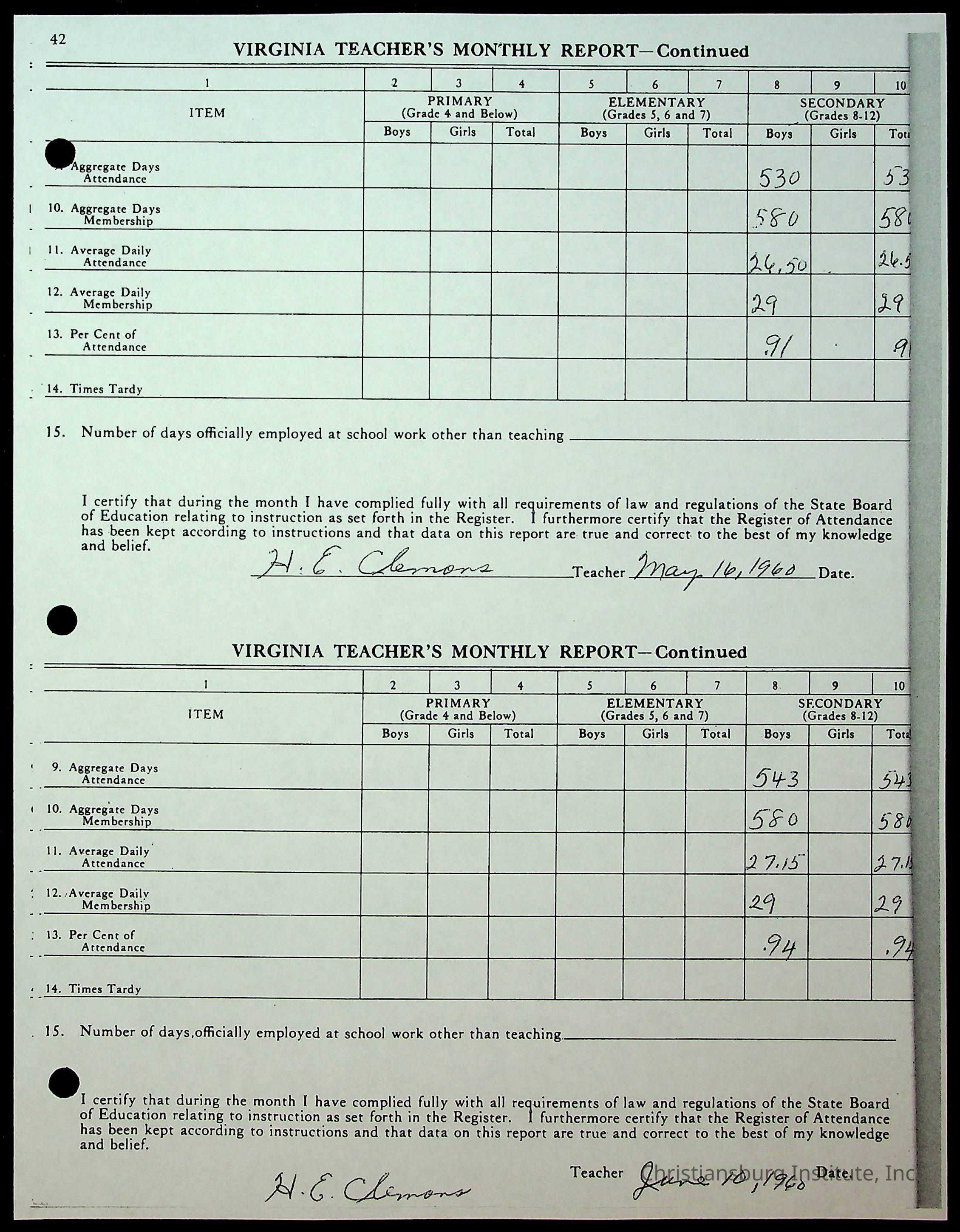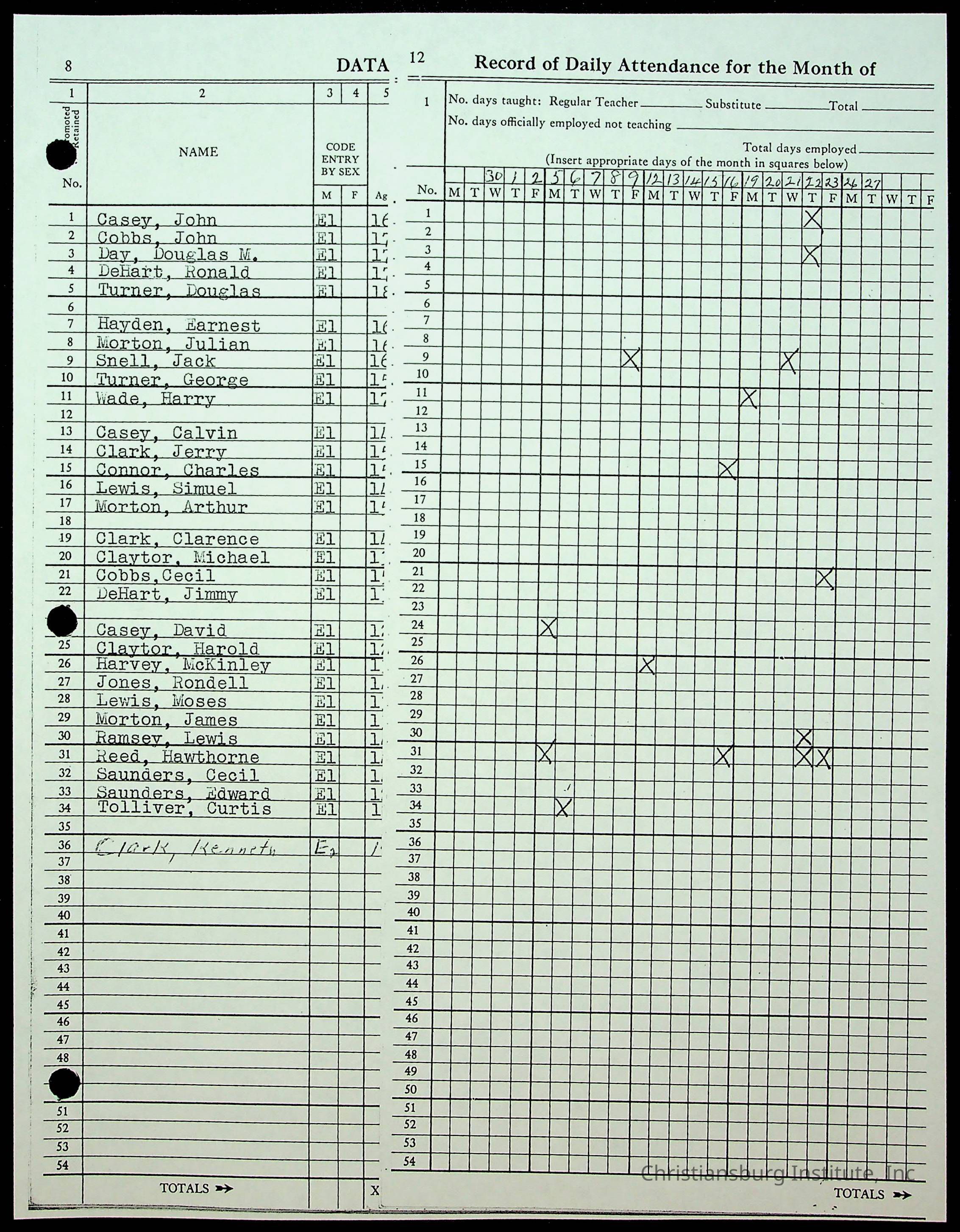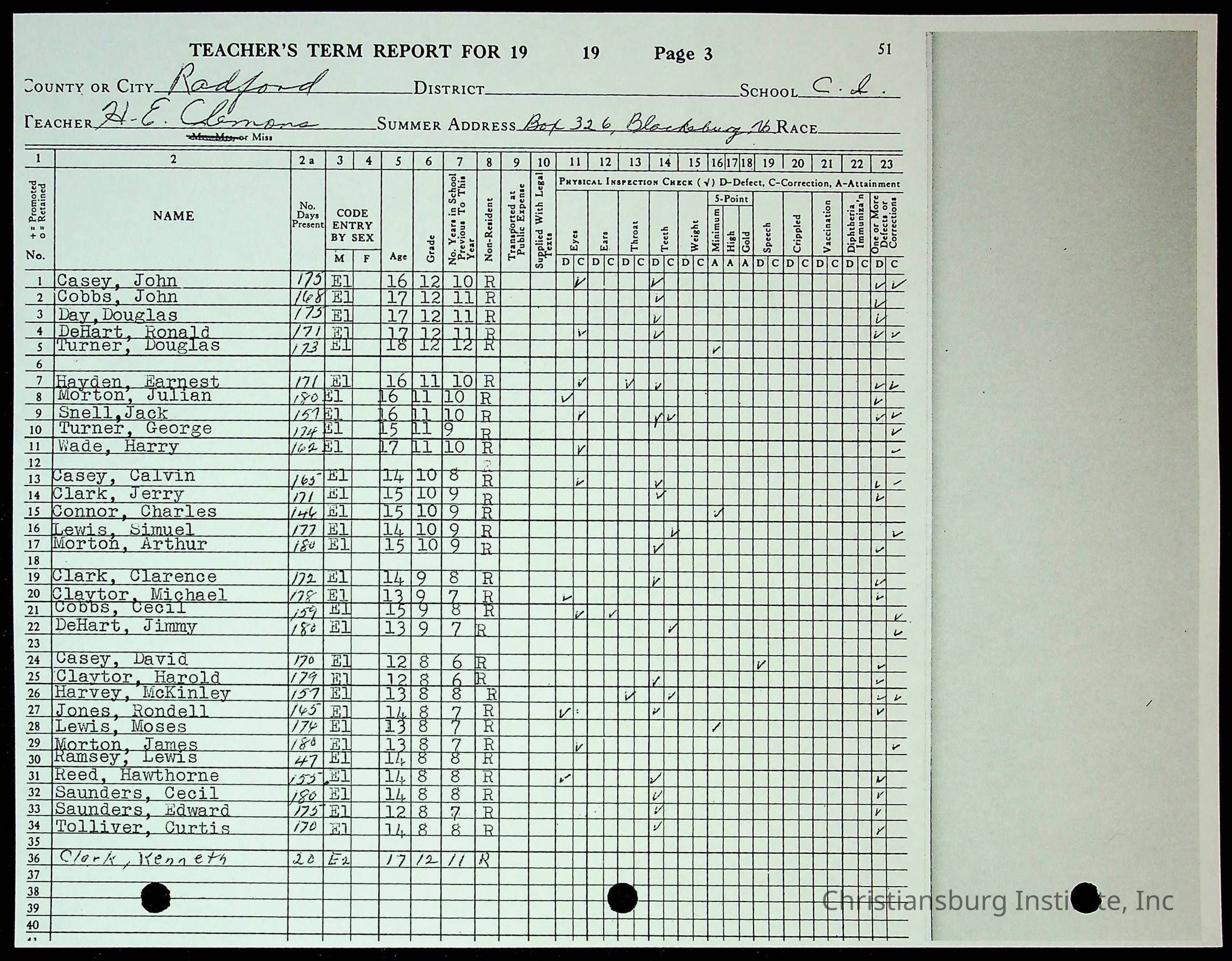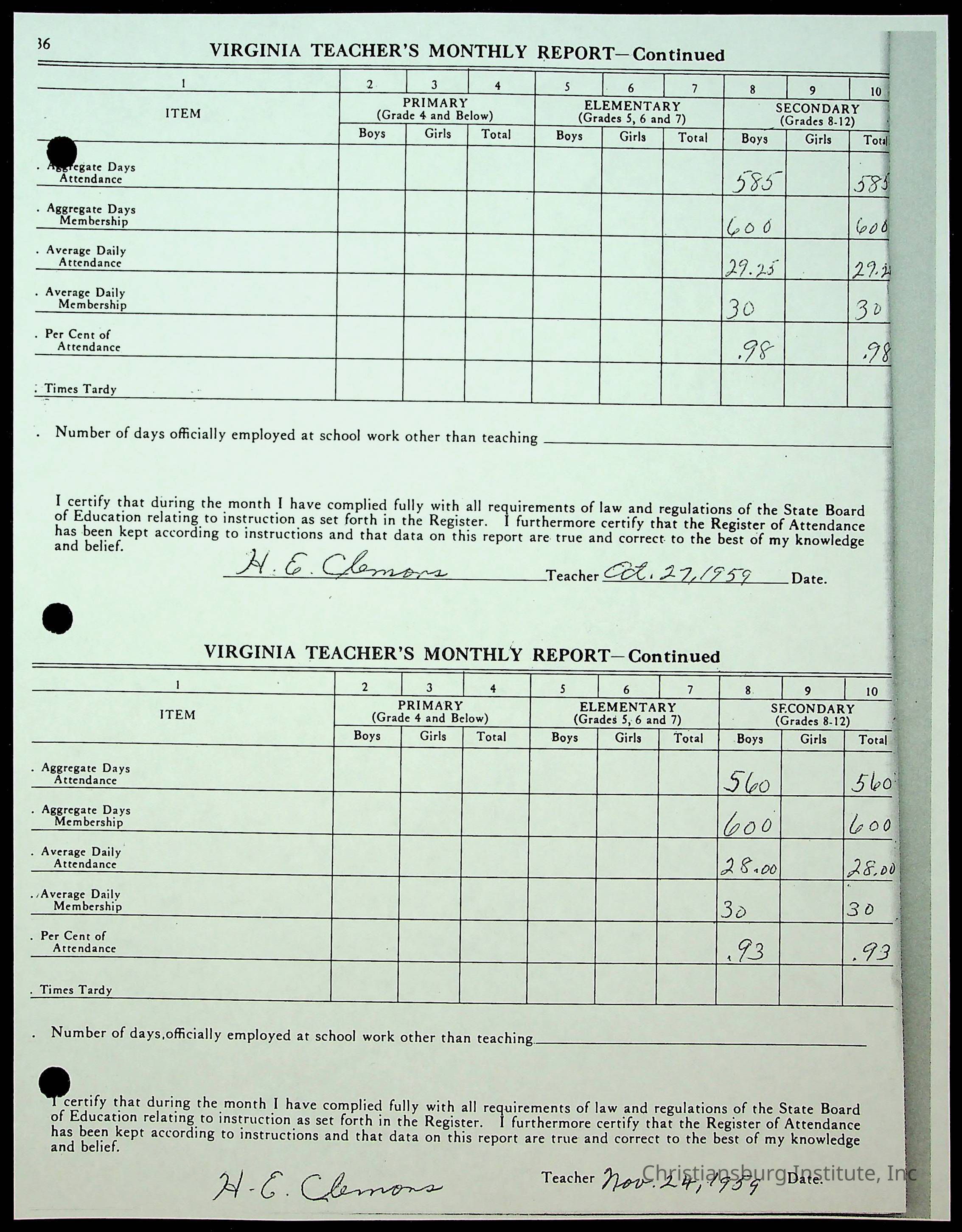Christiansburg Institute Records of H.E. Clemons, 1959-1960