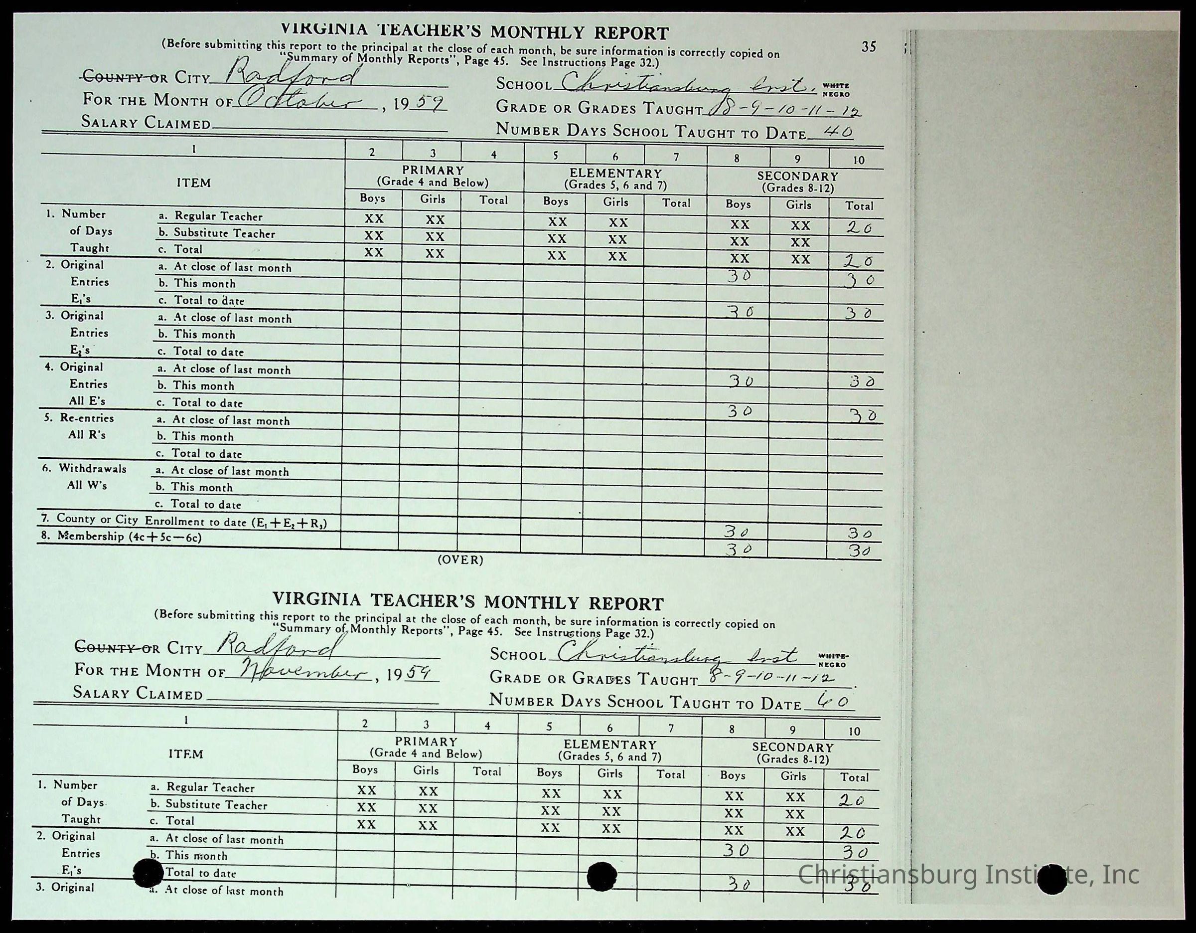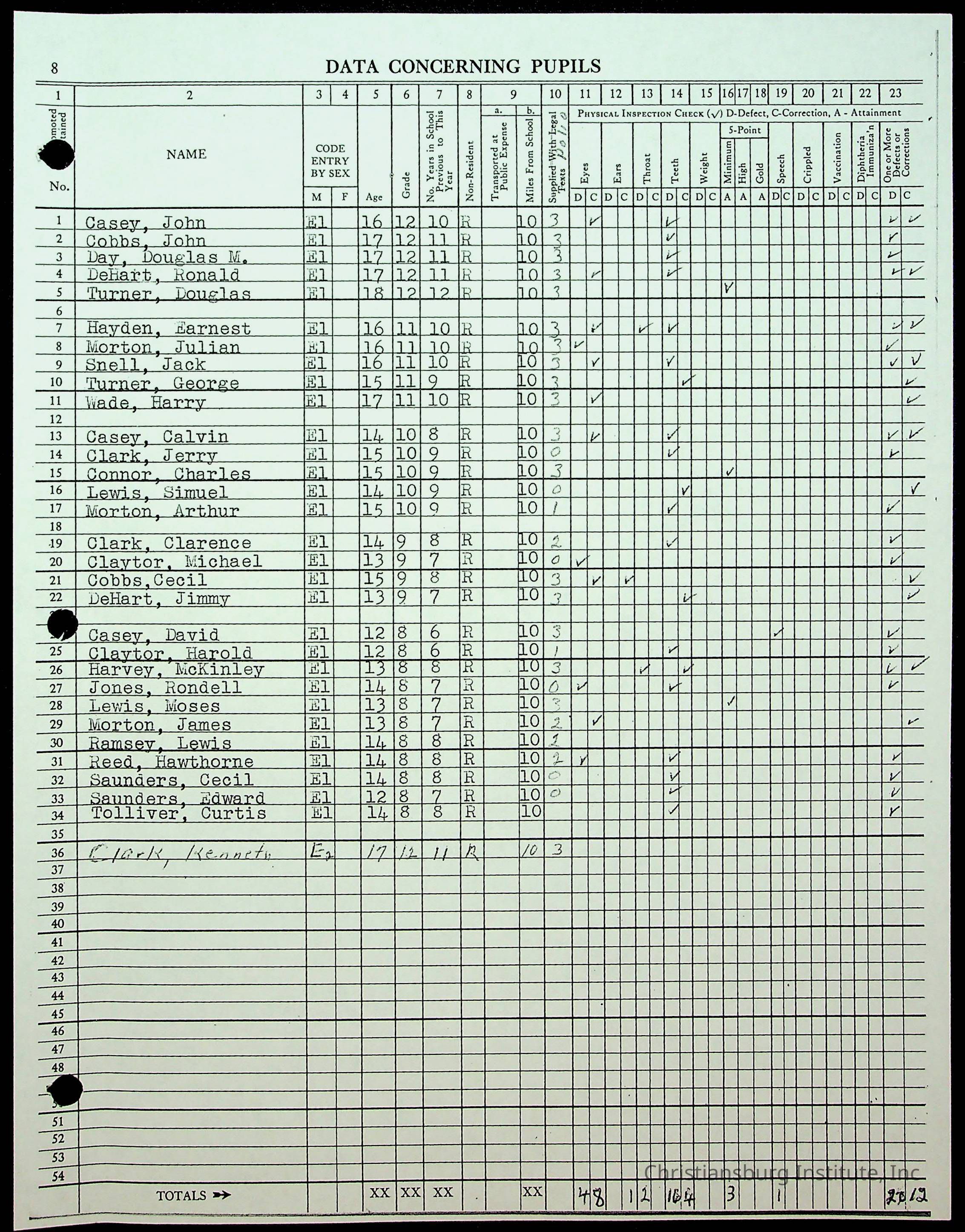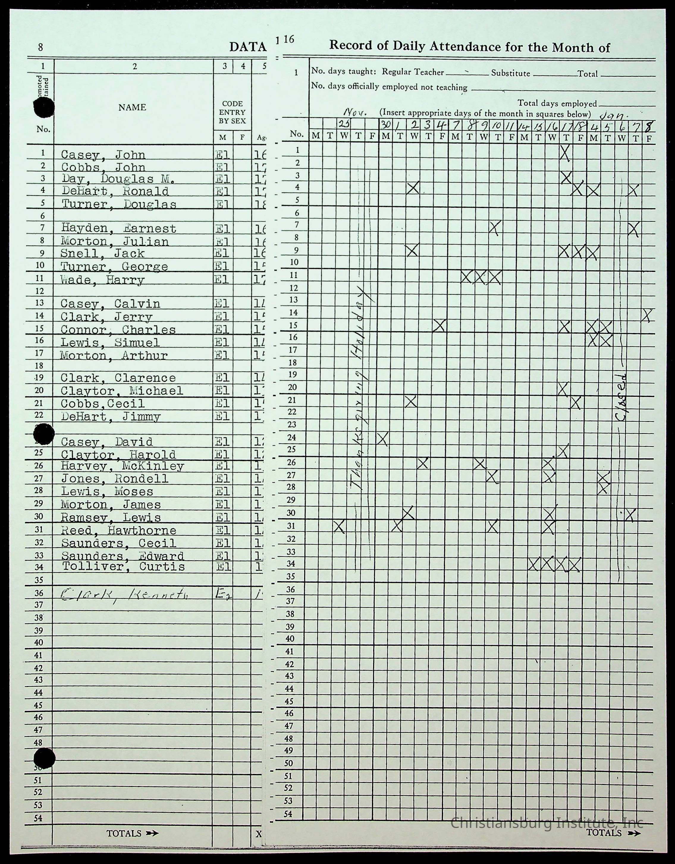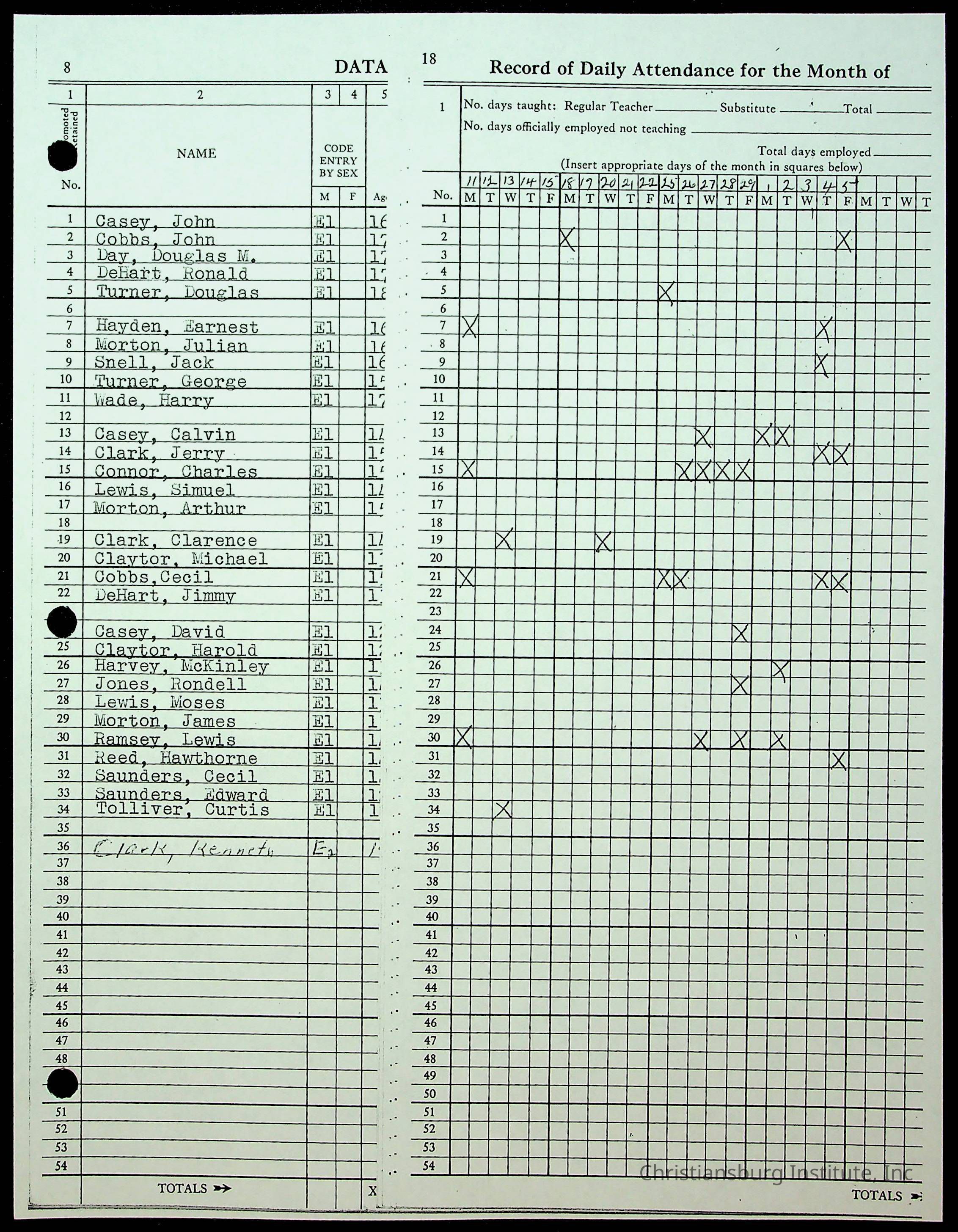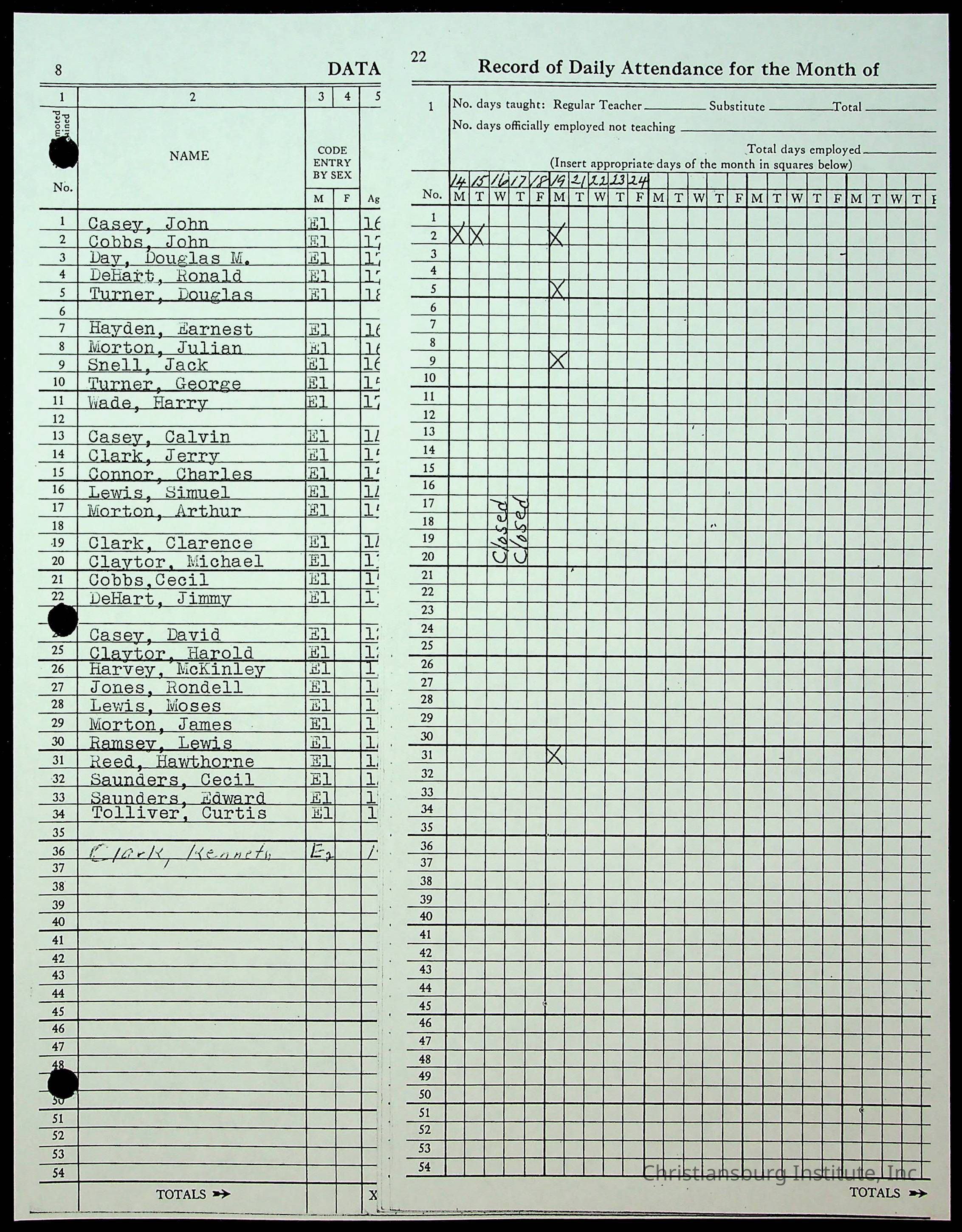 Christiansburg Institute Records of H.E. Clemons, 1959-1960