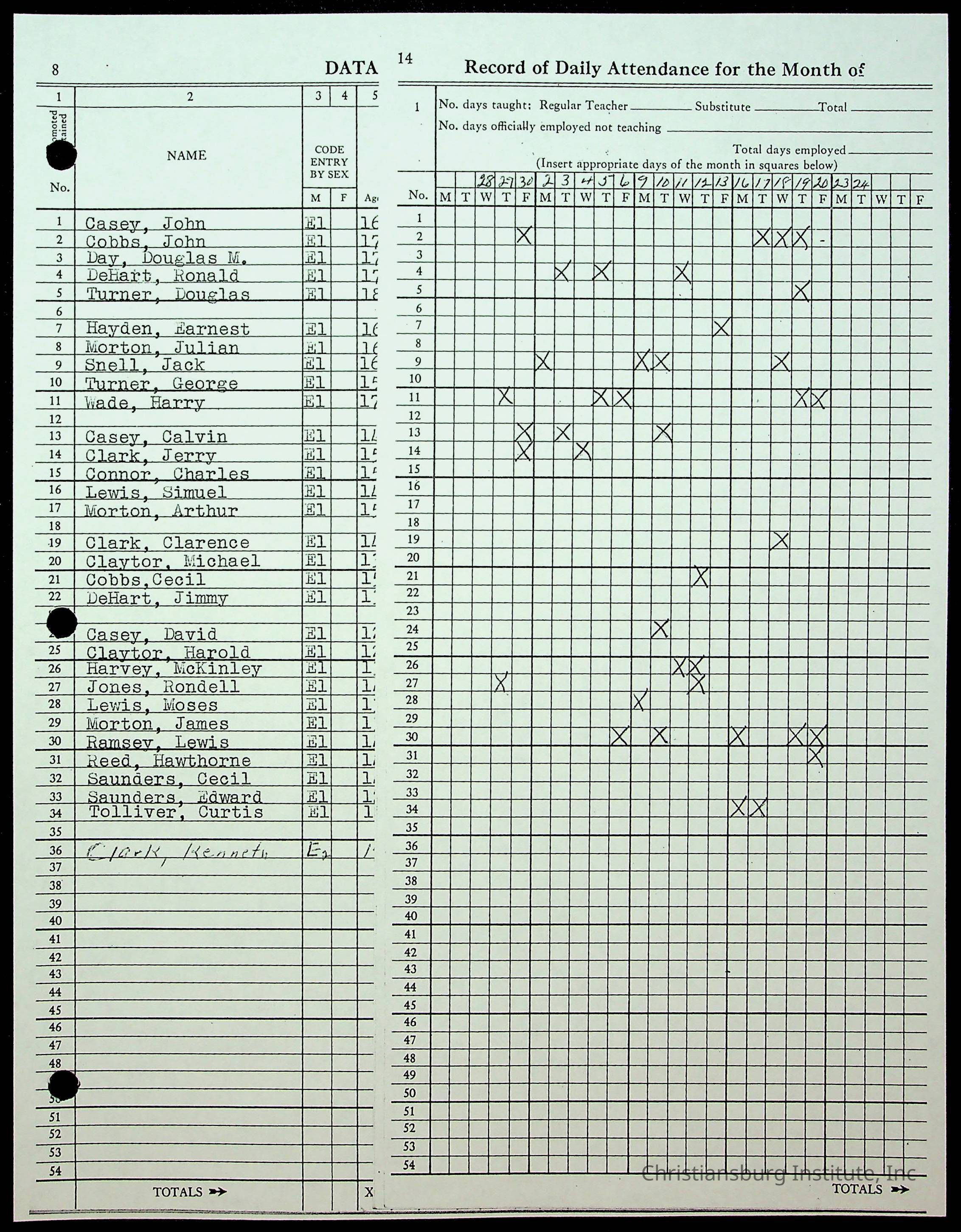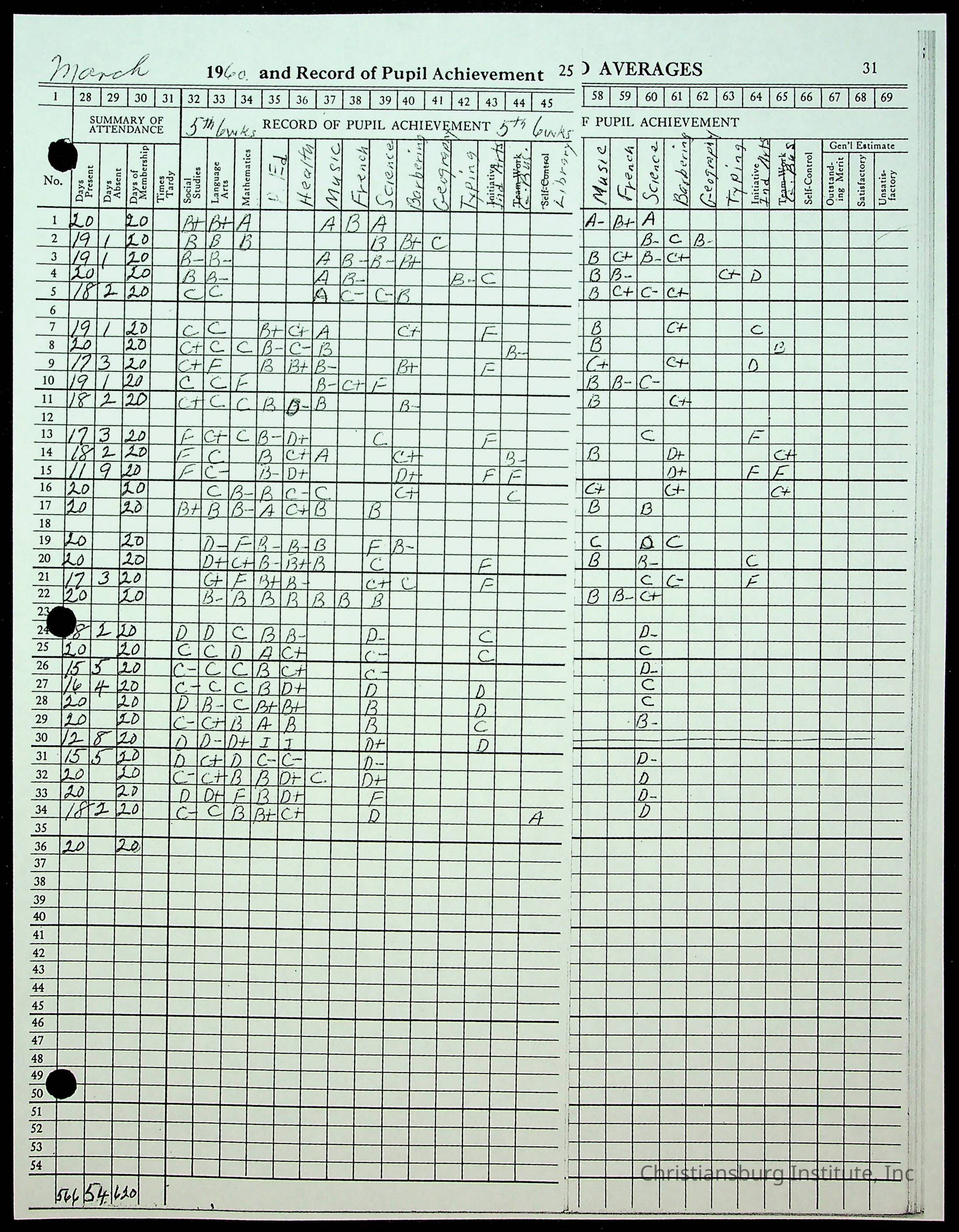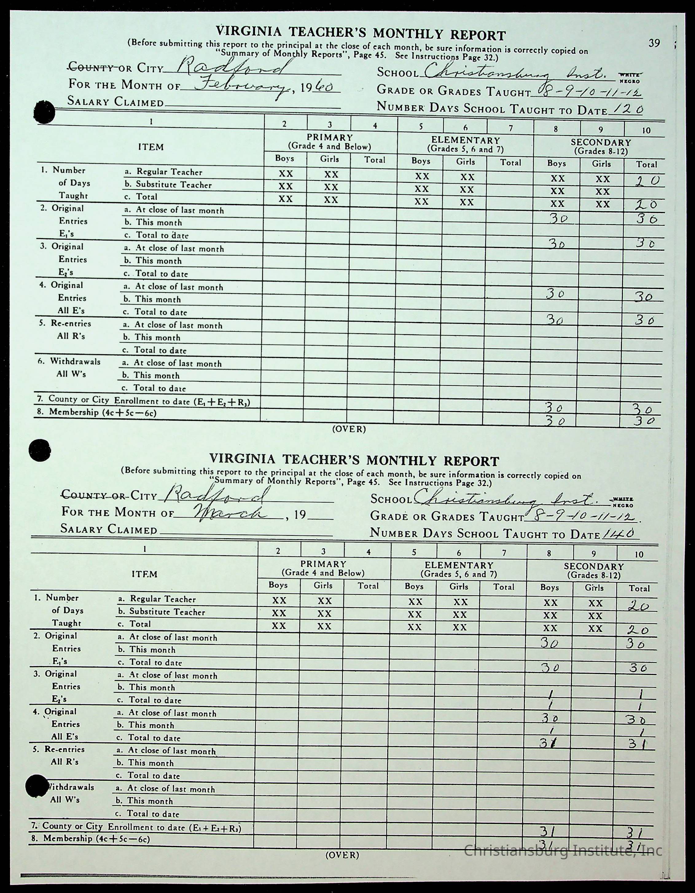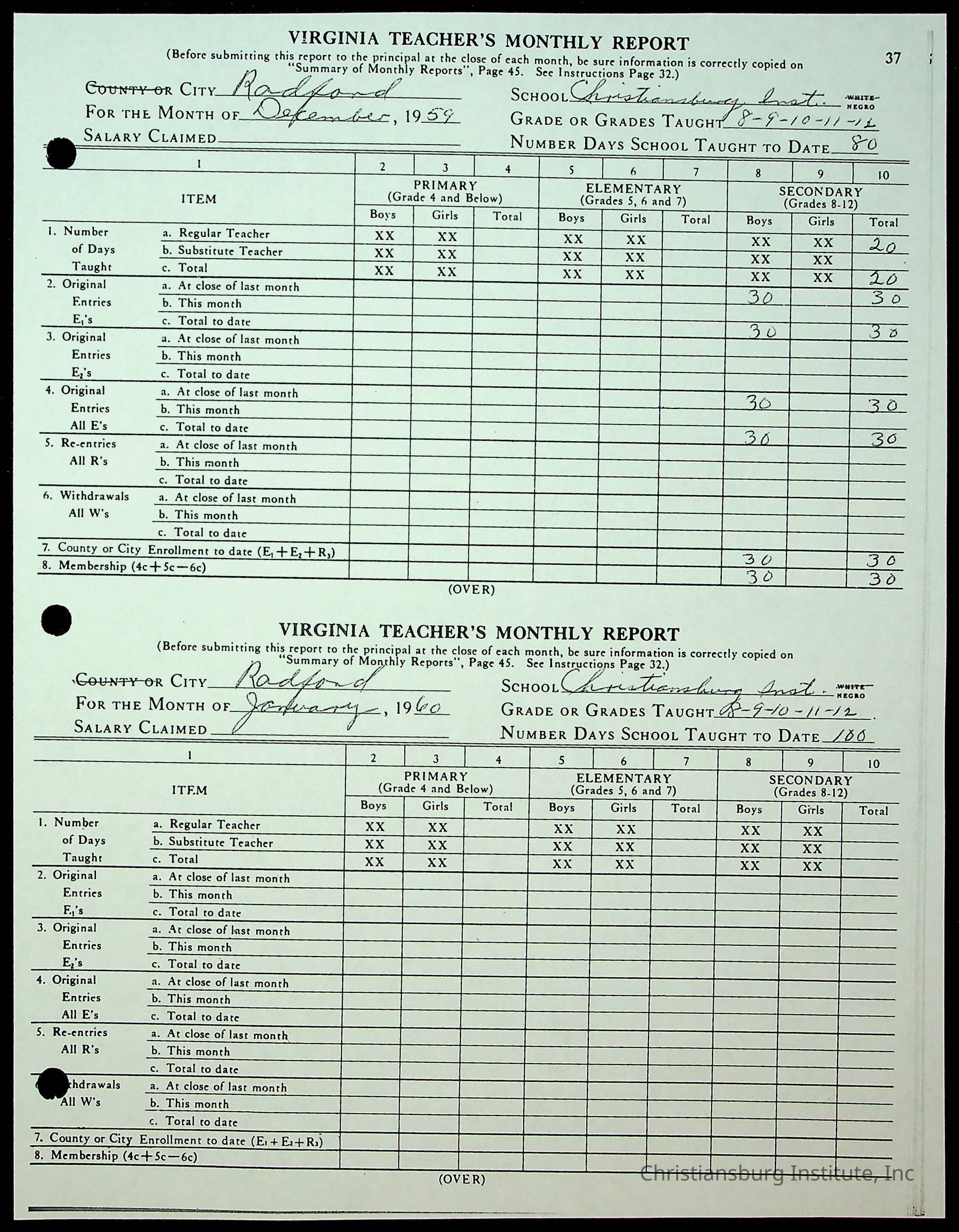Christiansburg Institute Records of H.E. Clemons, 1959-1960