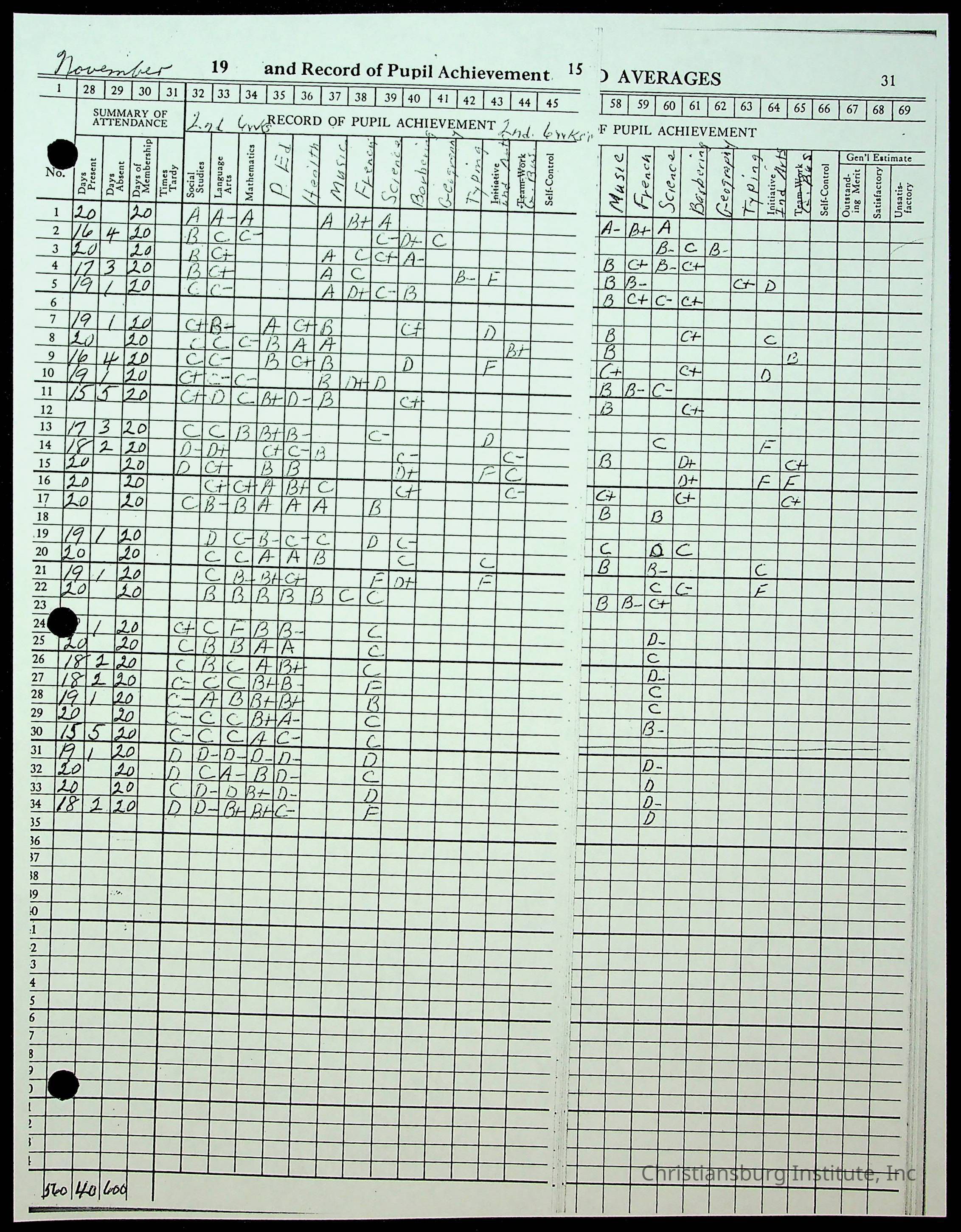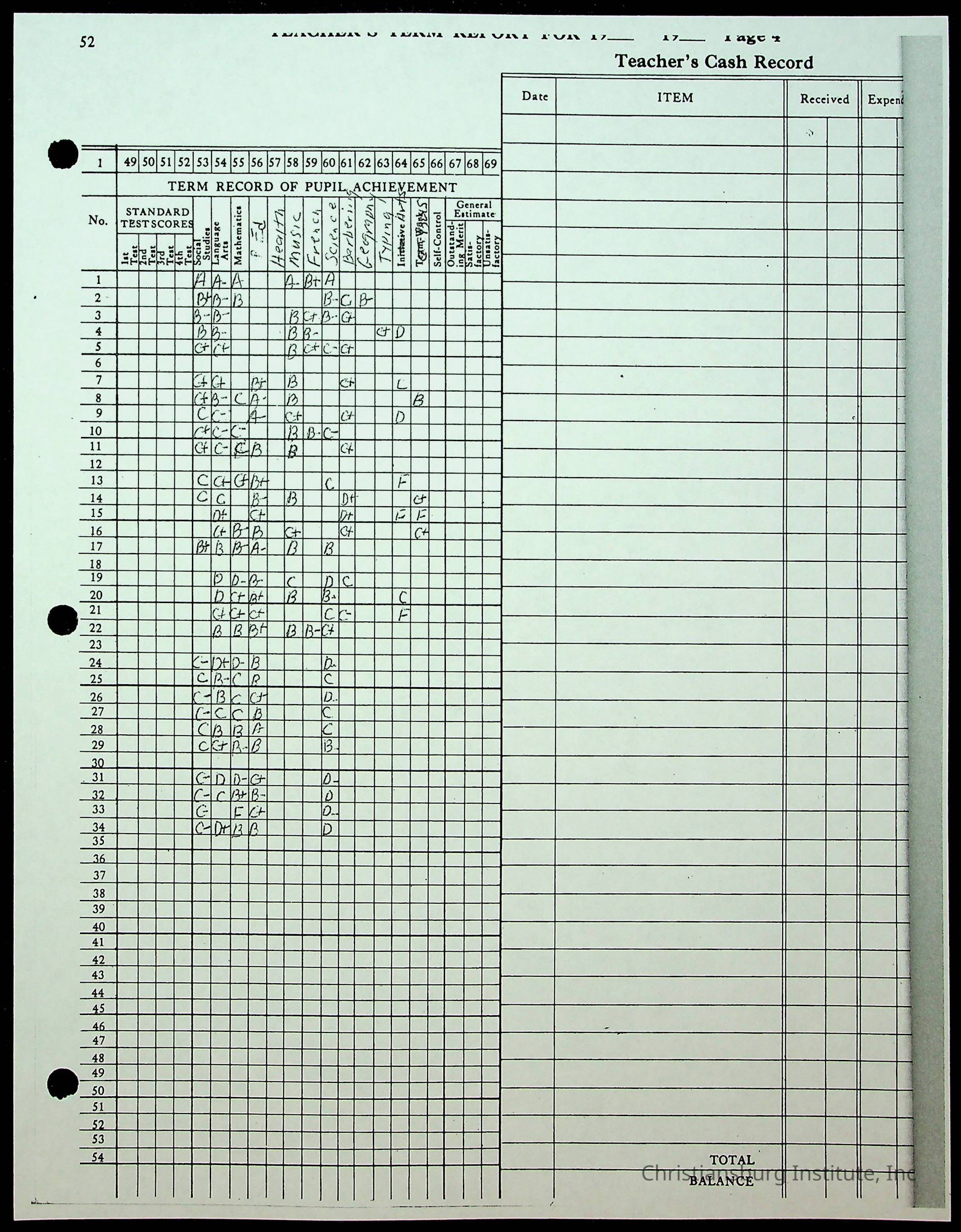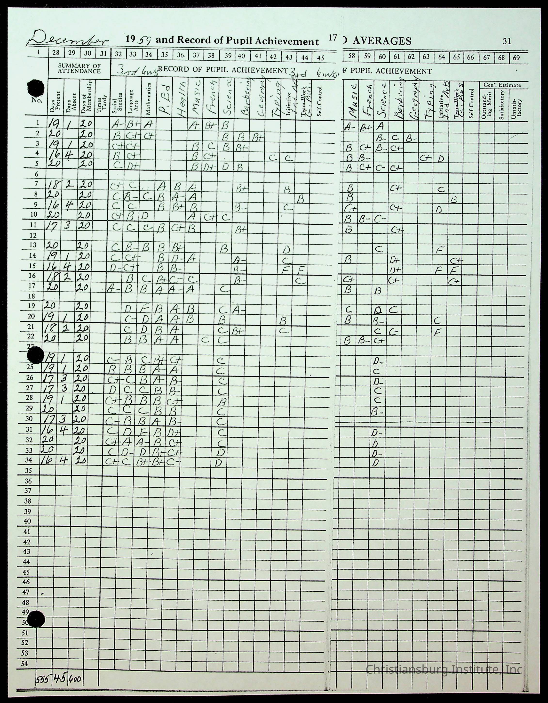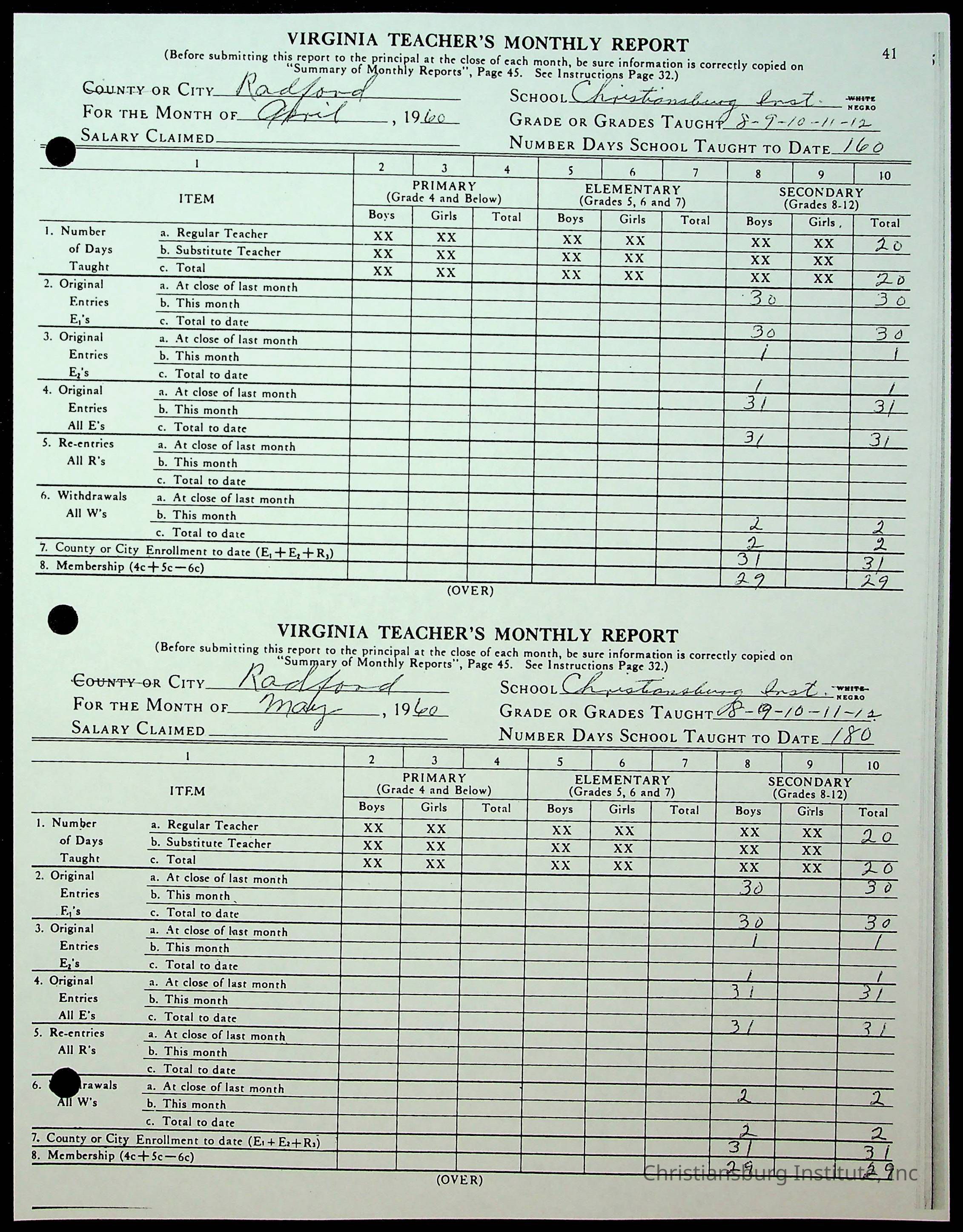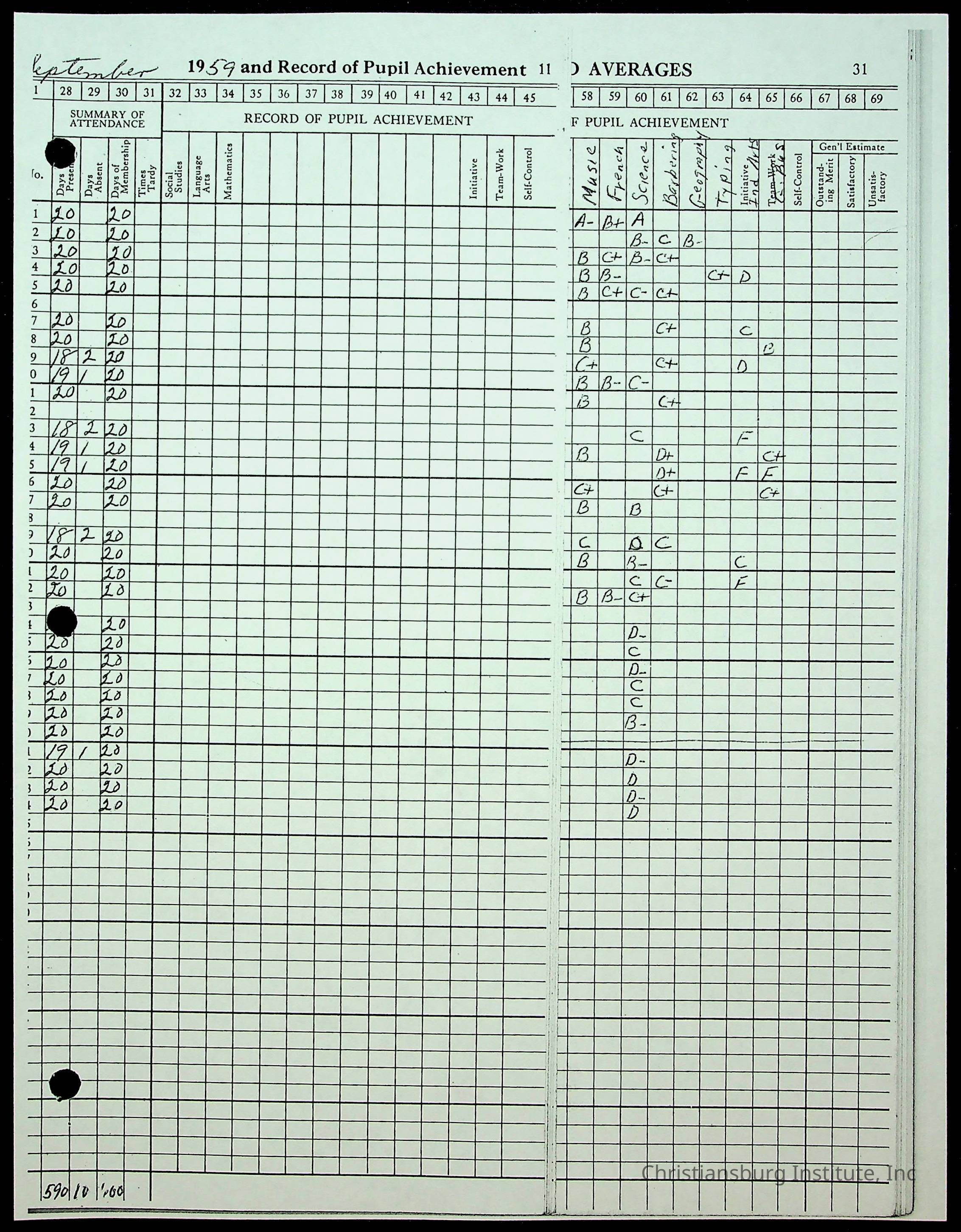 Christiansburg Institute Records of H.E. Clemons, 1959-1960