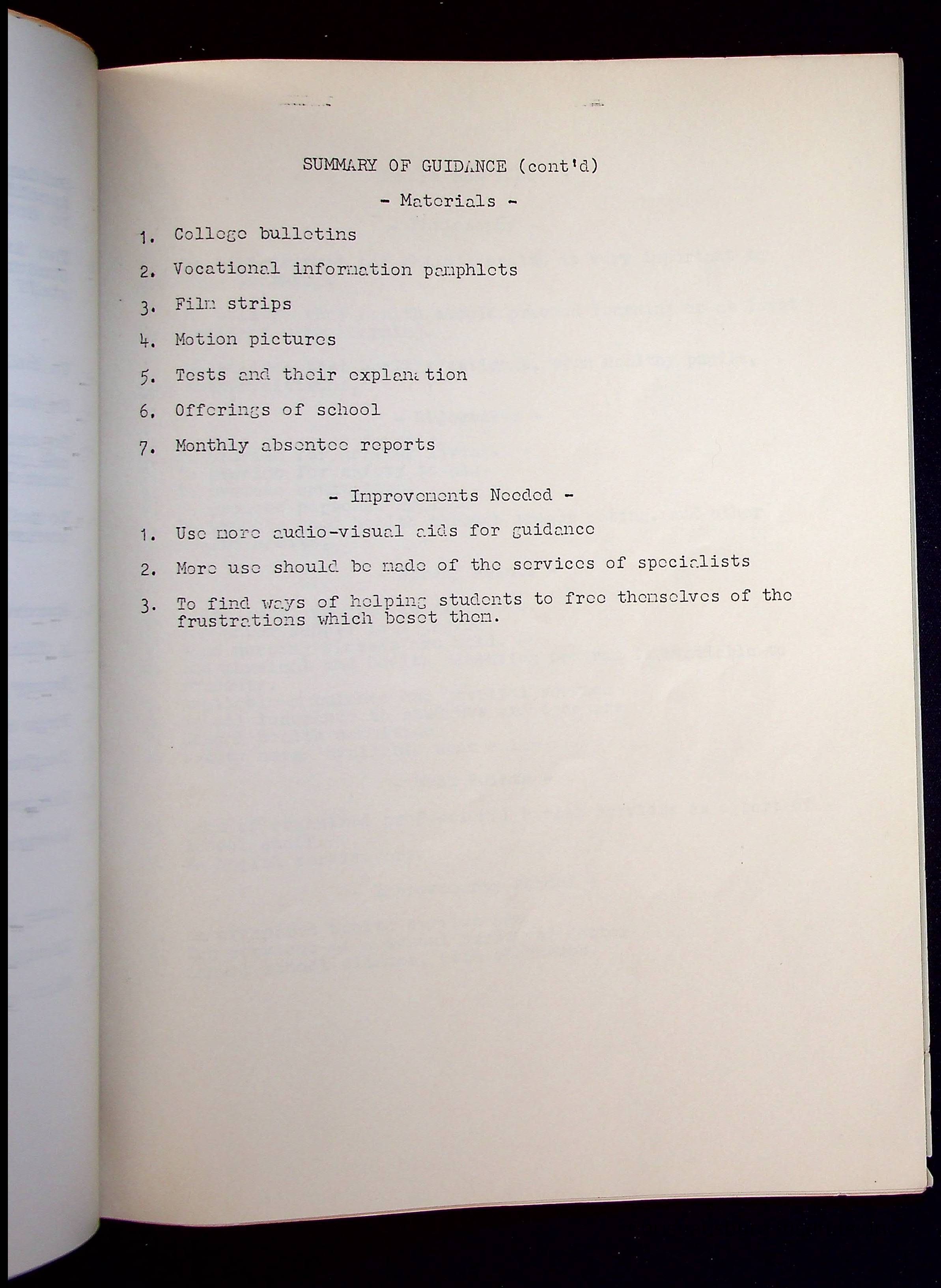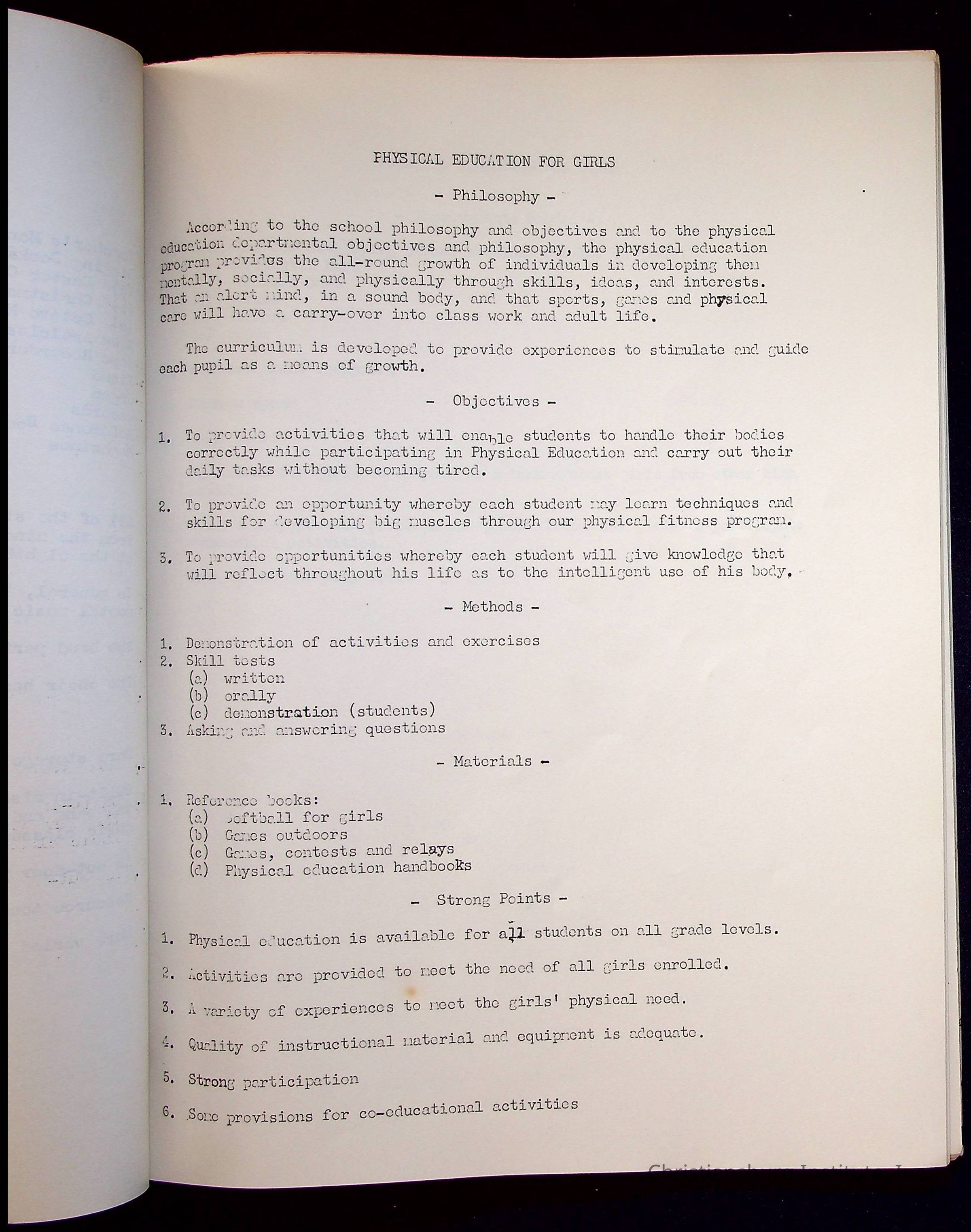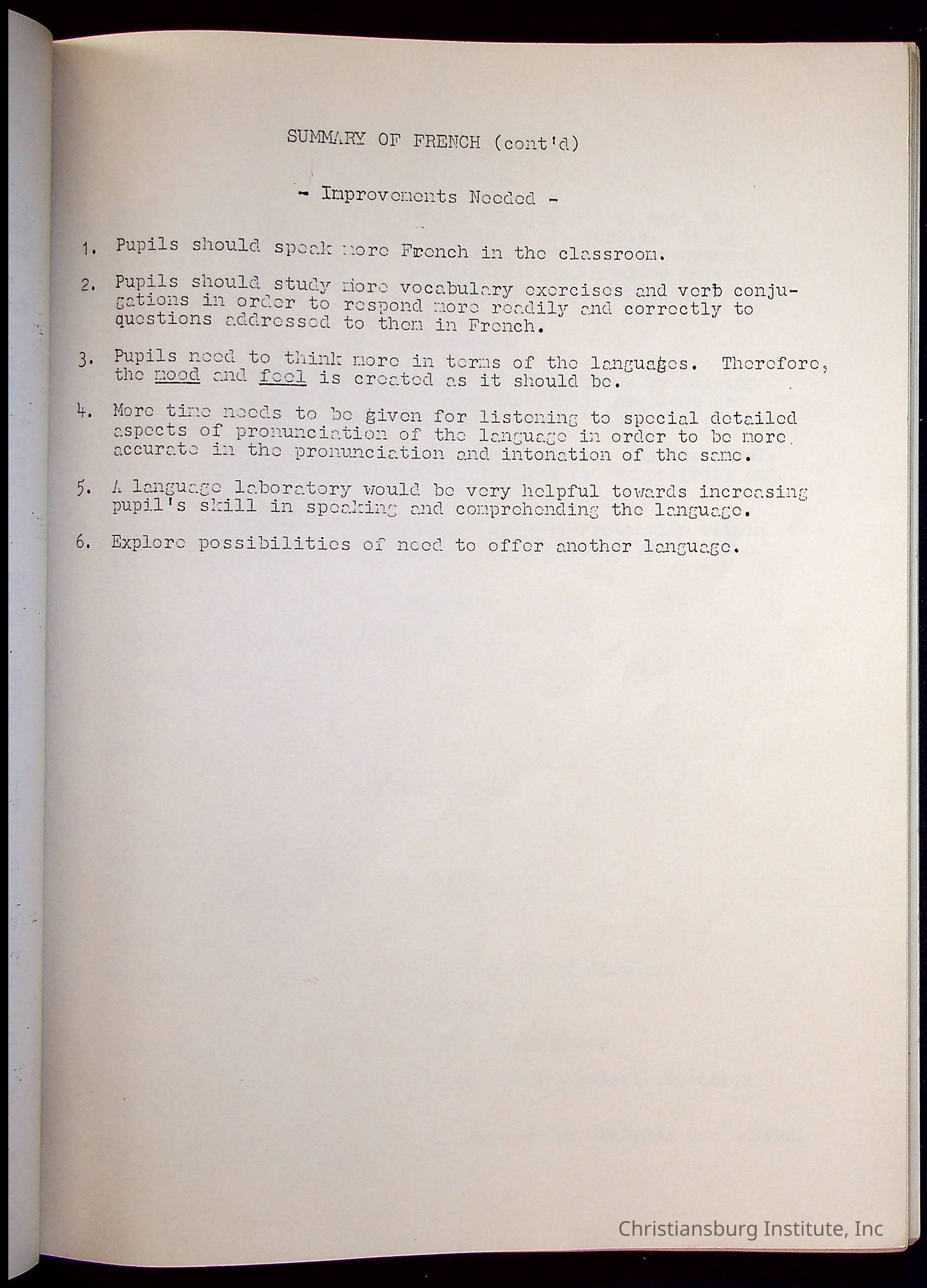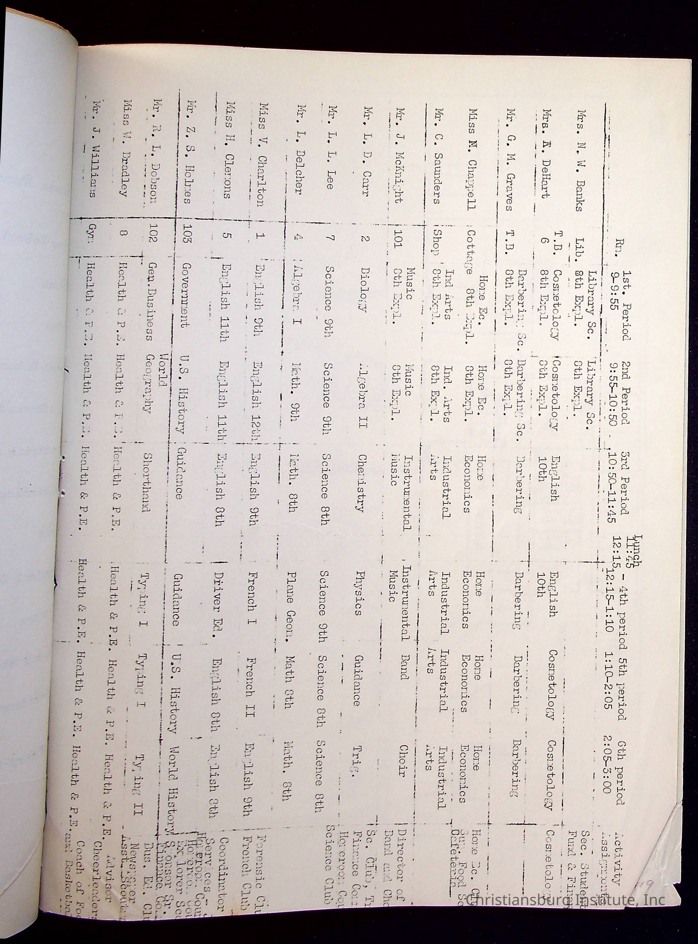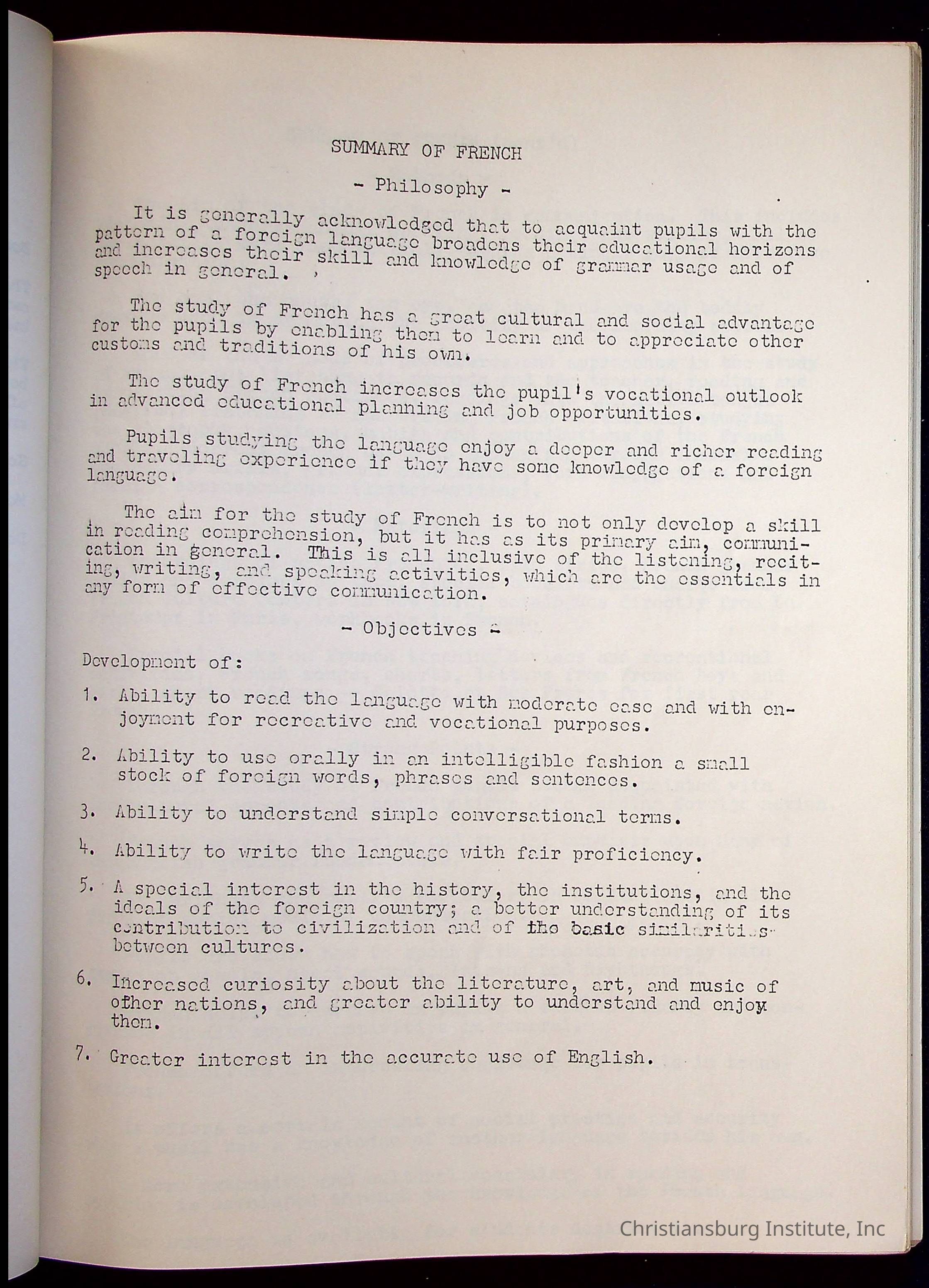 Christiansburg Institute Self Evaluation Summaries, this document was prepared for the Visiting Committee, dated April 28-30 and May 1, 1963.Creator