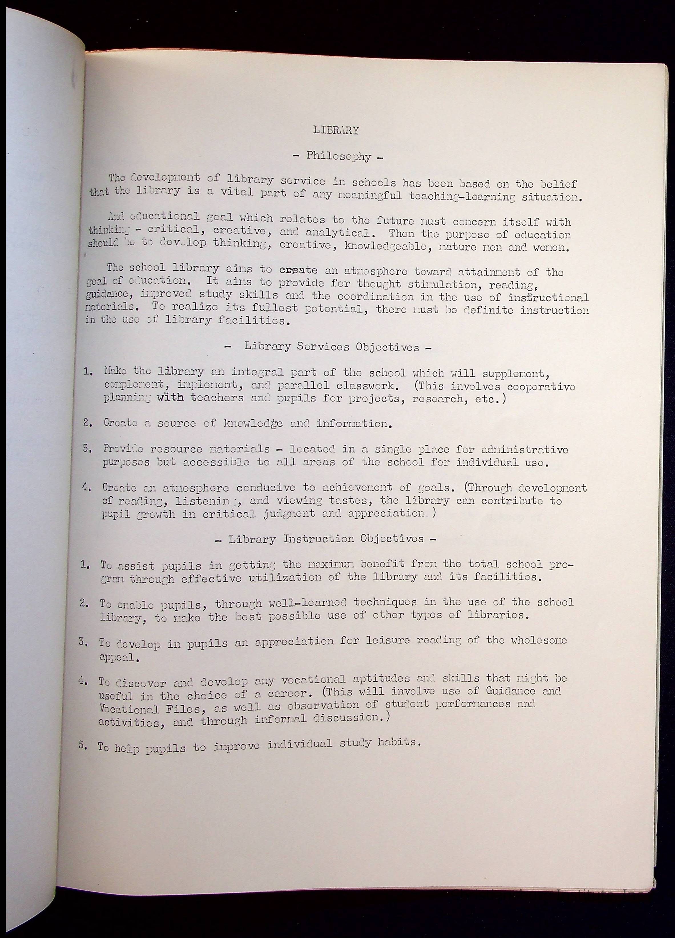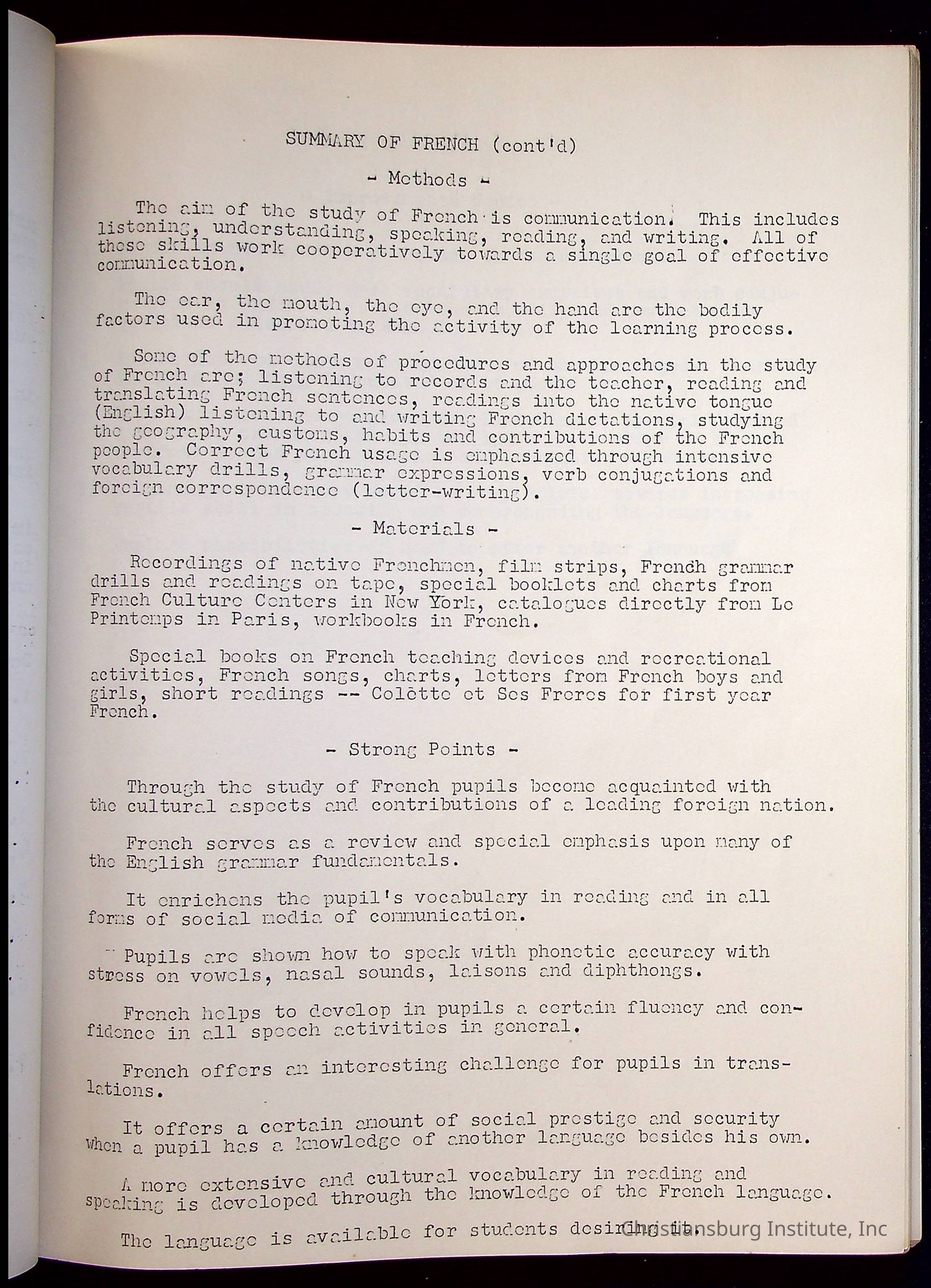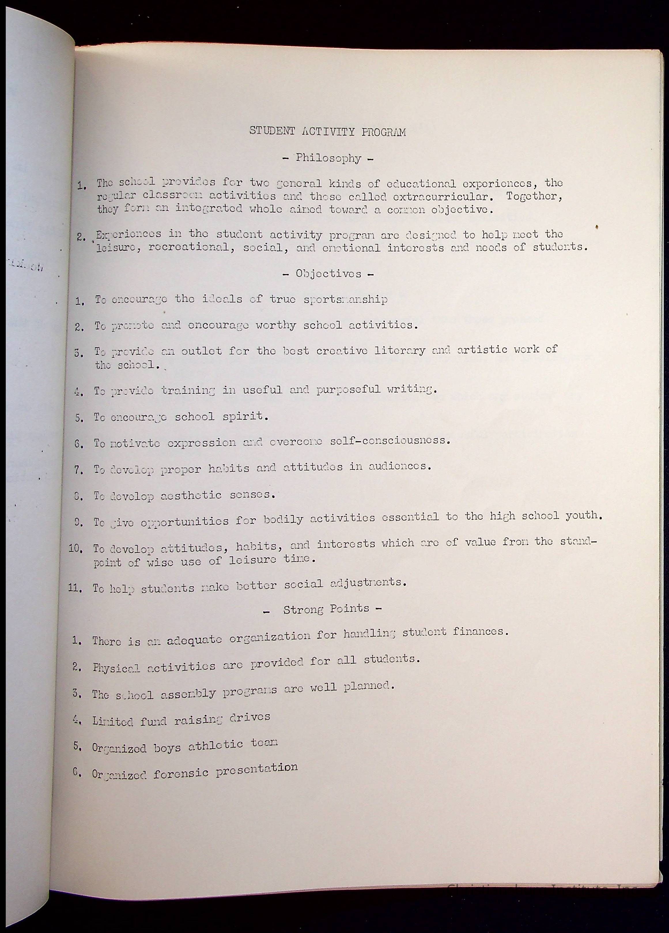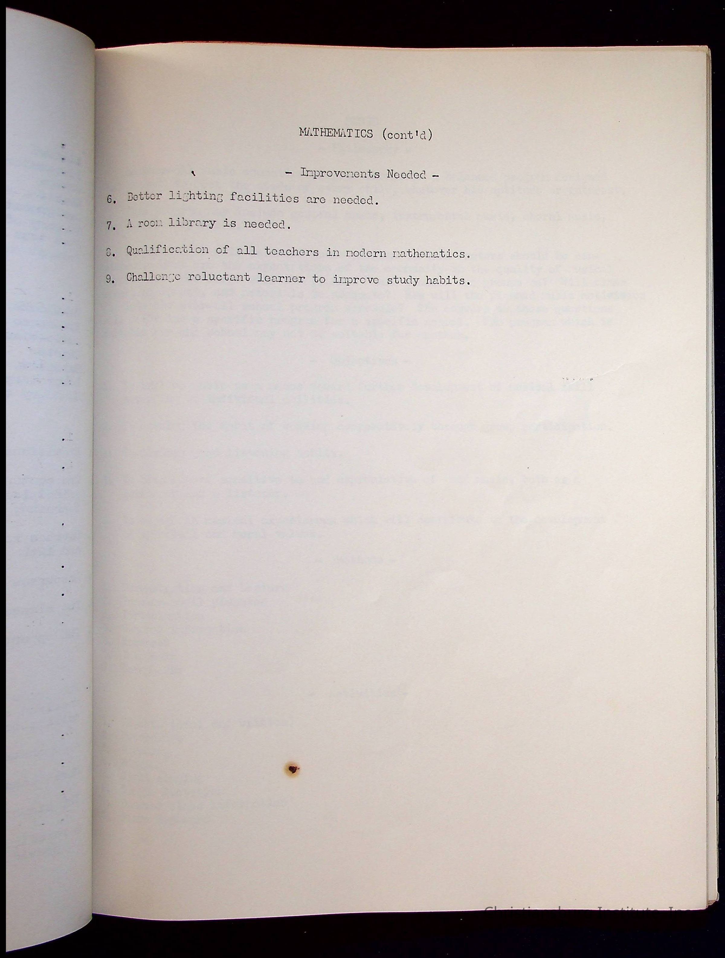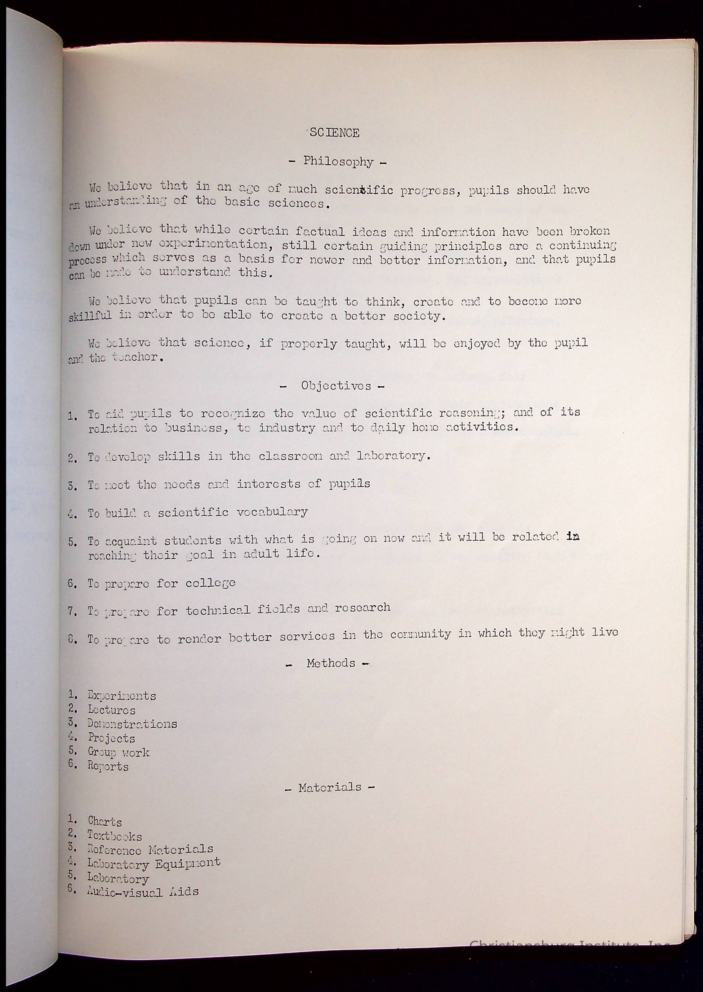 Christiansburg Institute Self Evaluation Summaries, this document was prepared for the Visiting Committee, dated April 28-30 and May 1, 1963.Creator