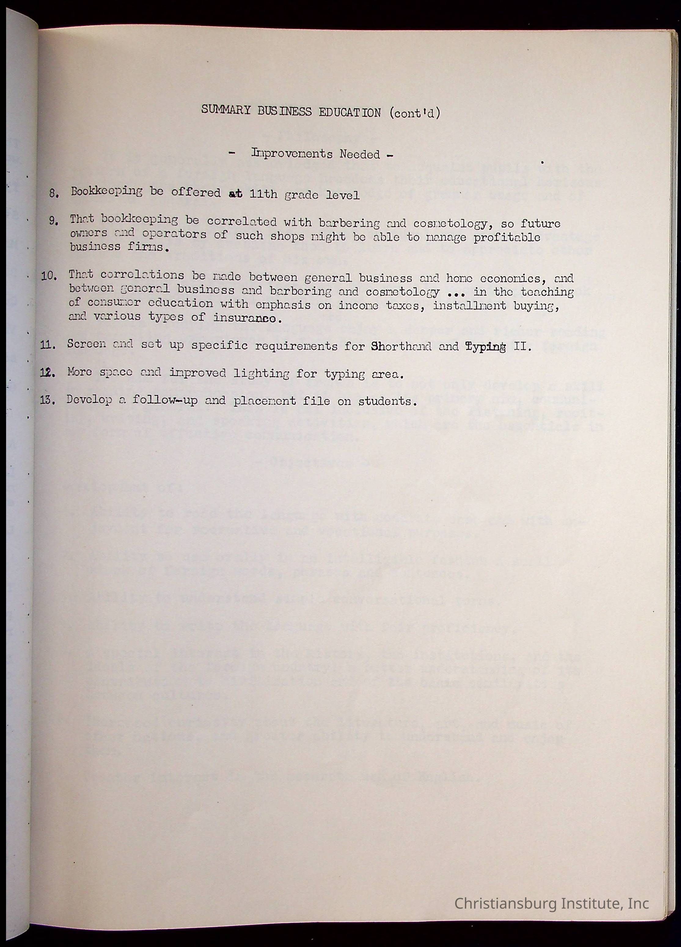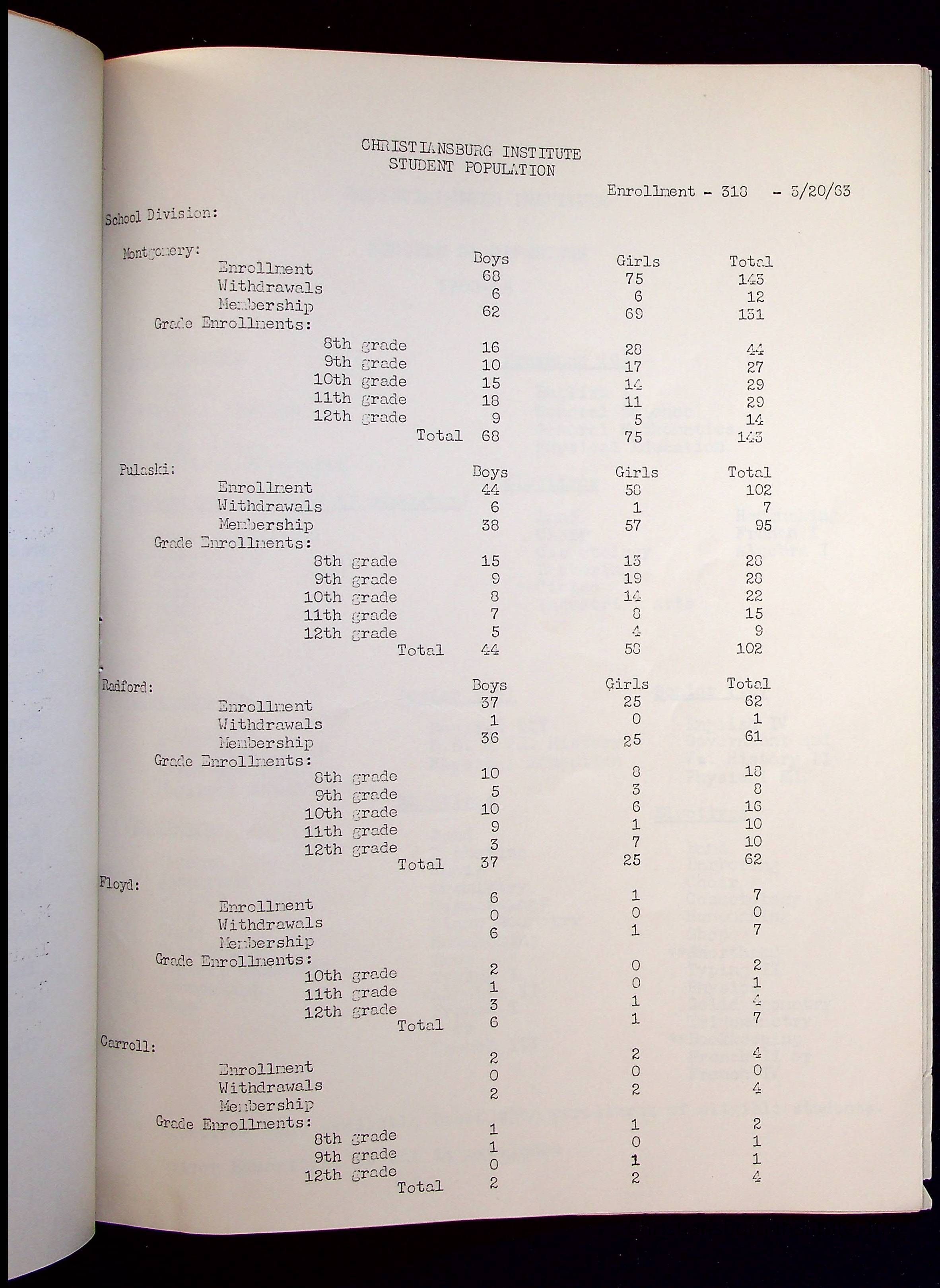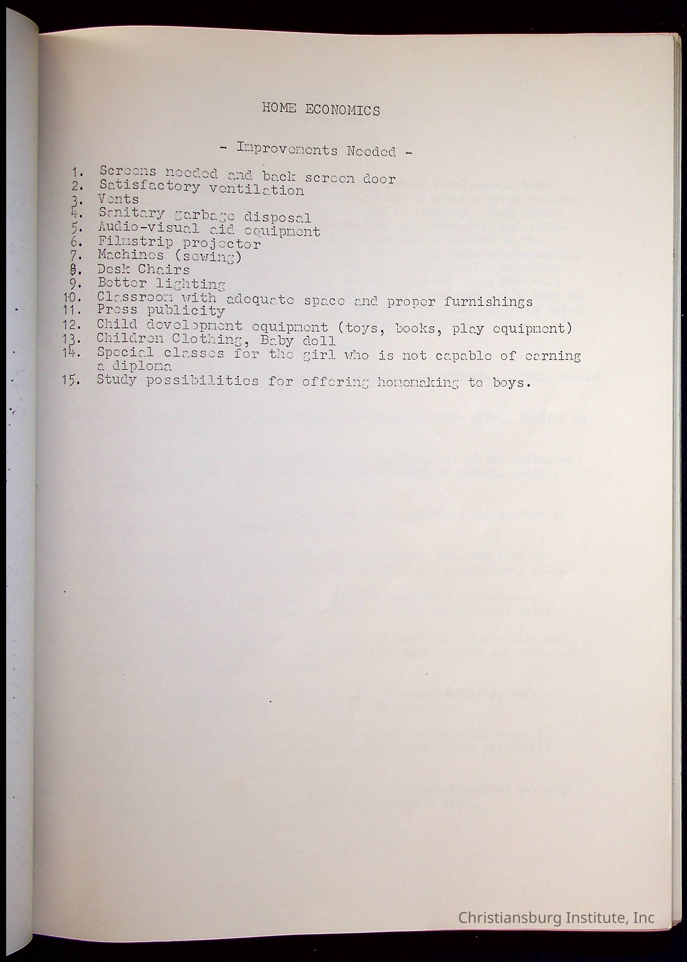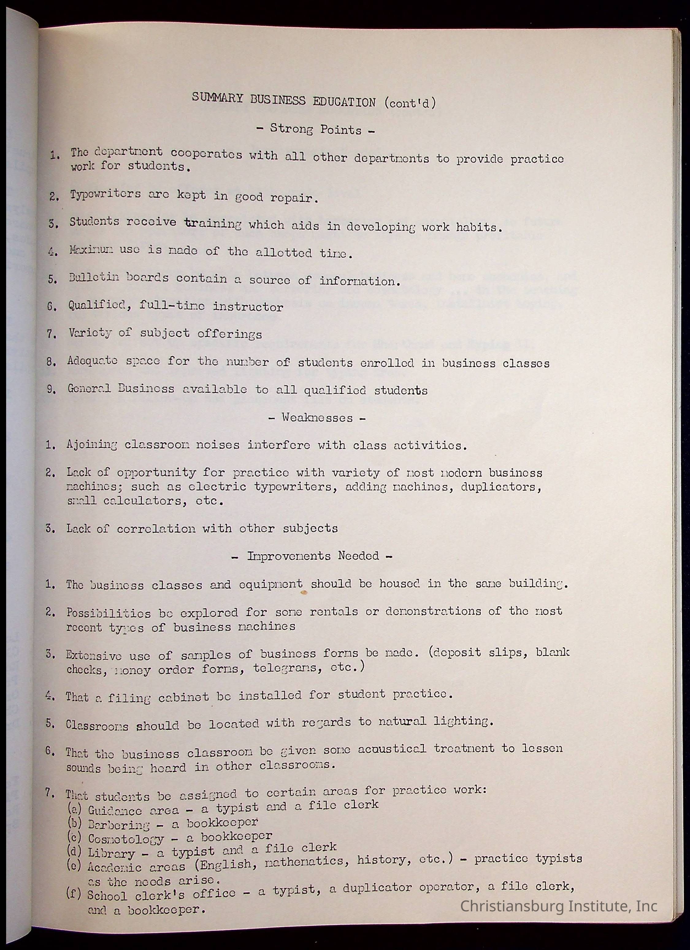 Christiansburg Institute Self Evaluation Summaries, 1963Description