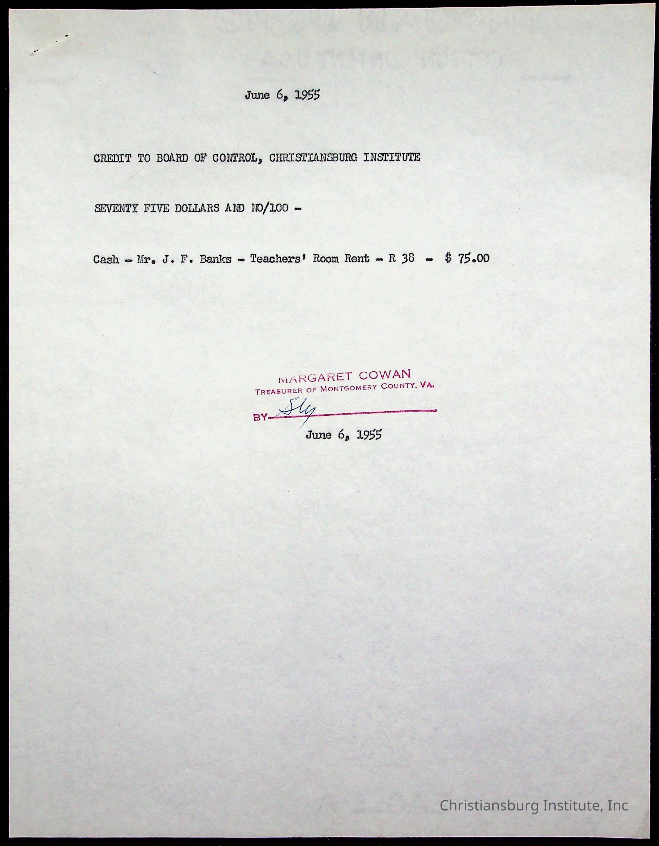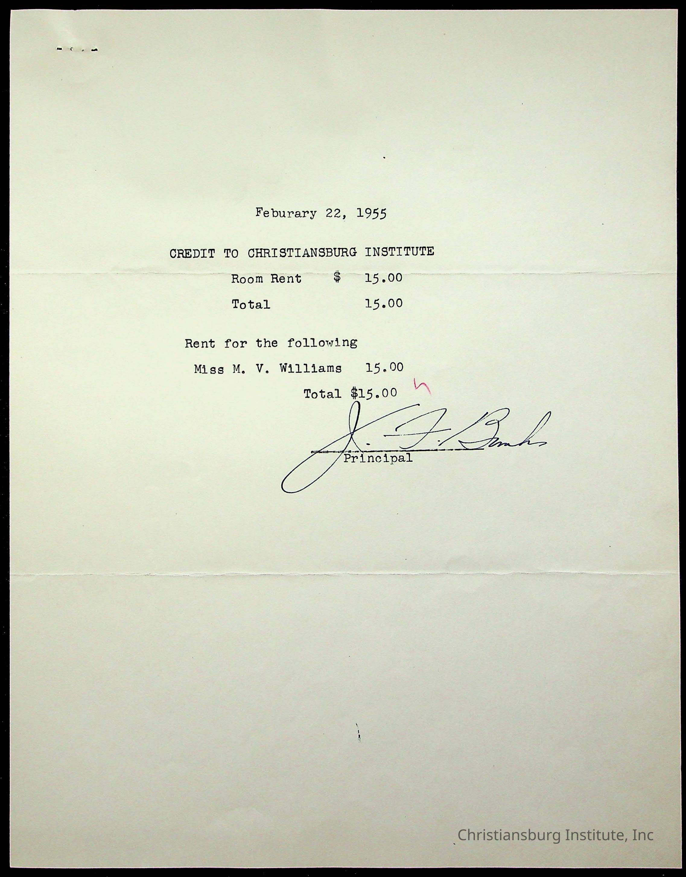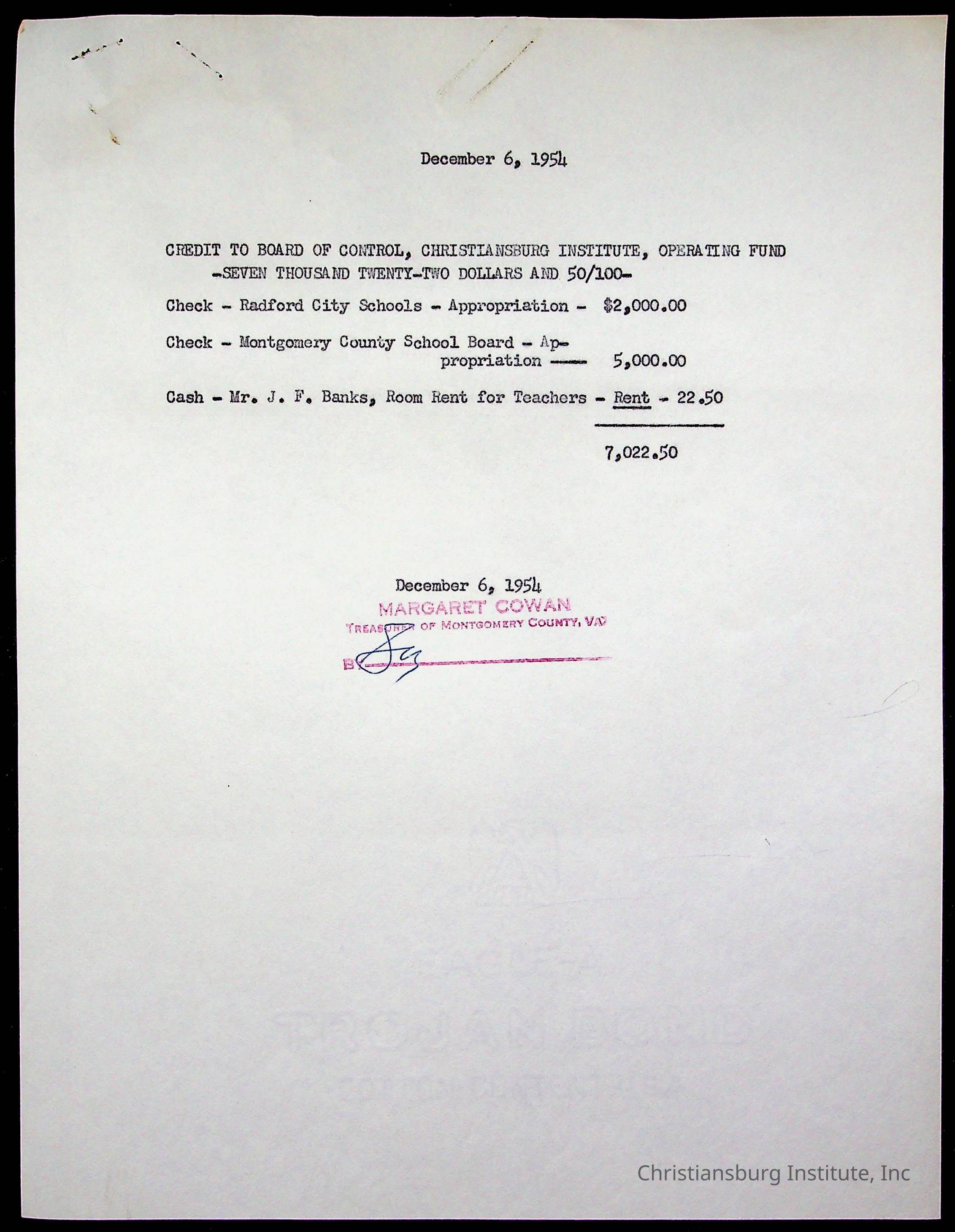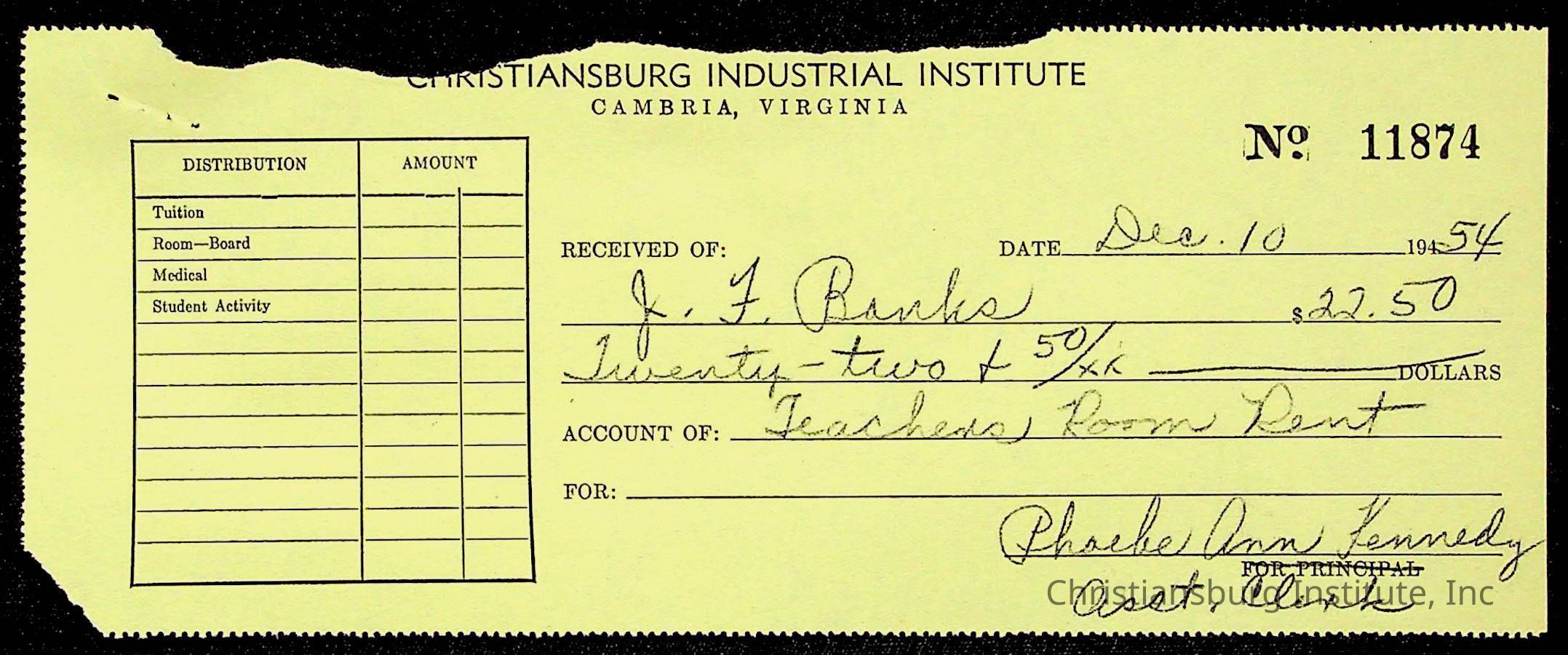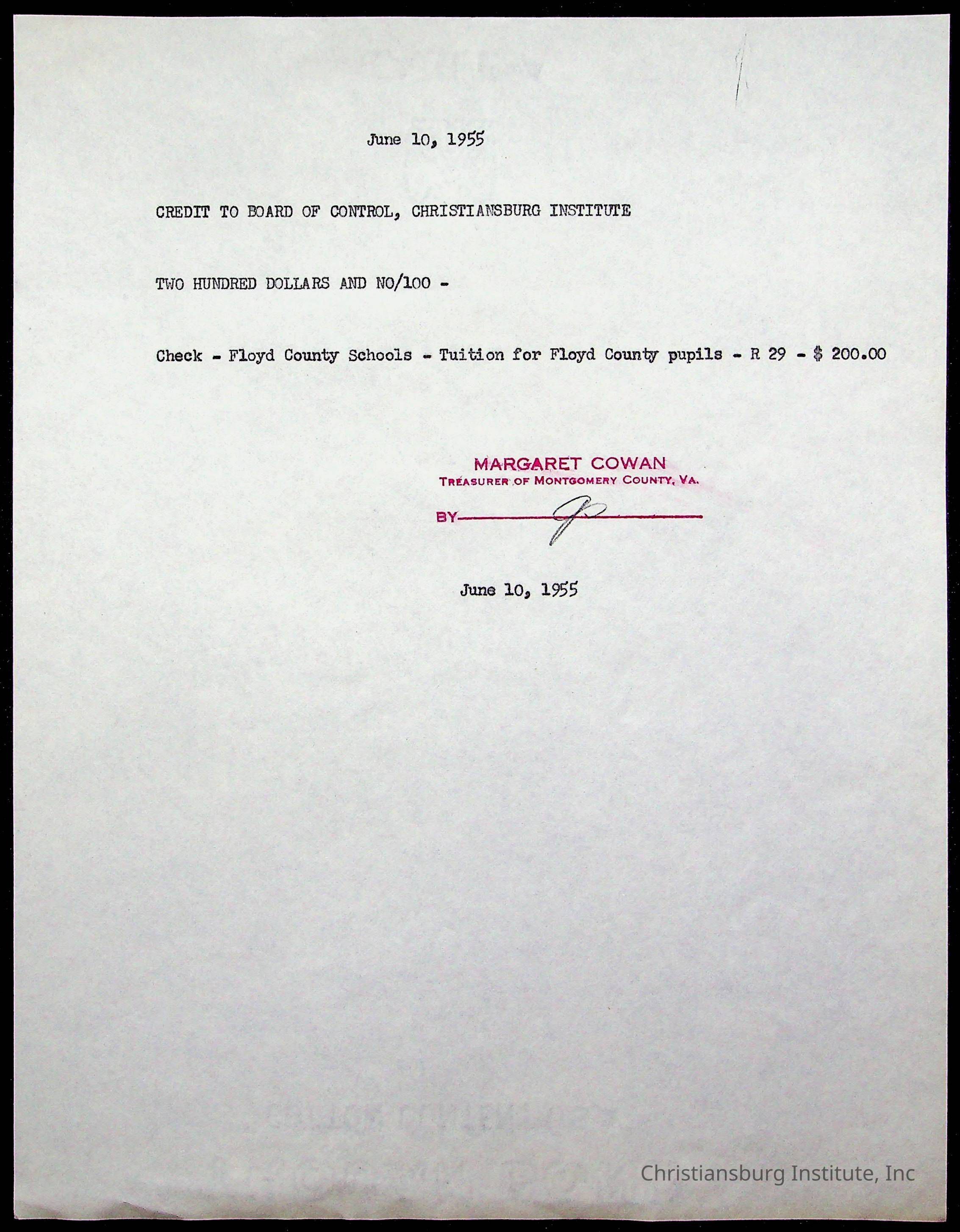 Christiansburg Institute Treasury Receipts, 1954-1955