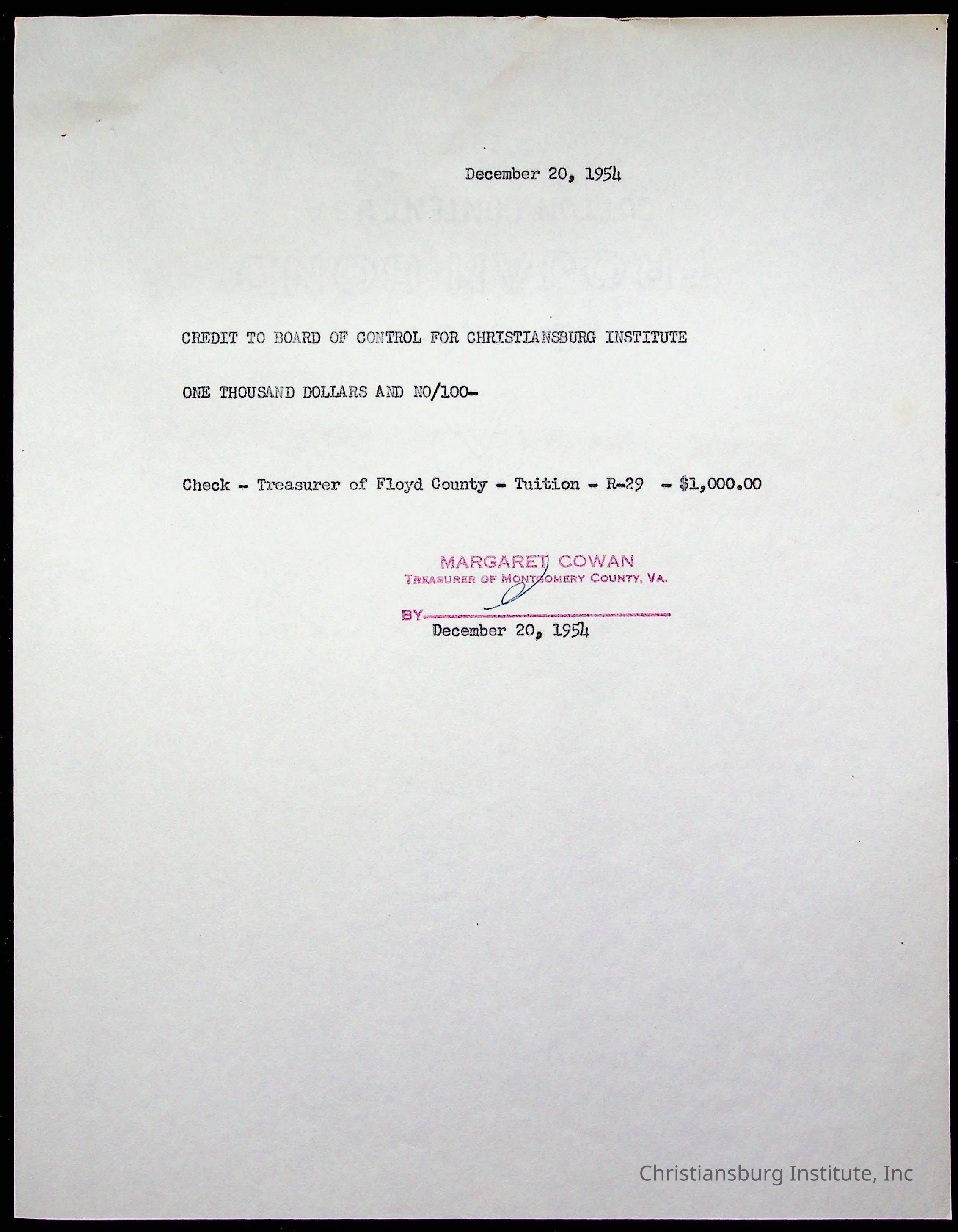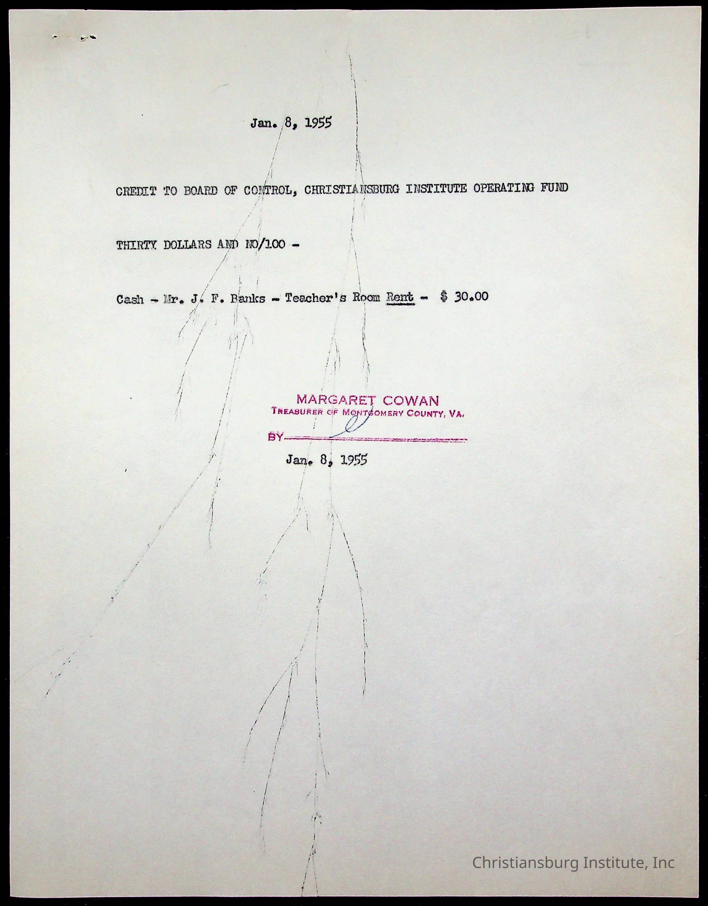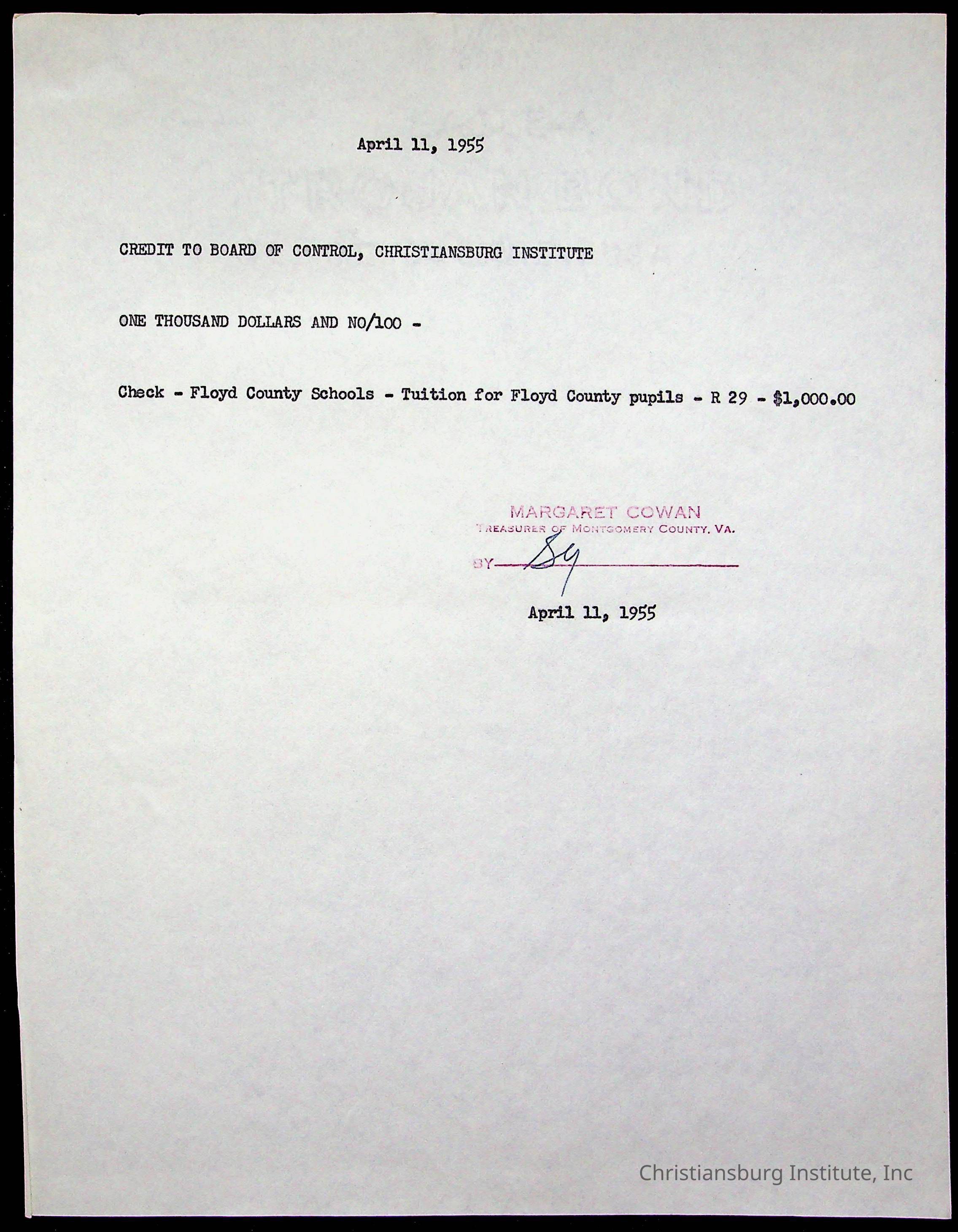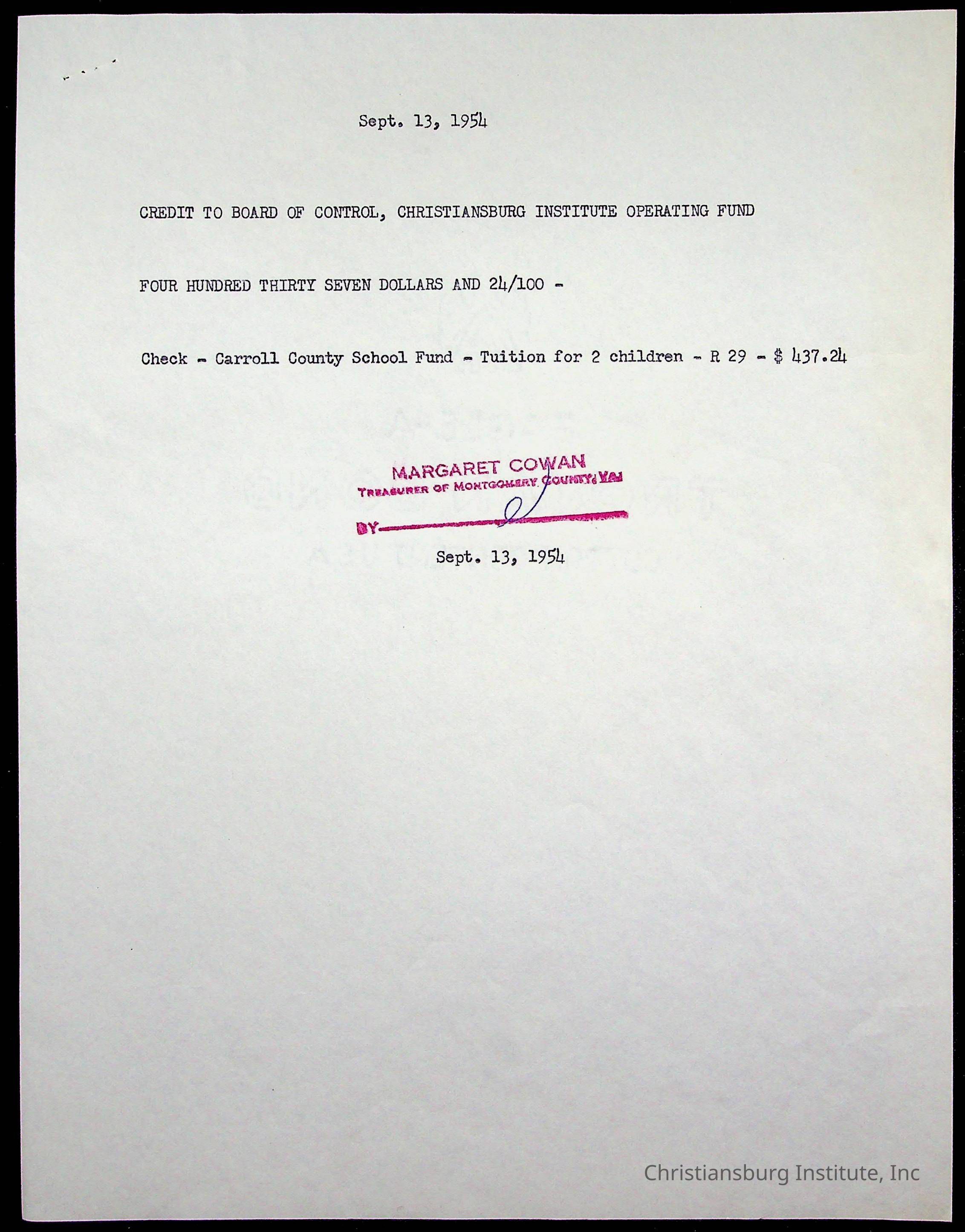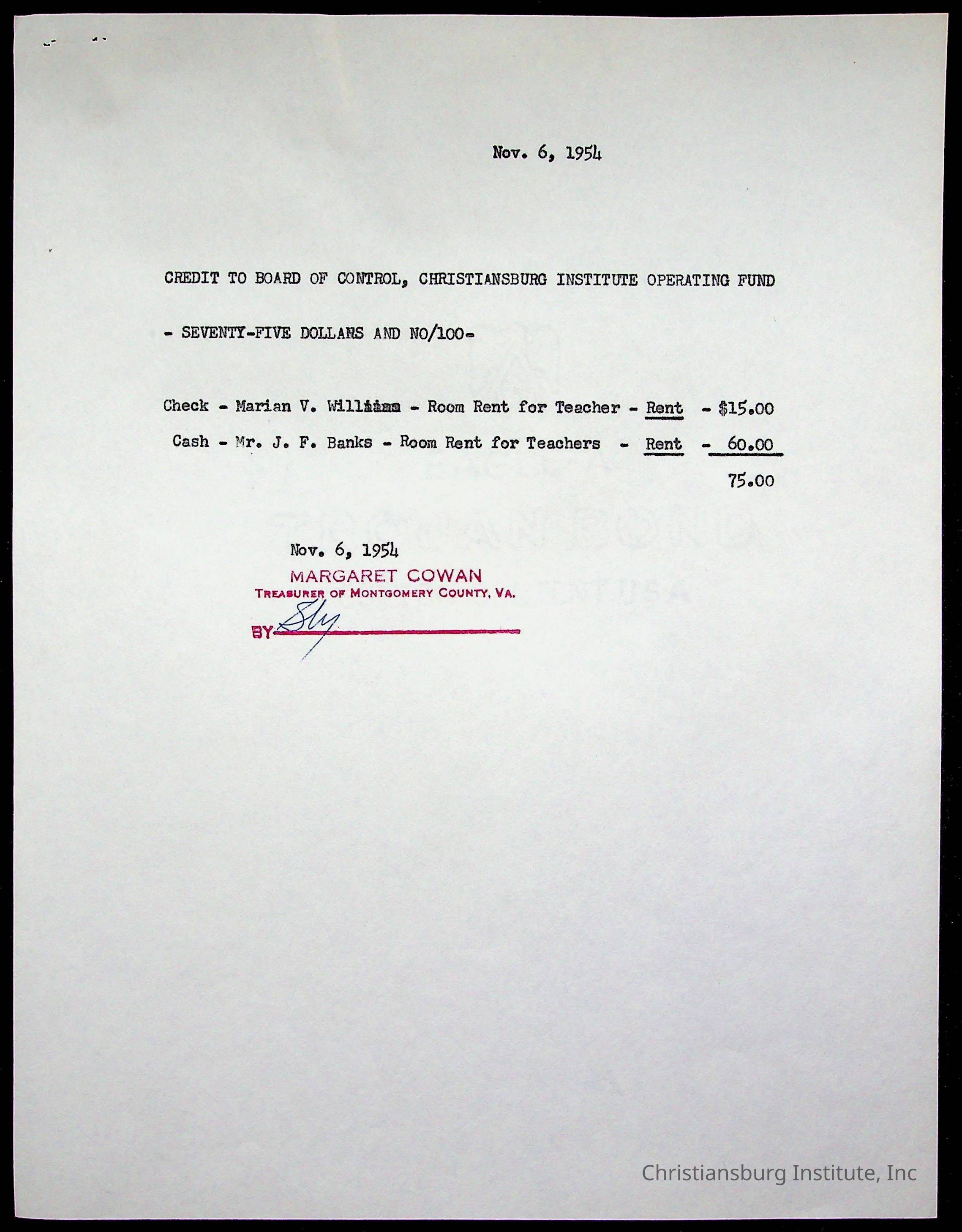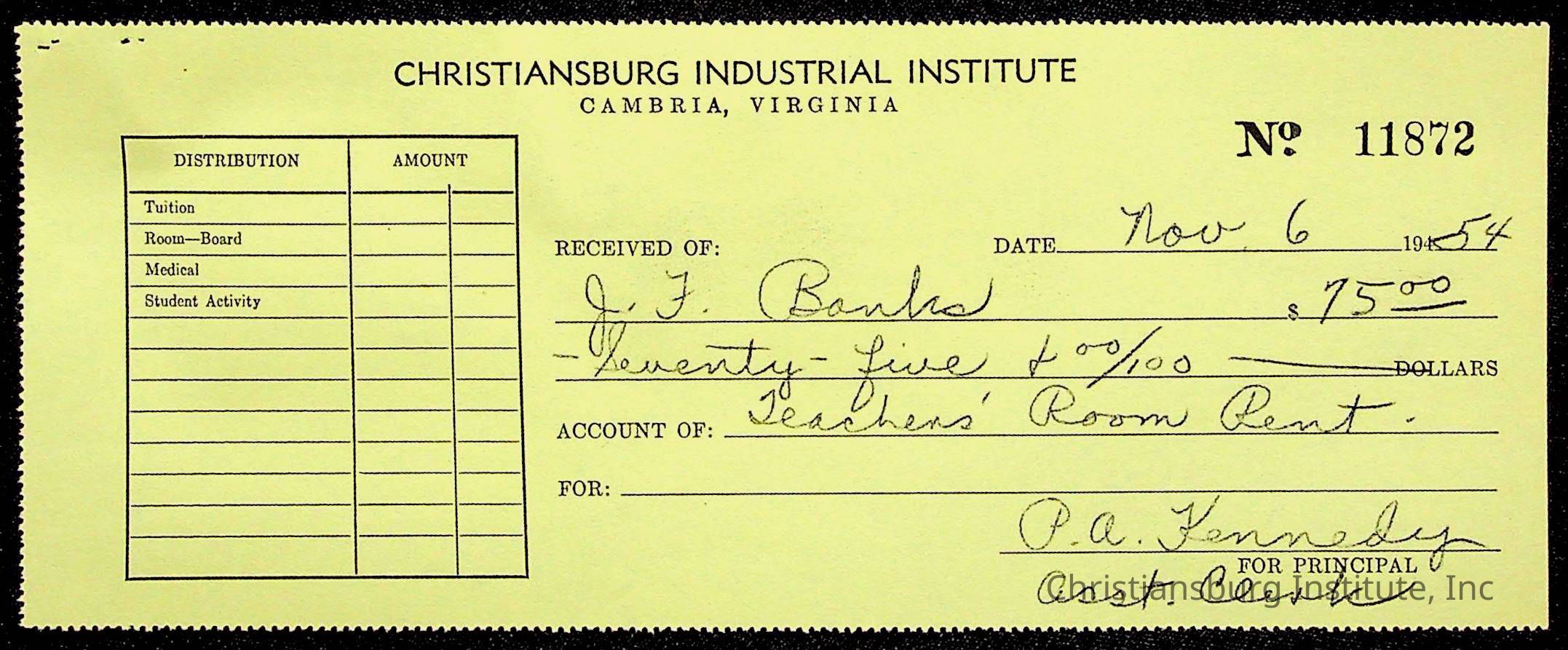 Christiansburg Institute Treasury Receipts, 1954-1955