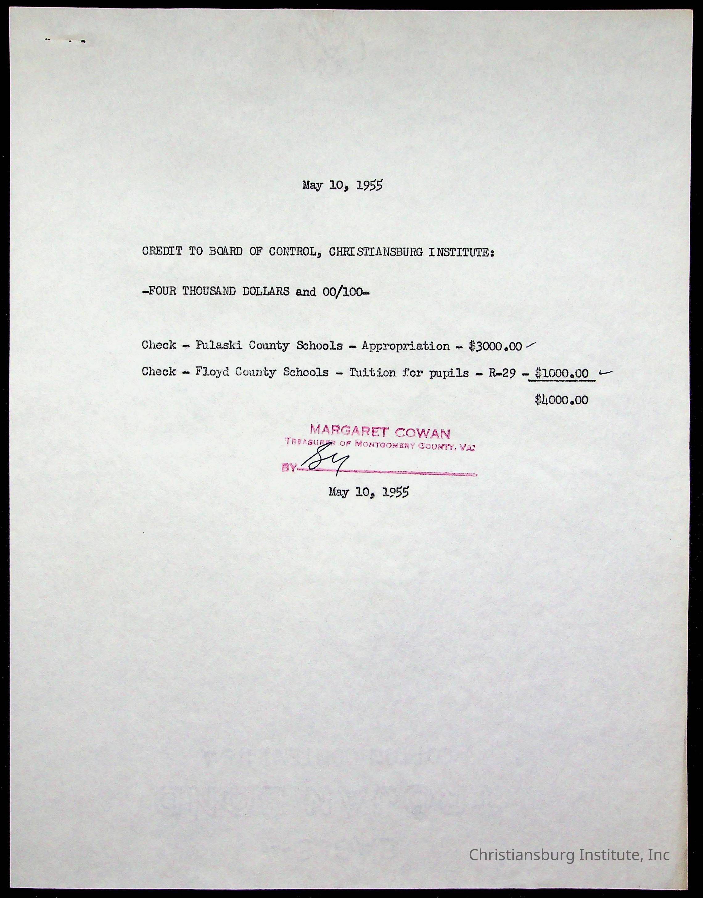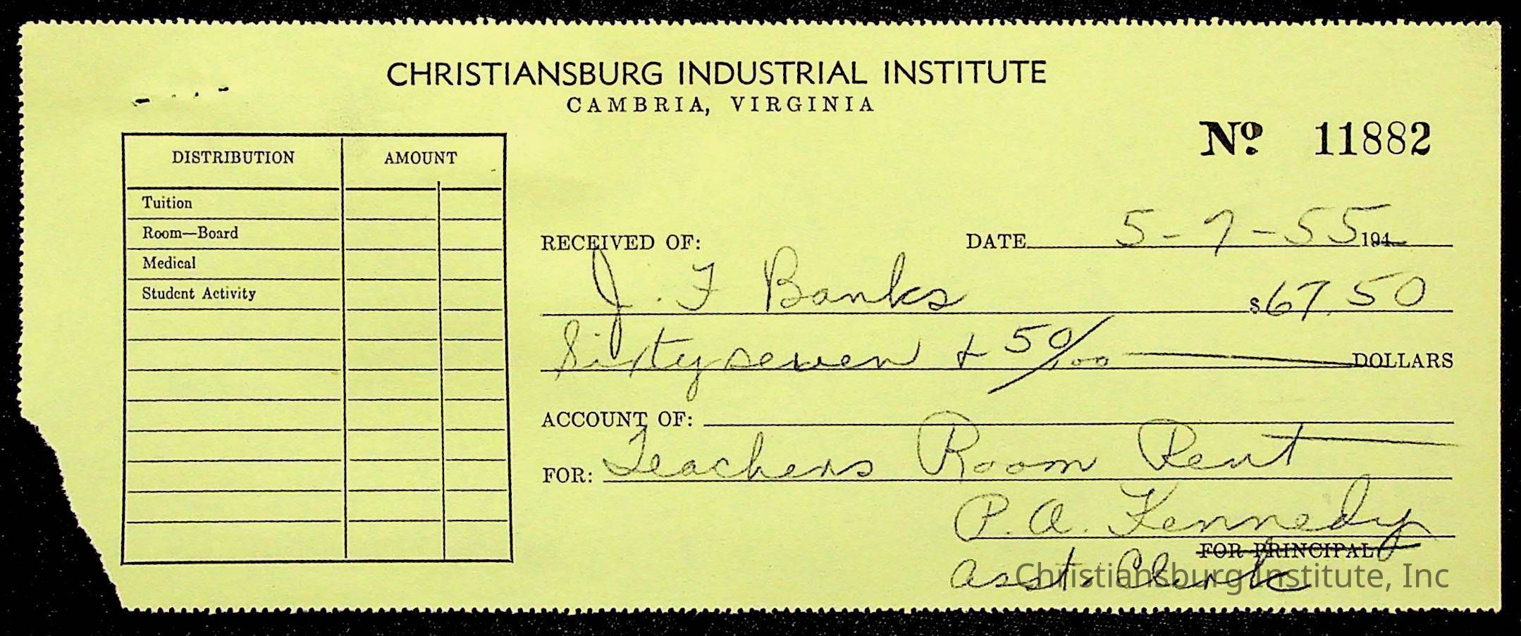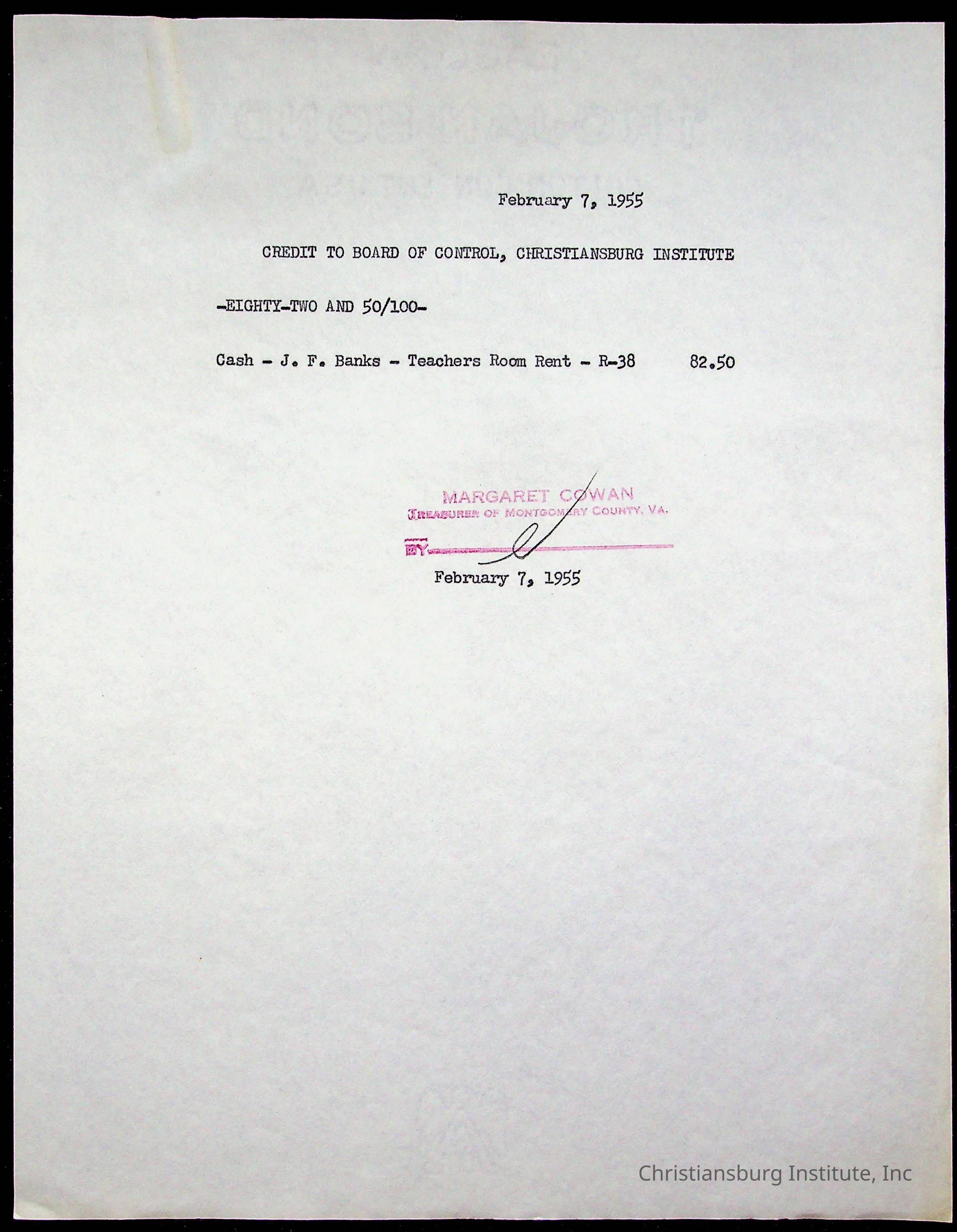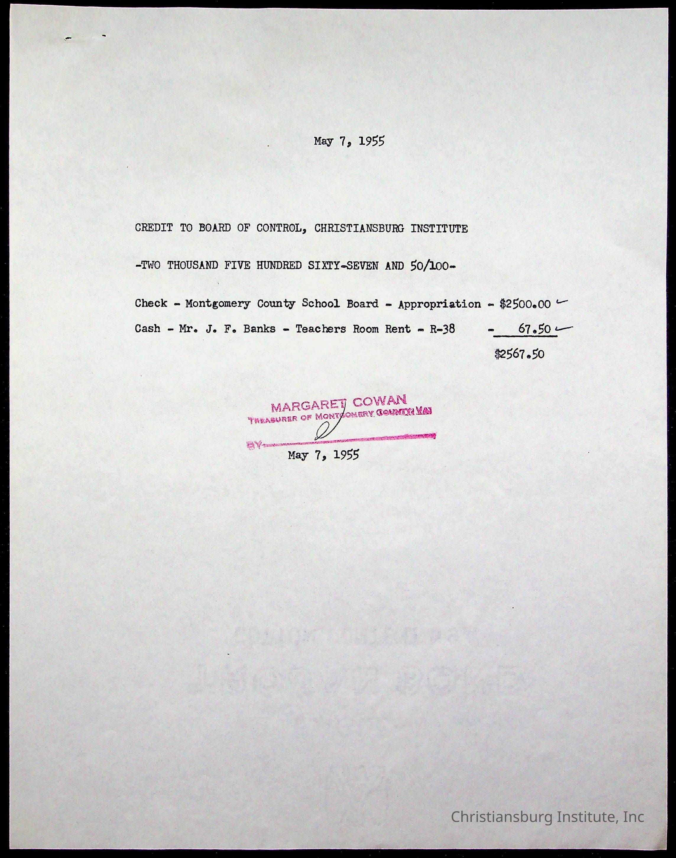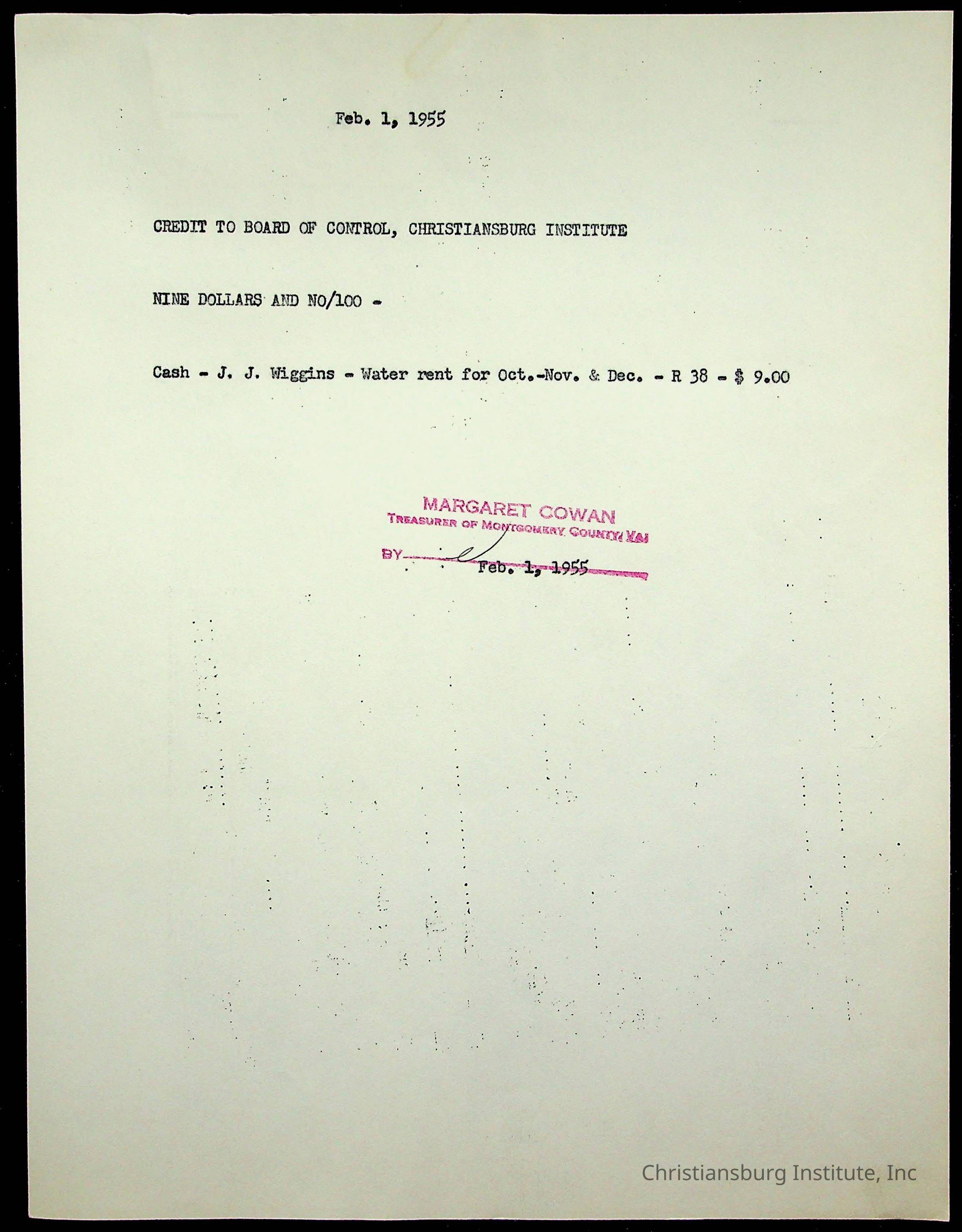 Christiansburg Institute Treasury Receipts, 1954-1955