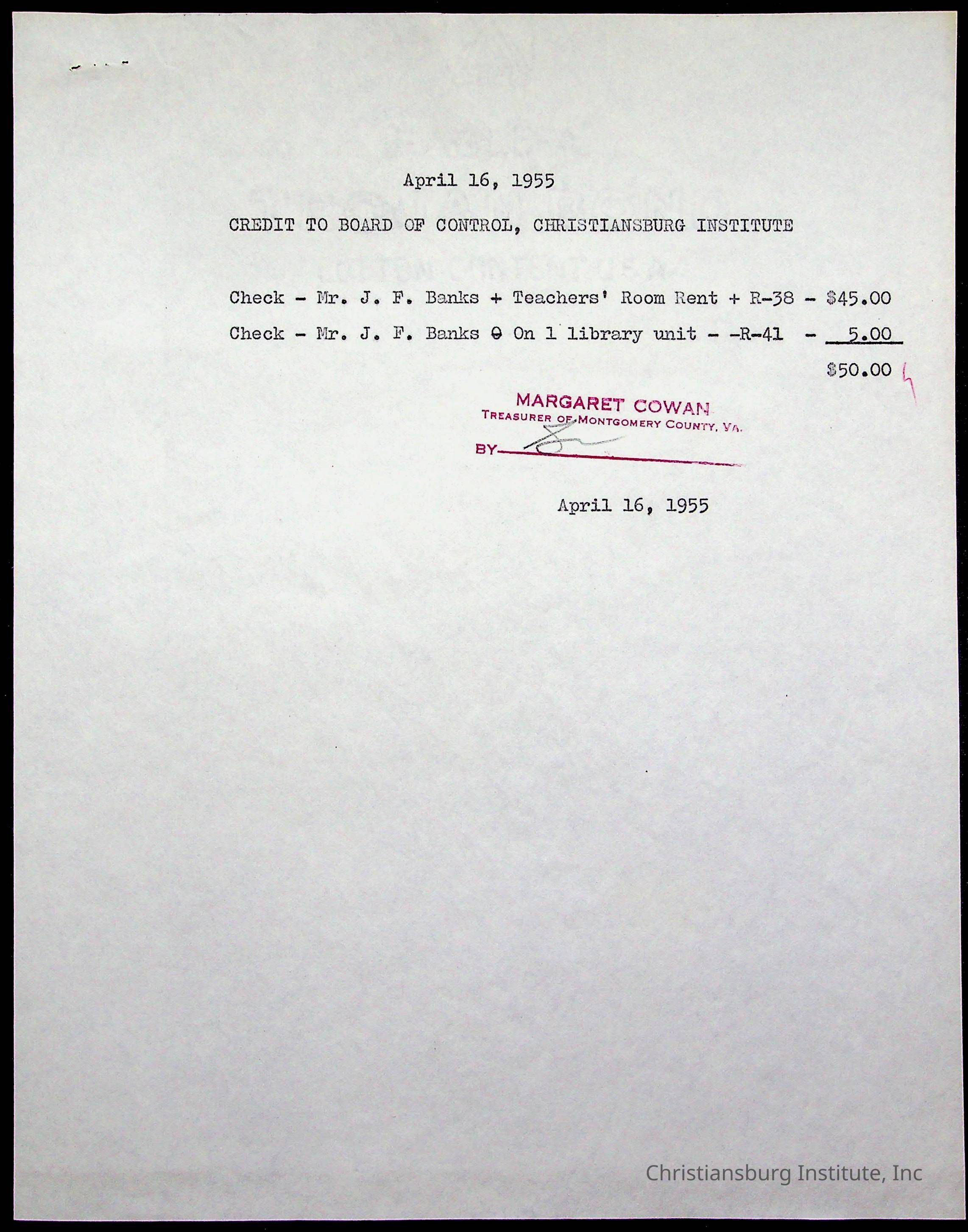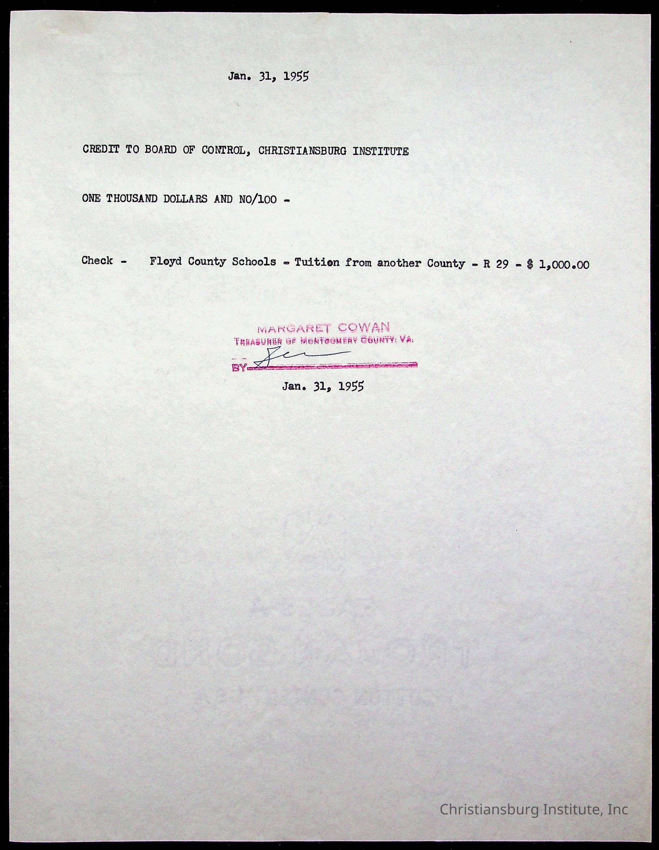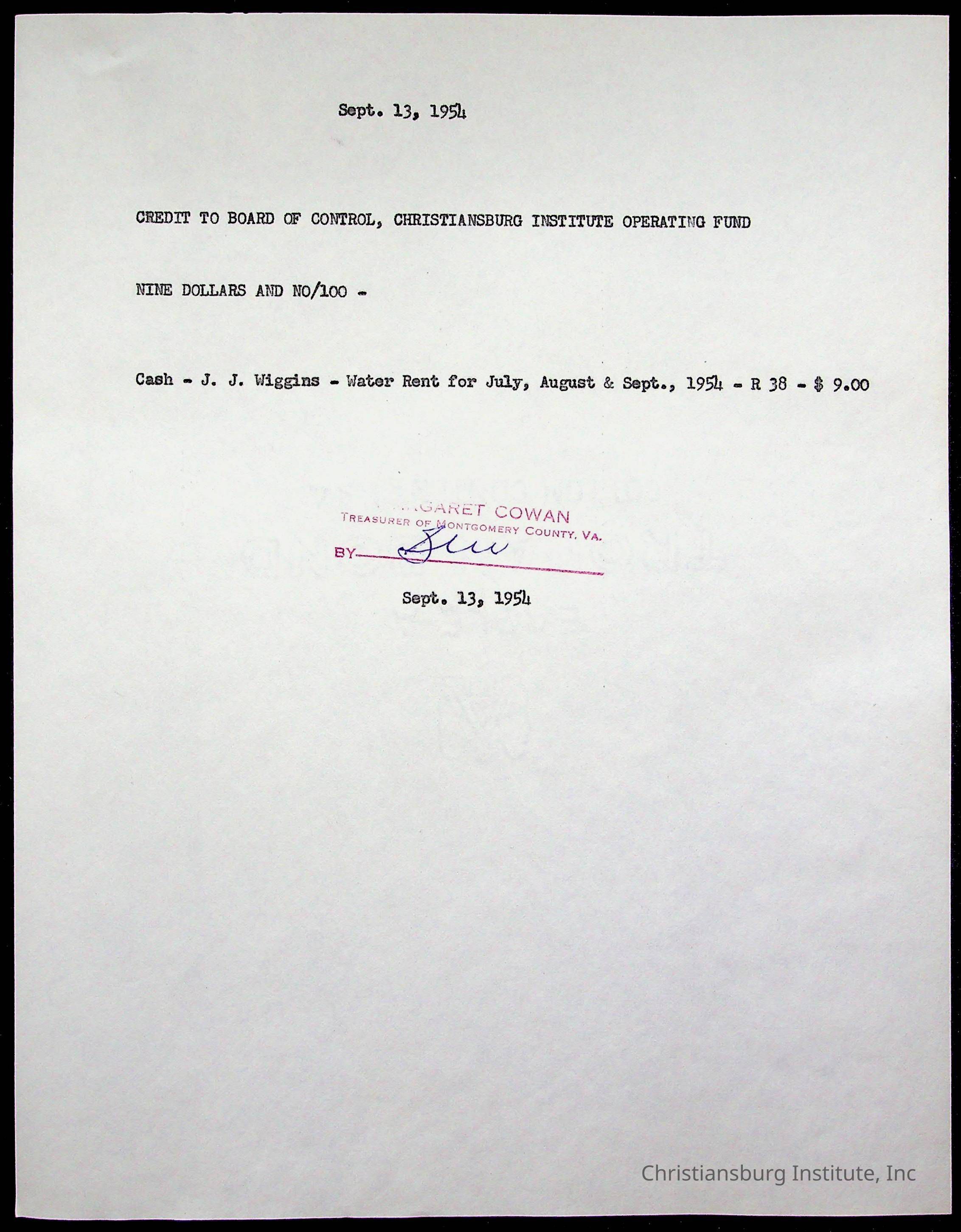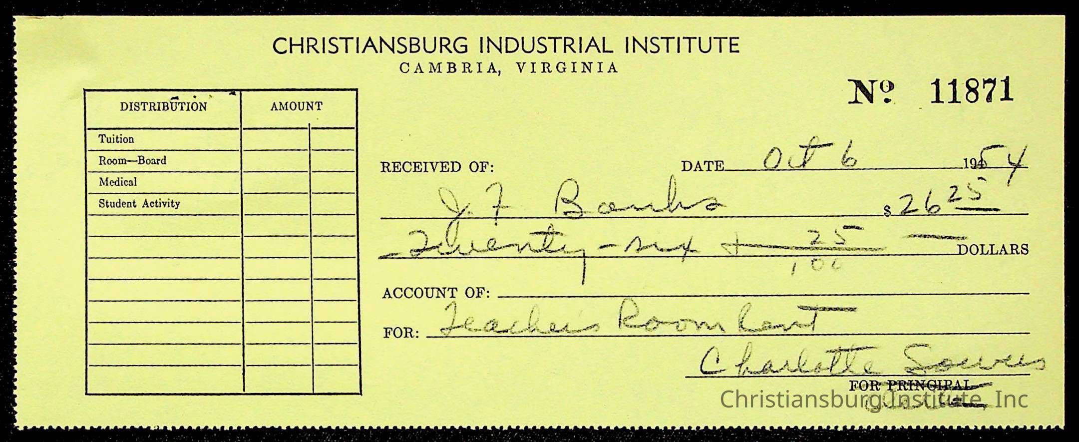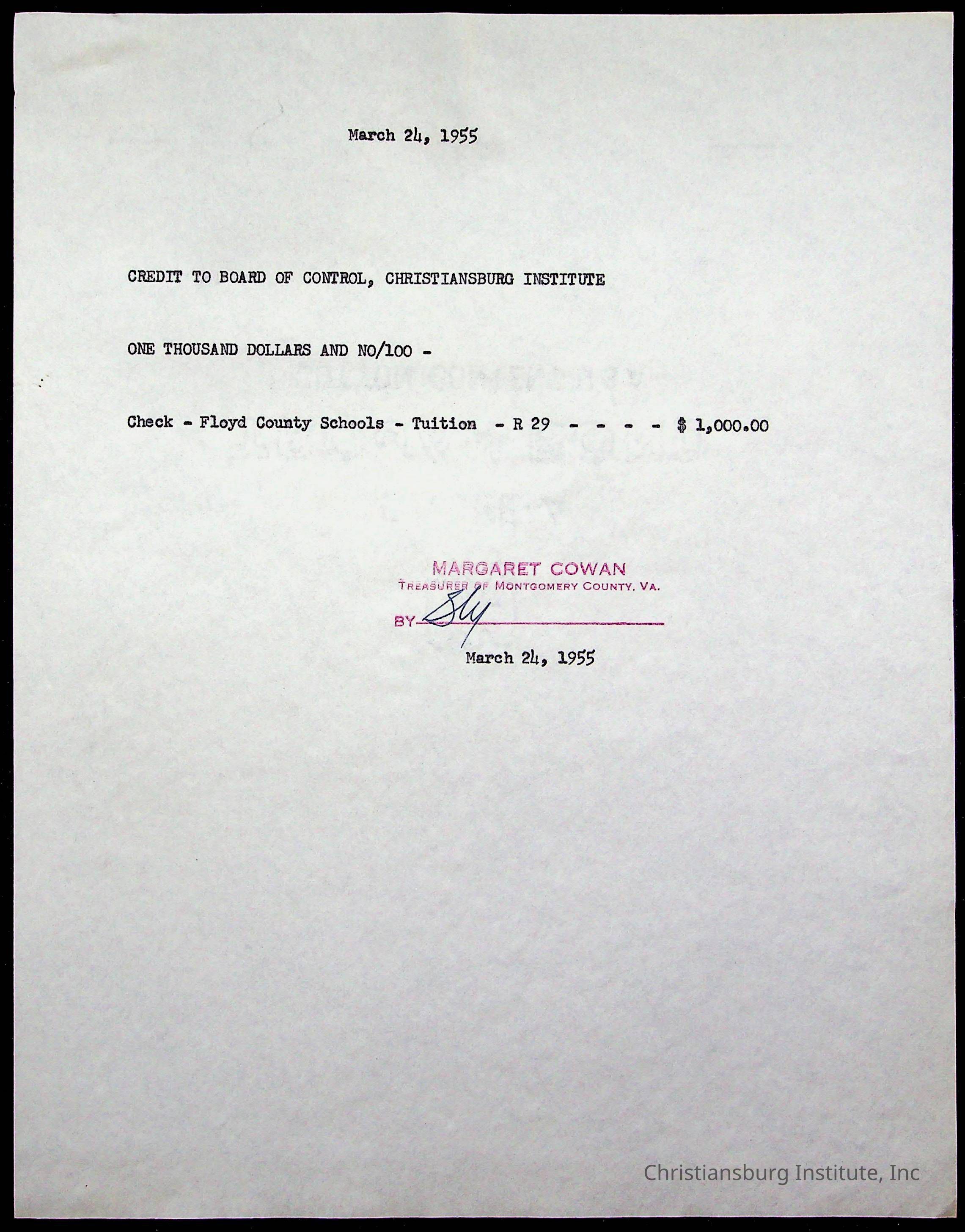 Christiansburg Institute Treasury Receipts, 1954-1955