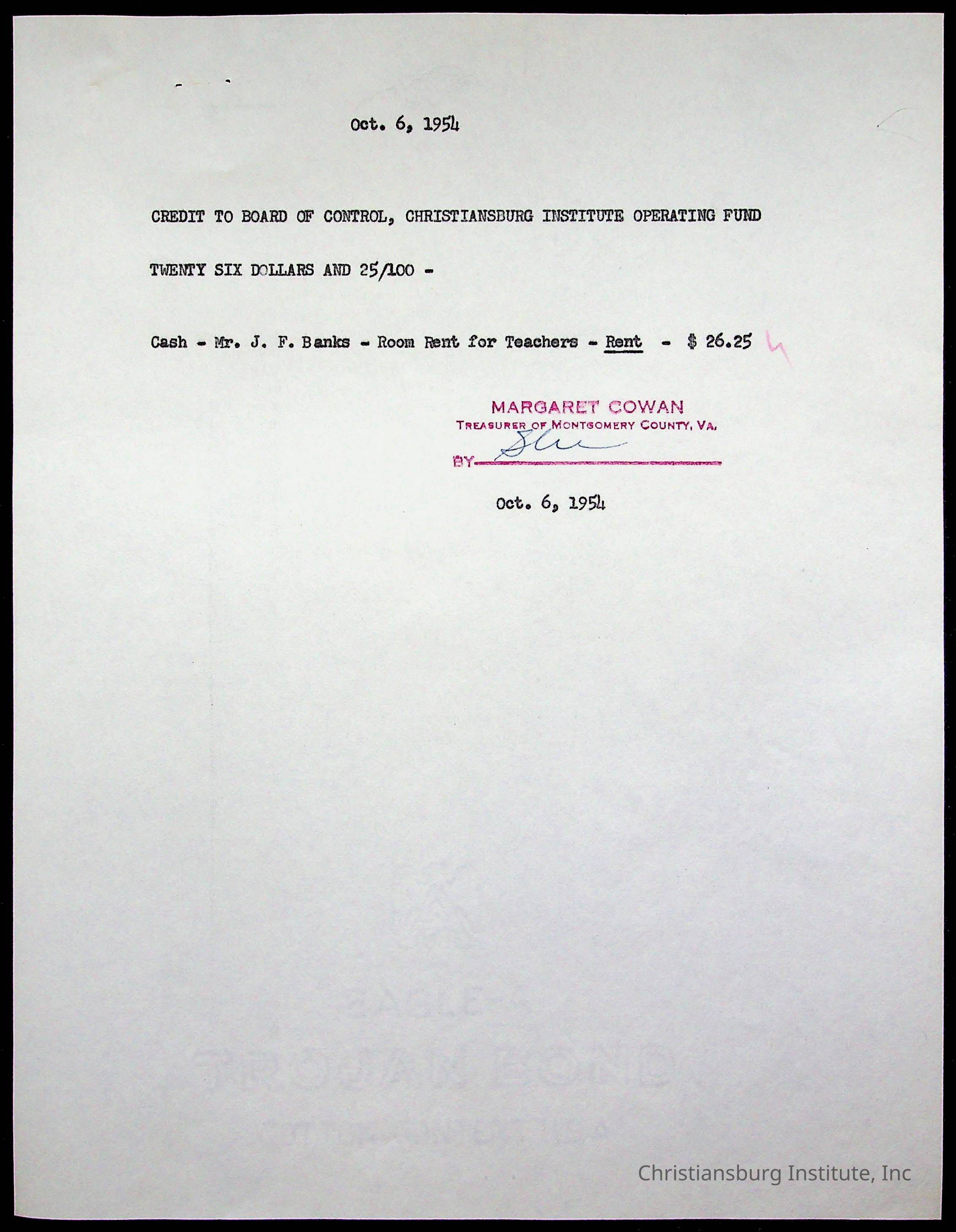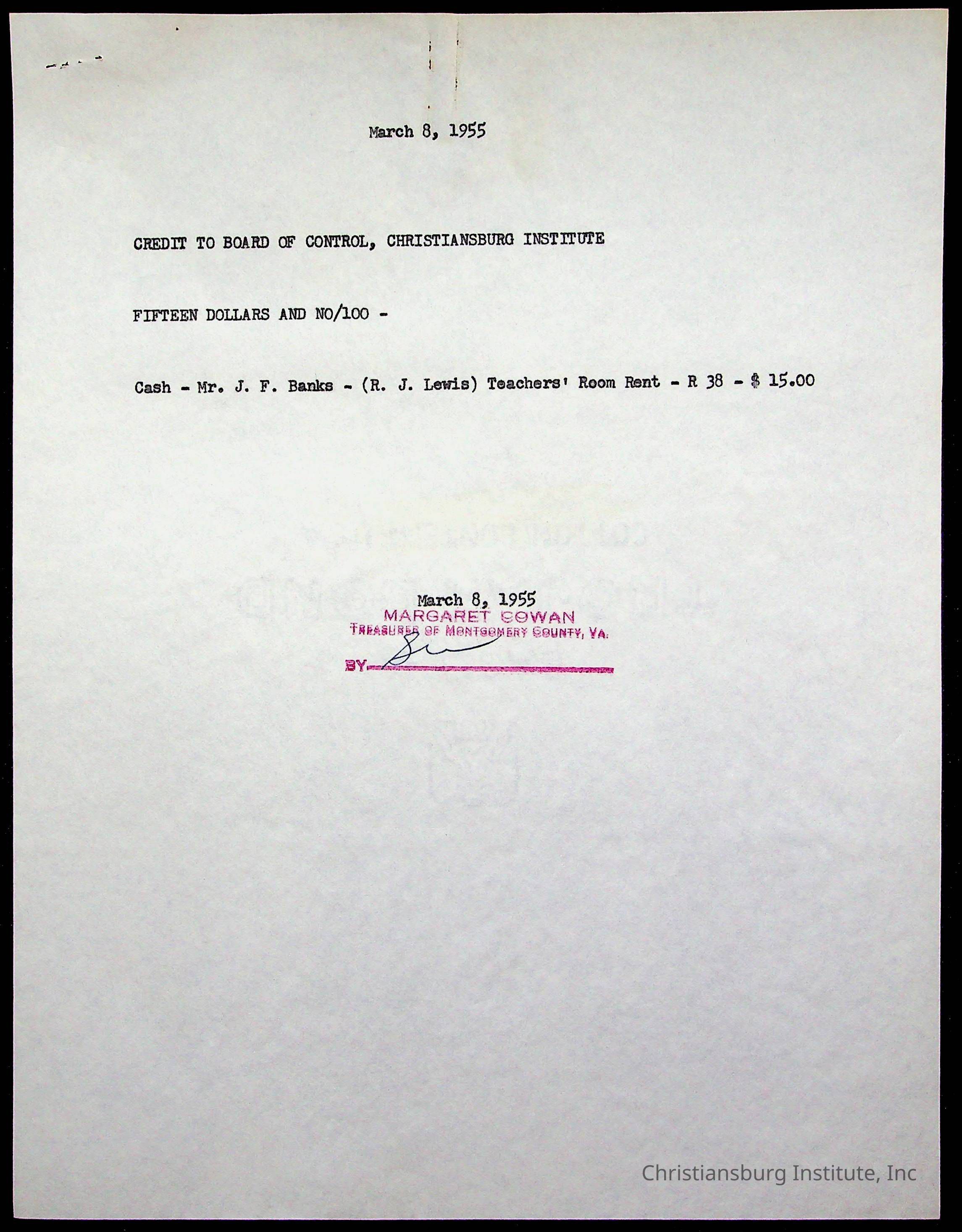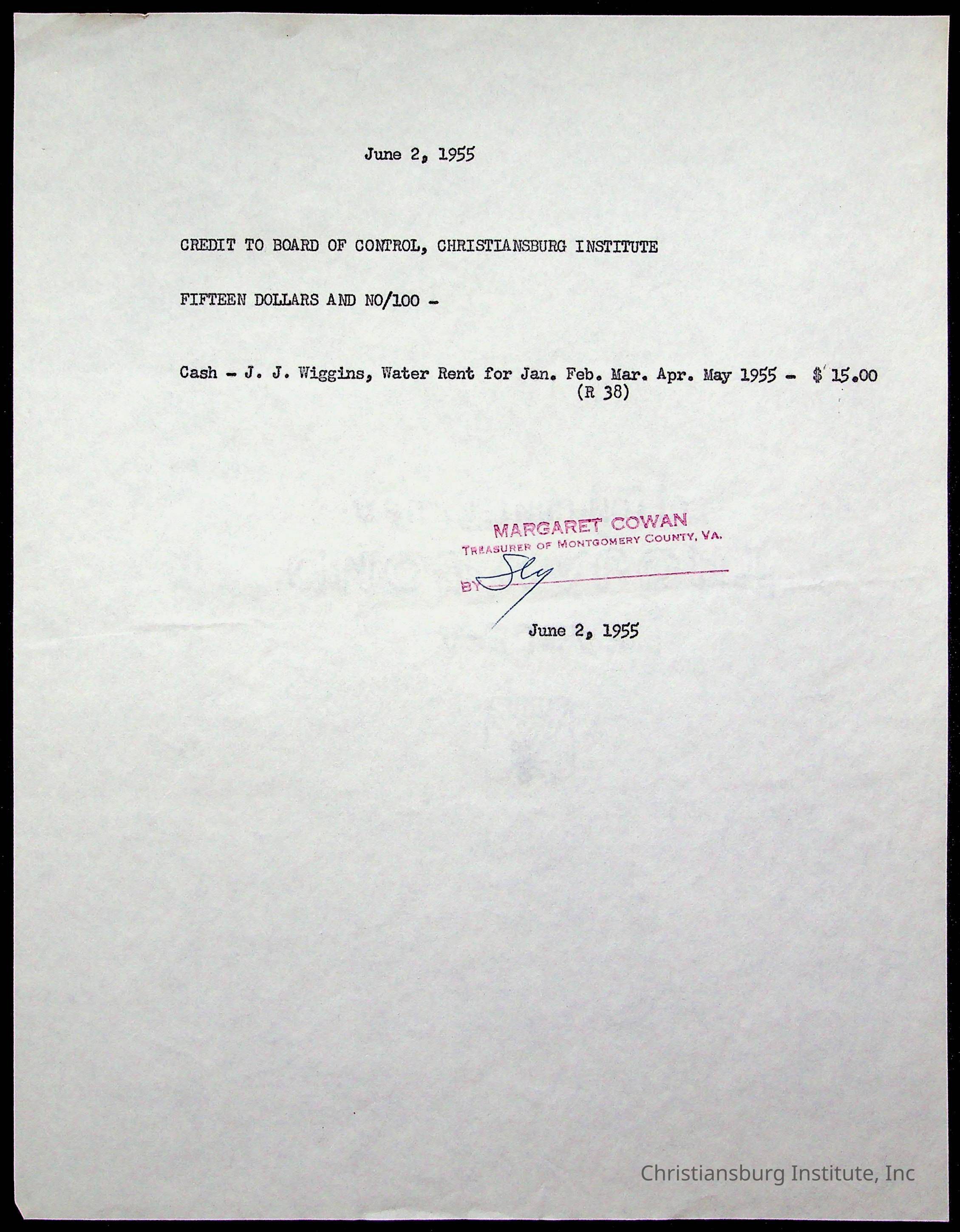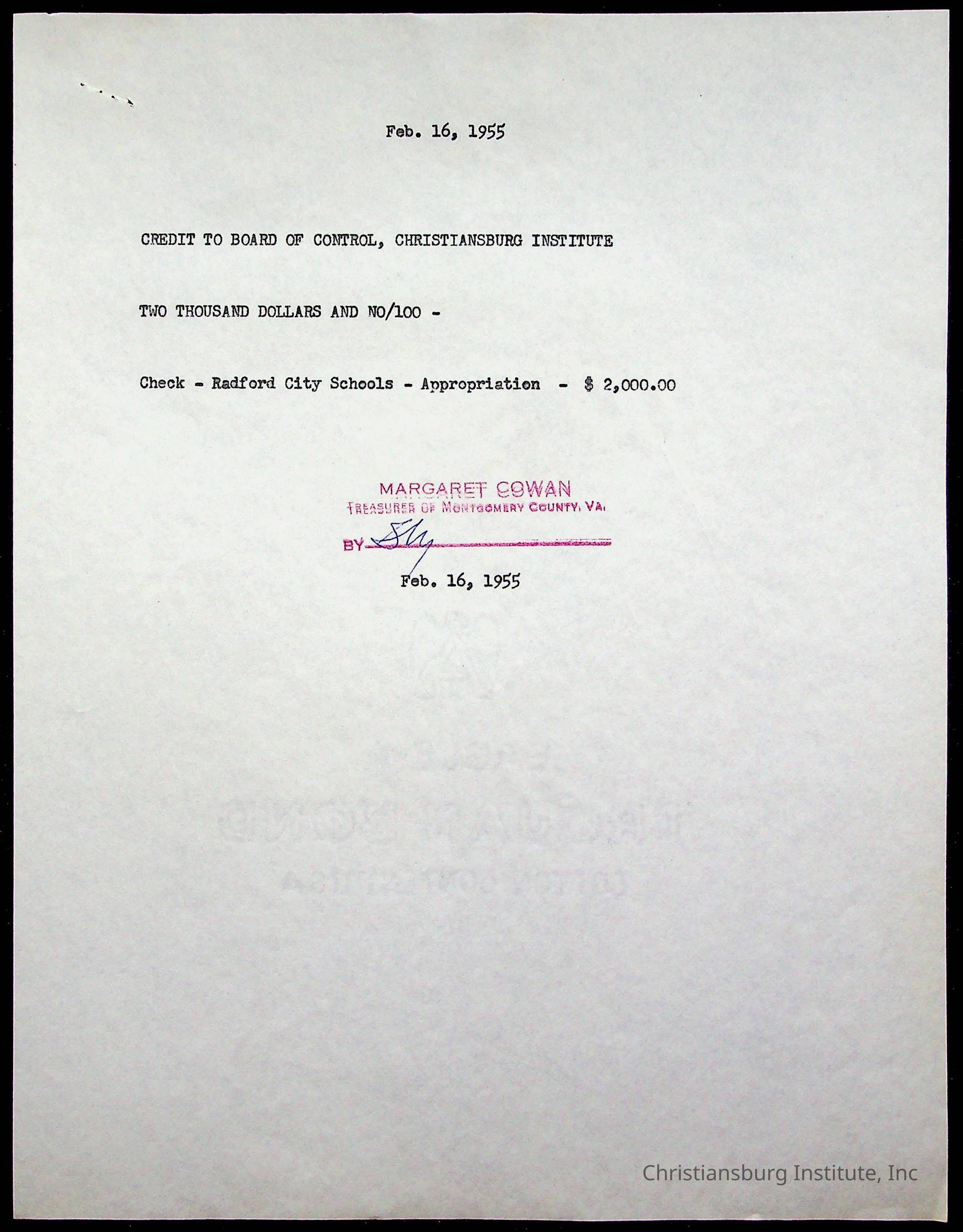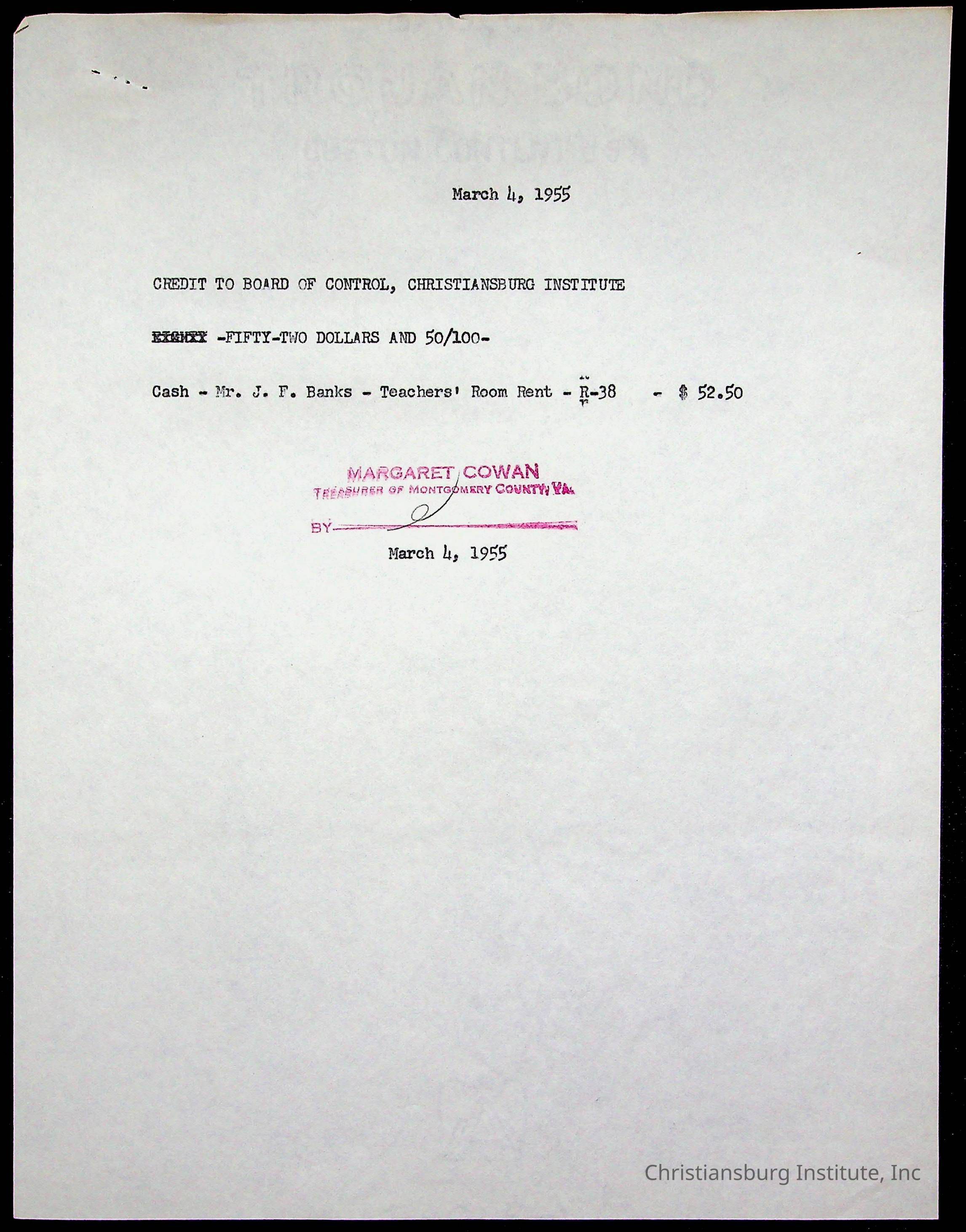 Christiansburg Institute Treasury Receipts, 1954-1955