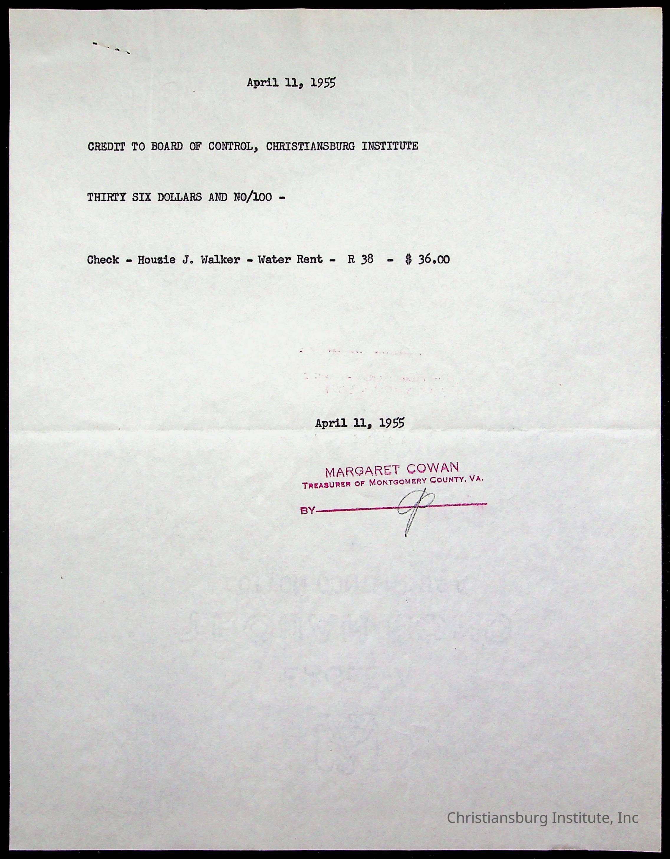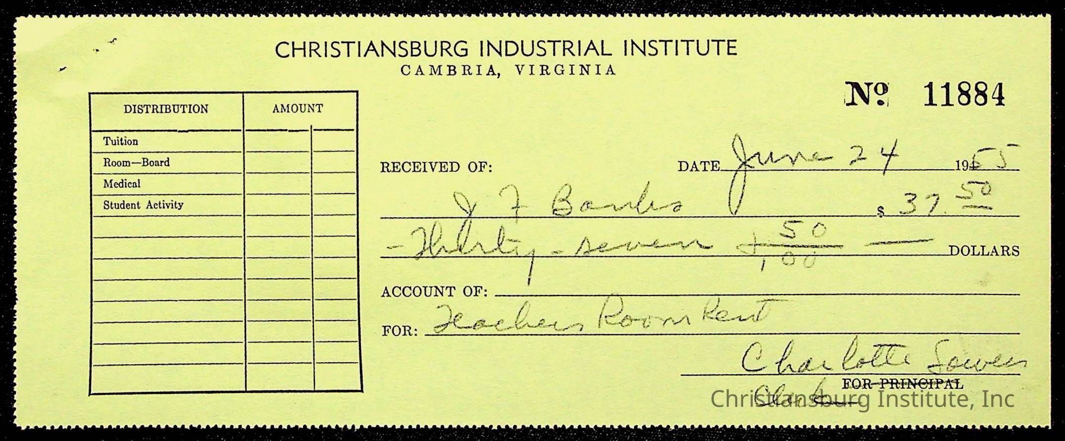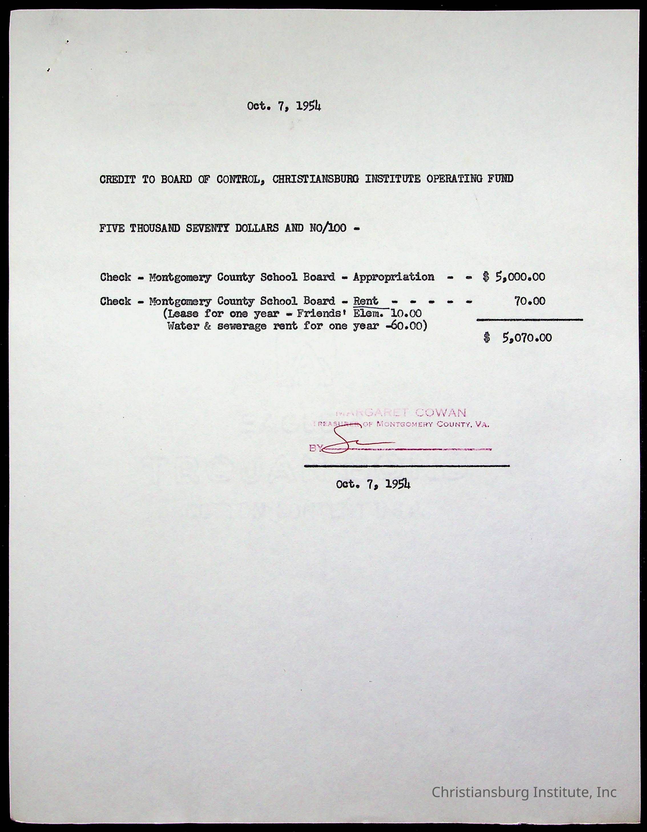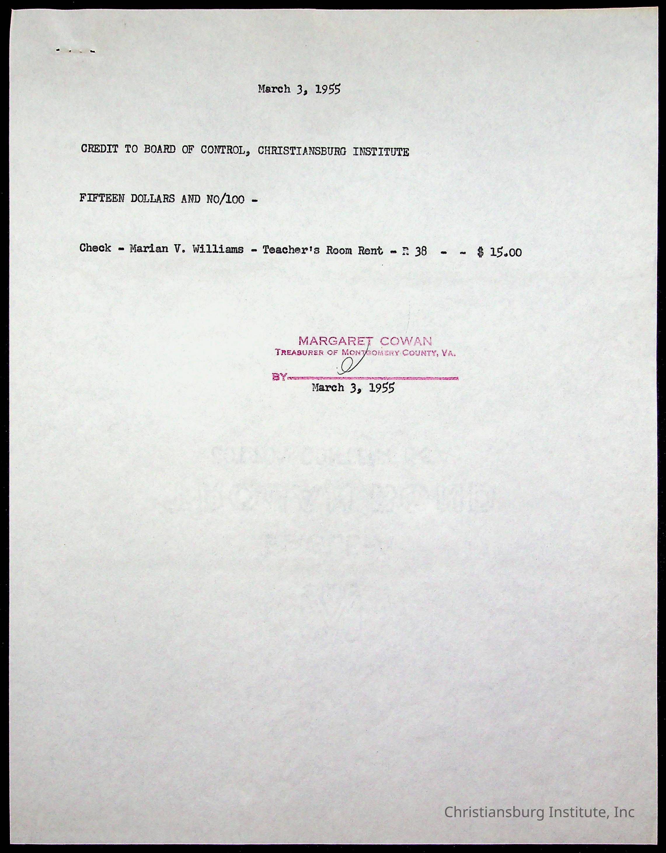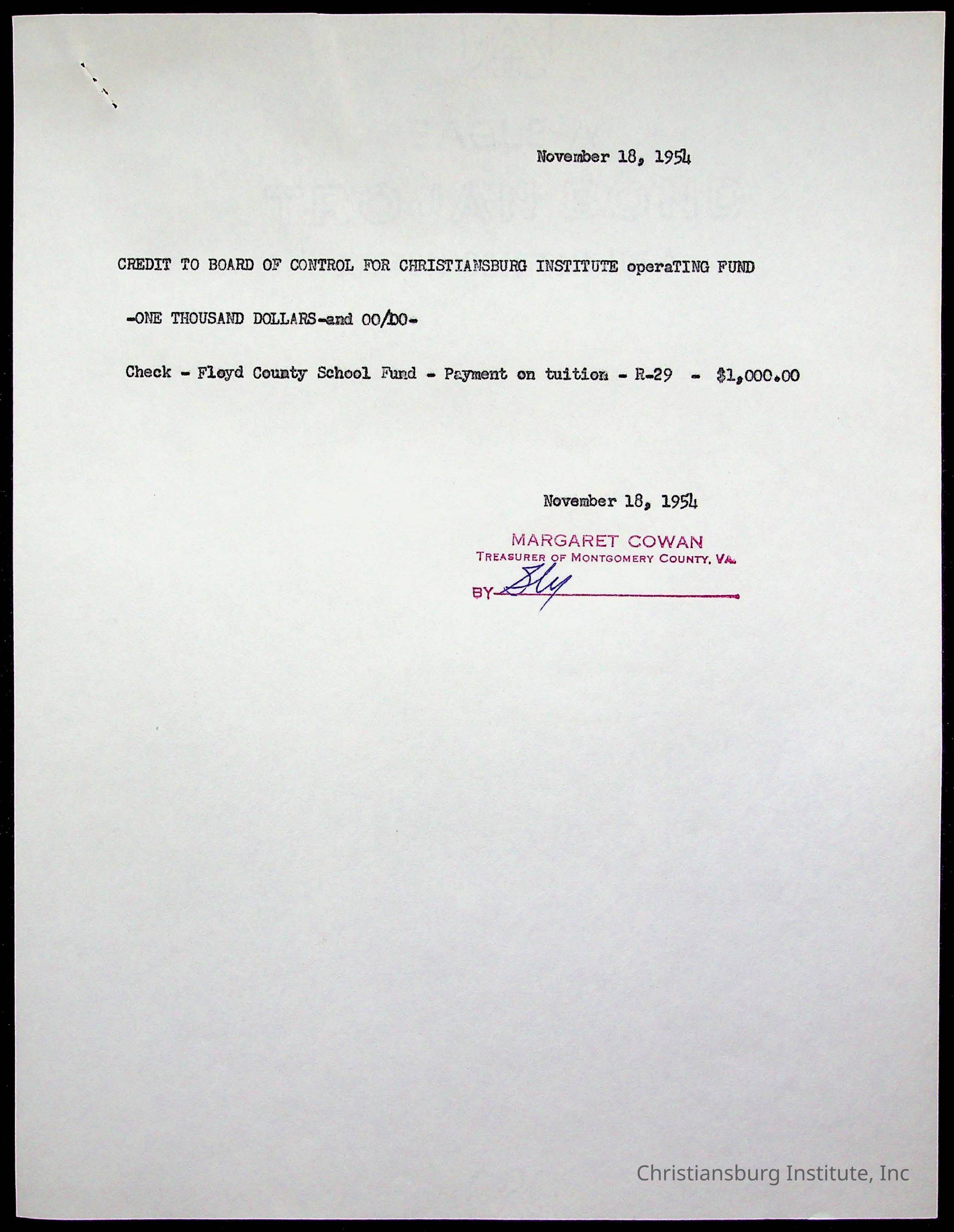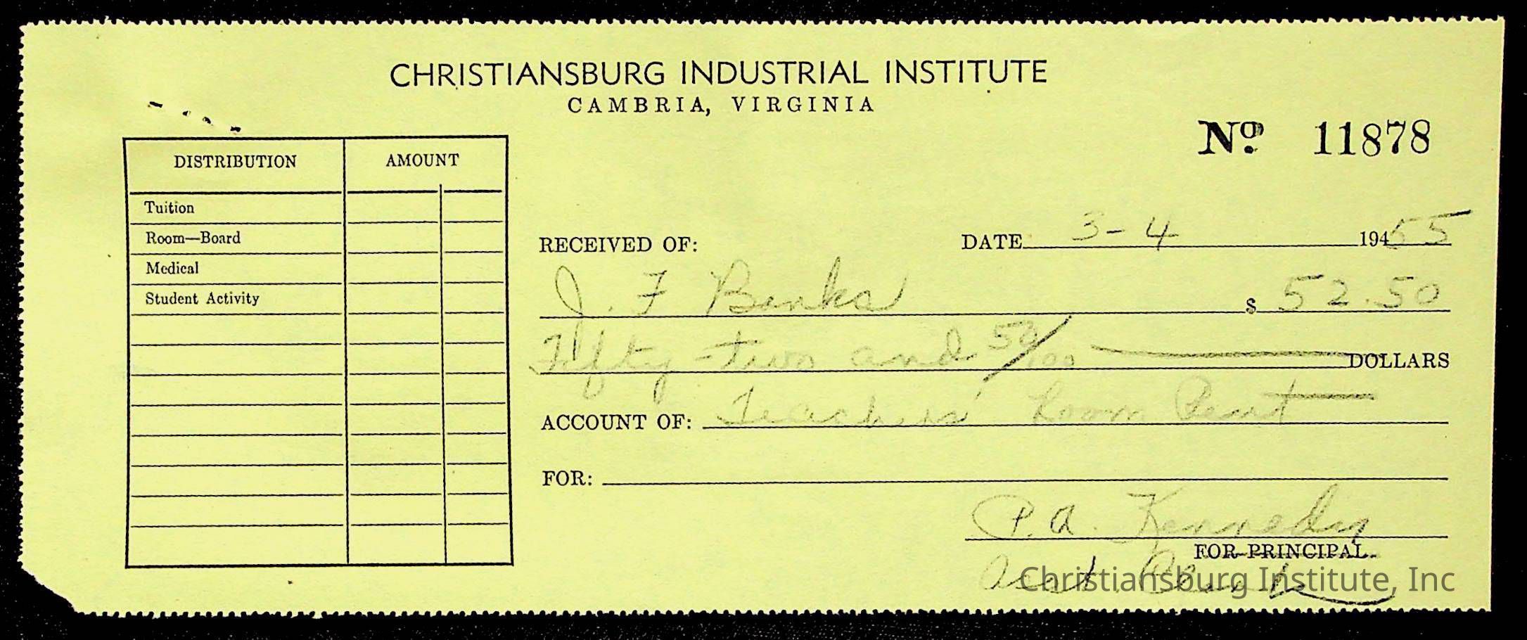Christiansburg Institute Treasury Receipts, 1954-1955