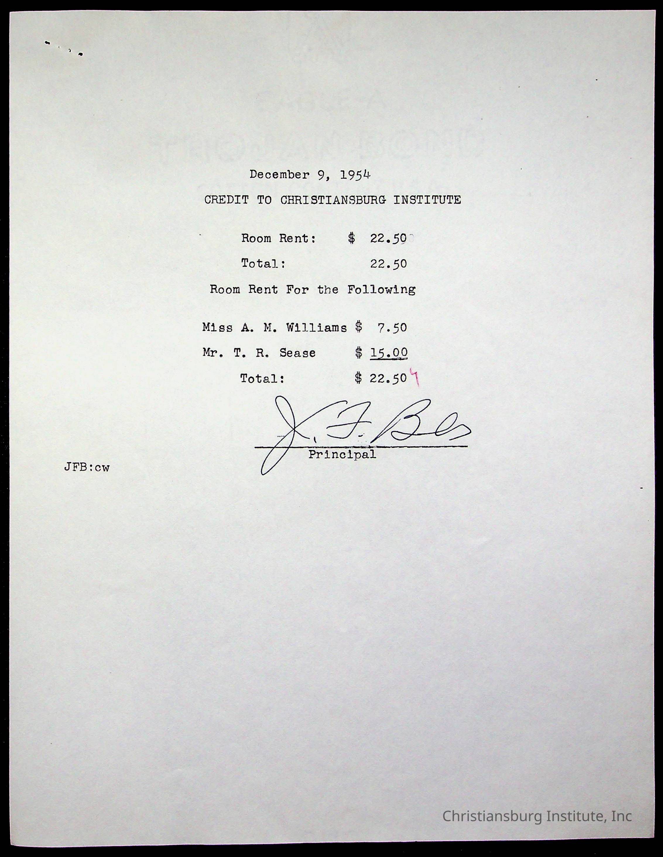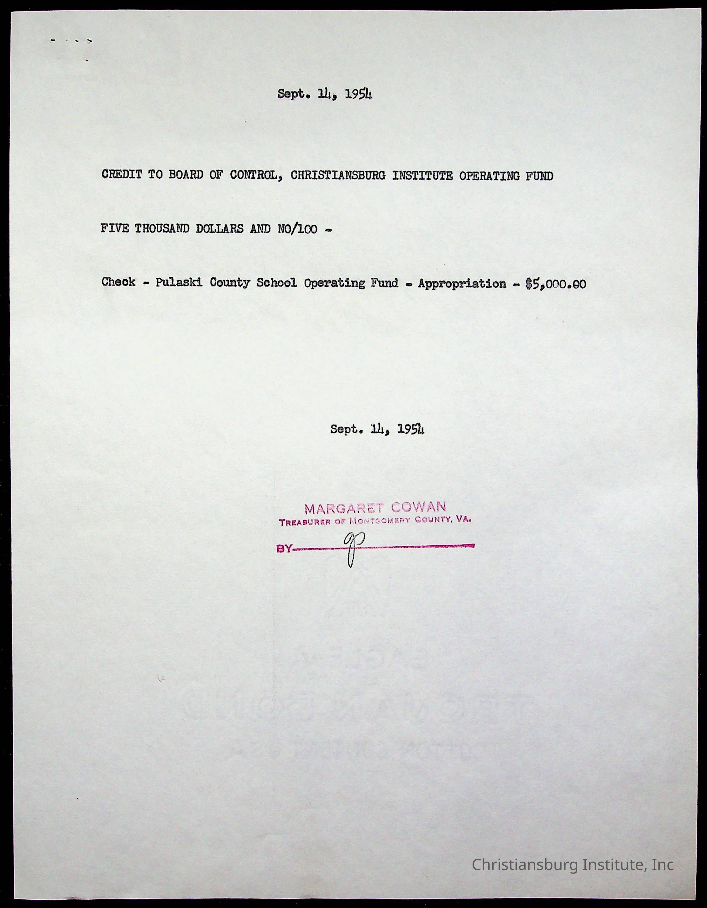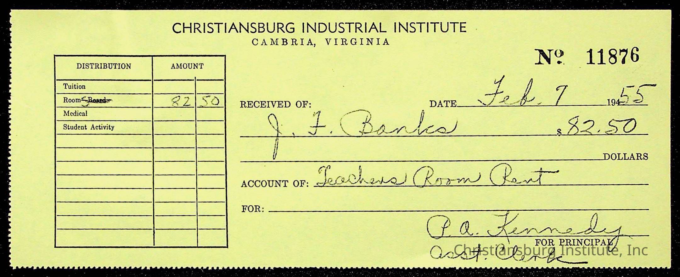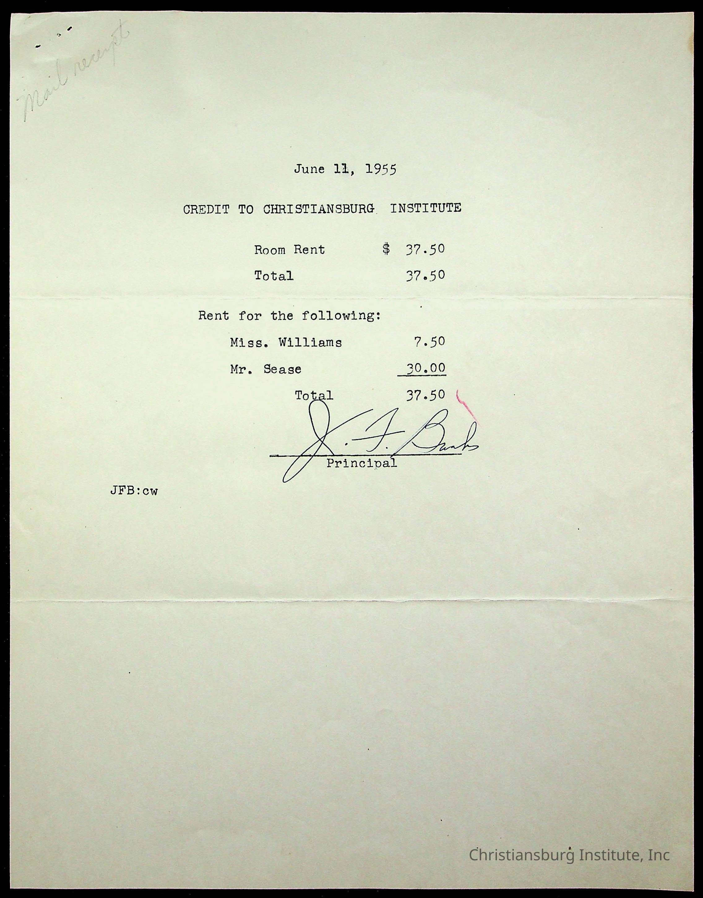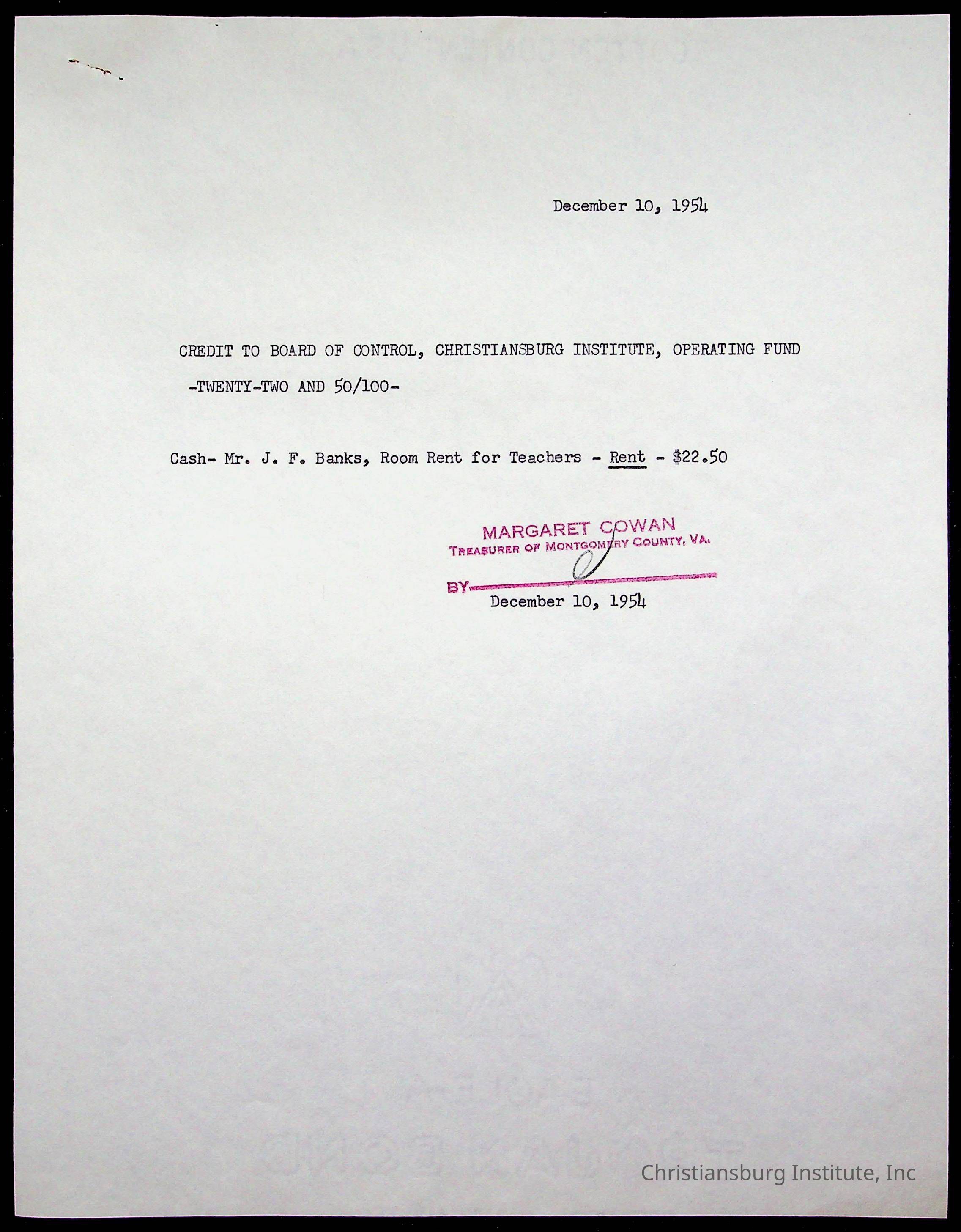 Christiansburg Institute Treasury Receipts, 1954-1955