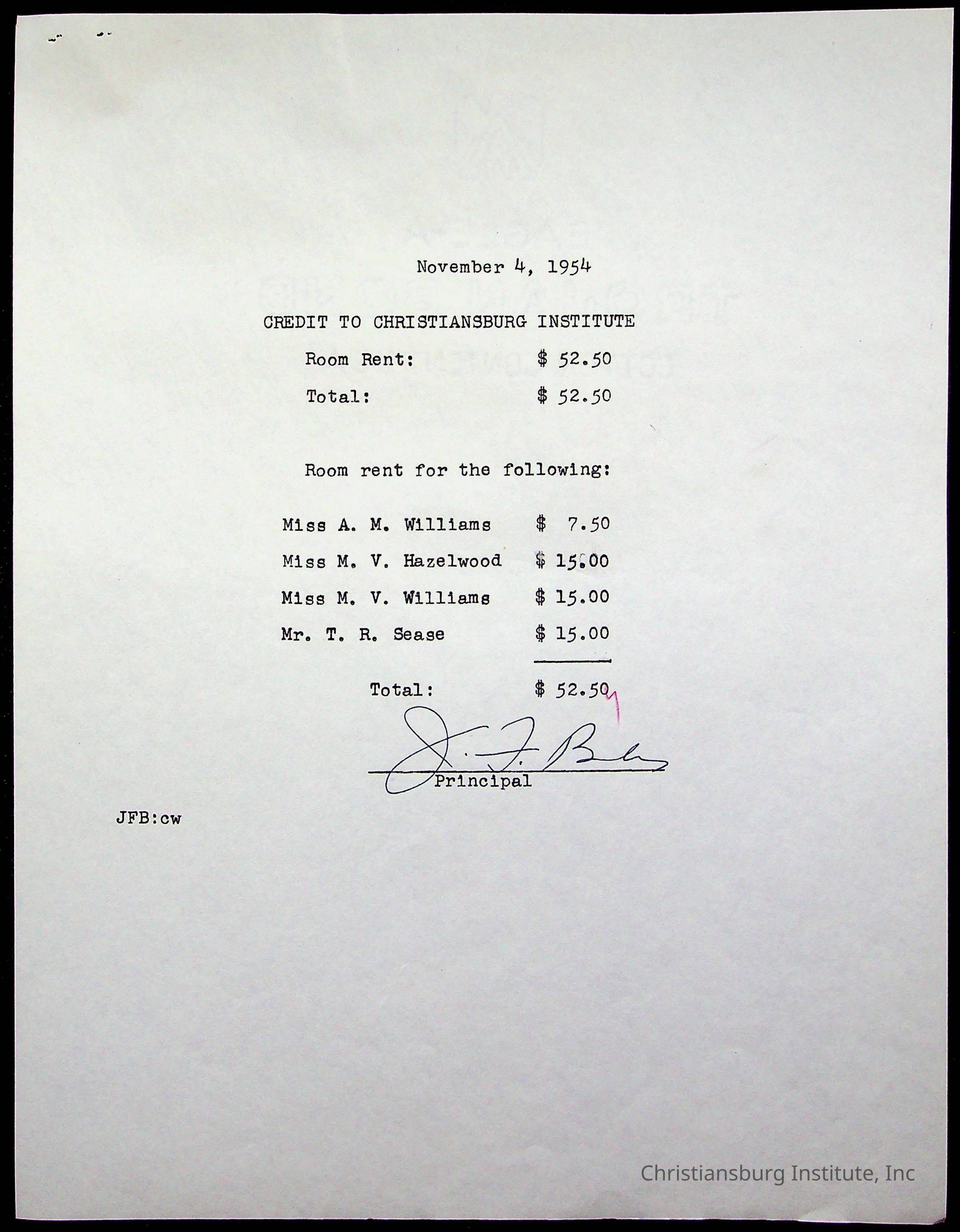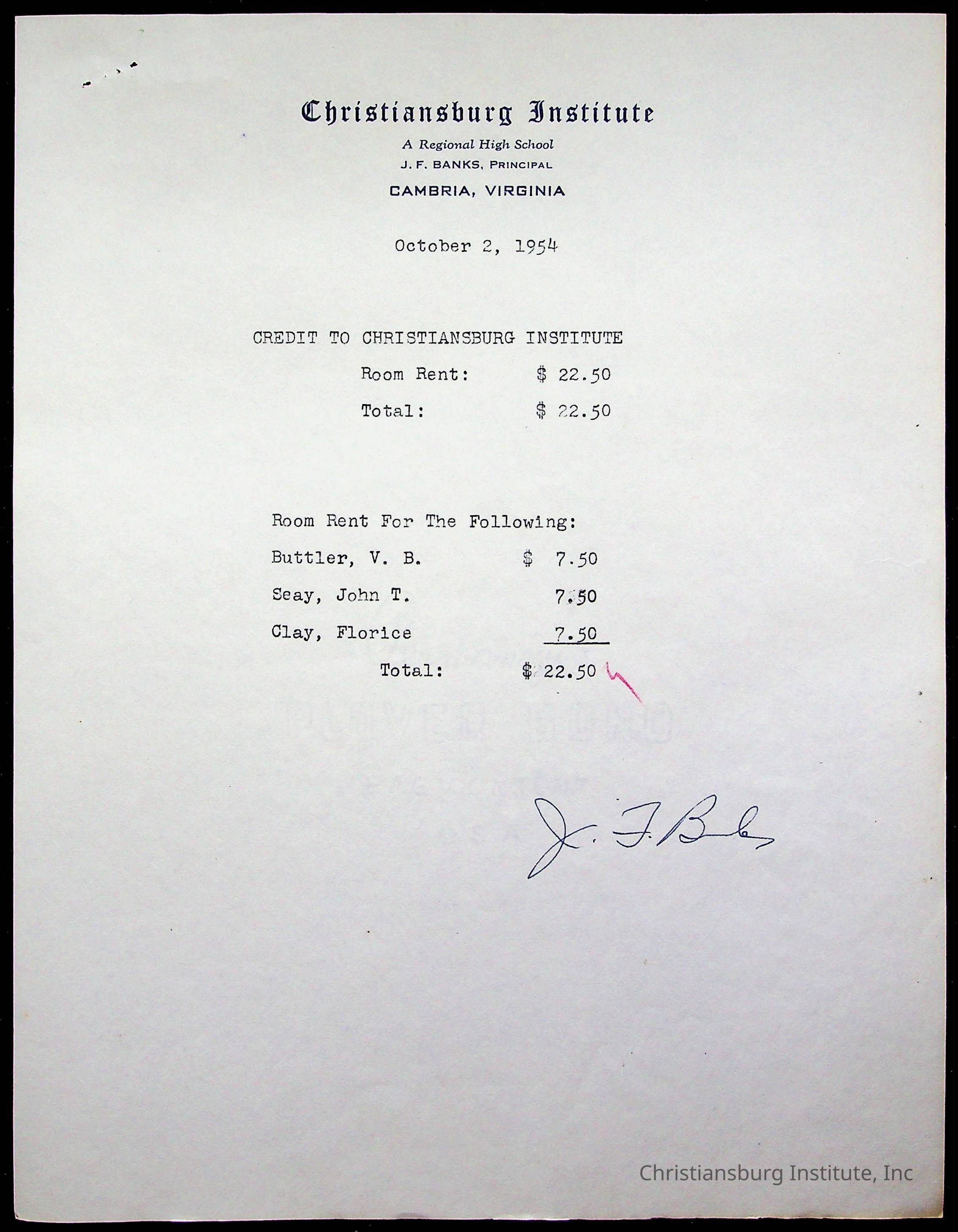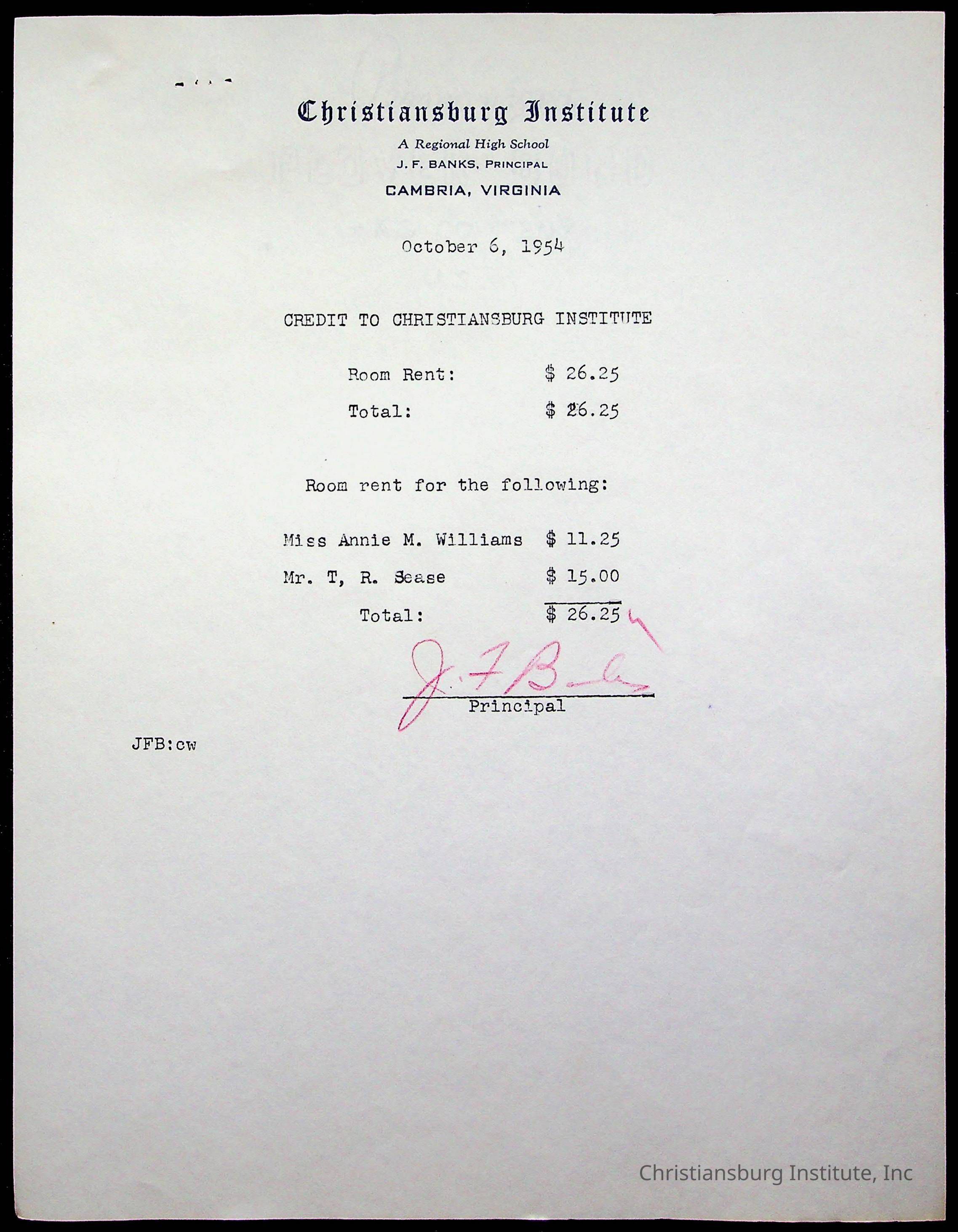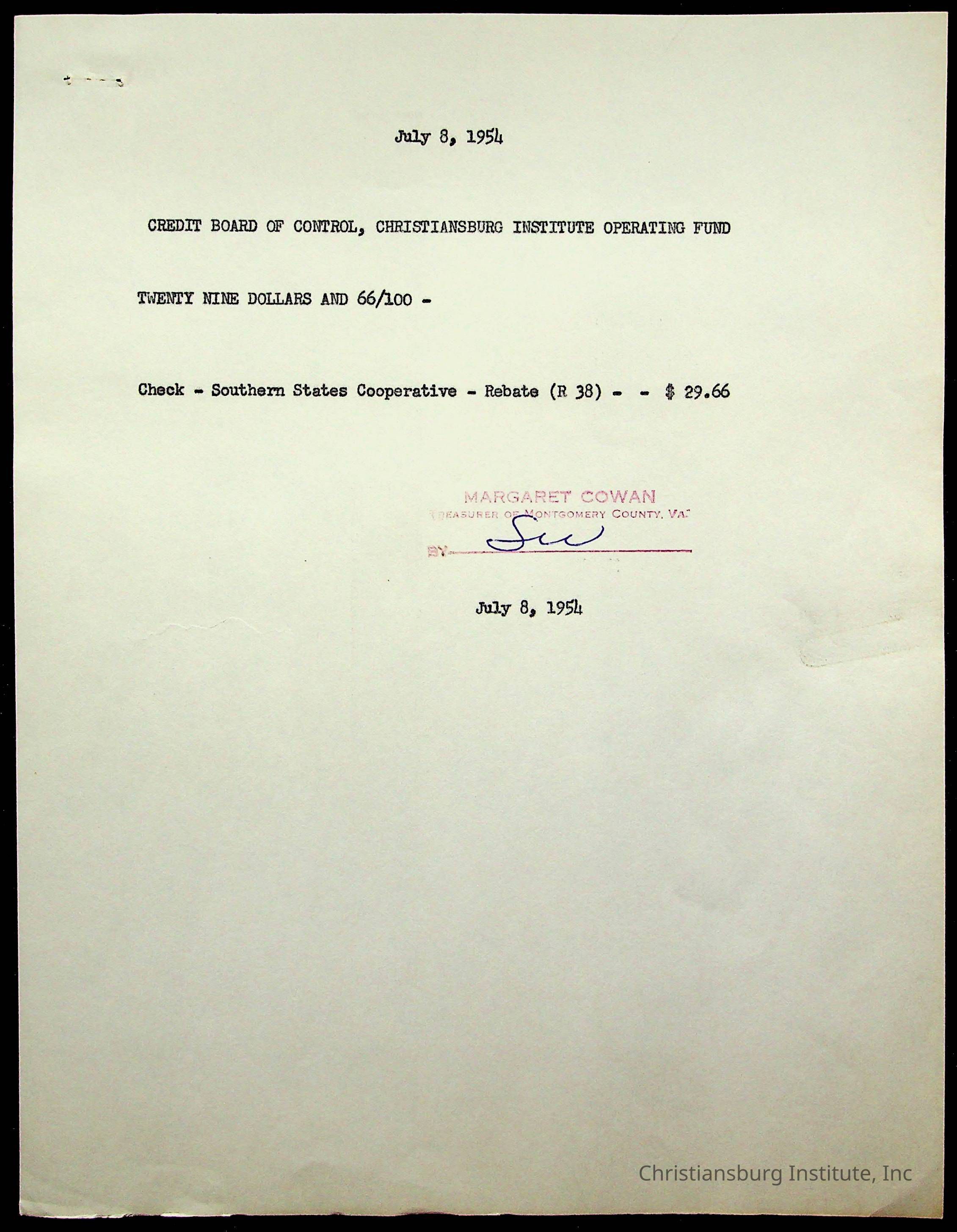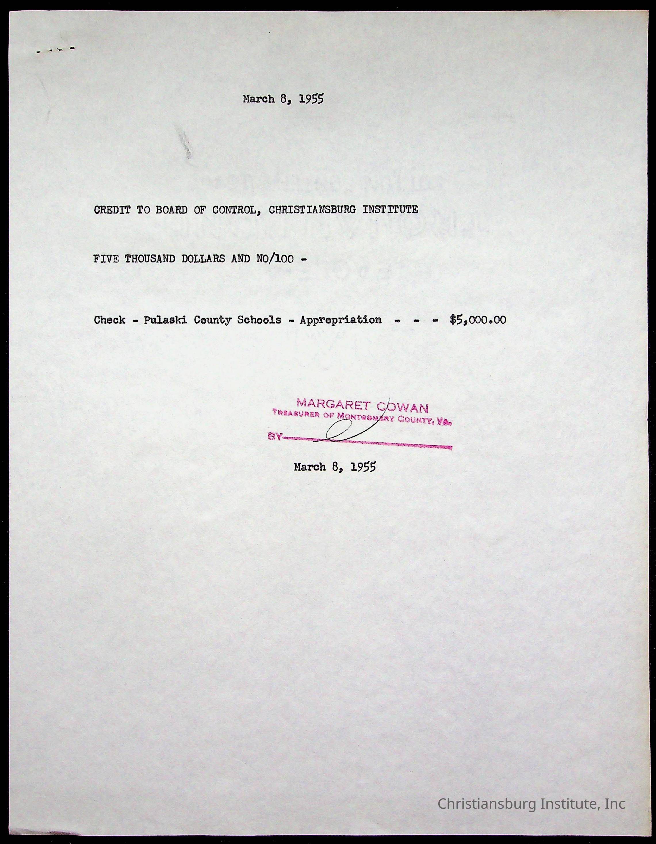 Christiansburg Institute Treasury Receipts, 1954-1955