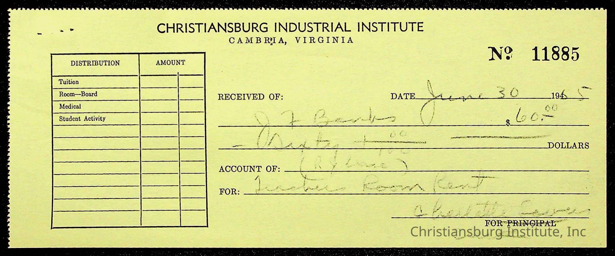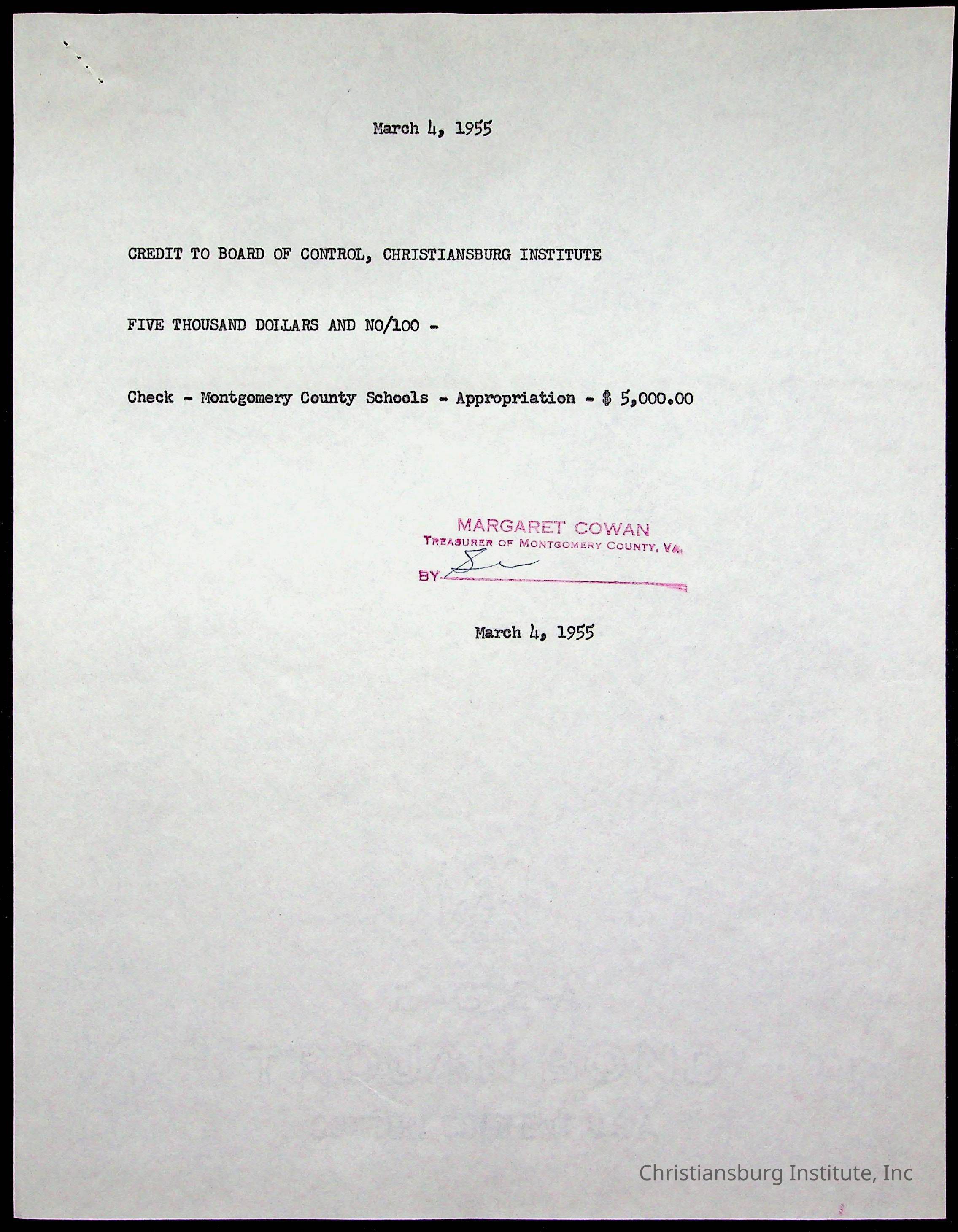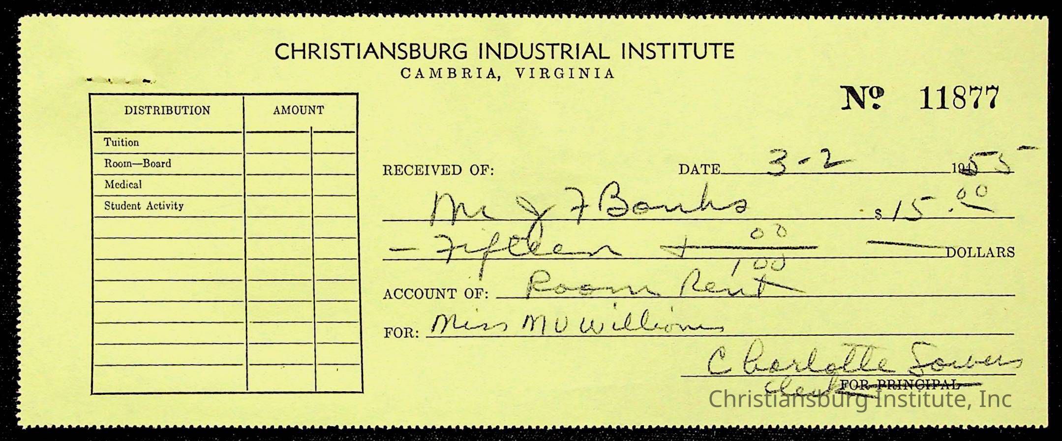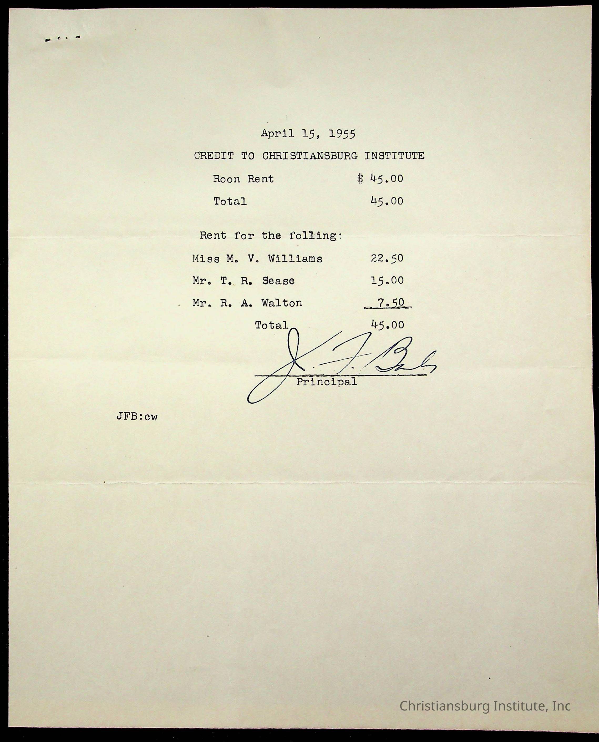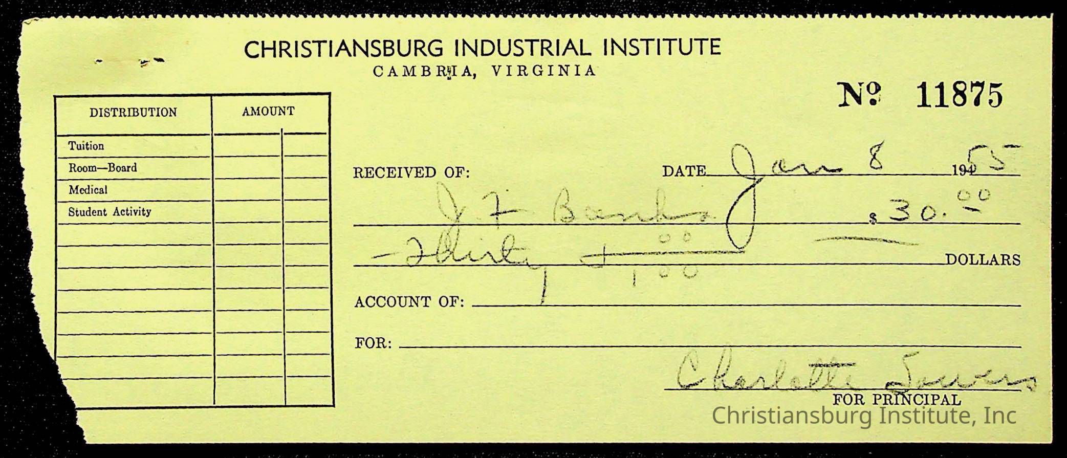 Christiansburg Institute Treasury Receipts, 1954-1955