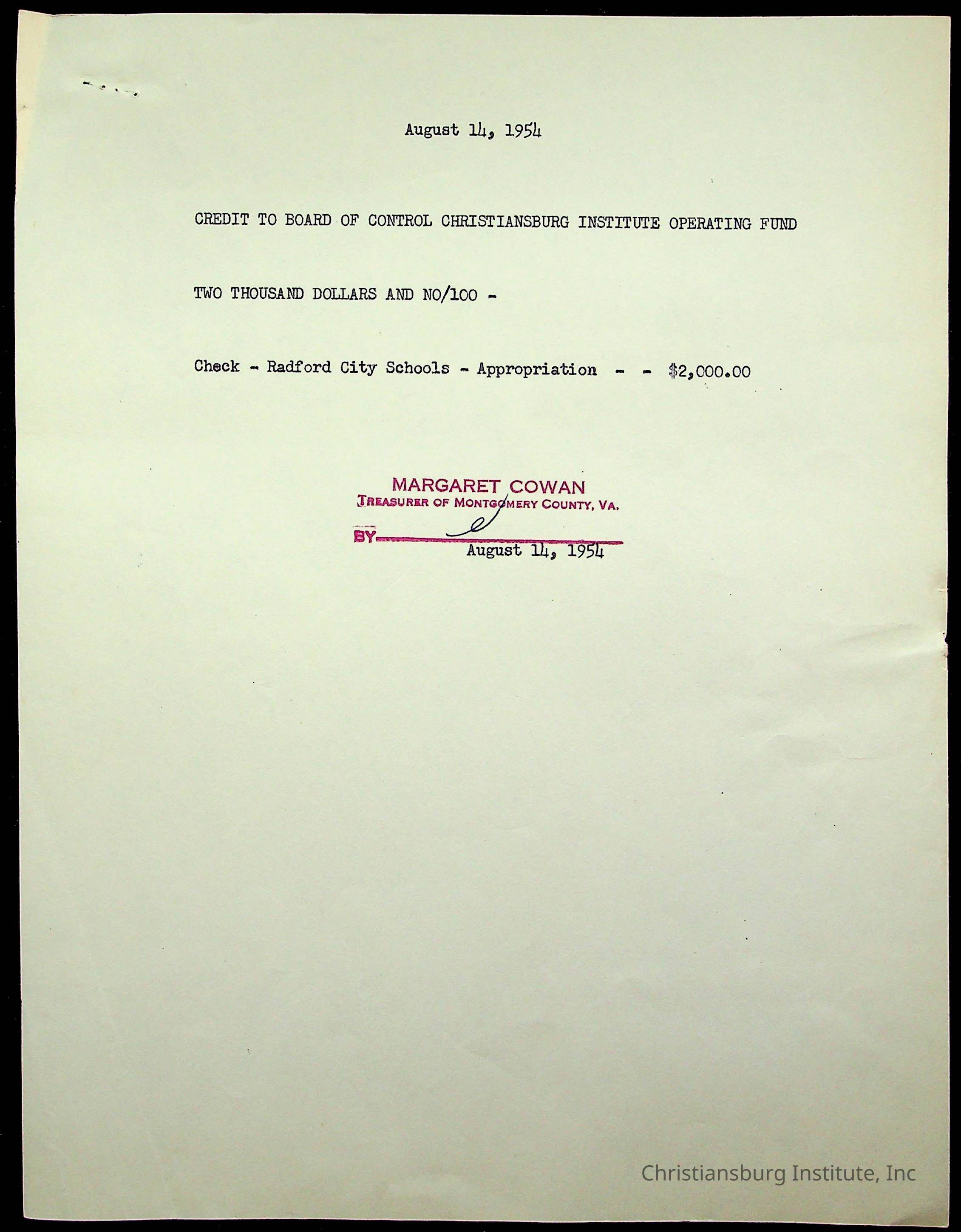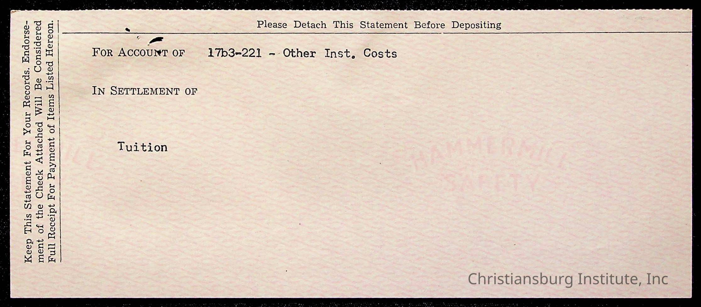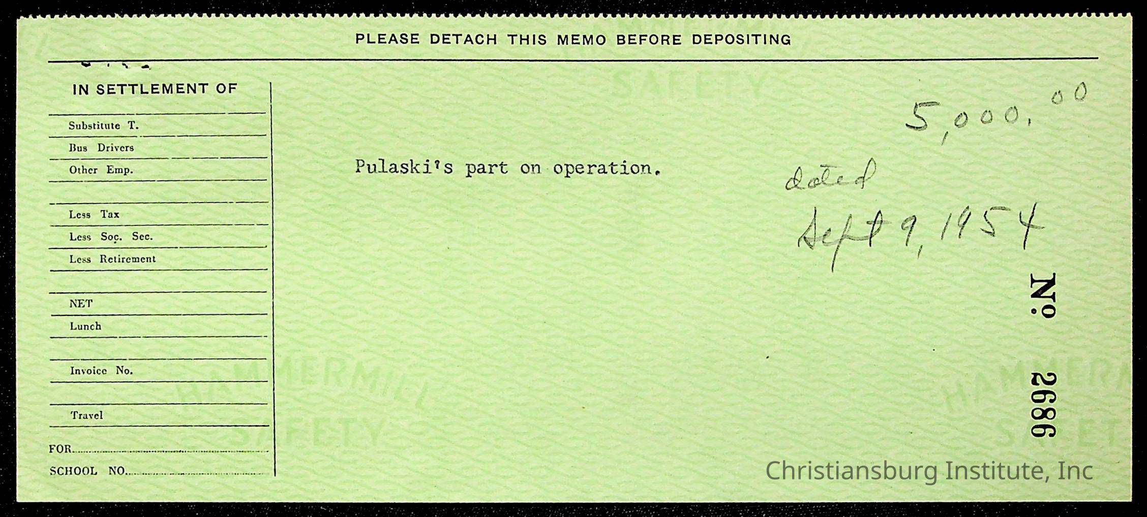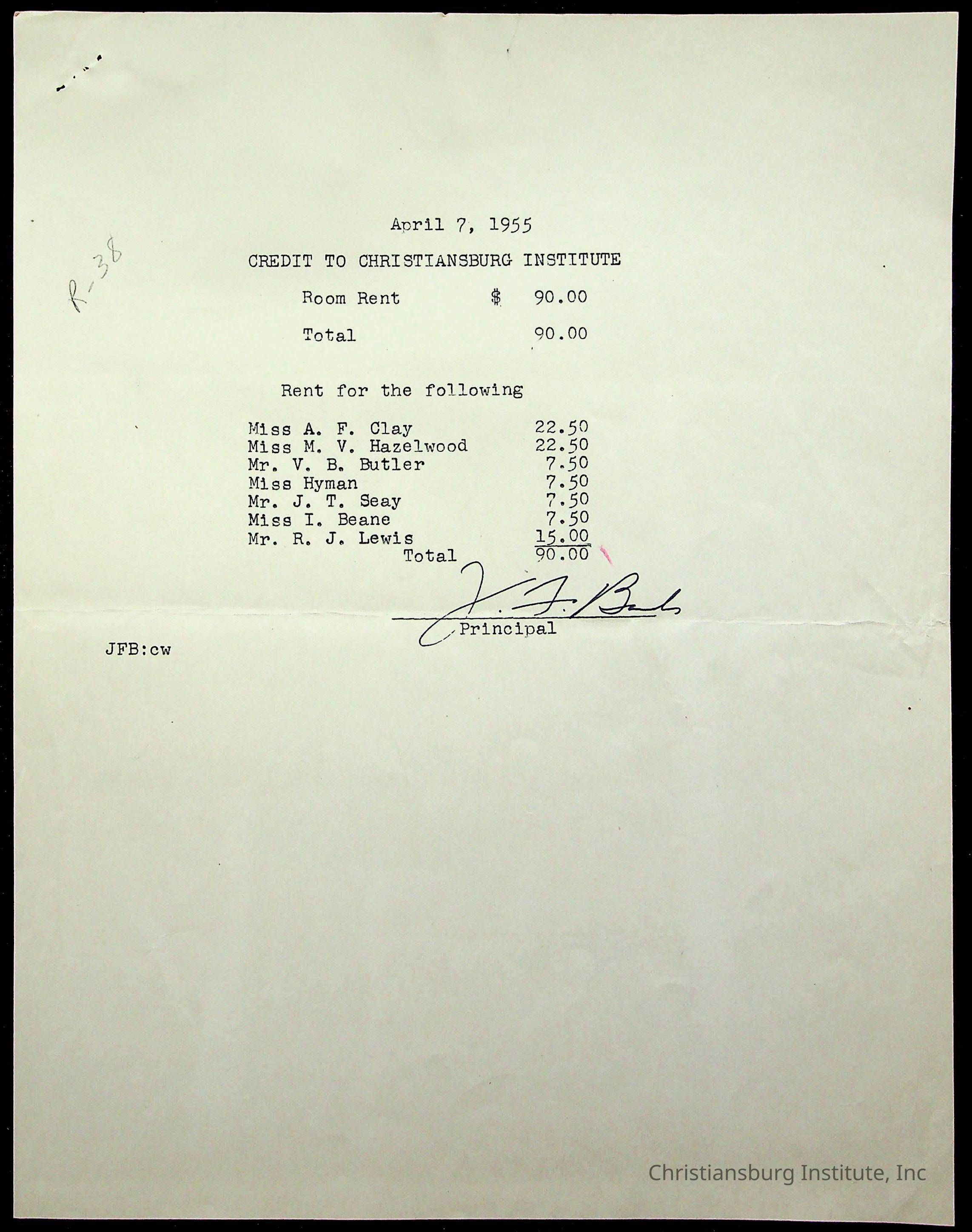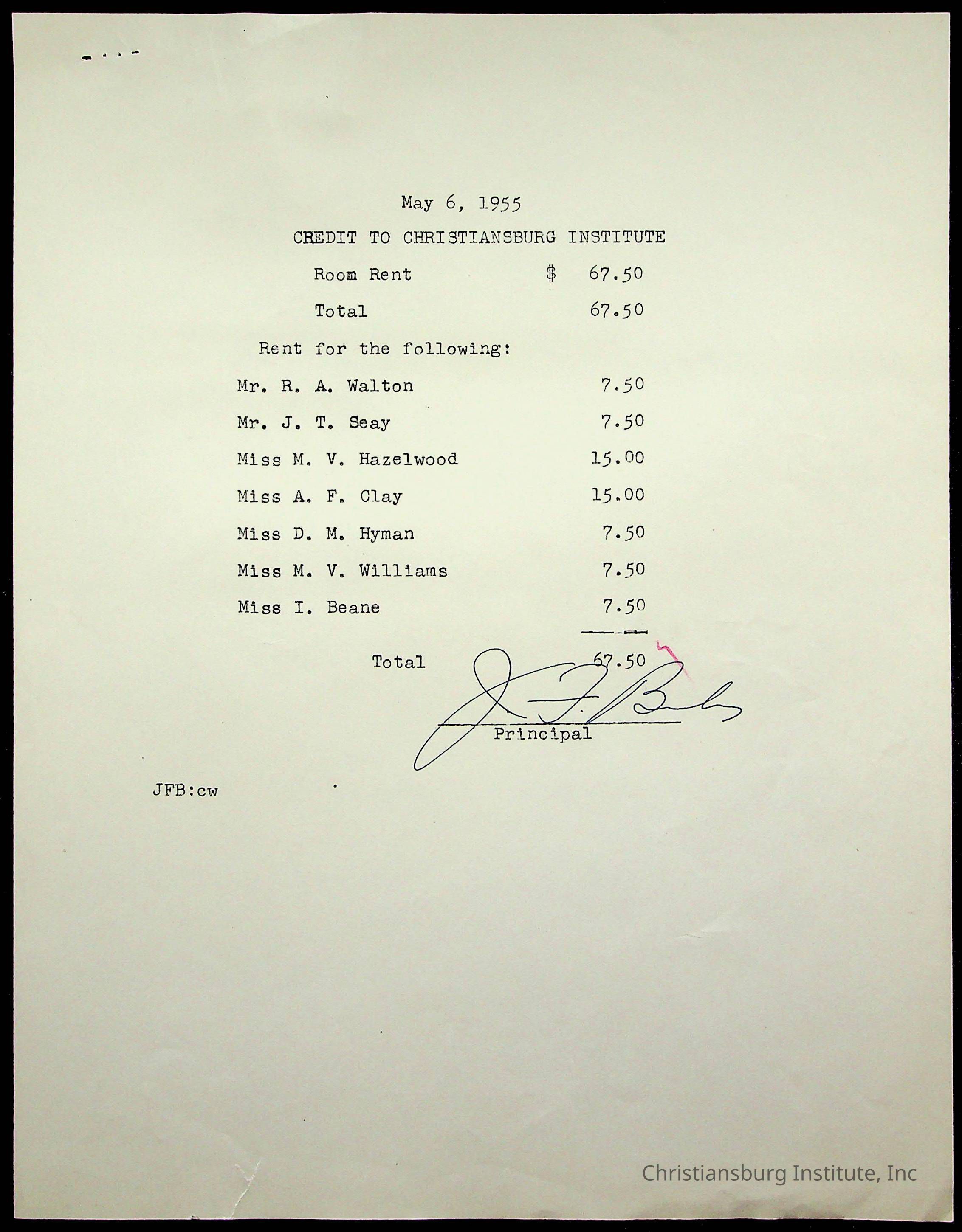 Christiansburg Institute Treasury Receipts, 1954-1955