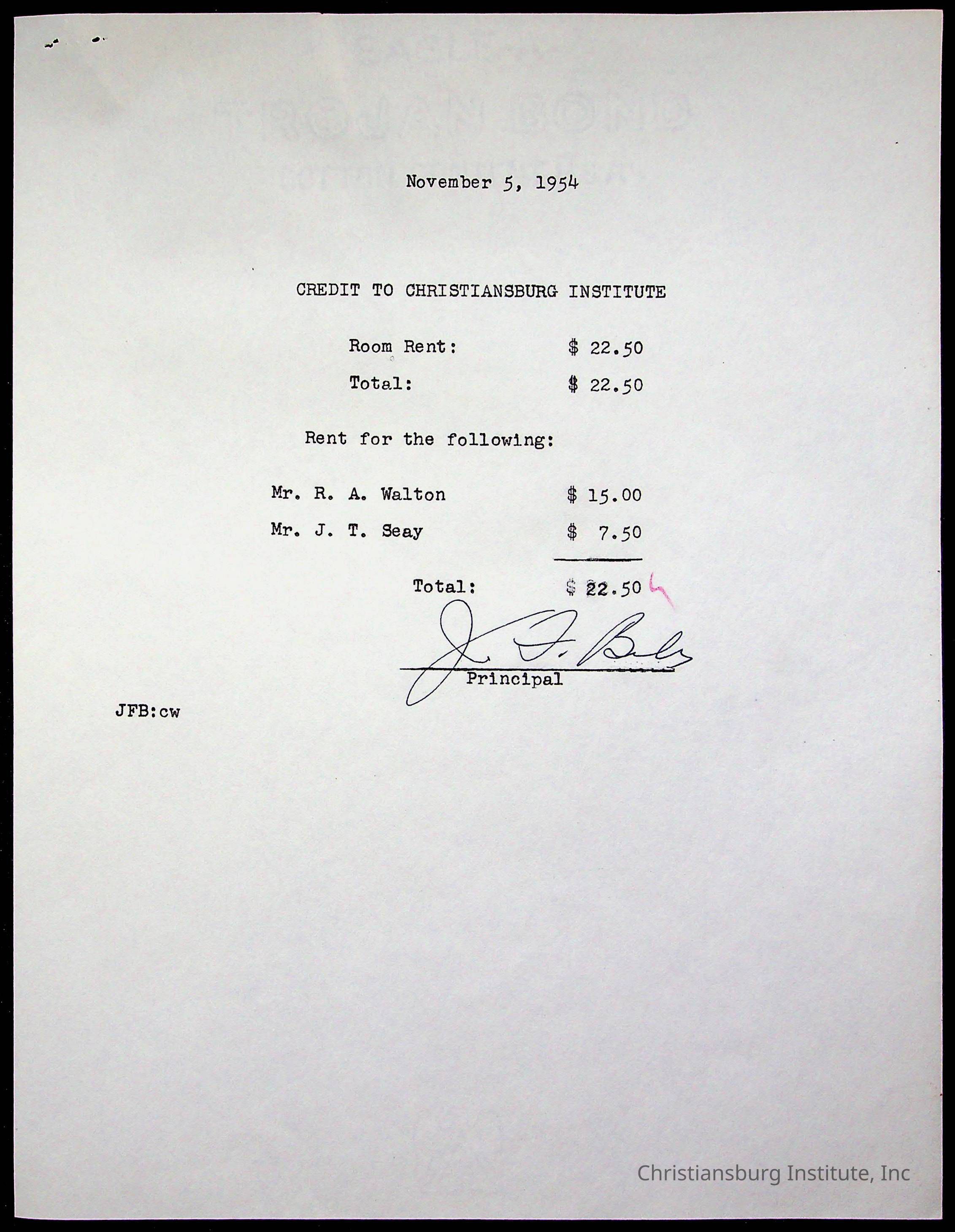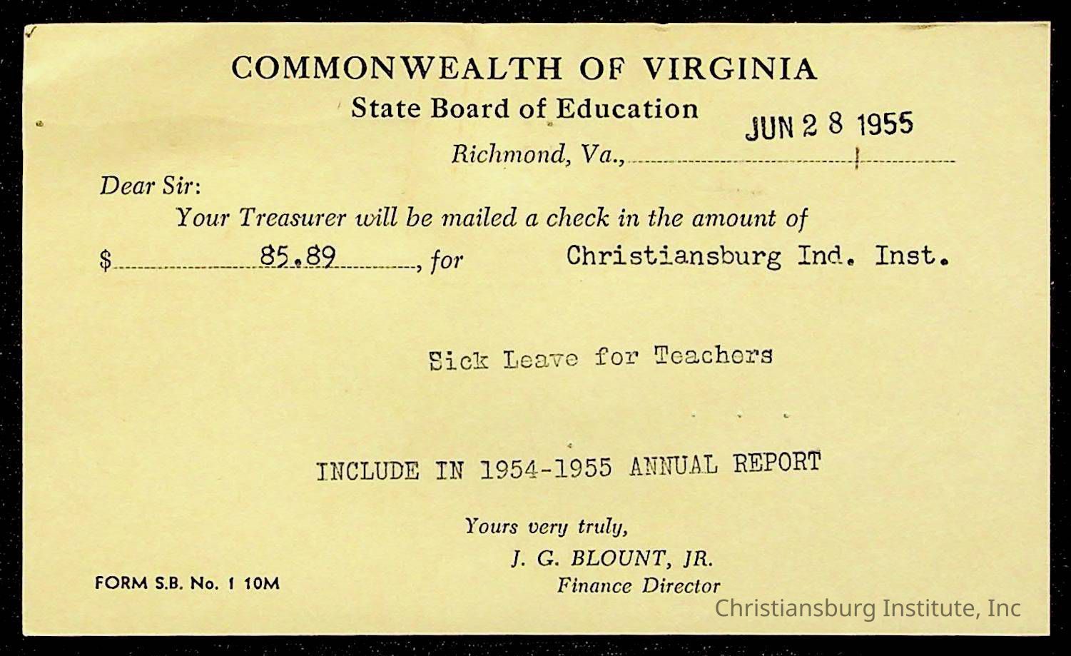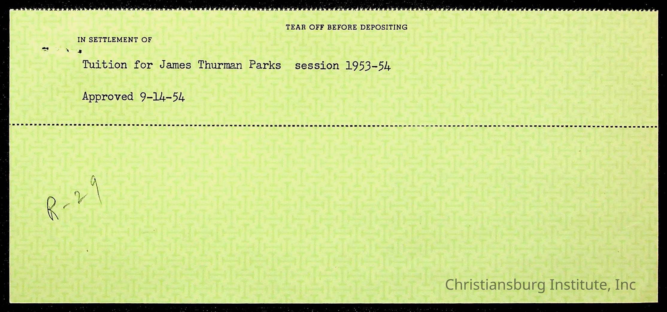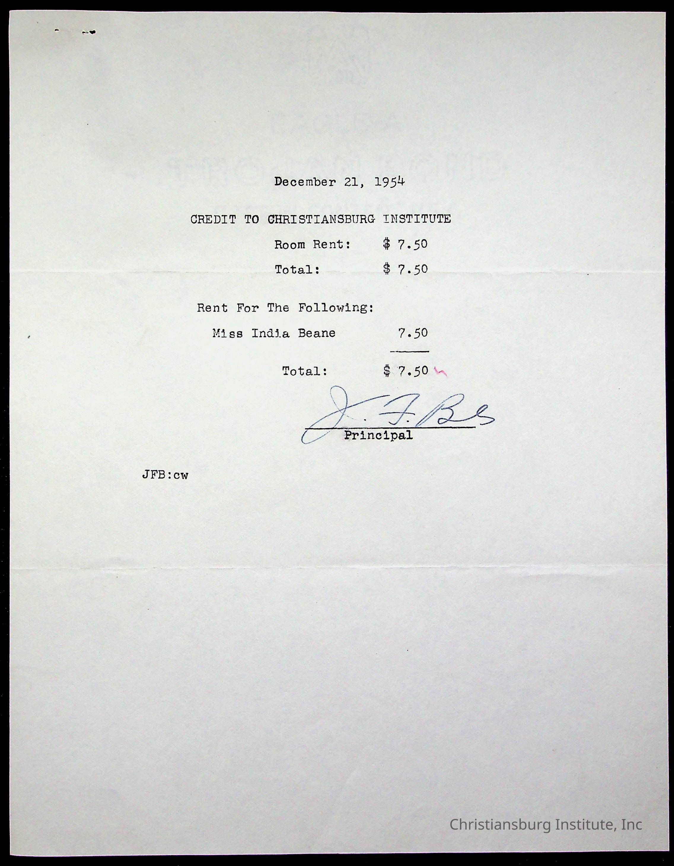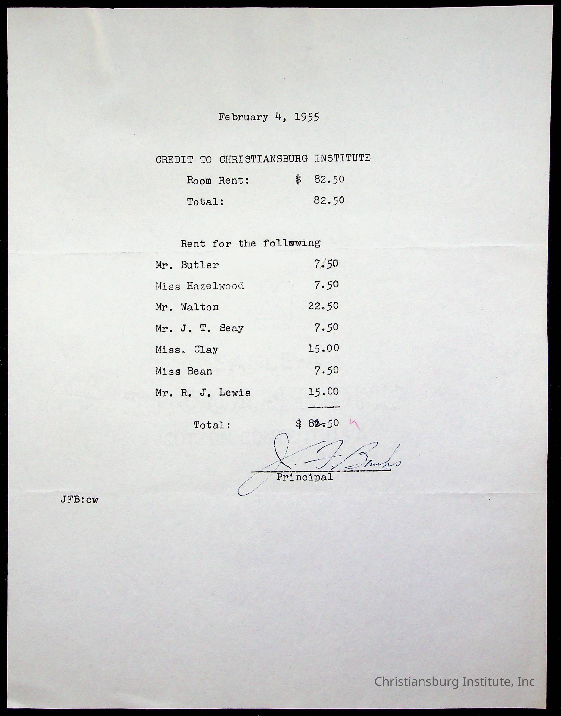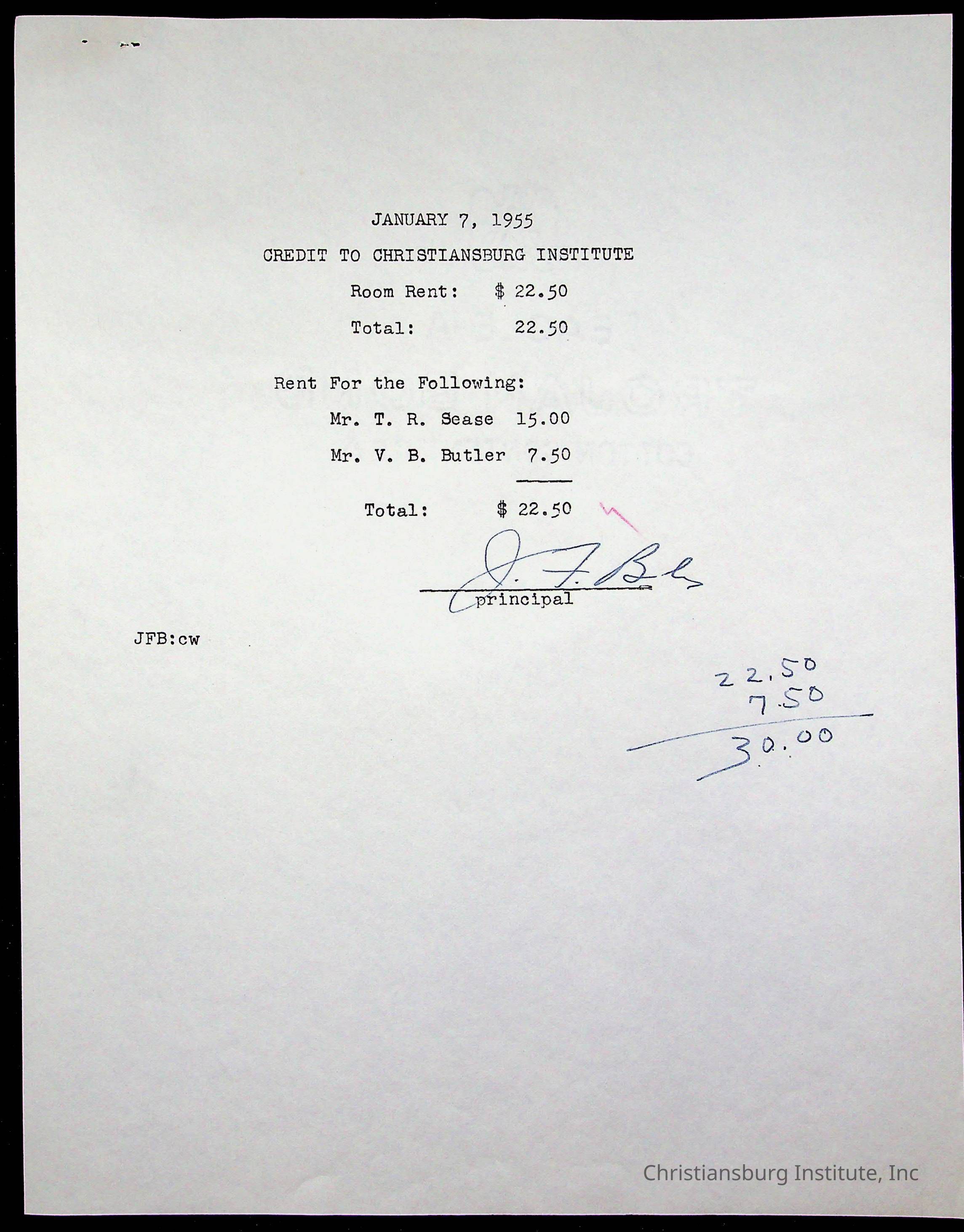 Christiansburg Institute Treasury Receipts, 1954-1955
