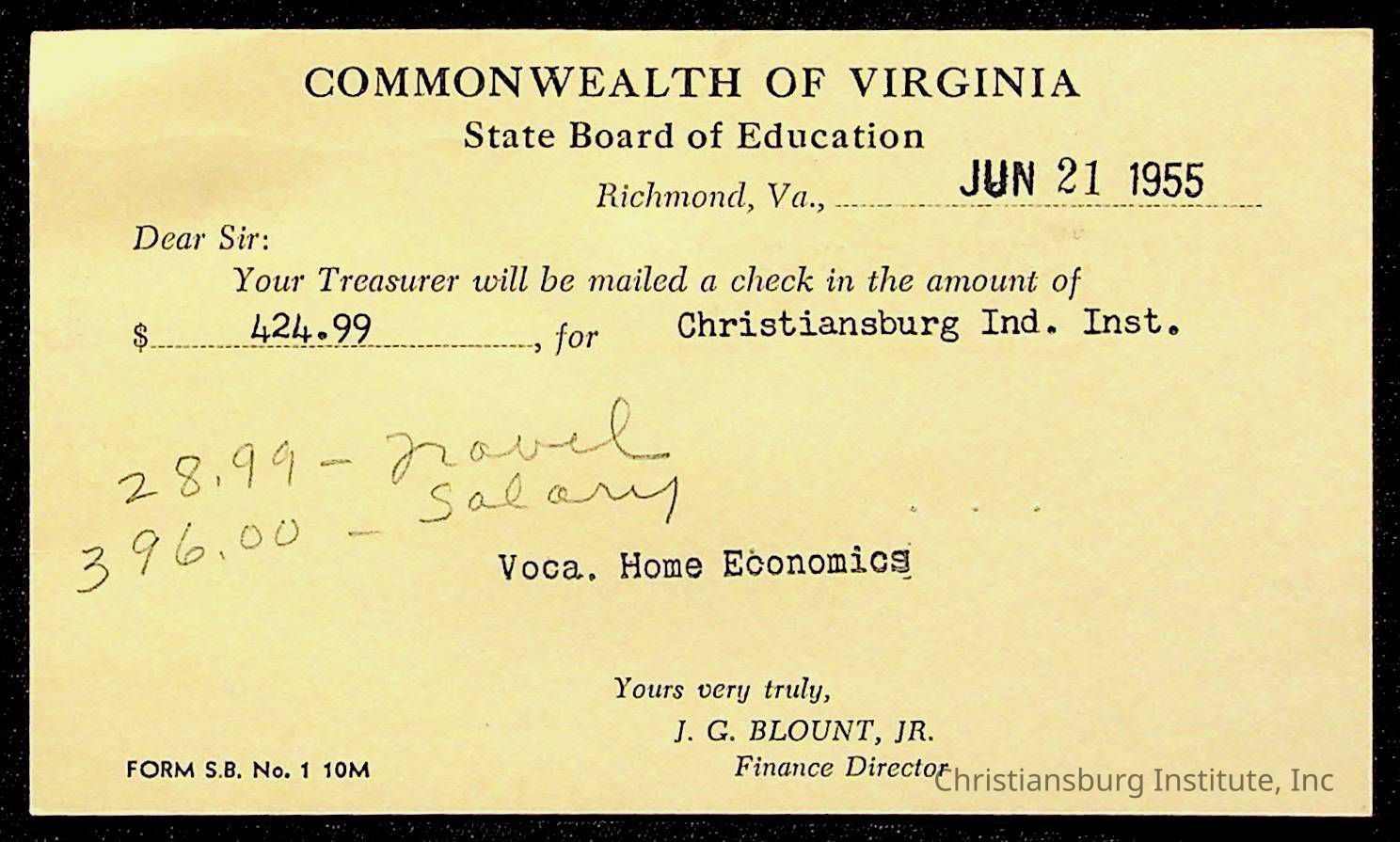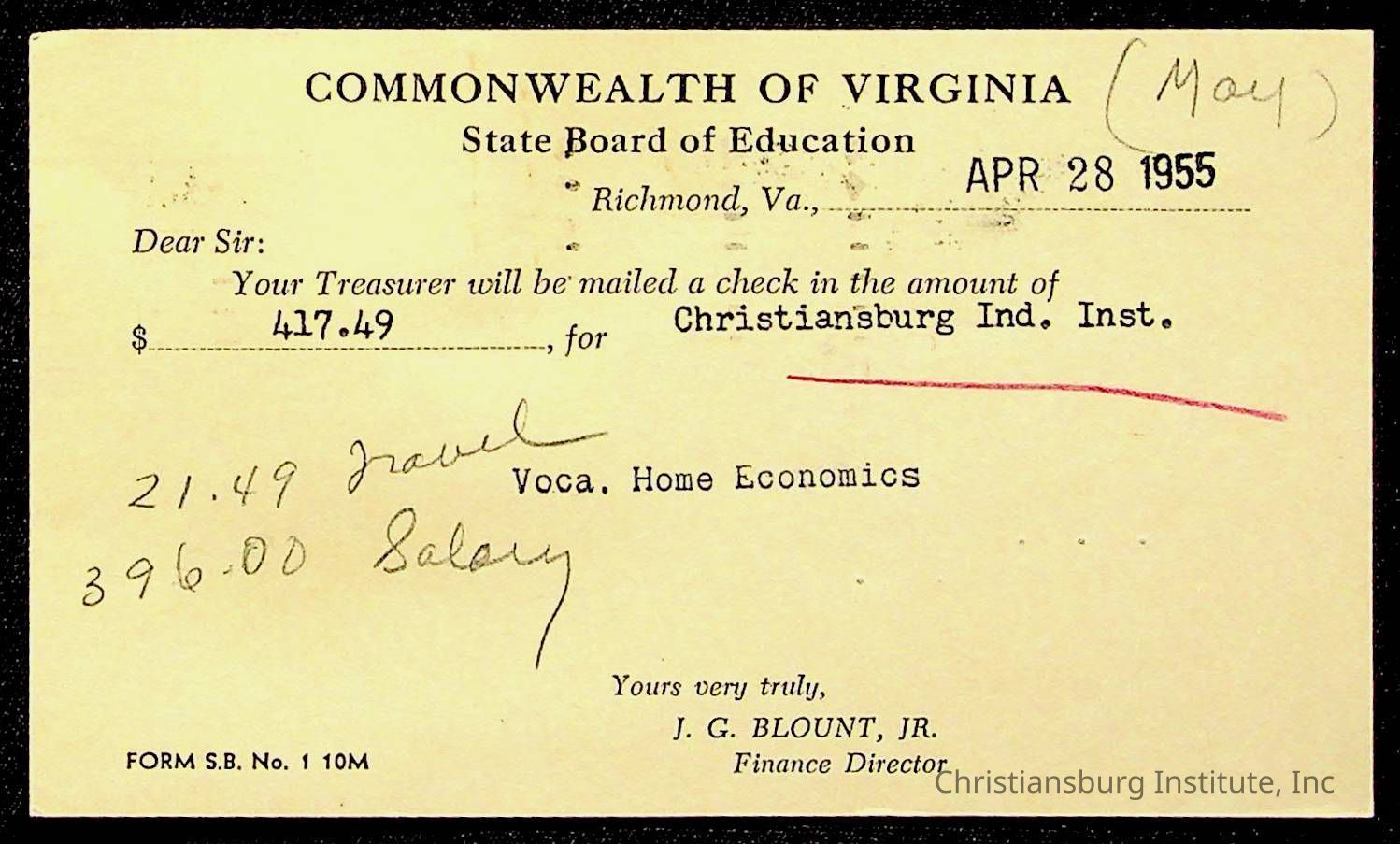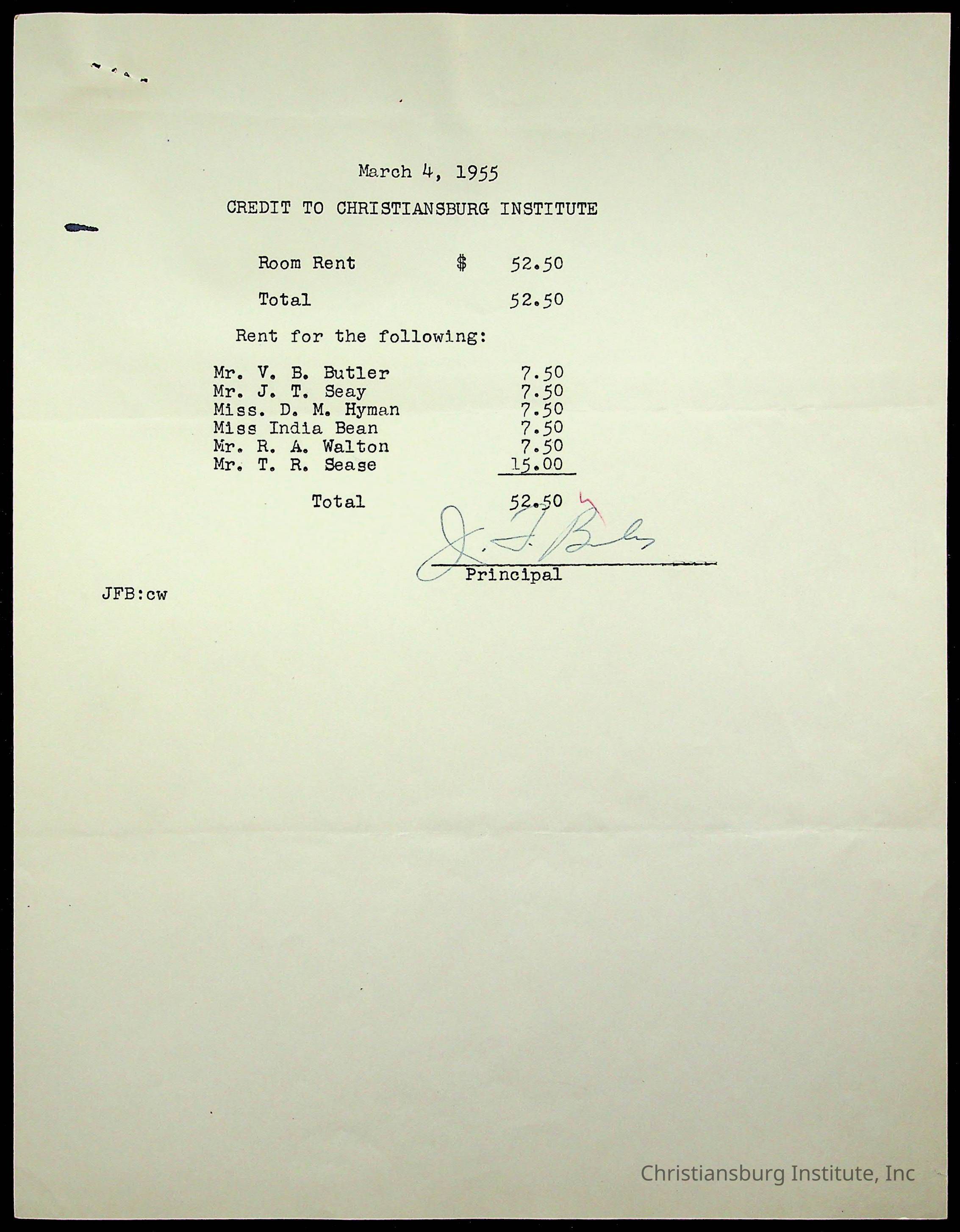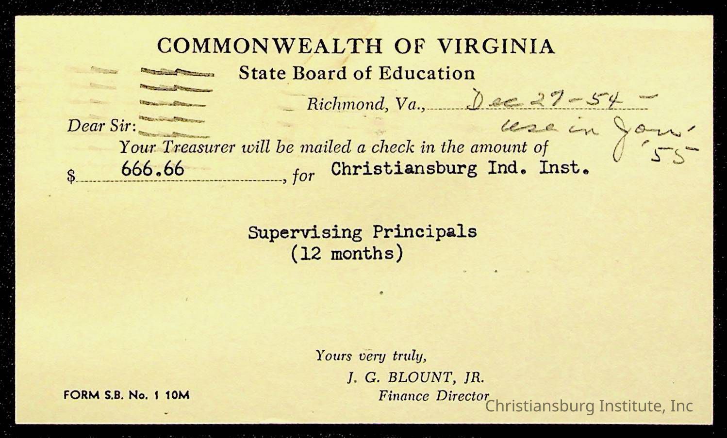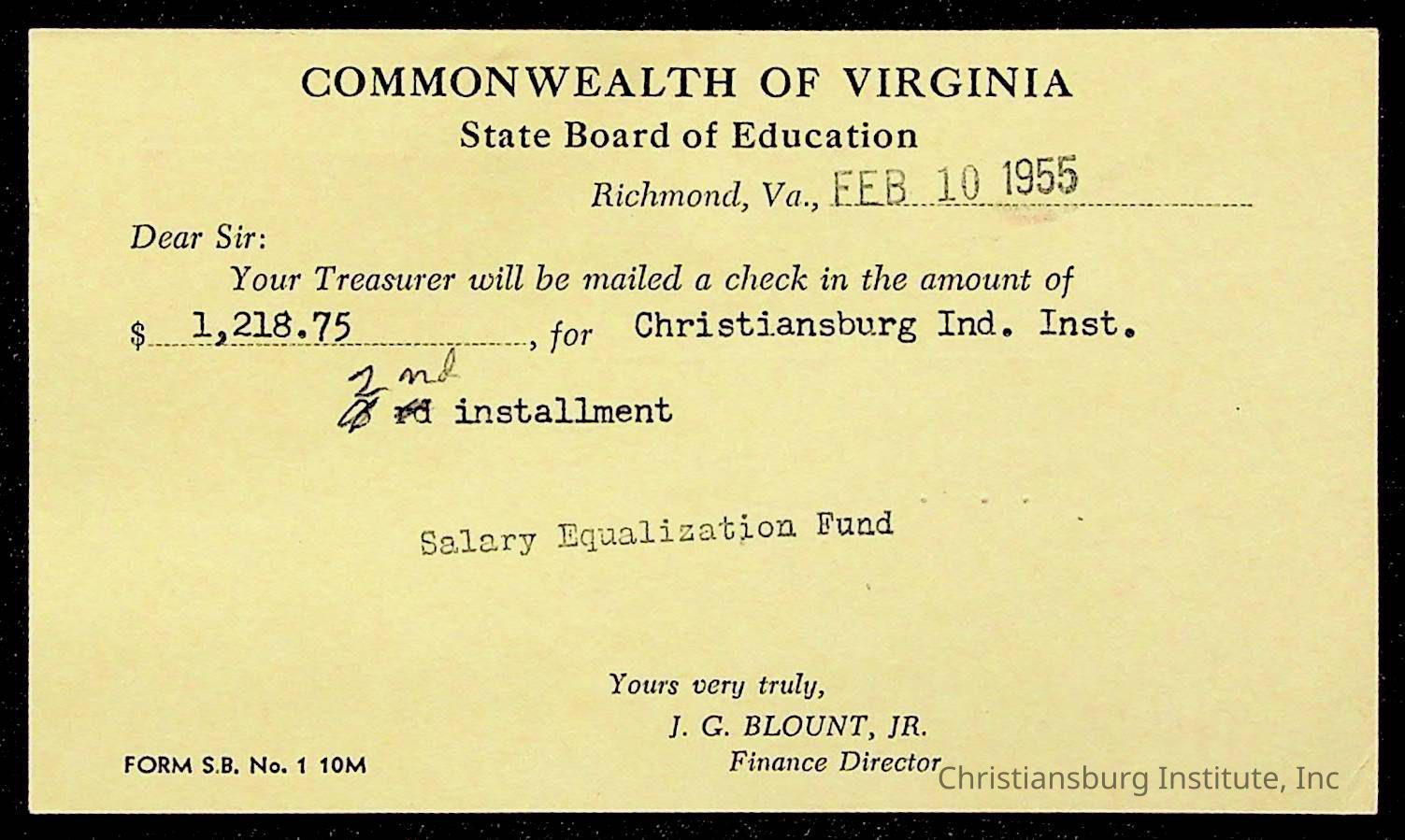 Christiansburg Institute Treasury Receipts, 1954-1955