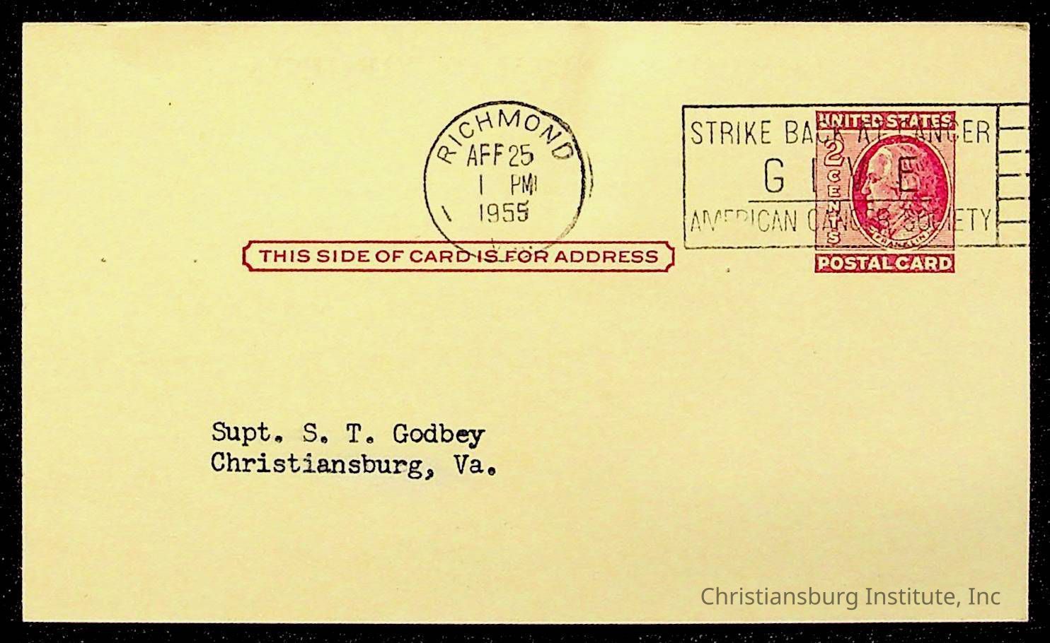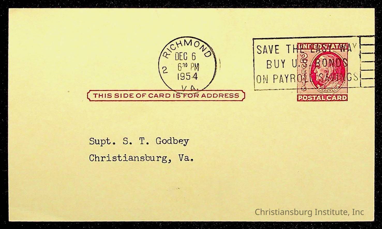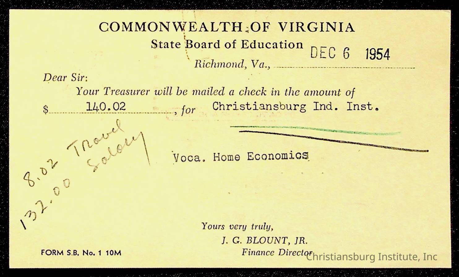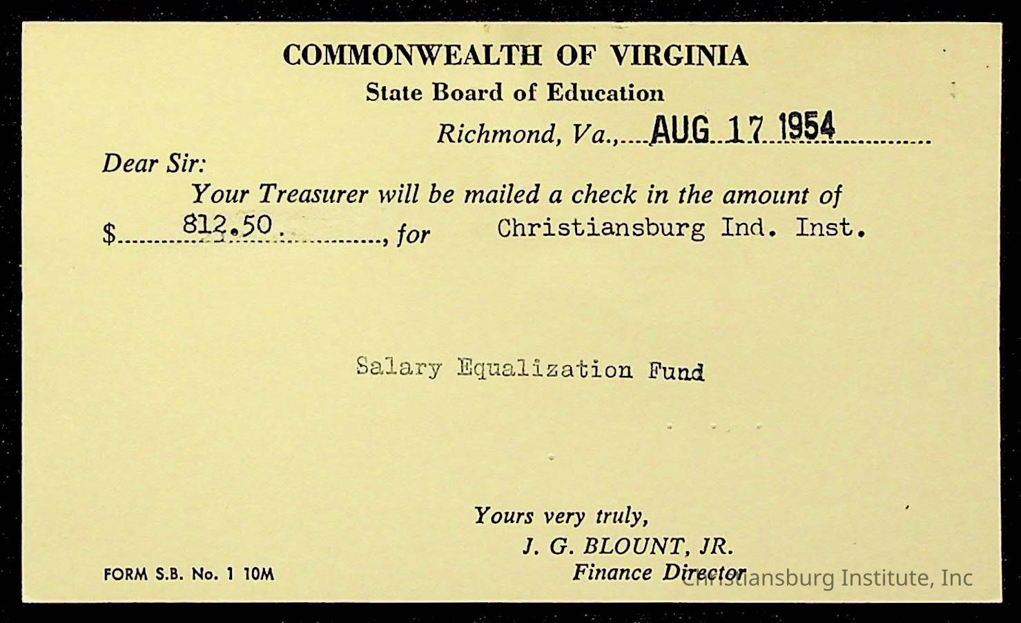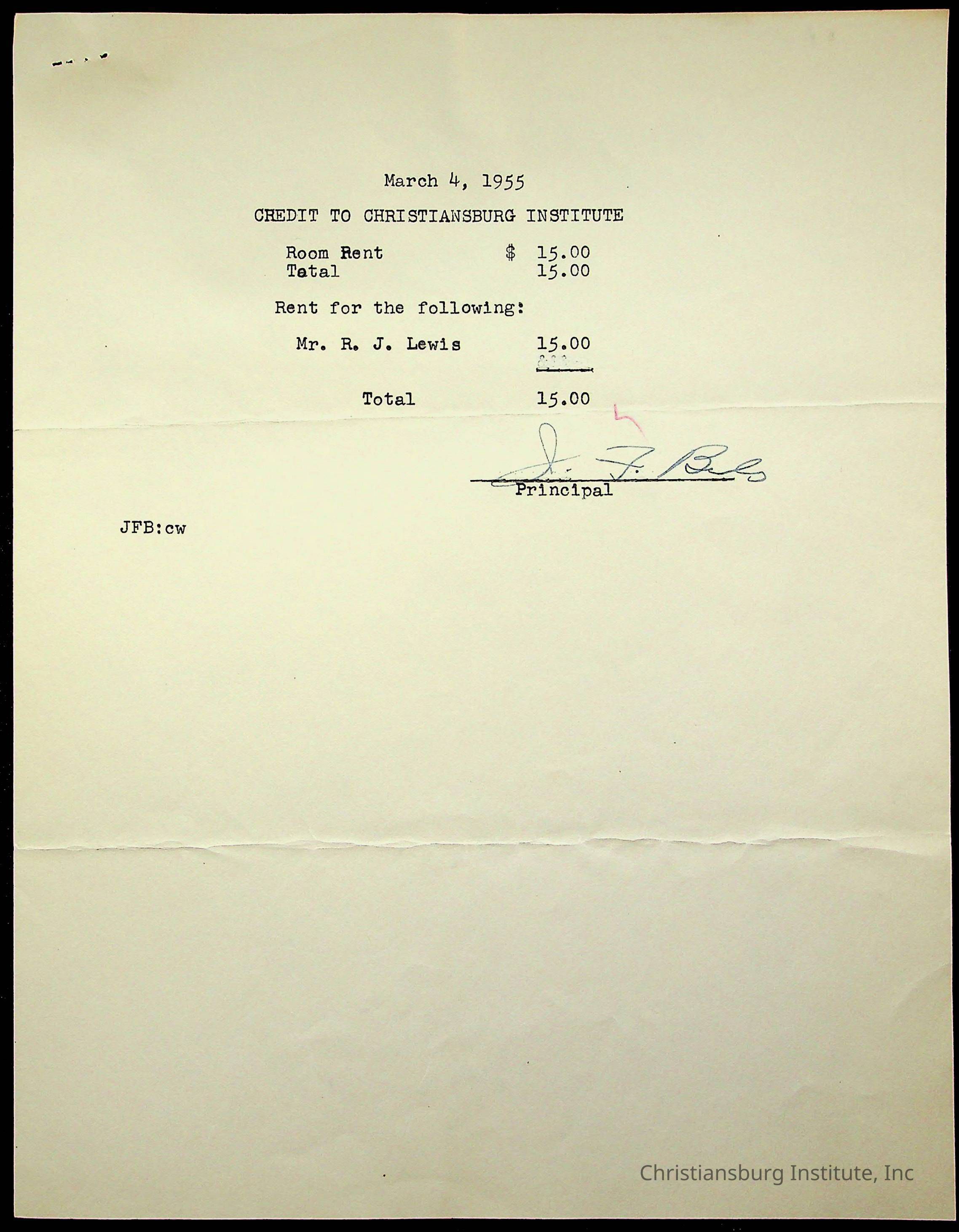 Christiansburg Institute Treasury Receipts, 1954-1955