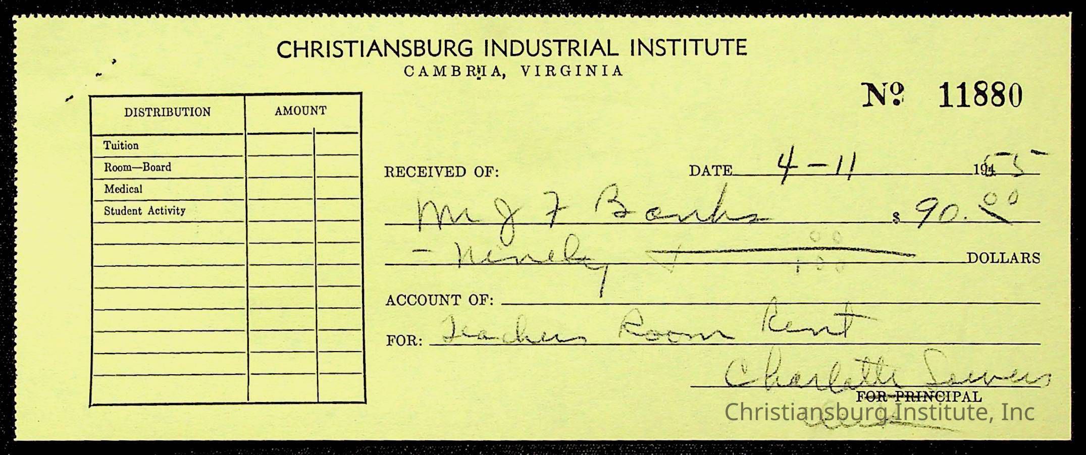 Copyright has been assigned to Christiansburg Institute Museum & Archives by Montgomery County Public Schools. For permission to publish materials created by the donor, contact CIMA@christiansburginstitute.com. Materials not created by Christiansburg Industrial Institute may still be under copyright.