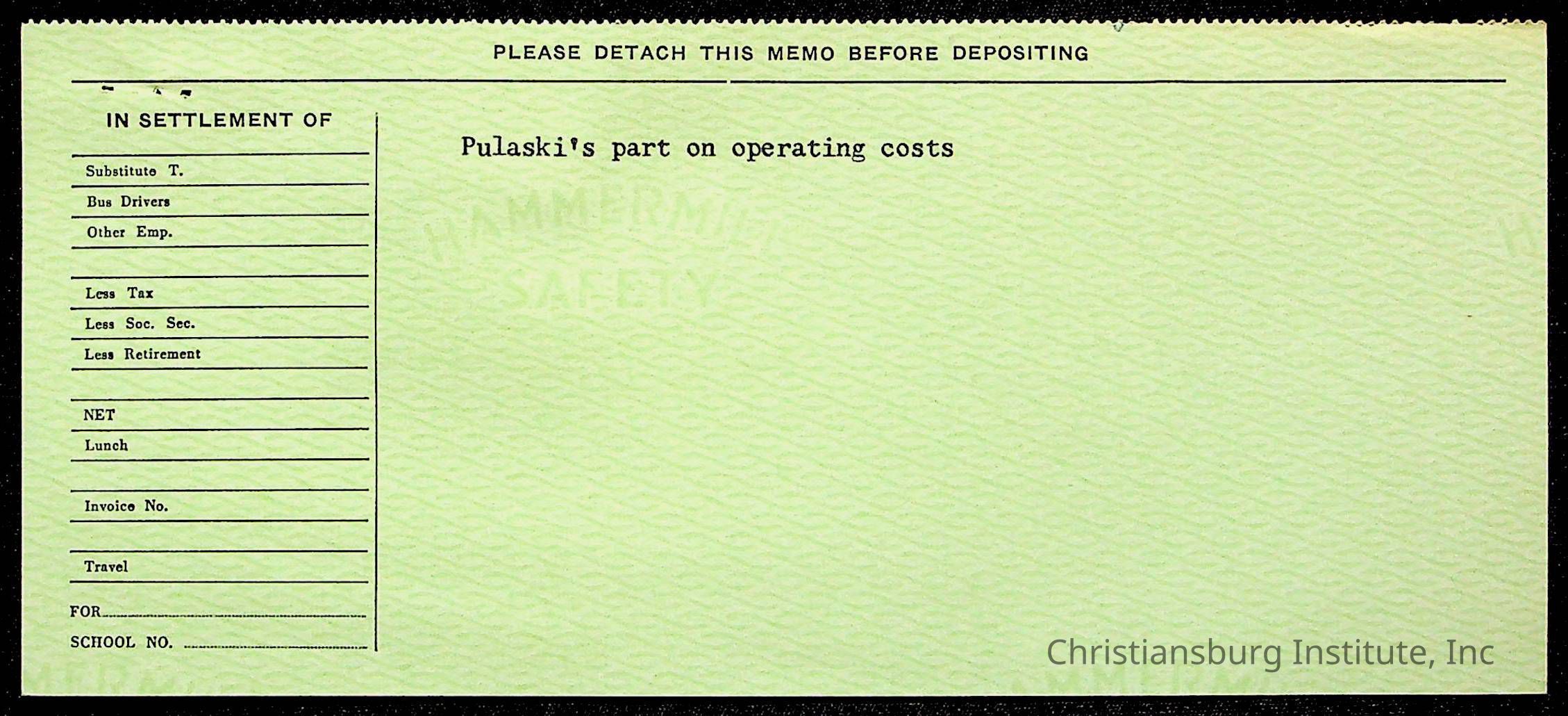 An archive of treasury receipts for Christiansburg Institute for the 1954-1955 school year.