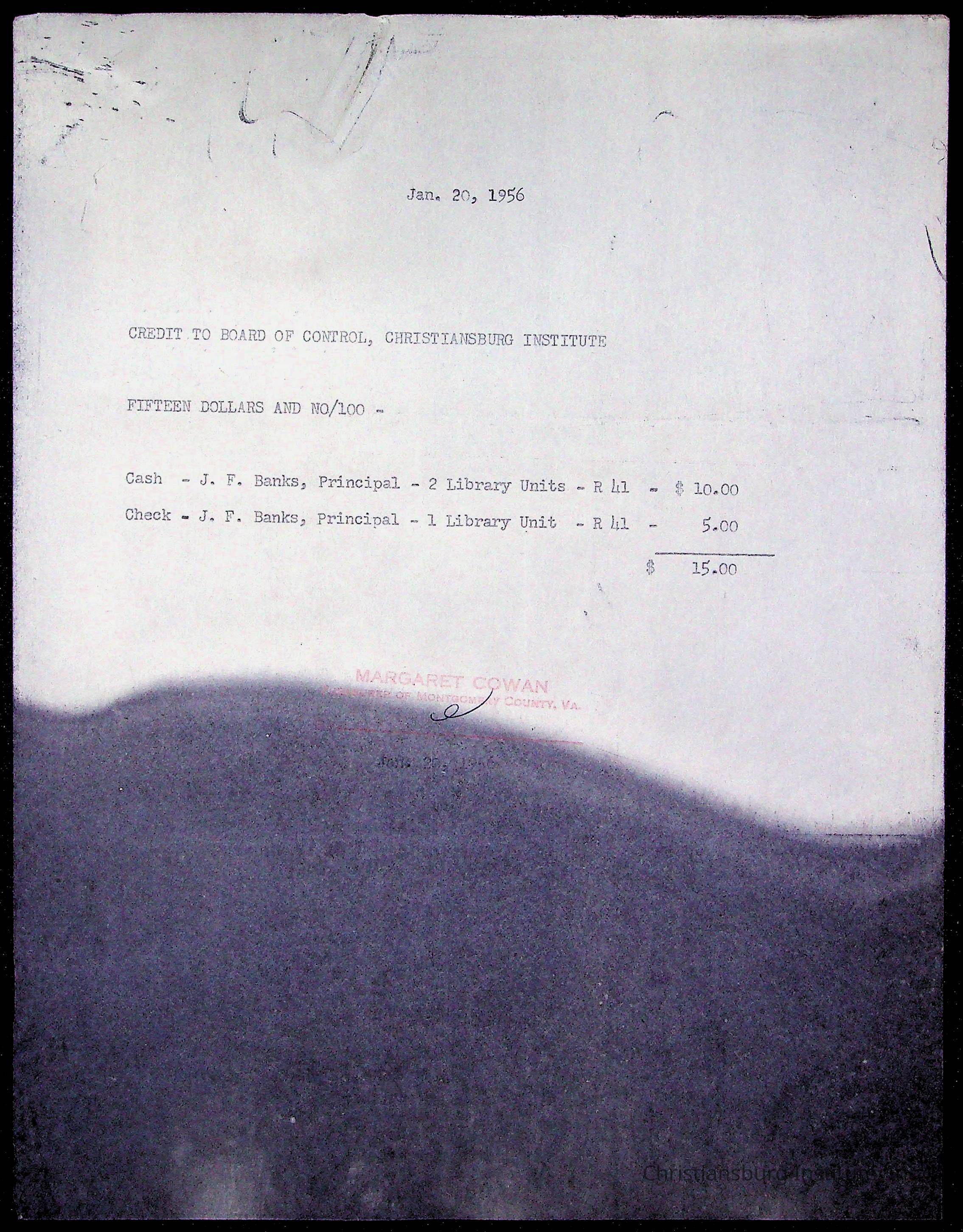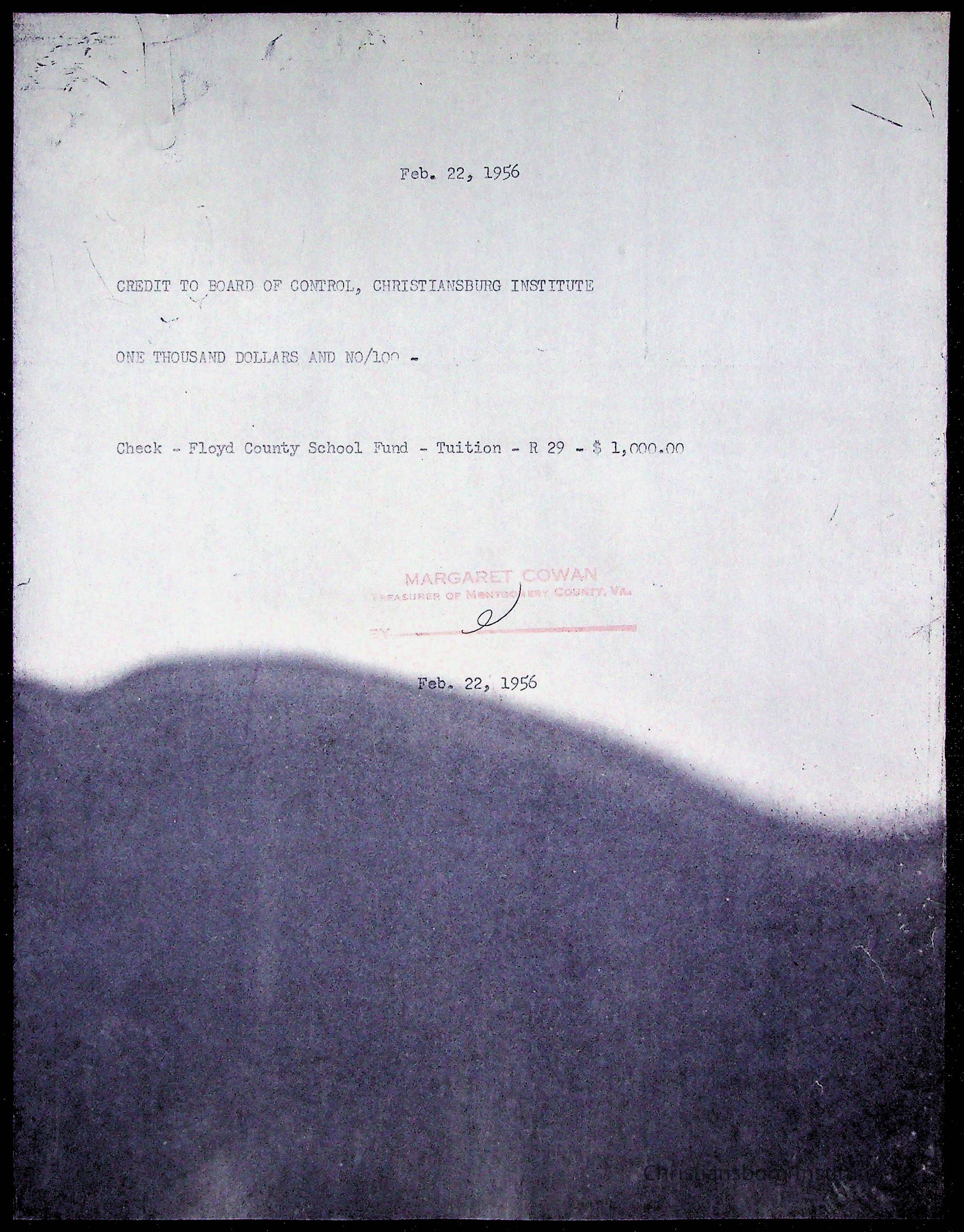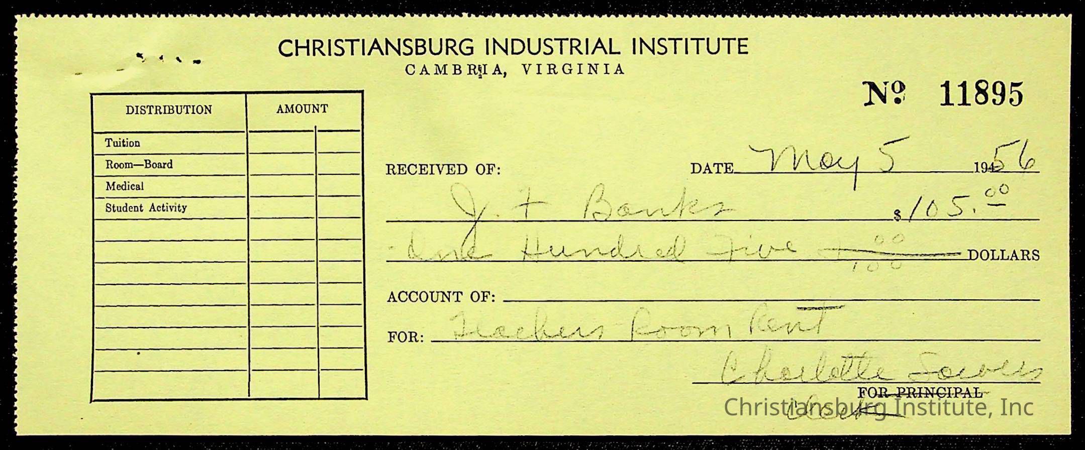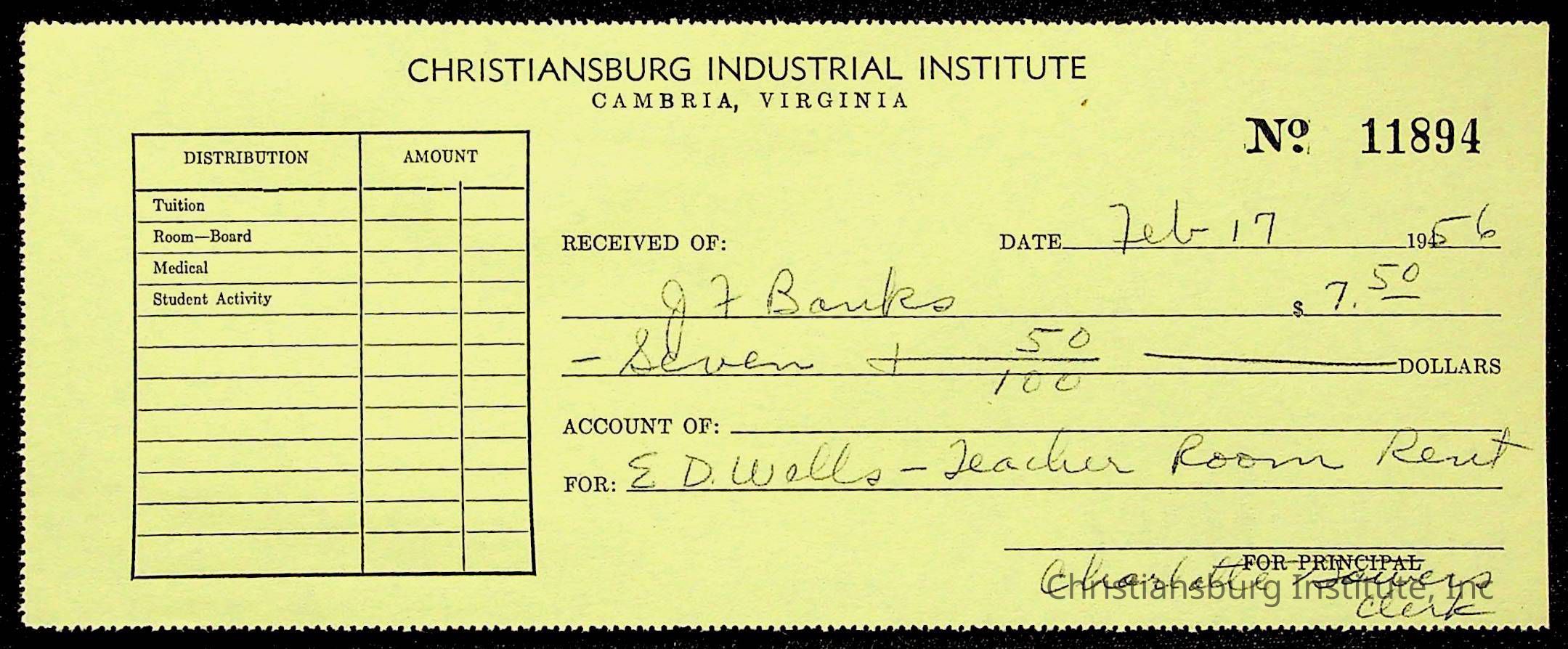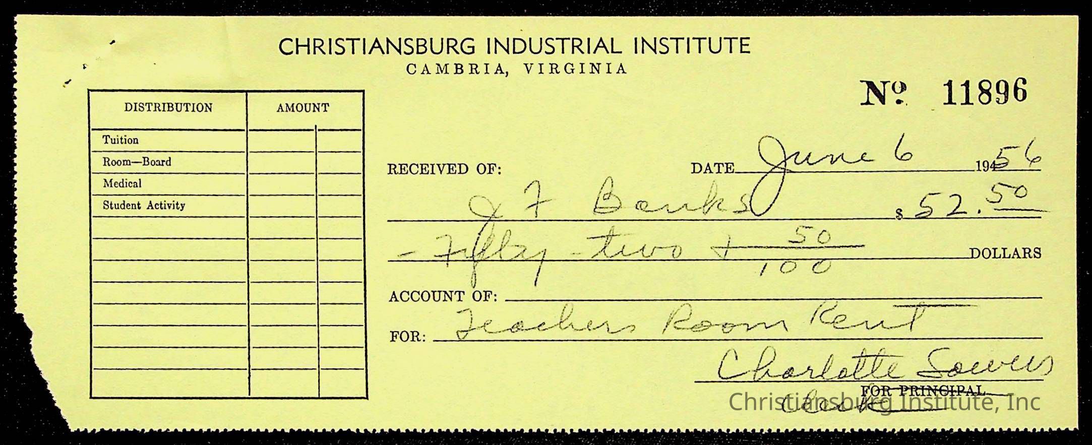 Christiansburg Institute Treasury Receipts, 1955-1956