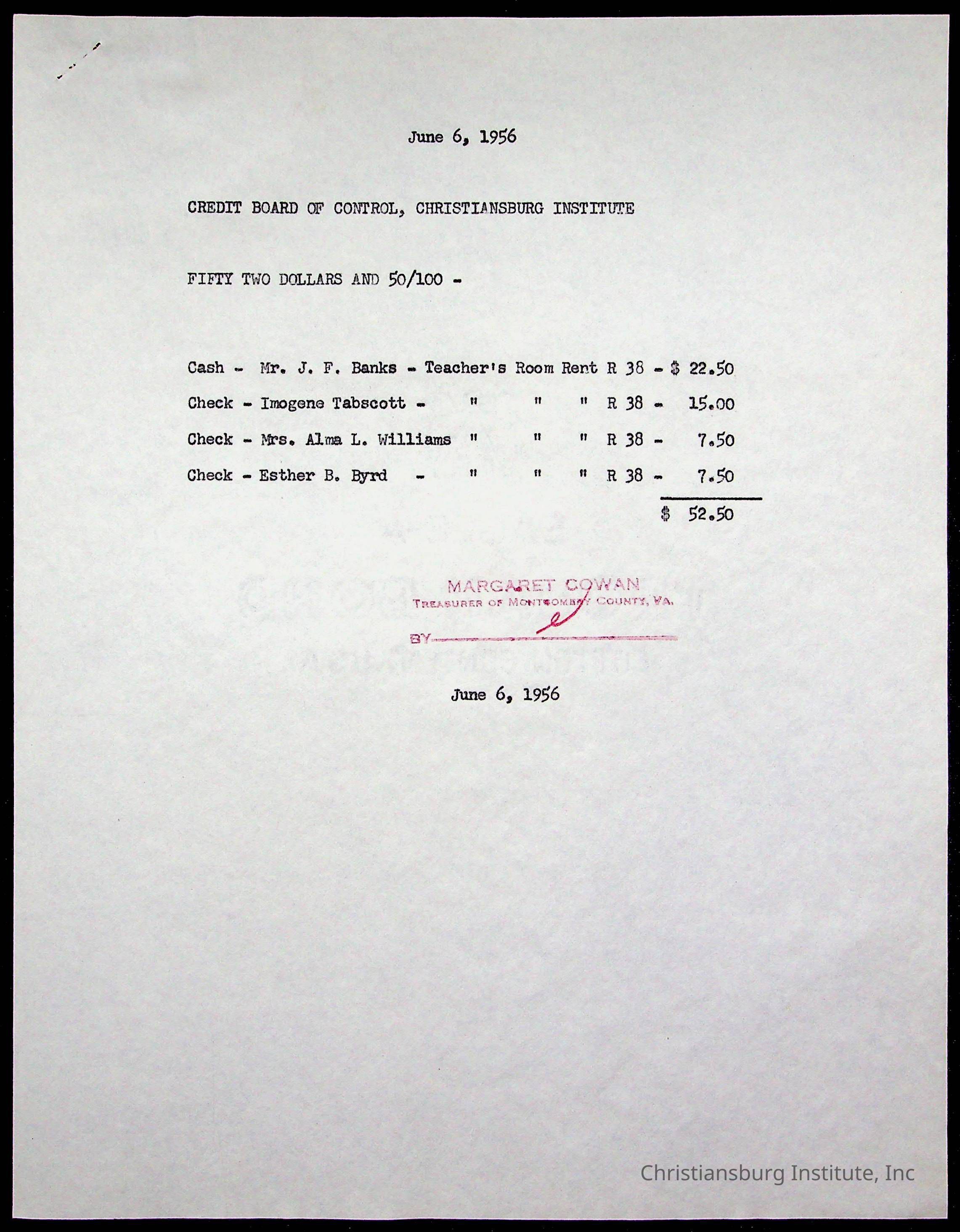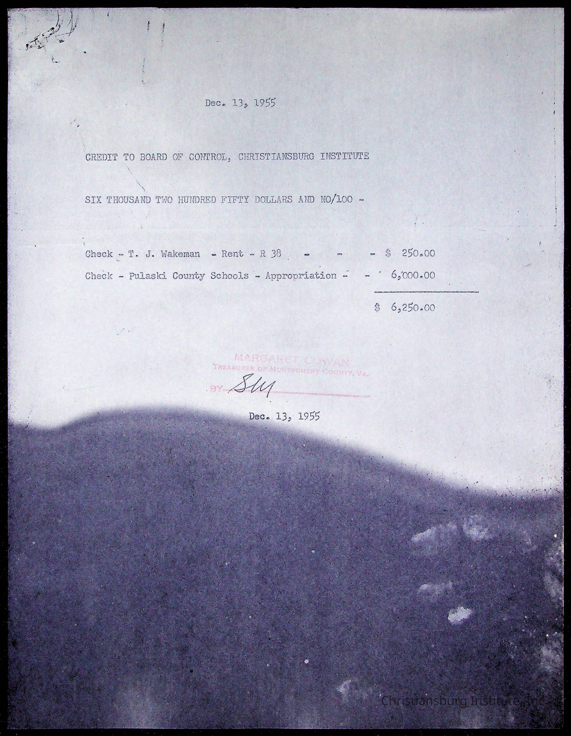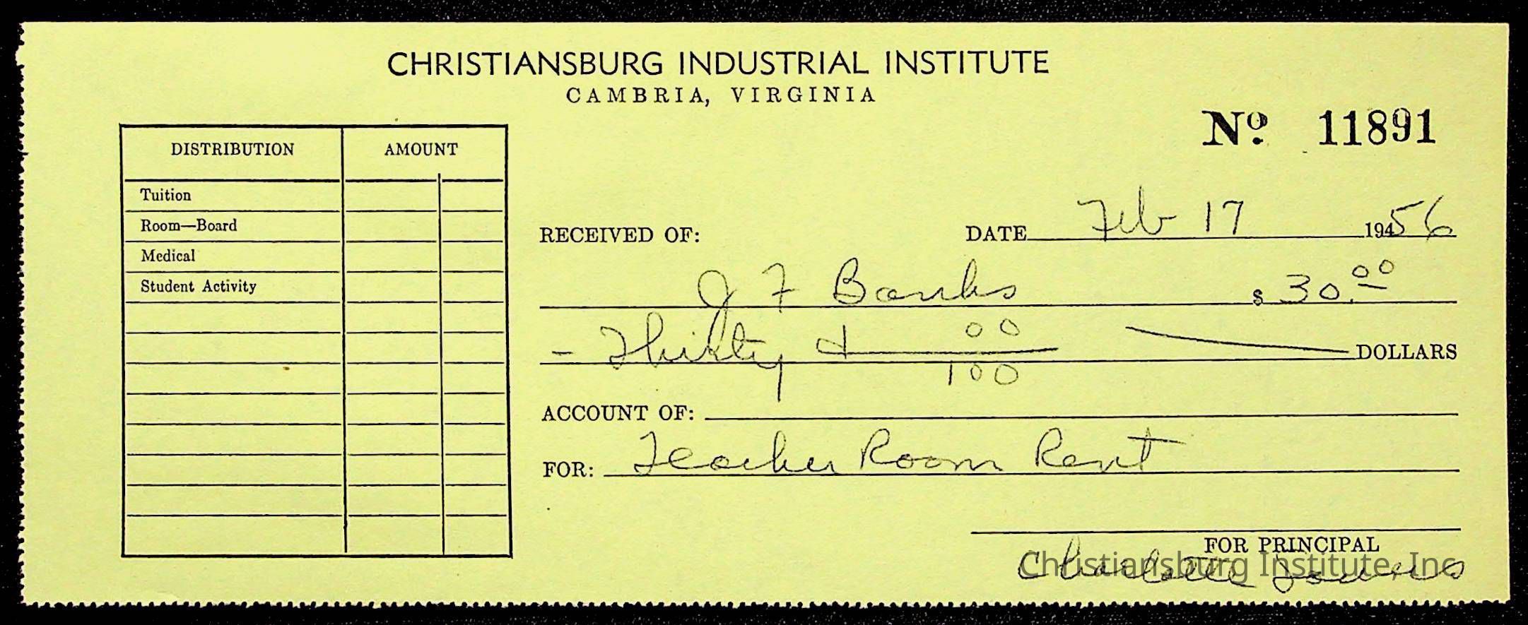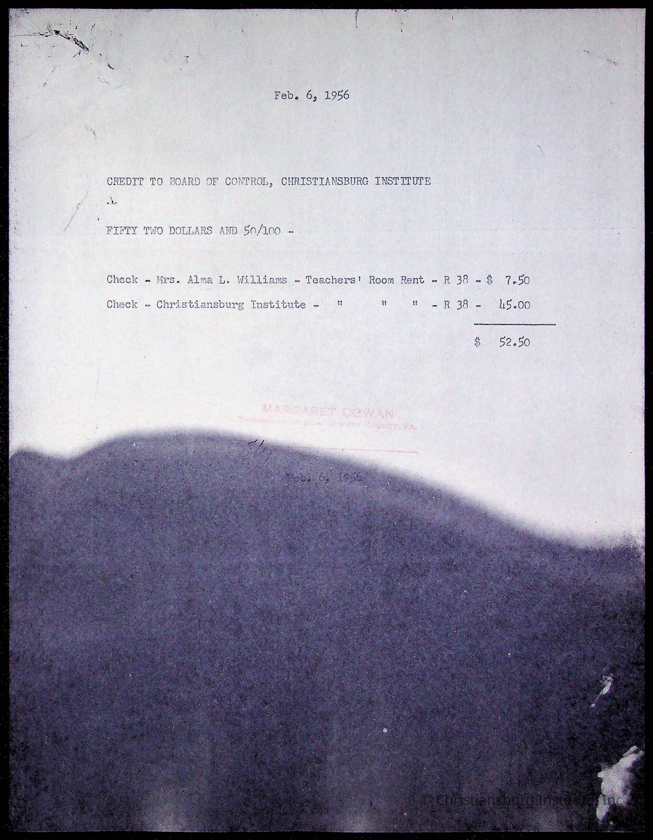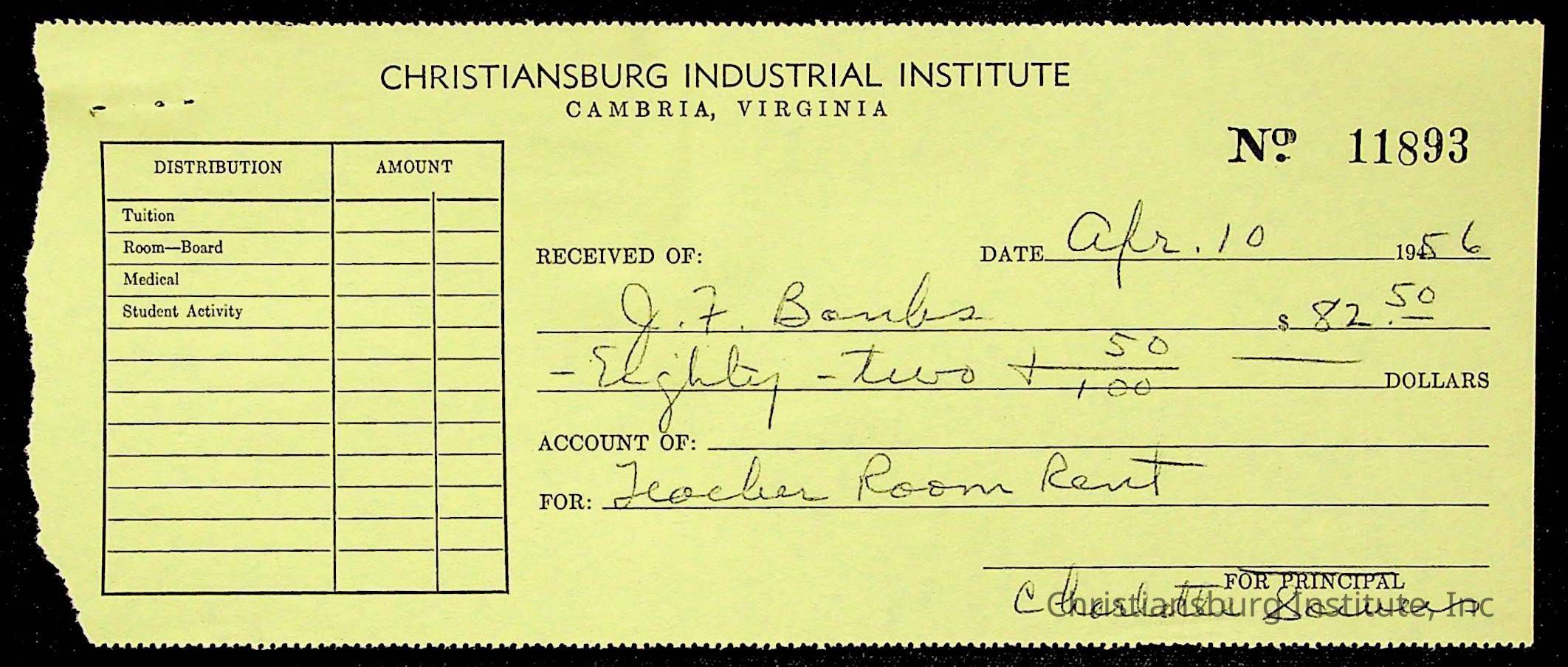 Christiansburg Institute Treasury Receipts, 1955-1956