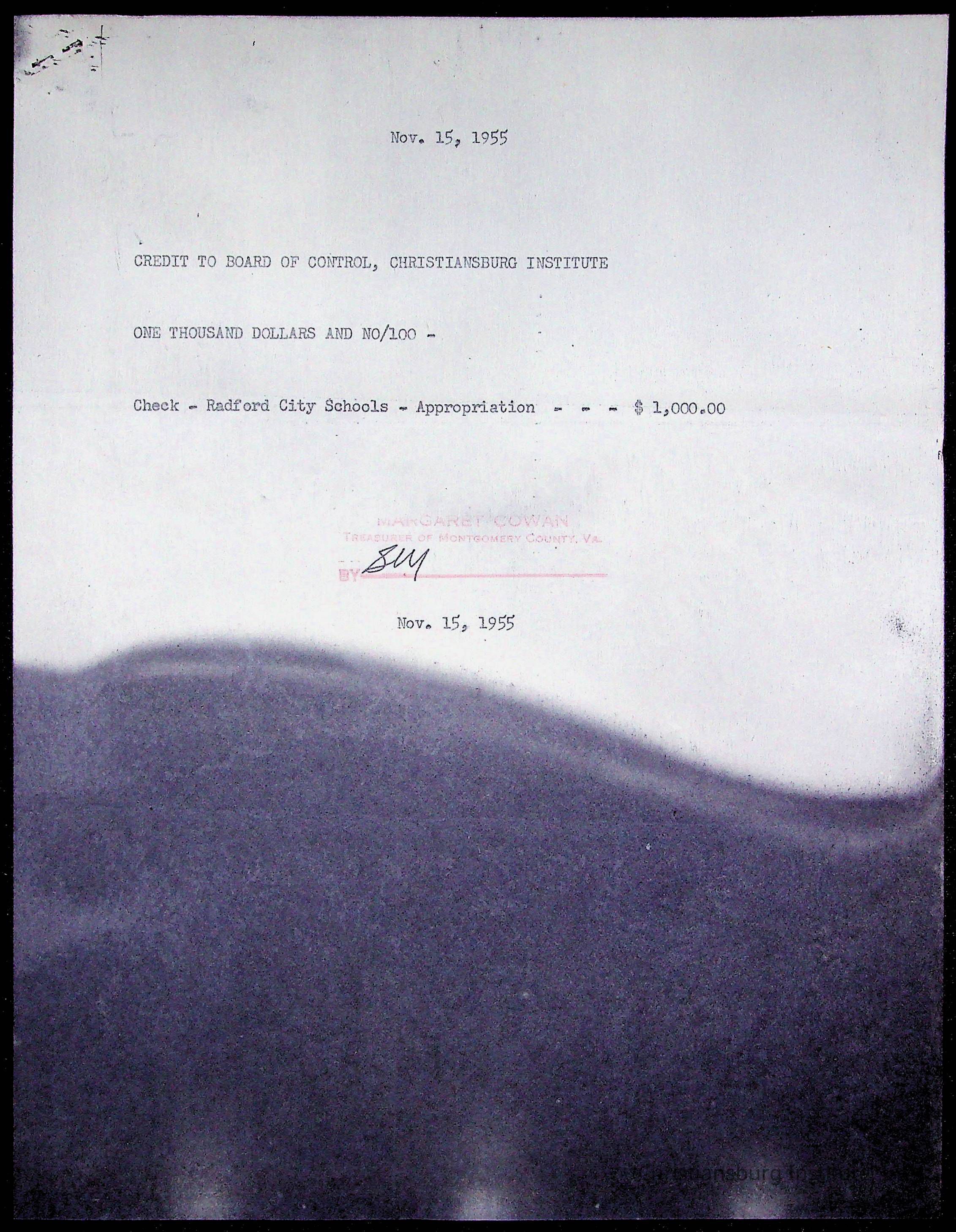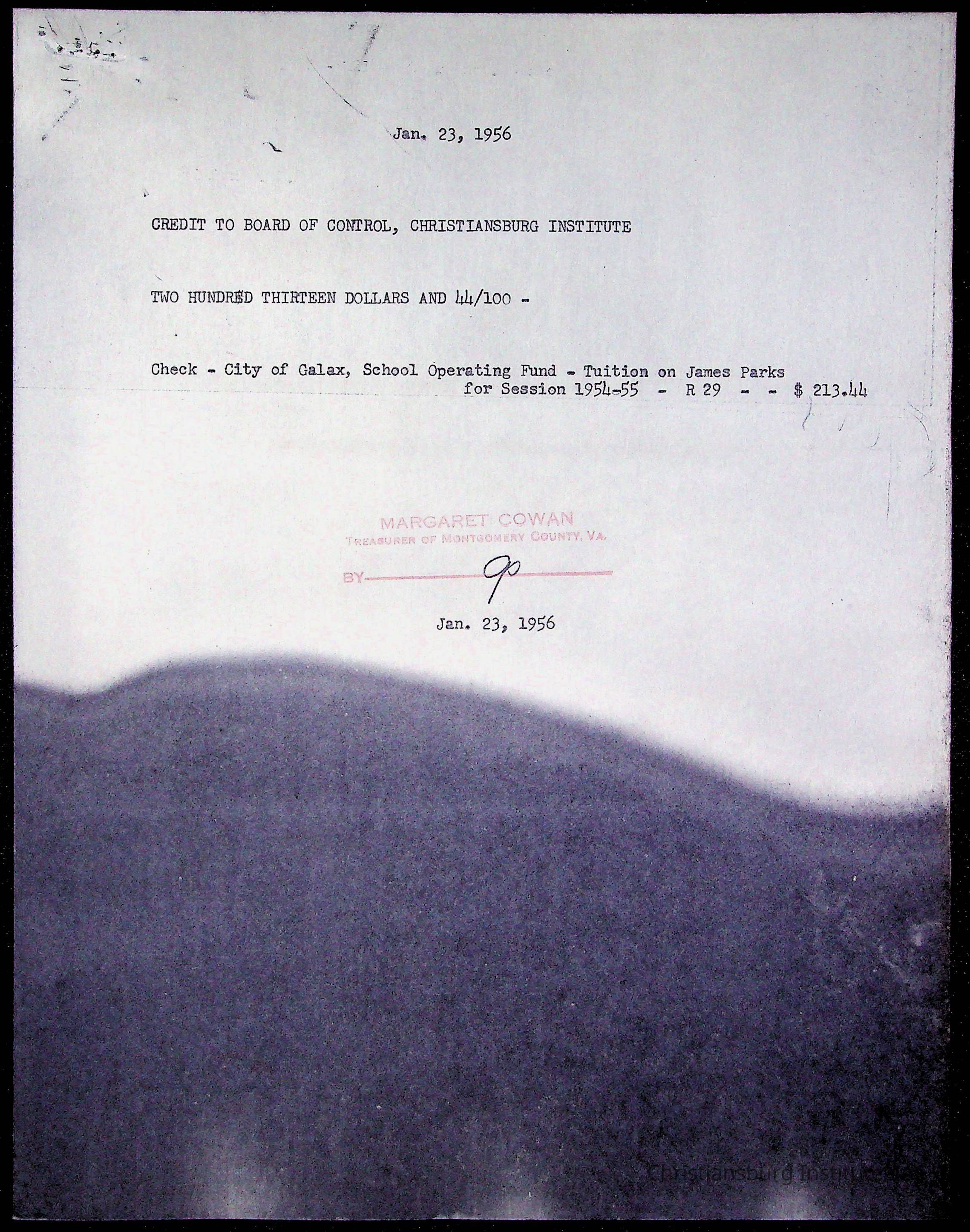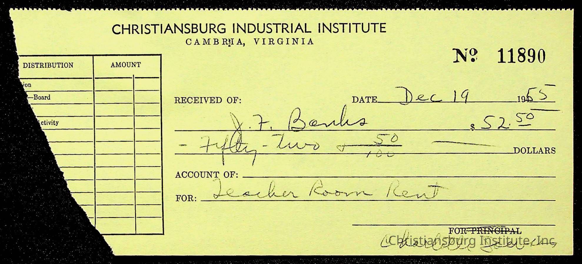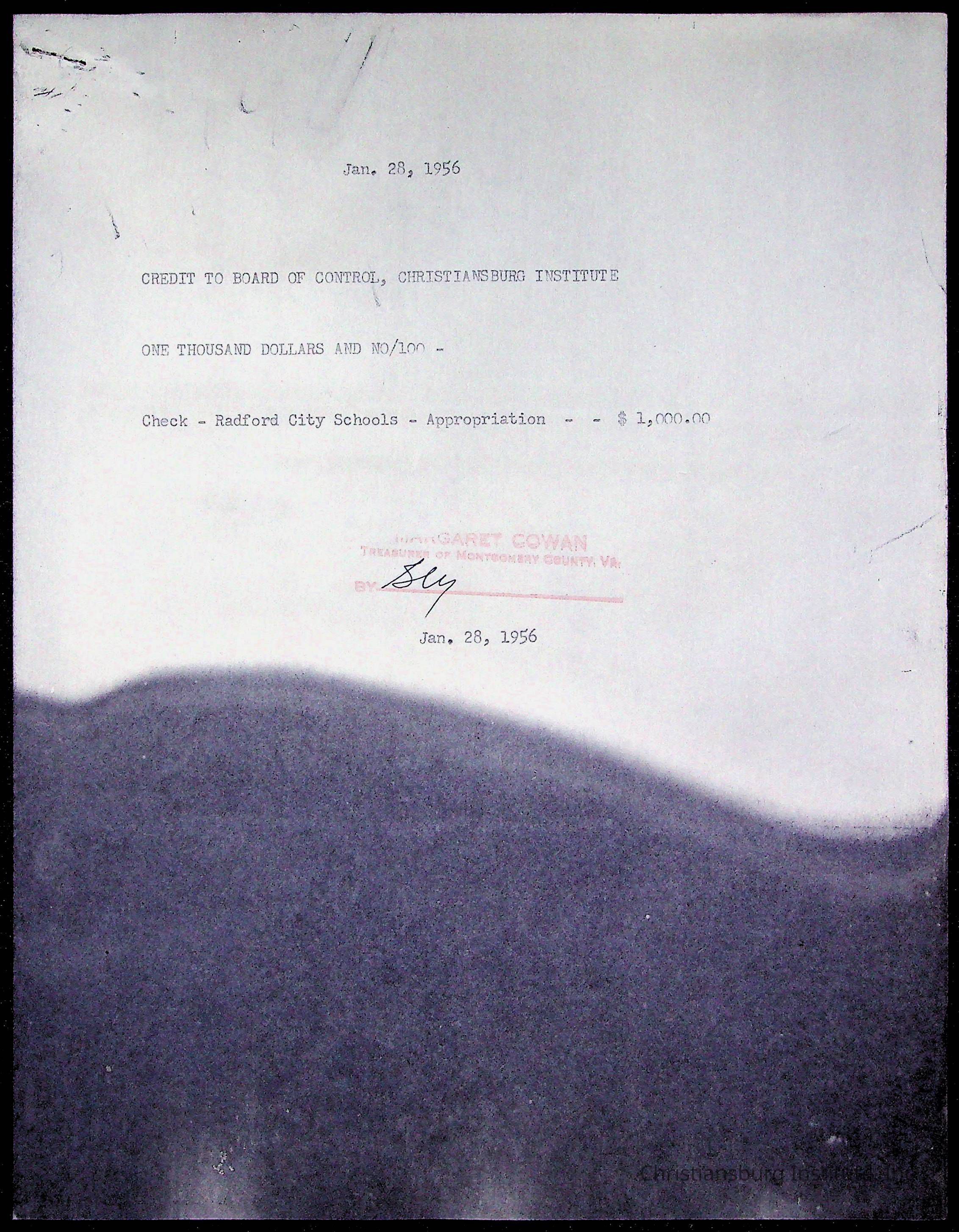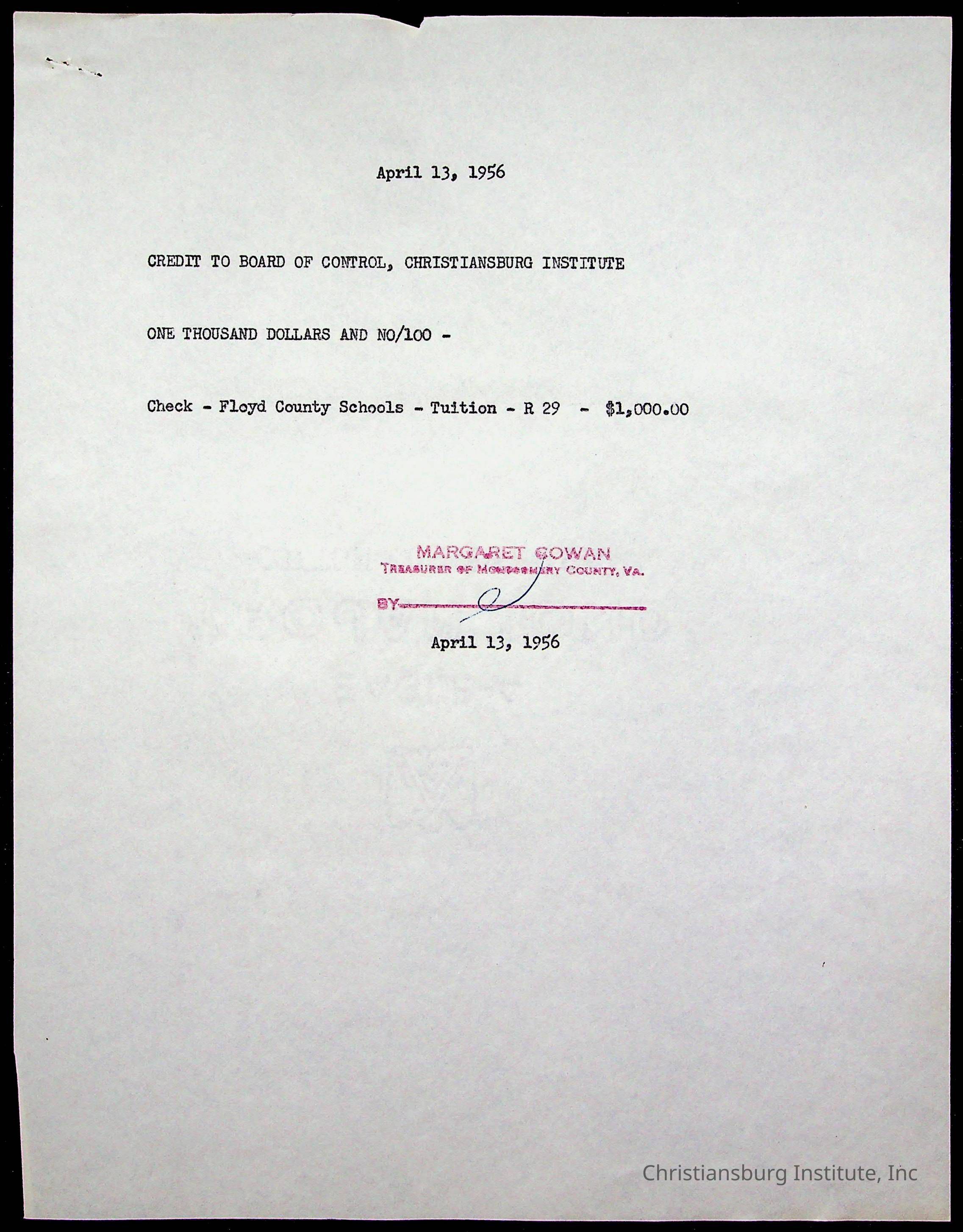 Christiansburg Institute Treasury Receipts, 1955-1956