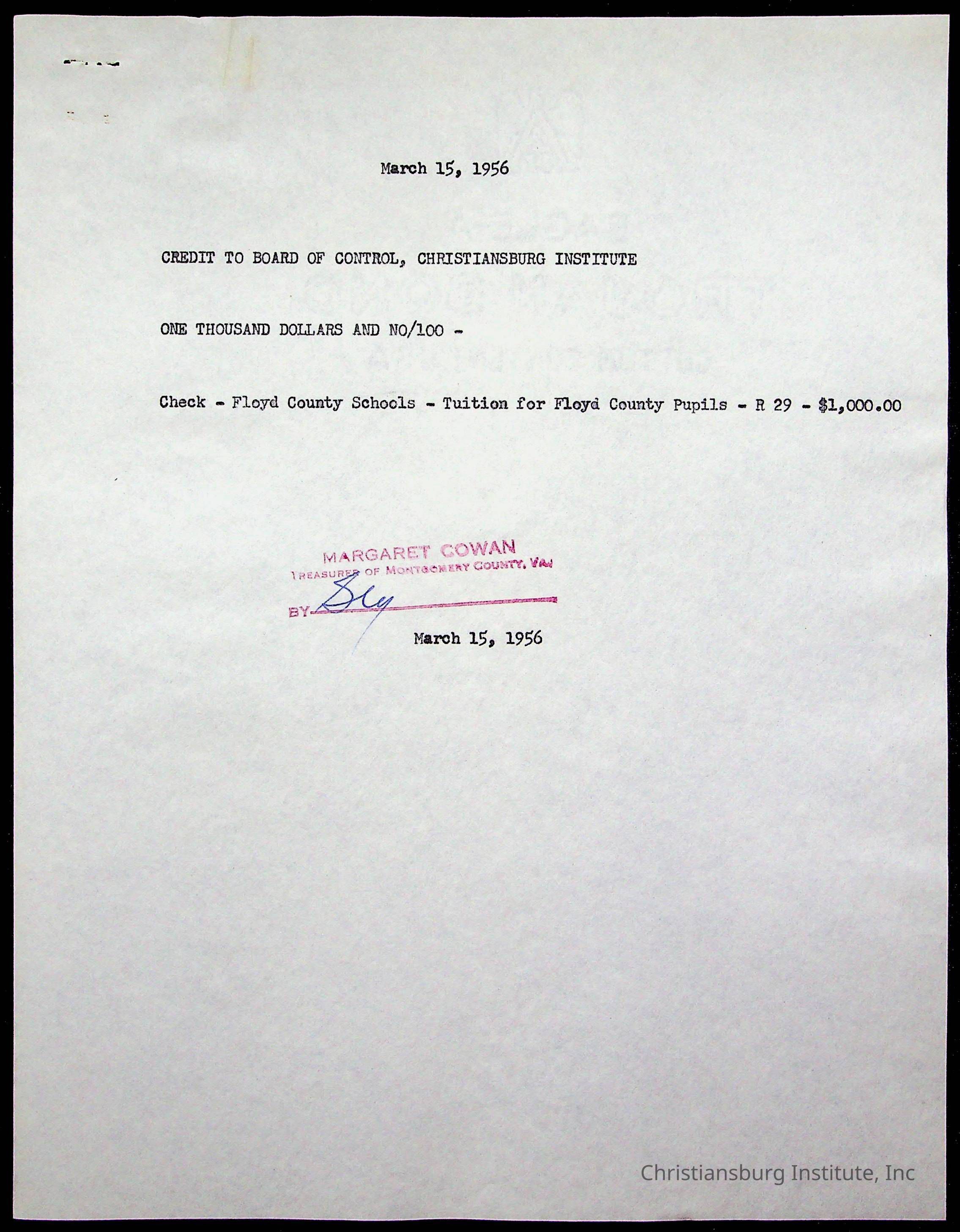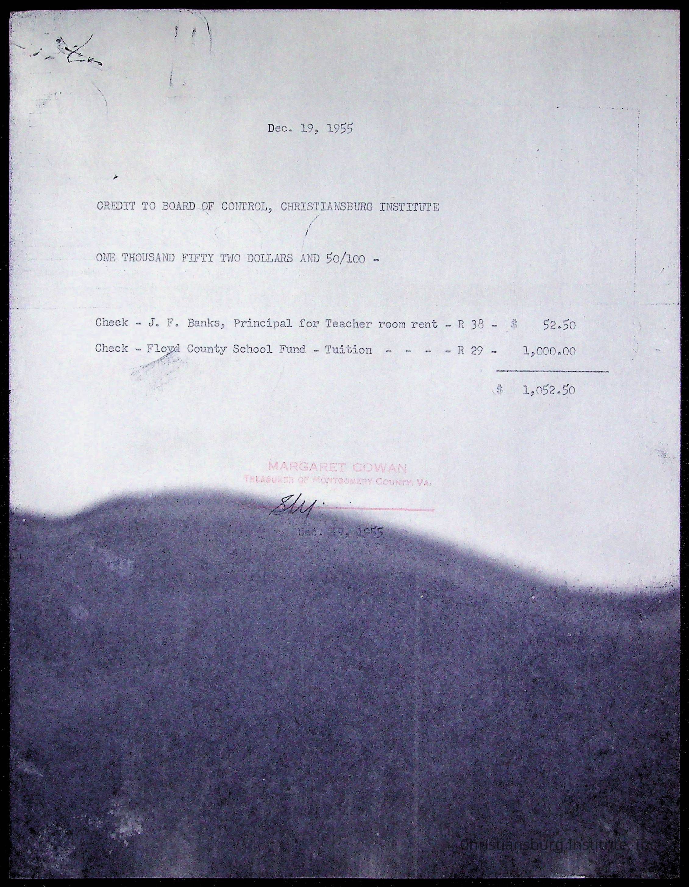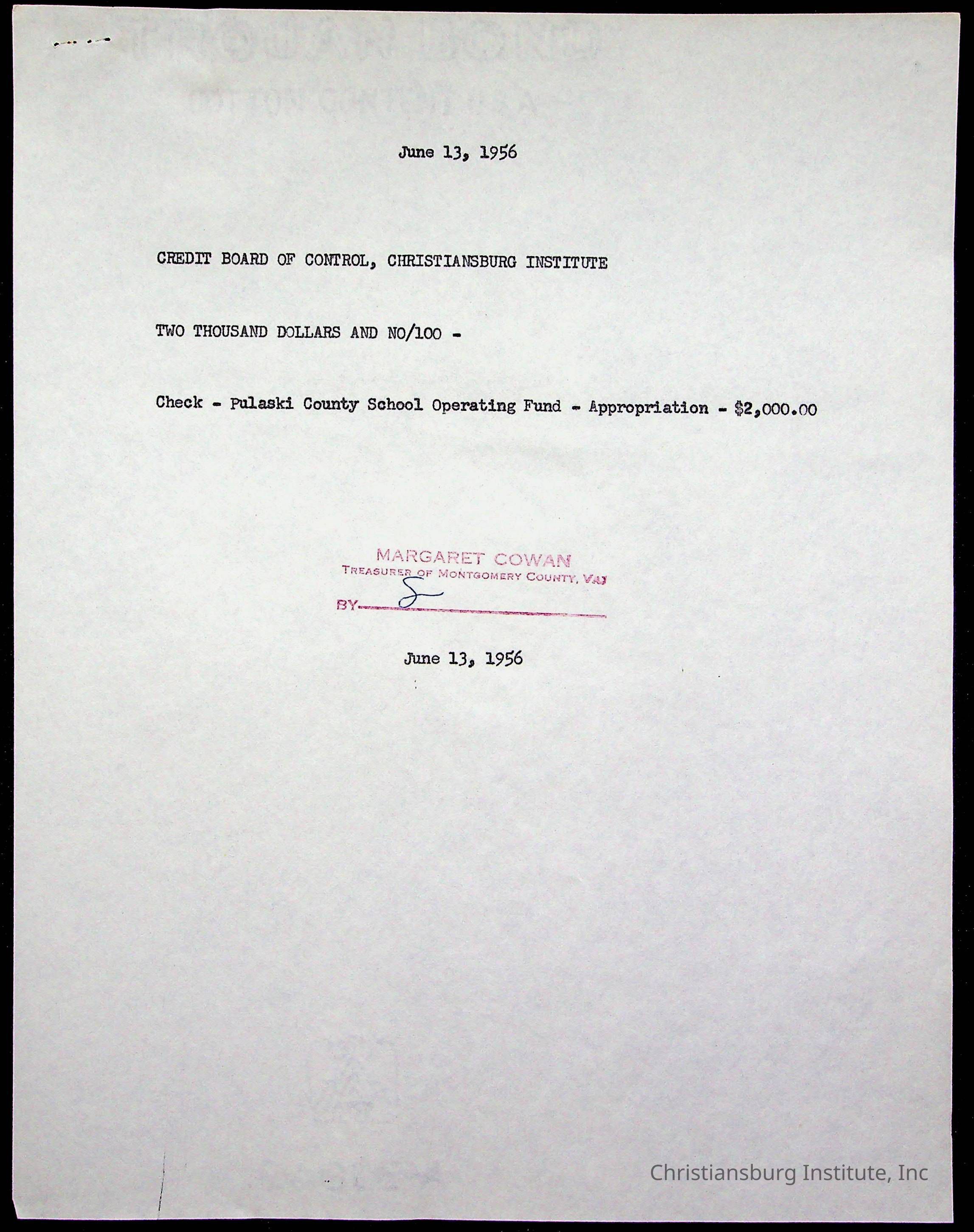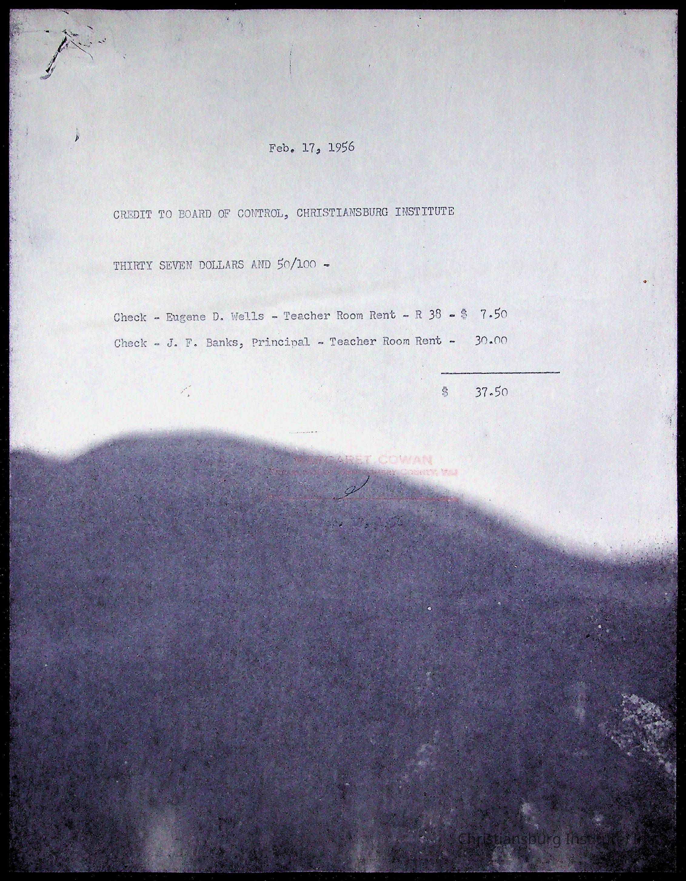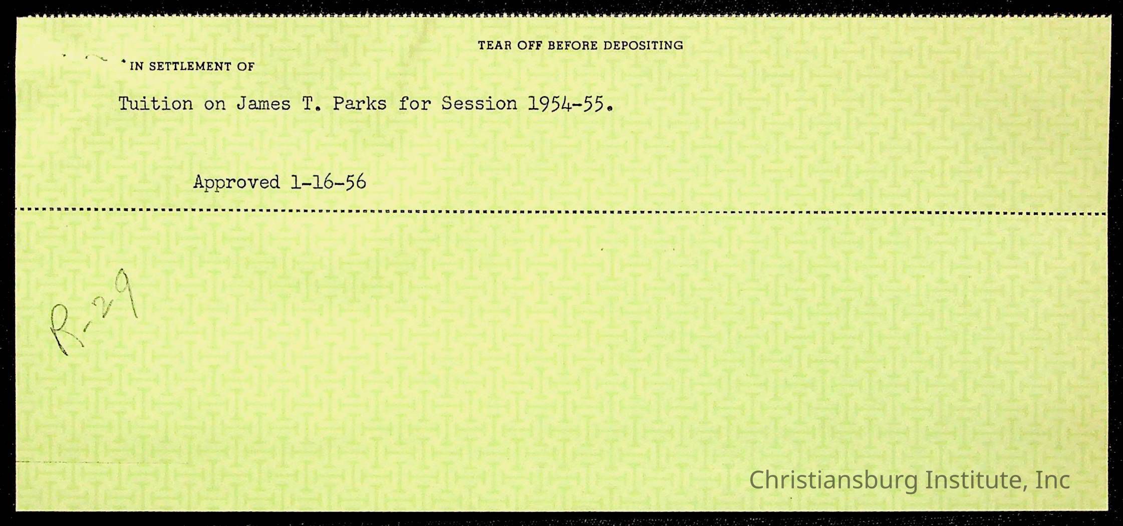 Christiansburg Institute Treasury Receipts, 1955-1956