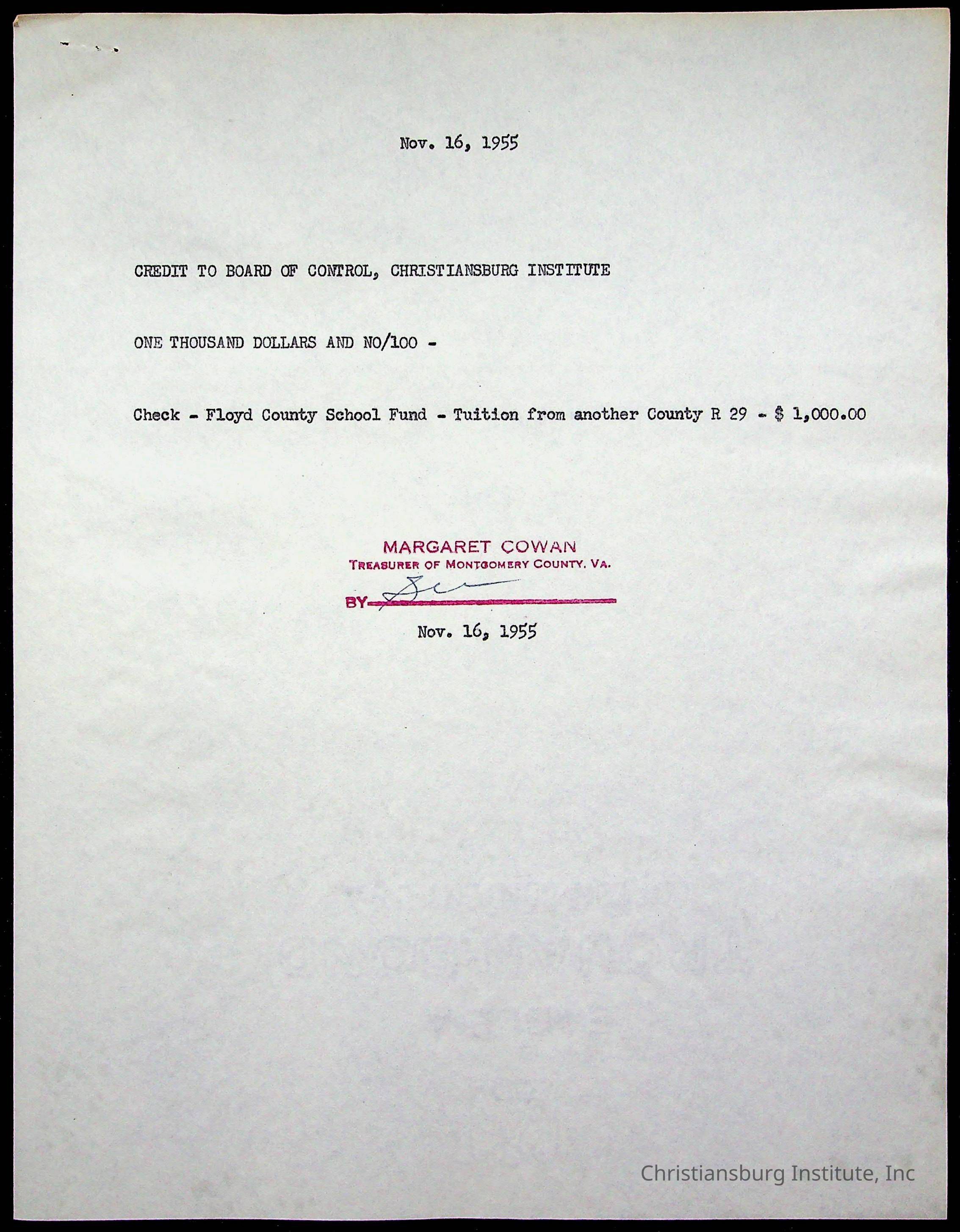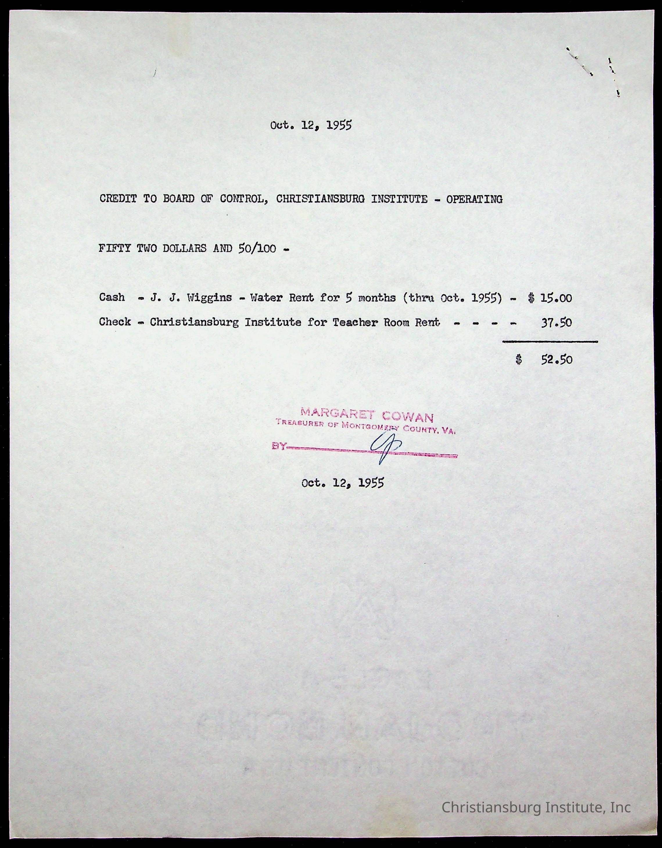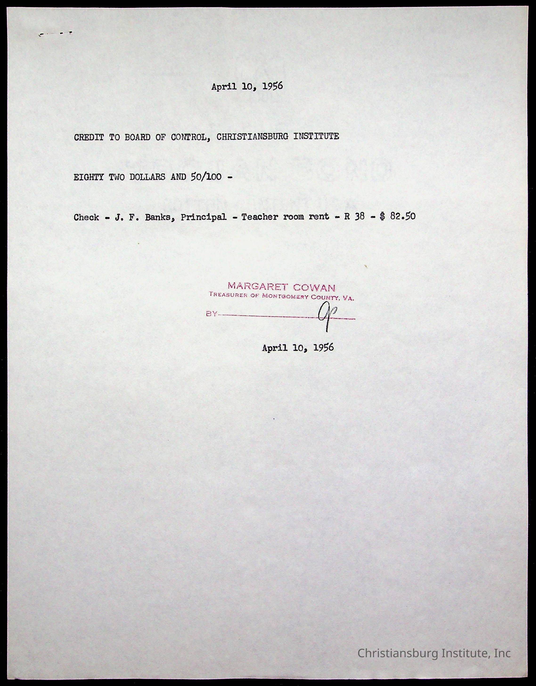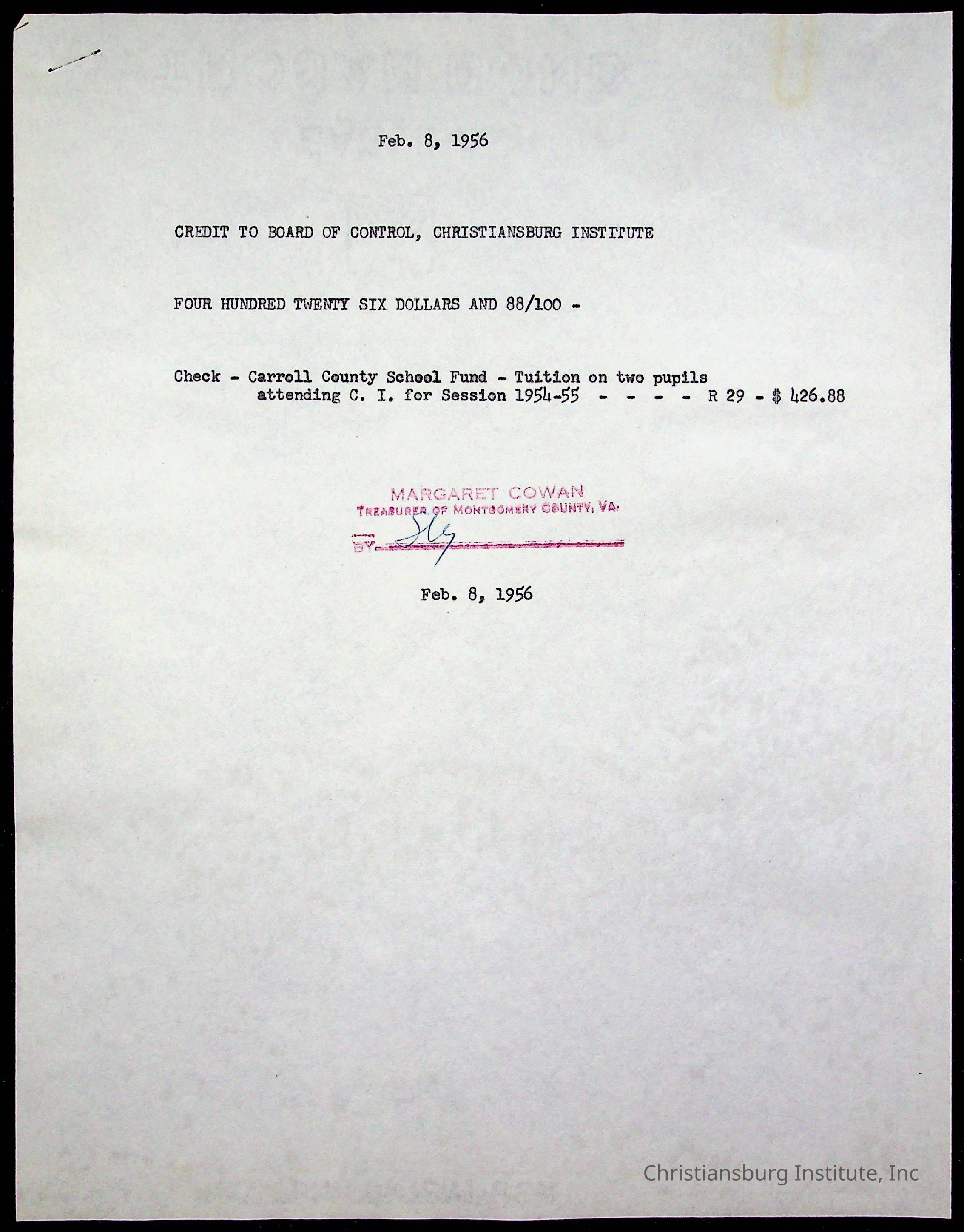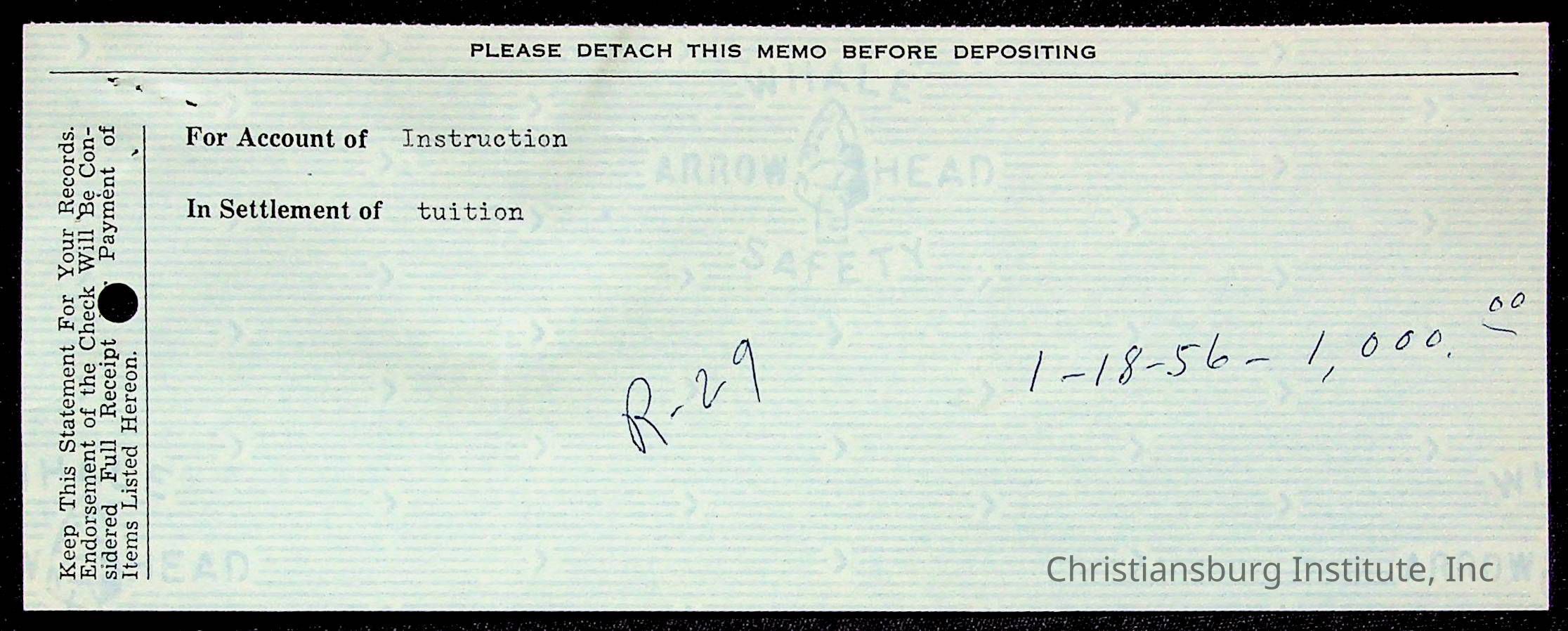 Christiansburg Institute Treasury Receipts, 1955-1956