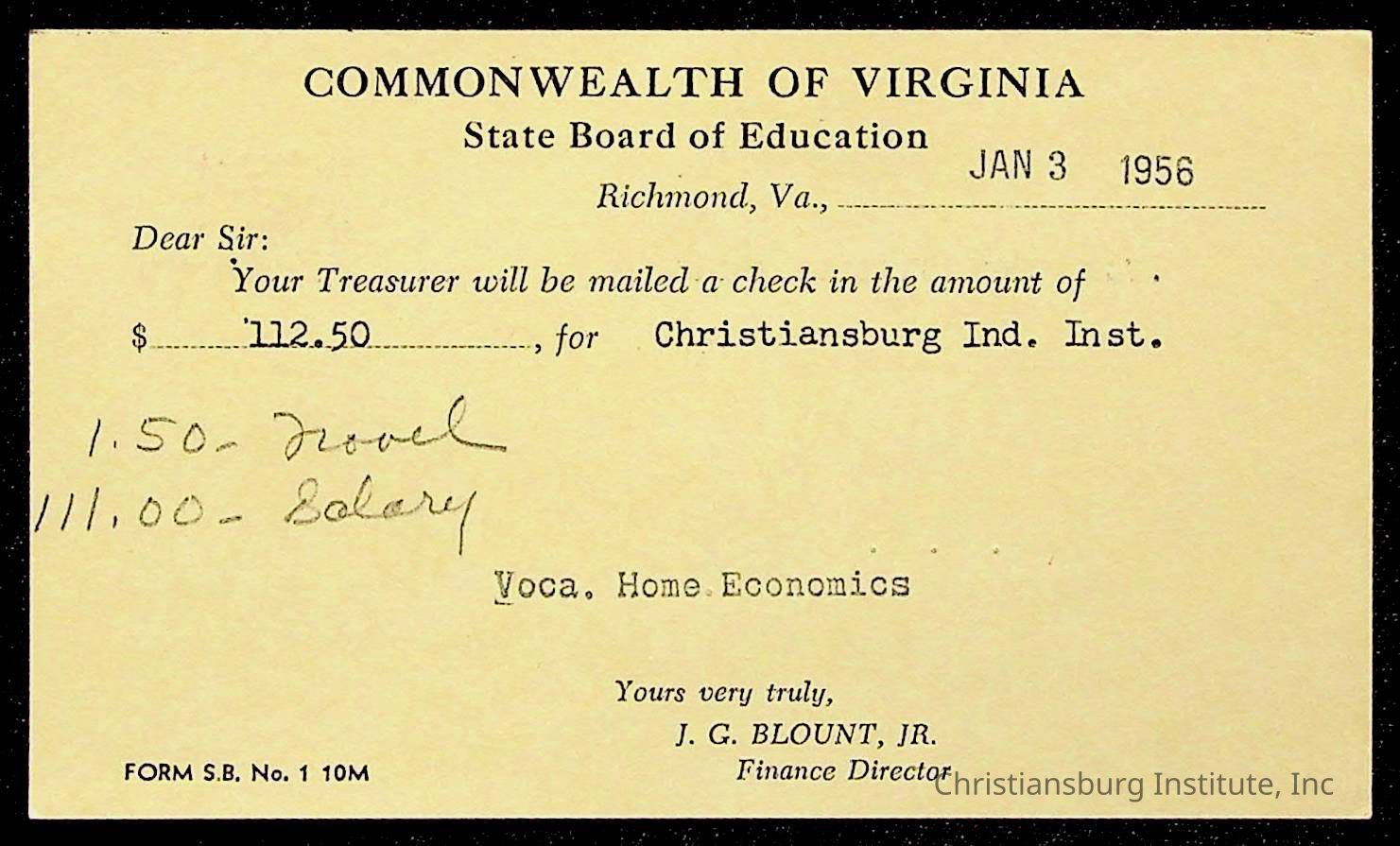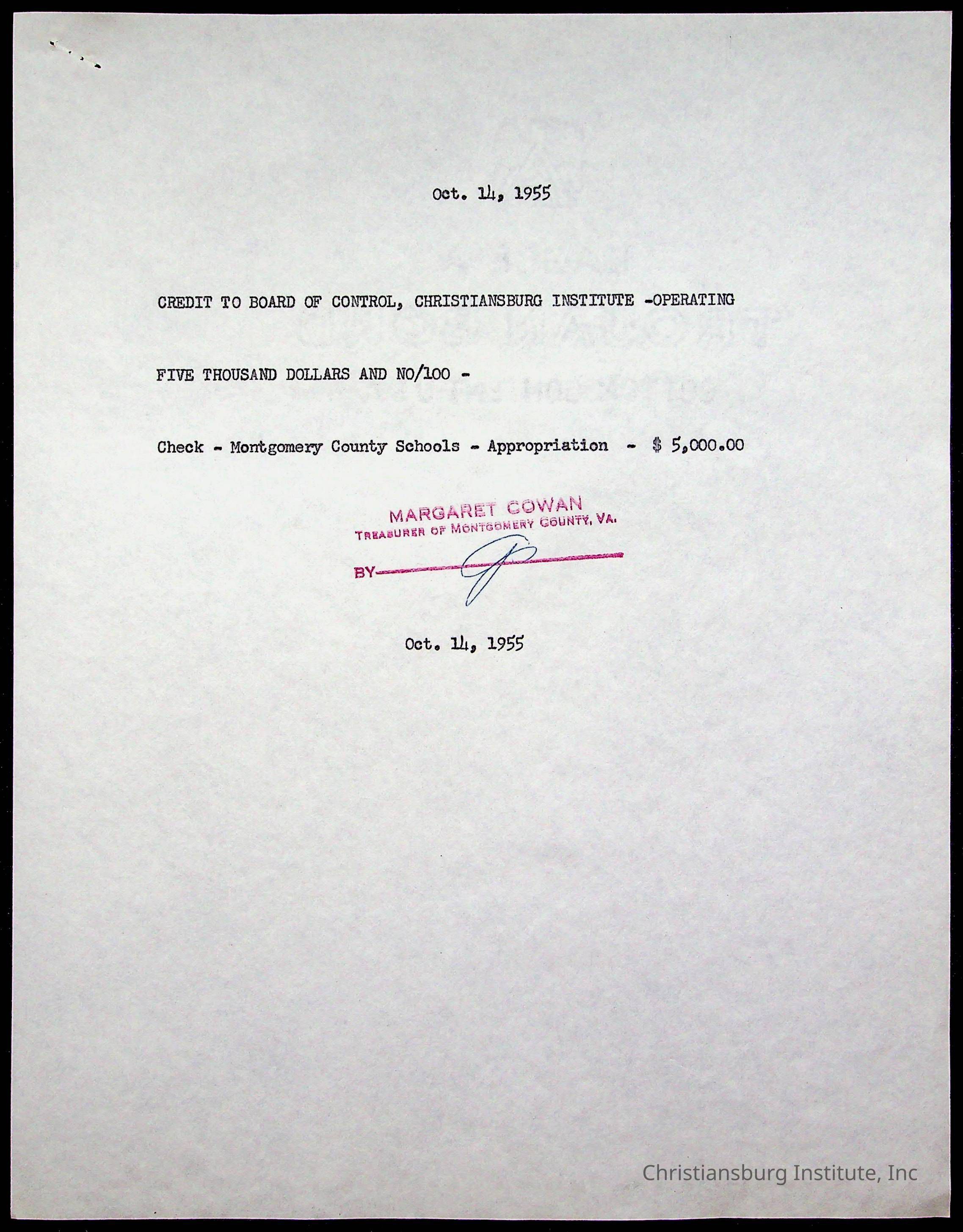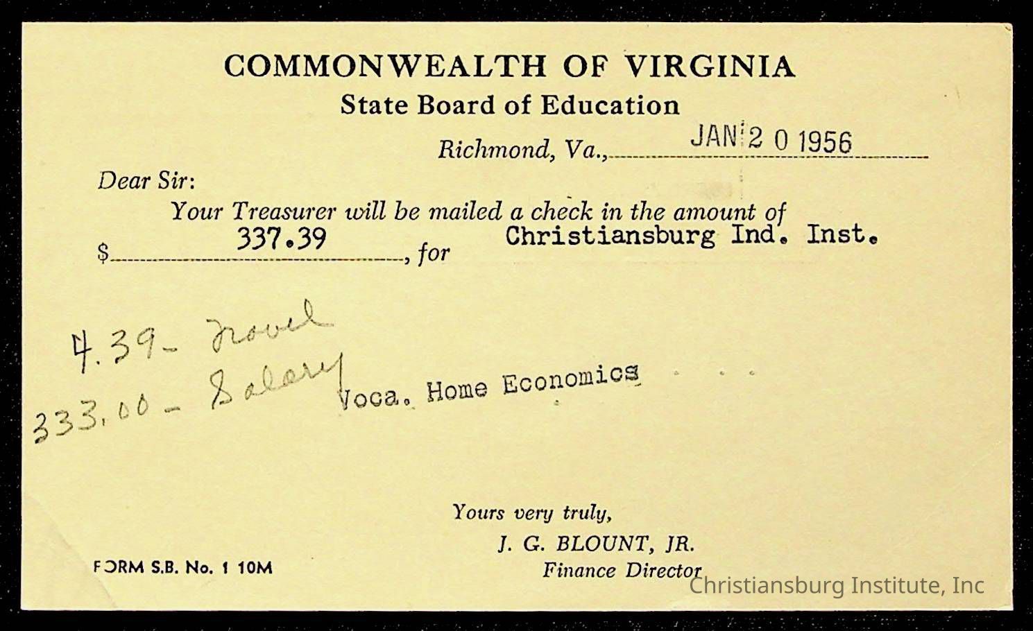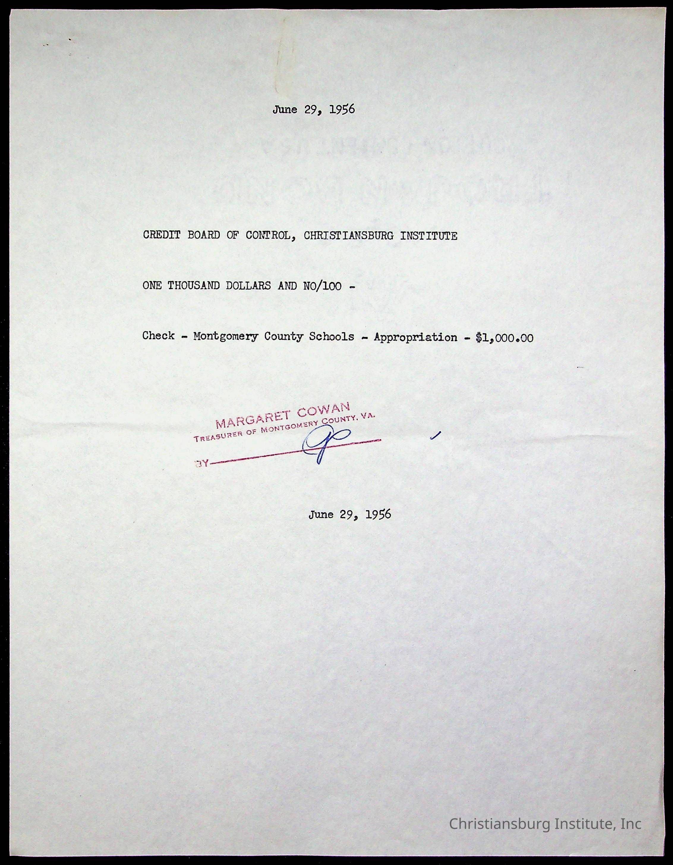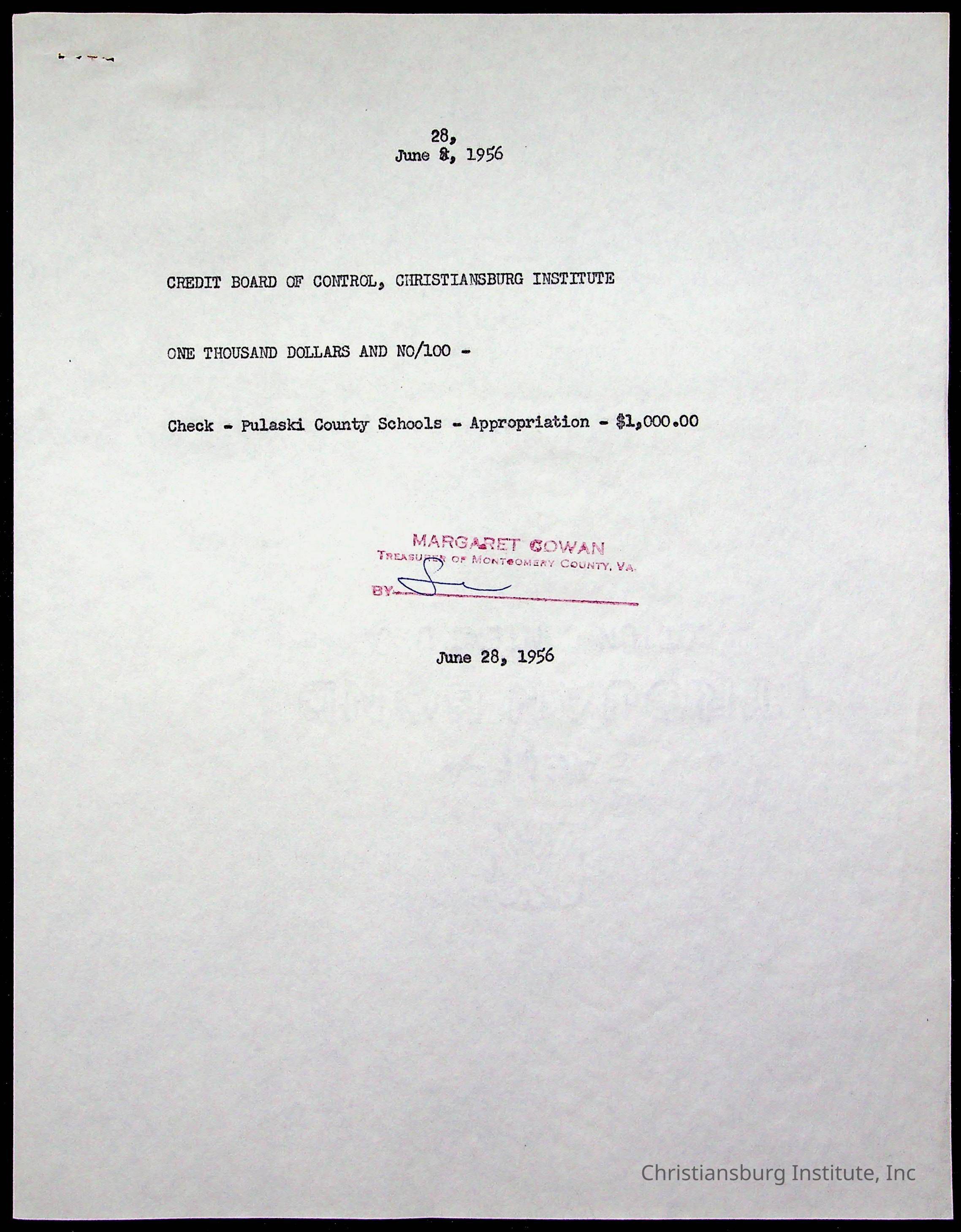 Christiansburg Institute Treasury Receipts, 1955-1956
