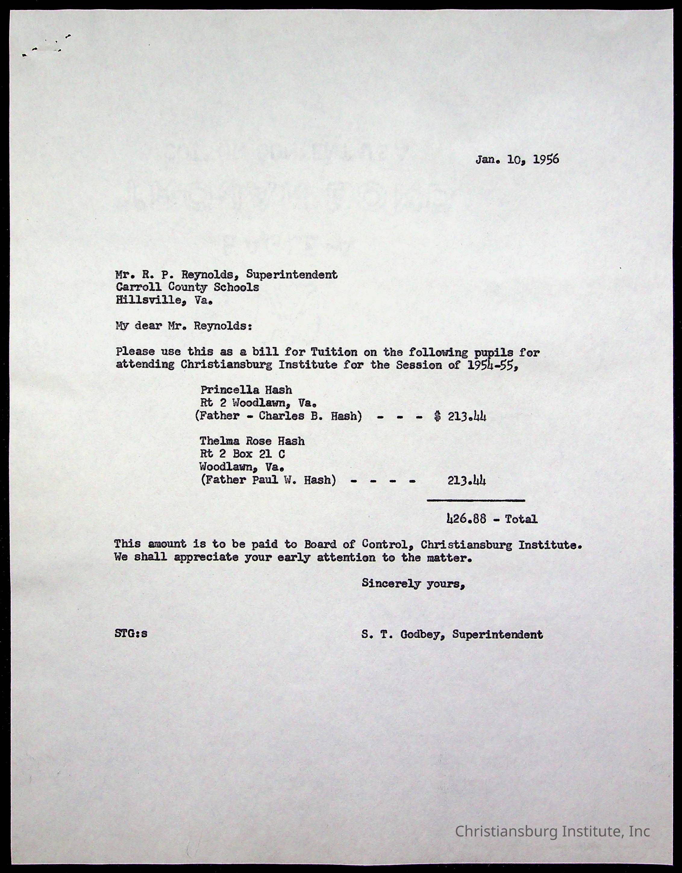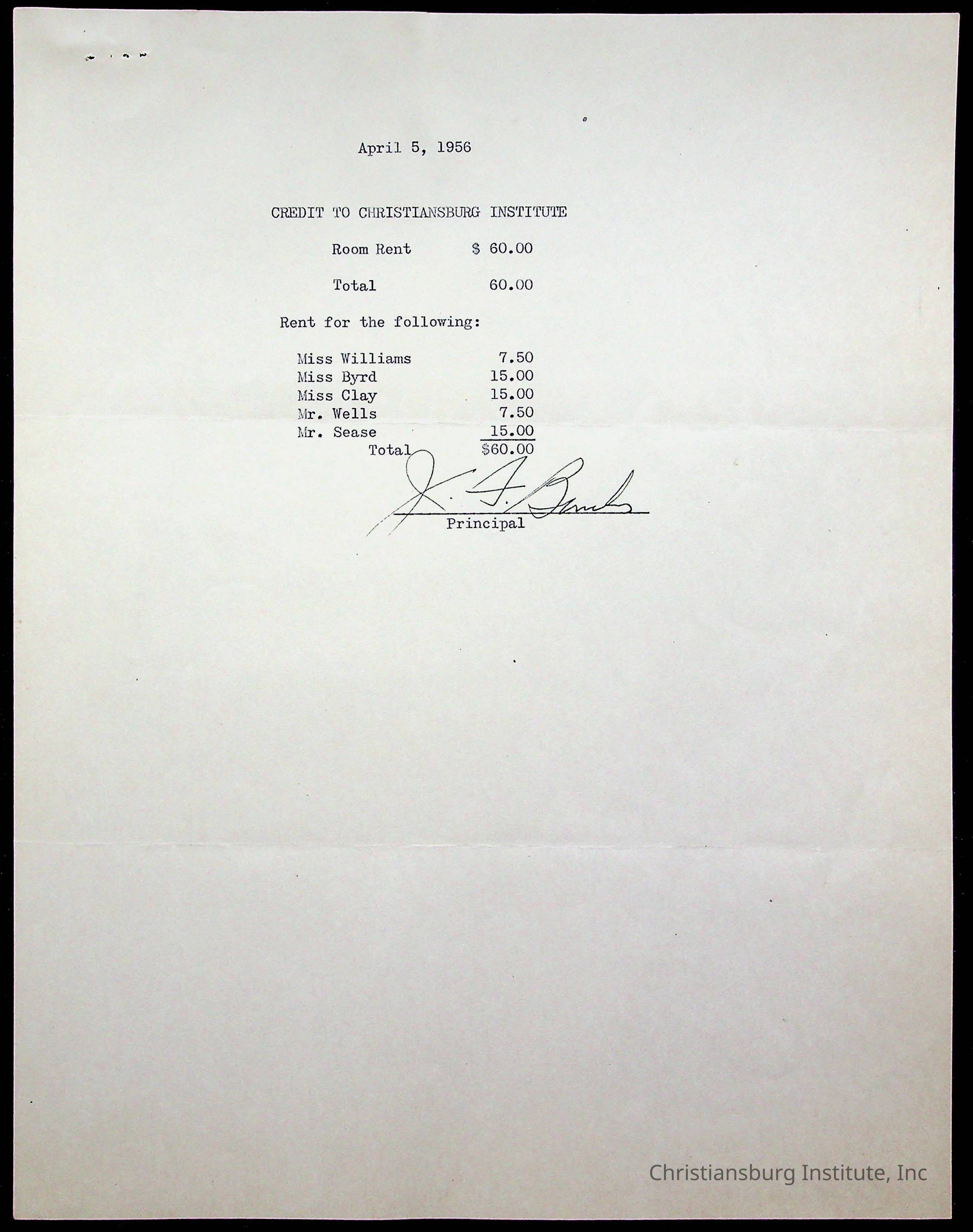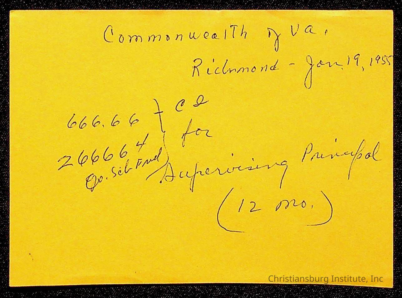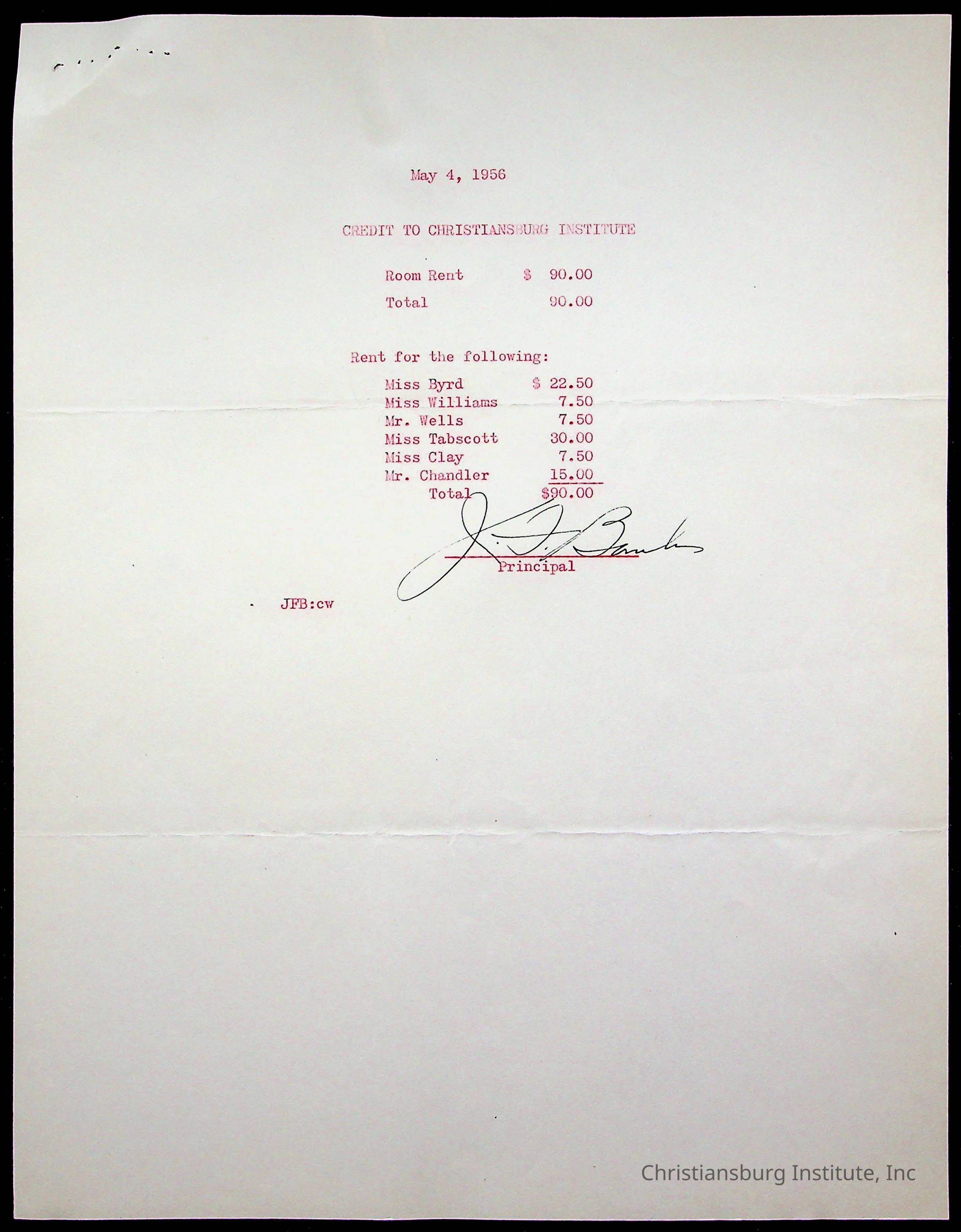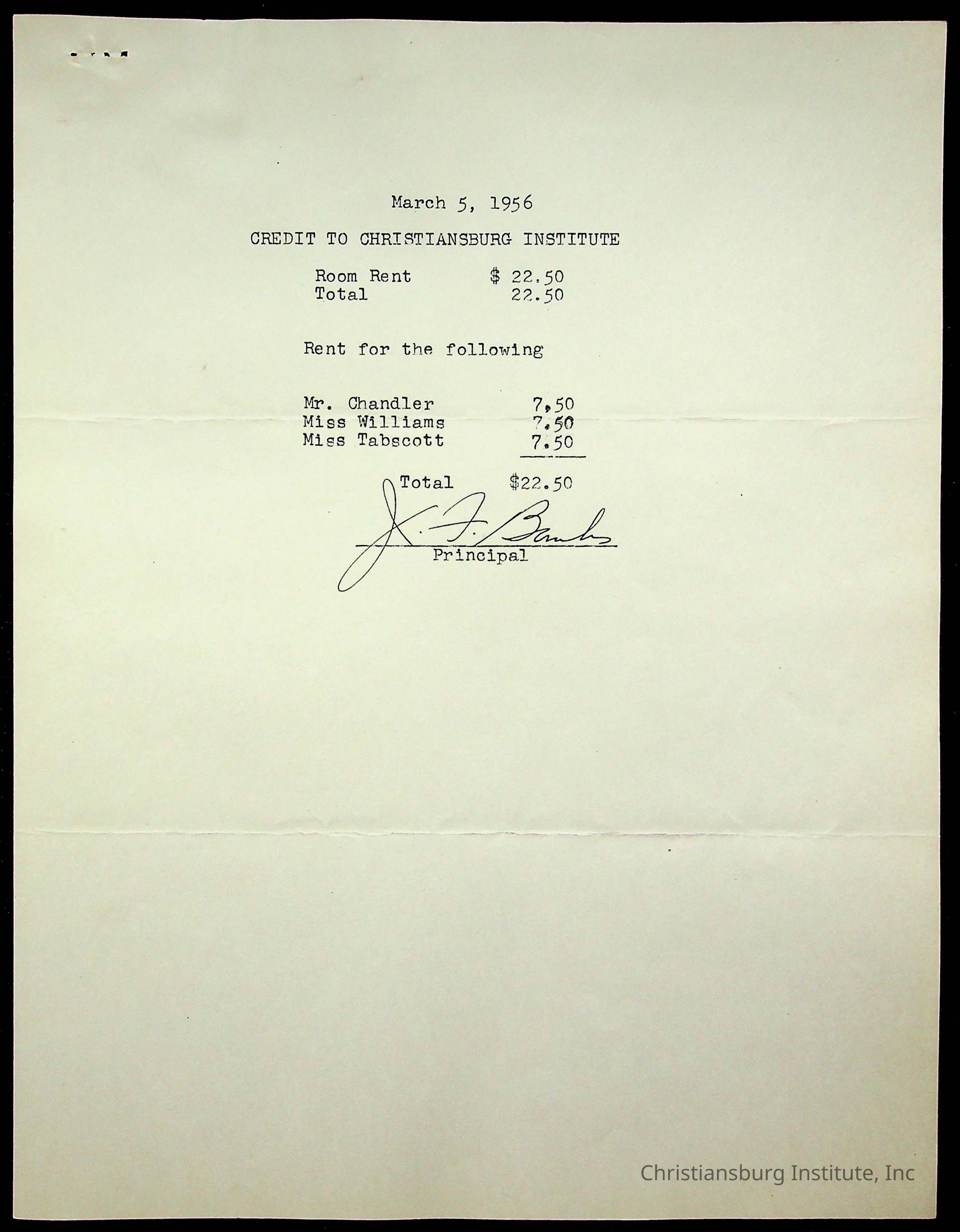 Christiansburg Institute Treasury Receipts, 1955-1956