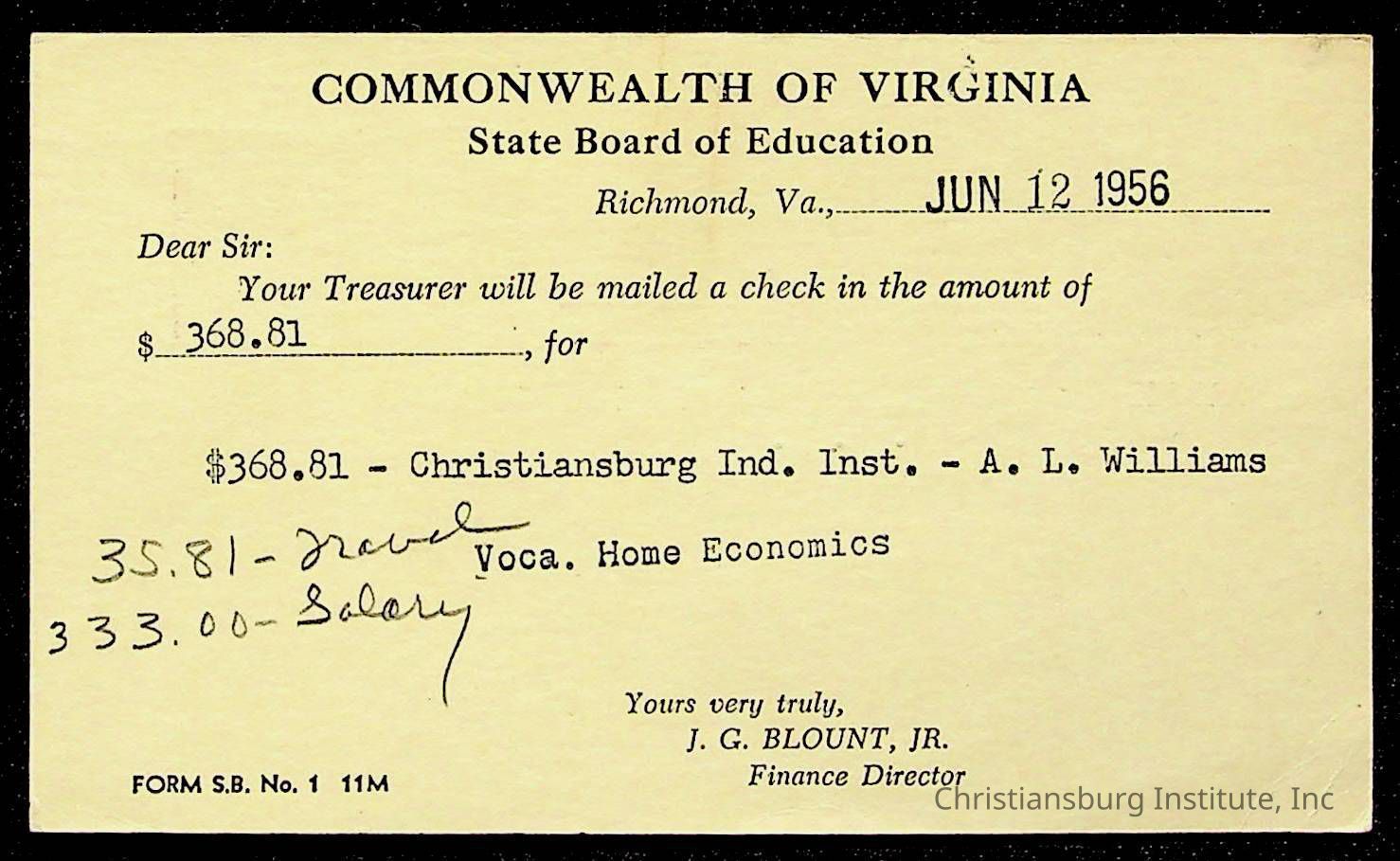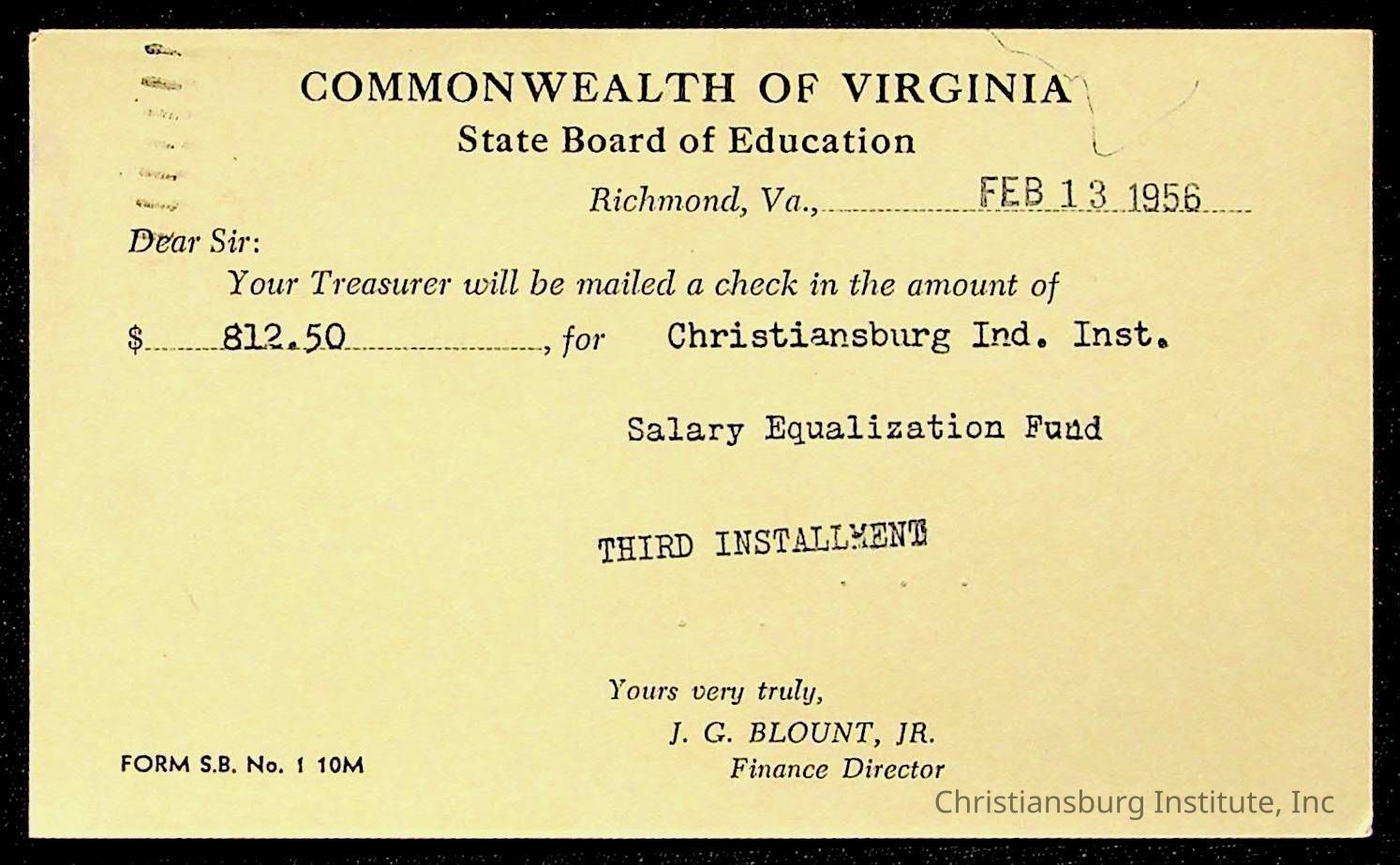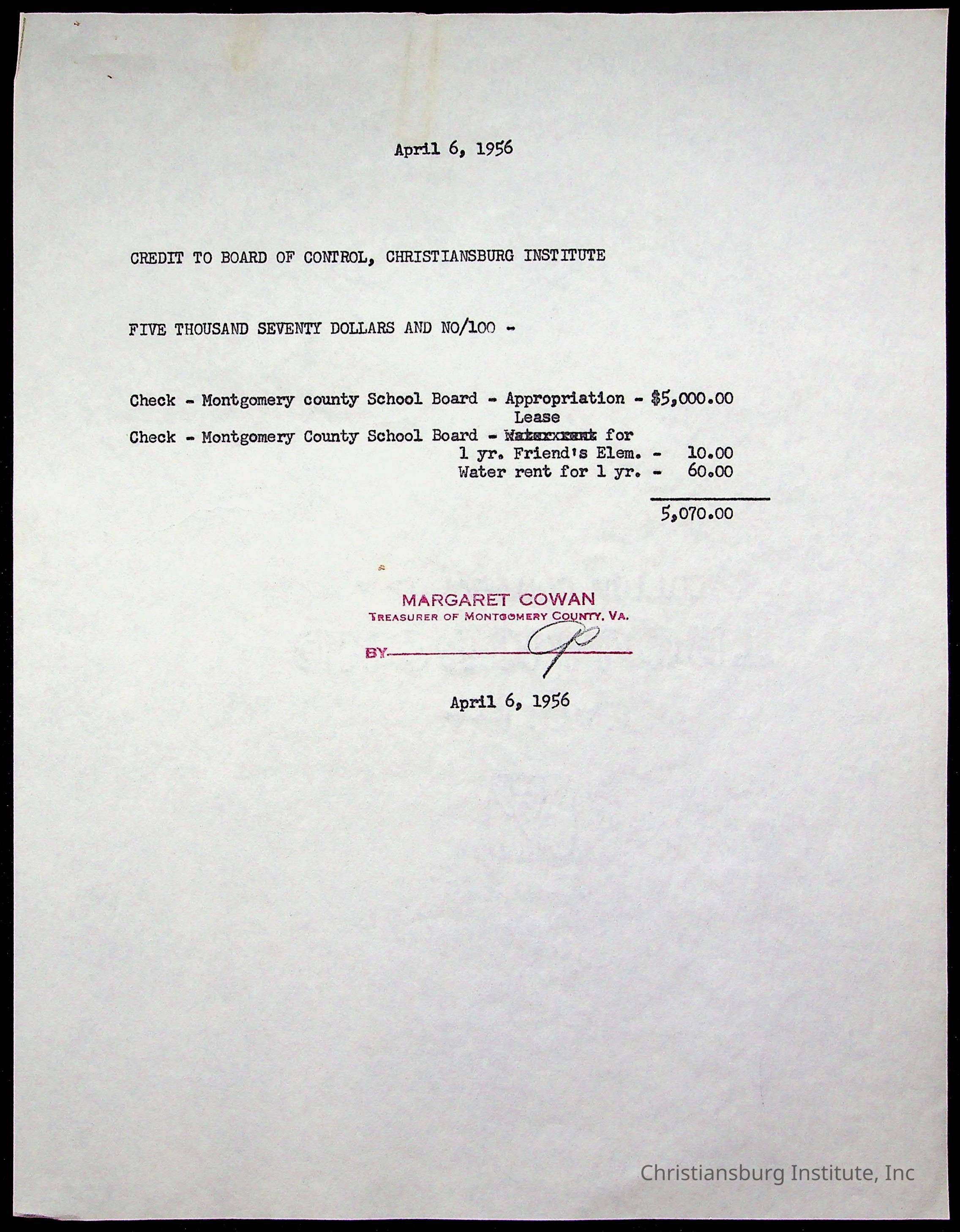 Christiansburg Institute, The Board of Control, Commonwealth of Virginia, Montgomery County School Board