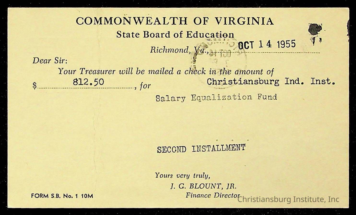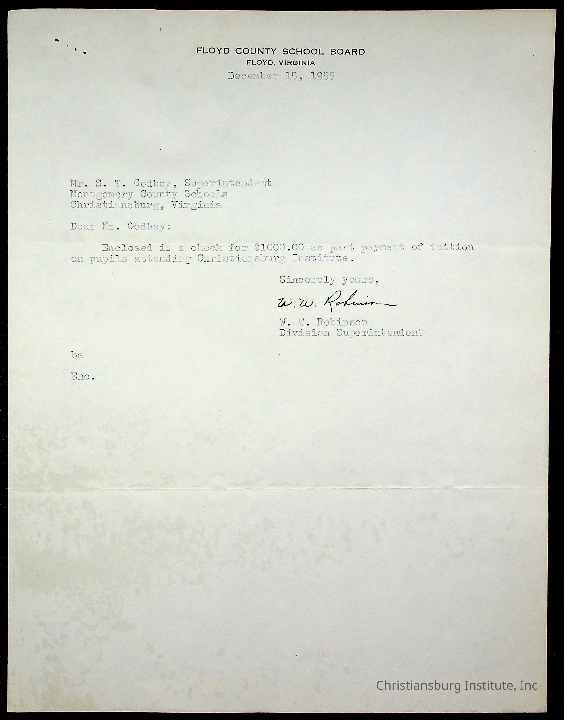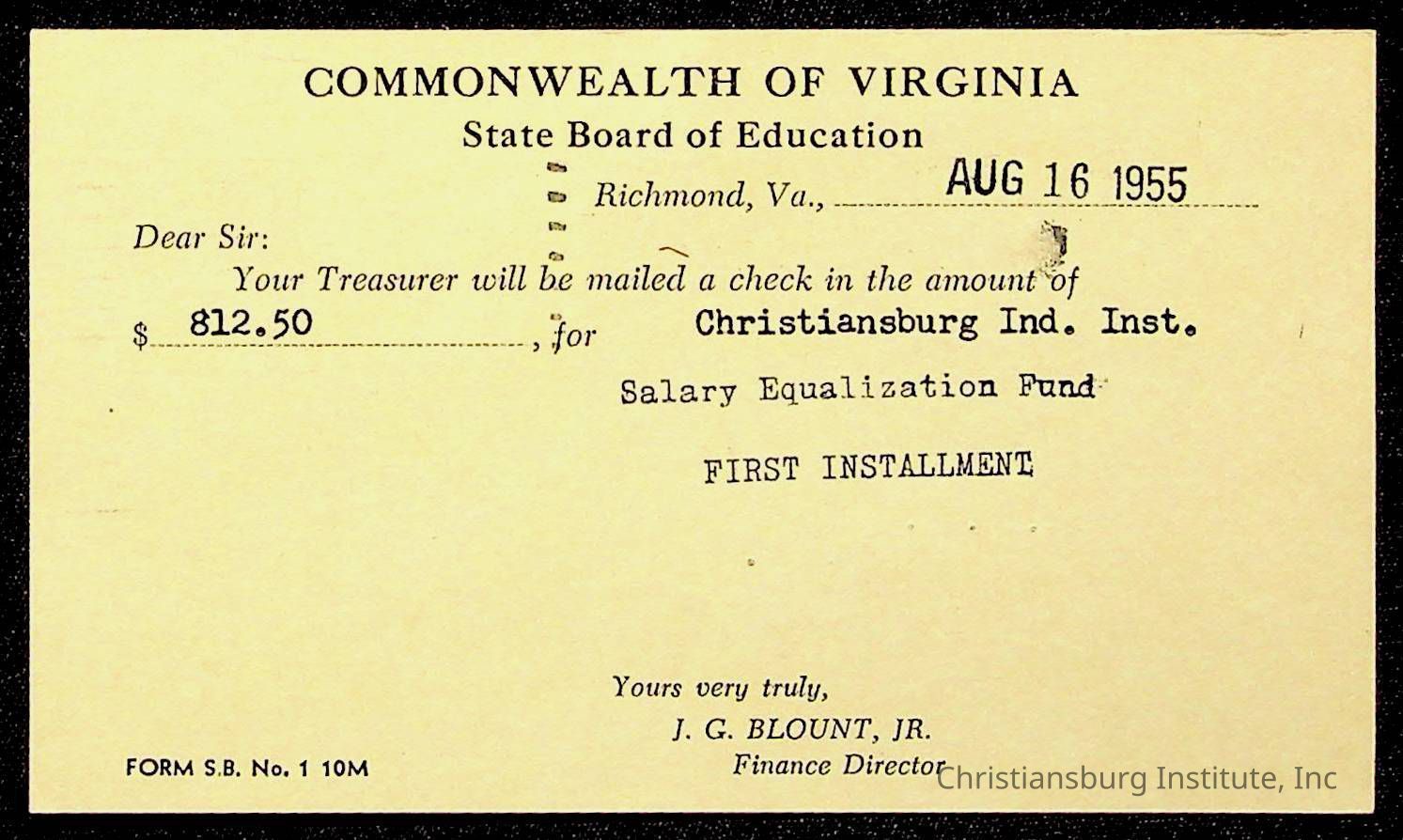 Christiansburg Institute, The Board of Control, Commonwealth of Virginia, Montgomery County School Board