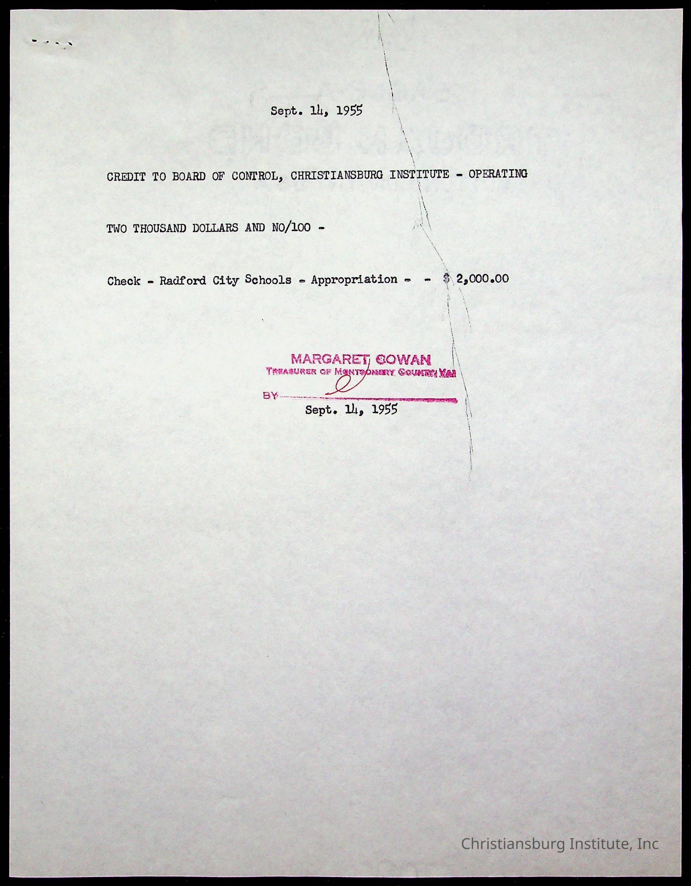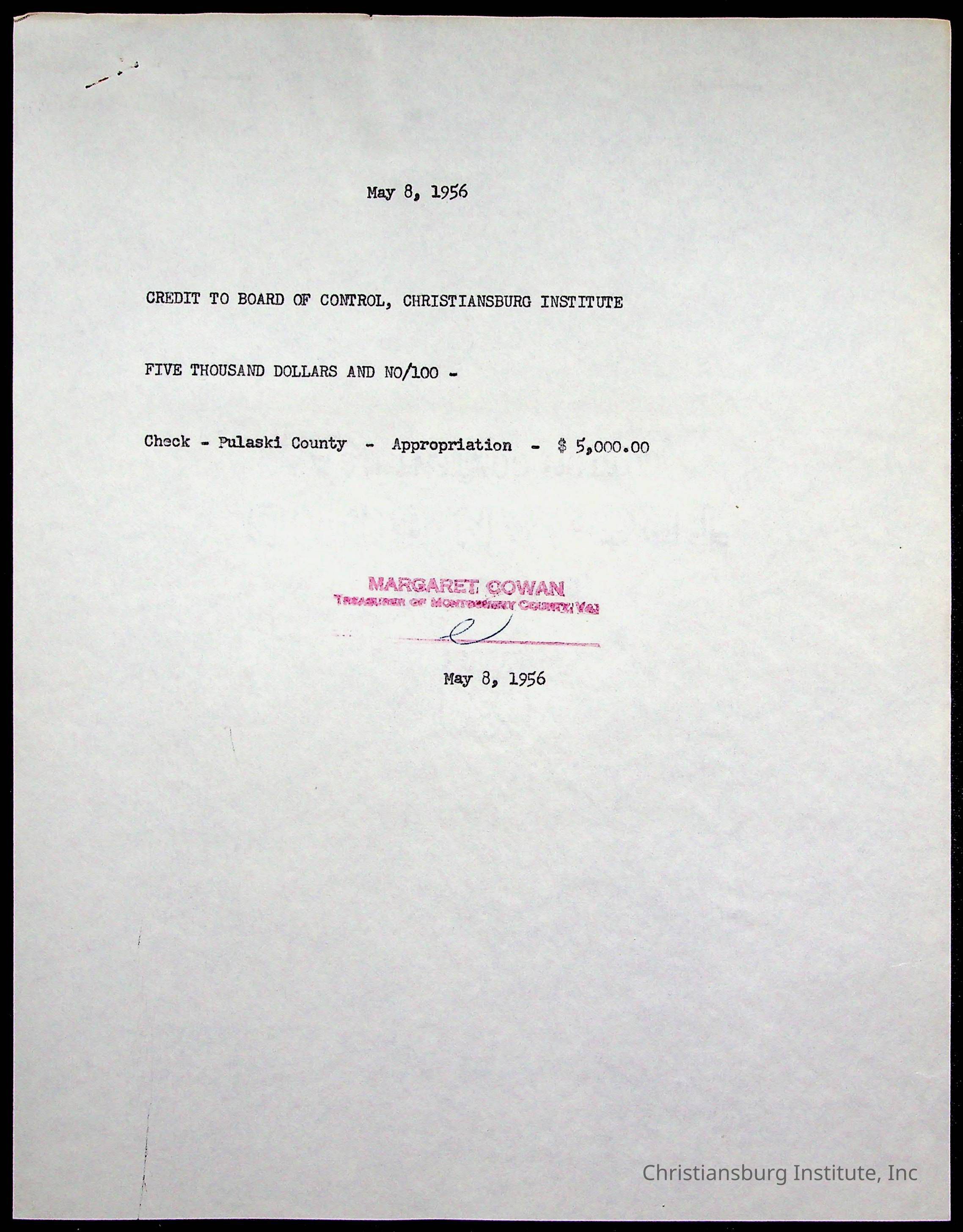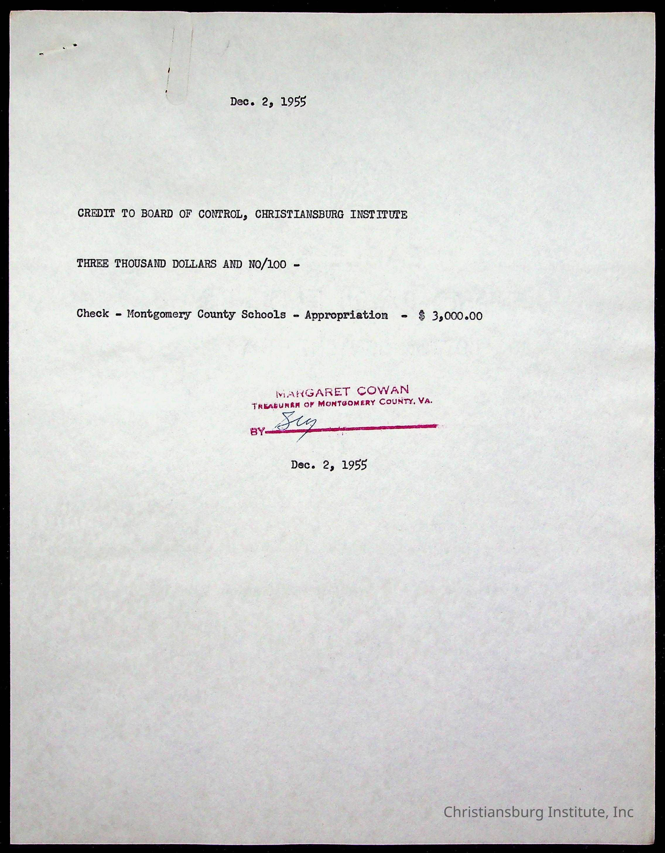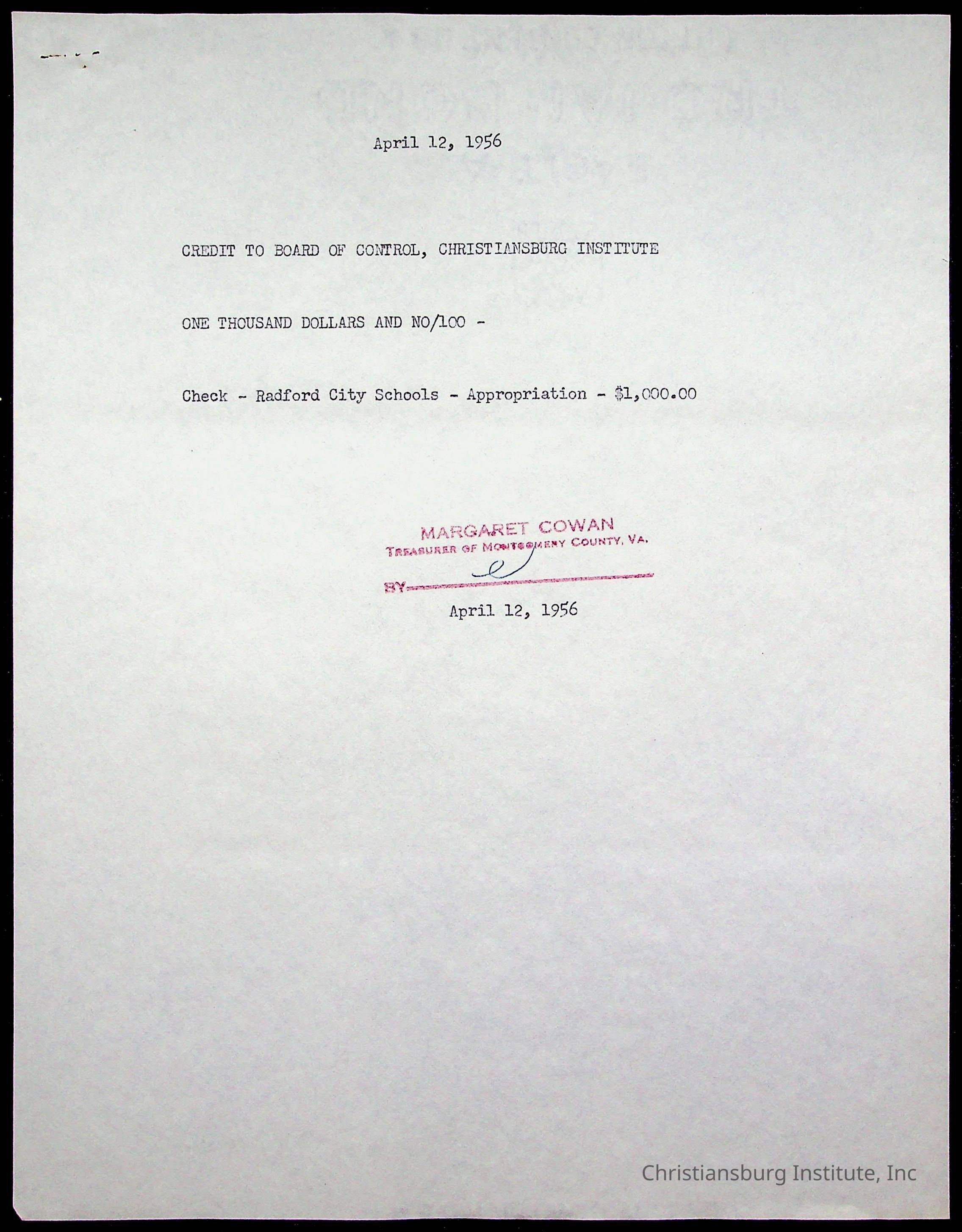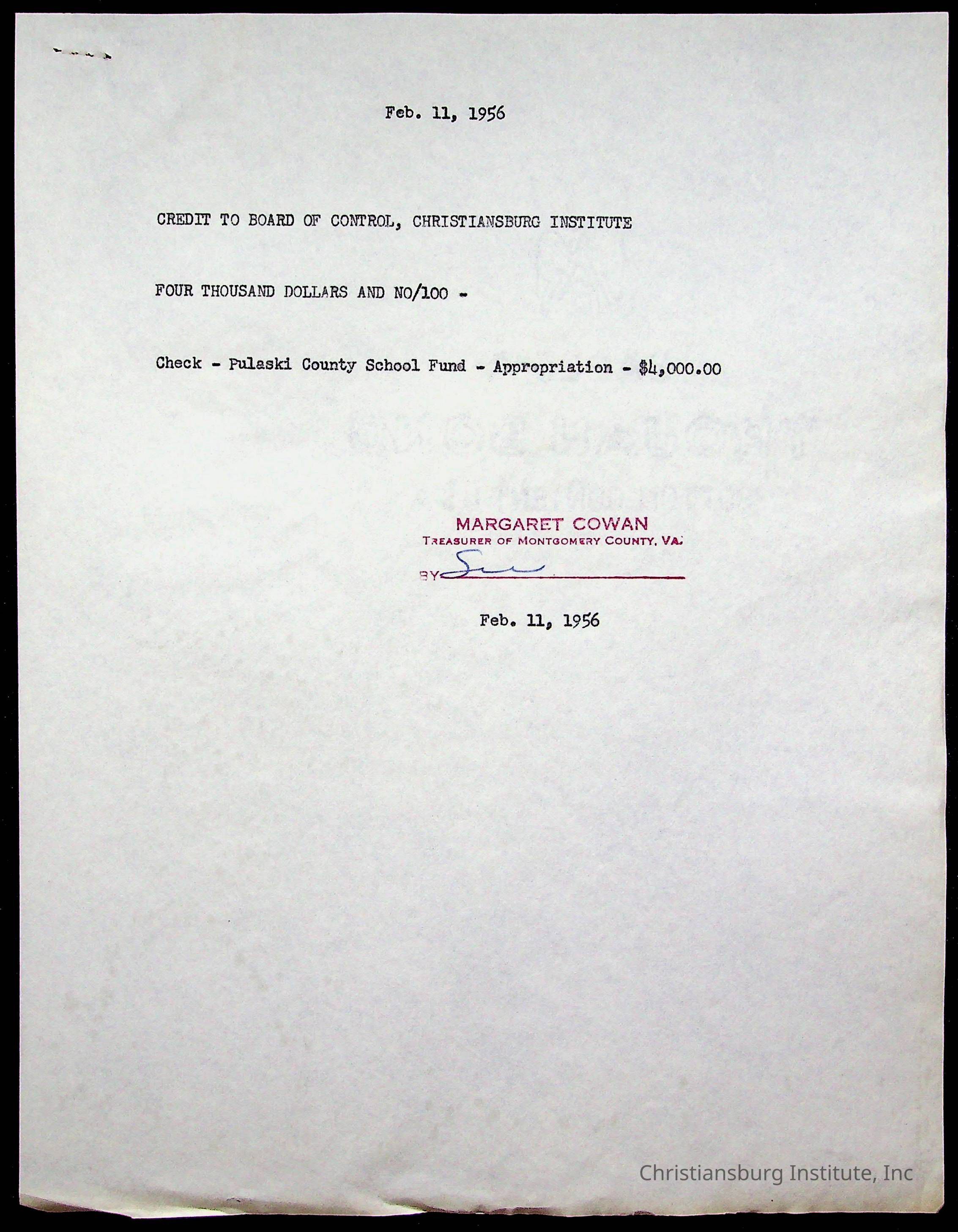 Copyright has been assigned to Christiansburg Institute Museum & Archives by Montgomery County Public Schools. For permission to publish materials created by the donor, contact CIMA@christiansburginstitute.com. Materials not created by Christiansburg Industrial Institute may still be under copyright.