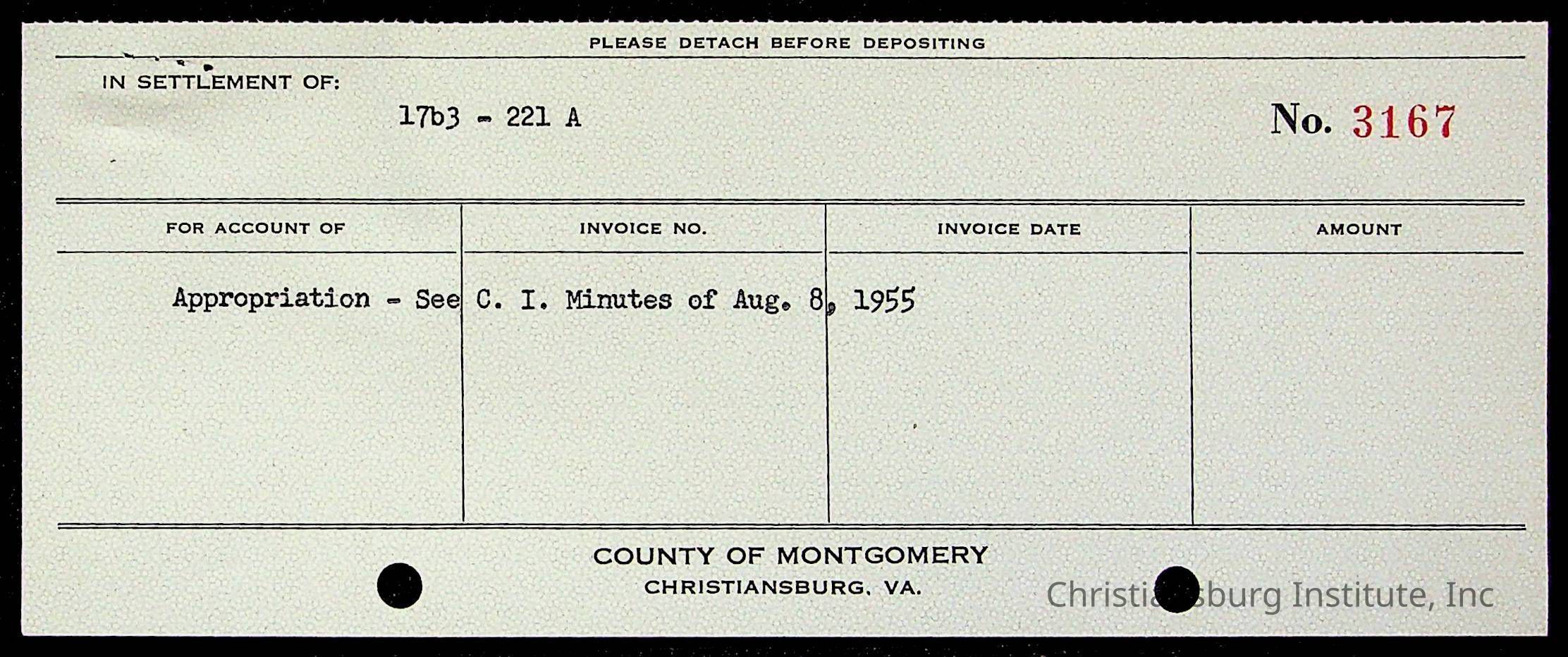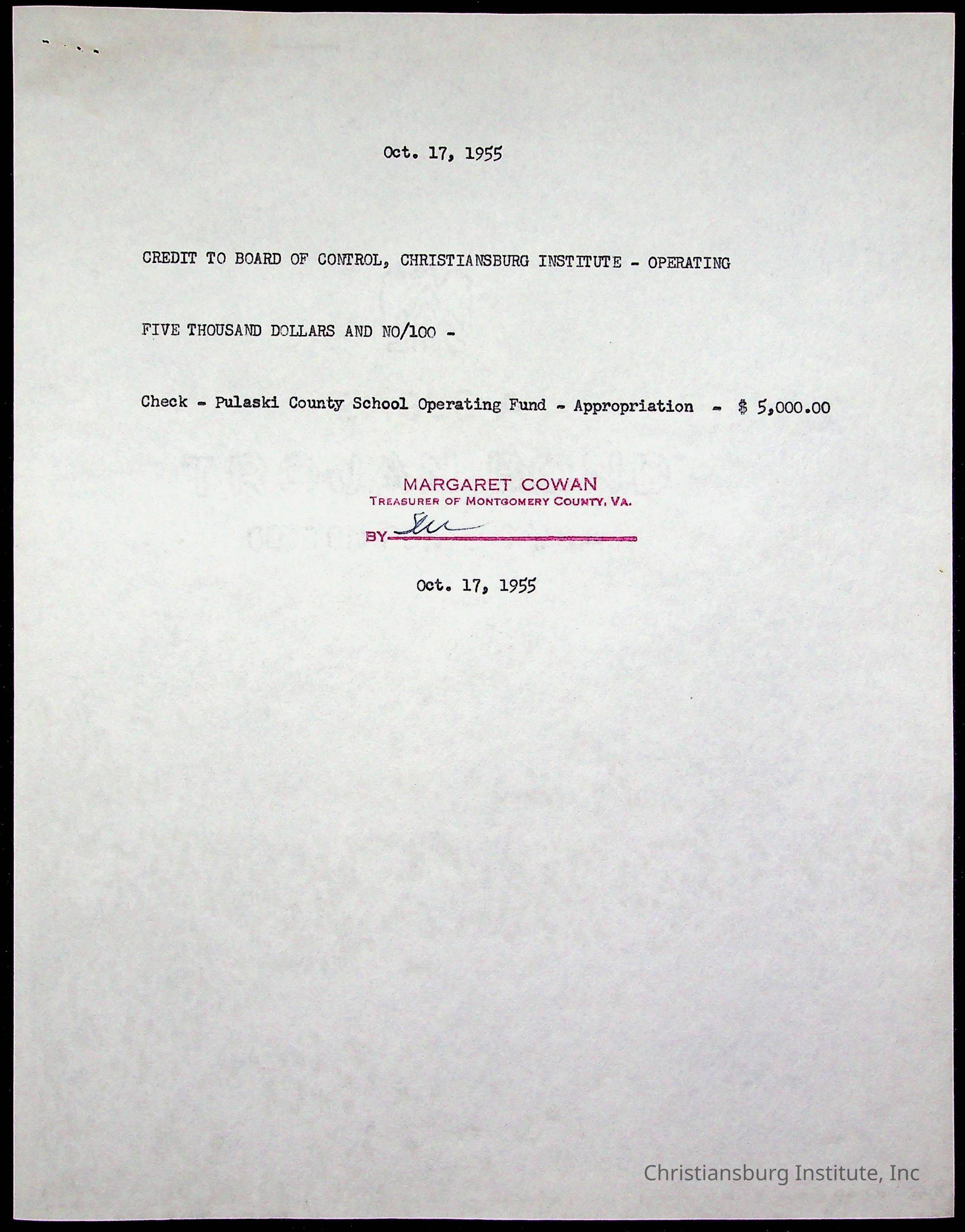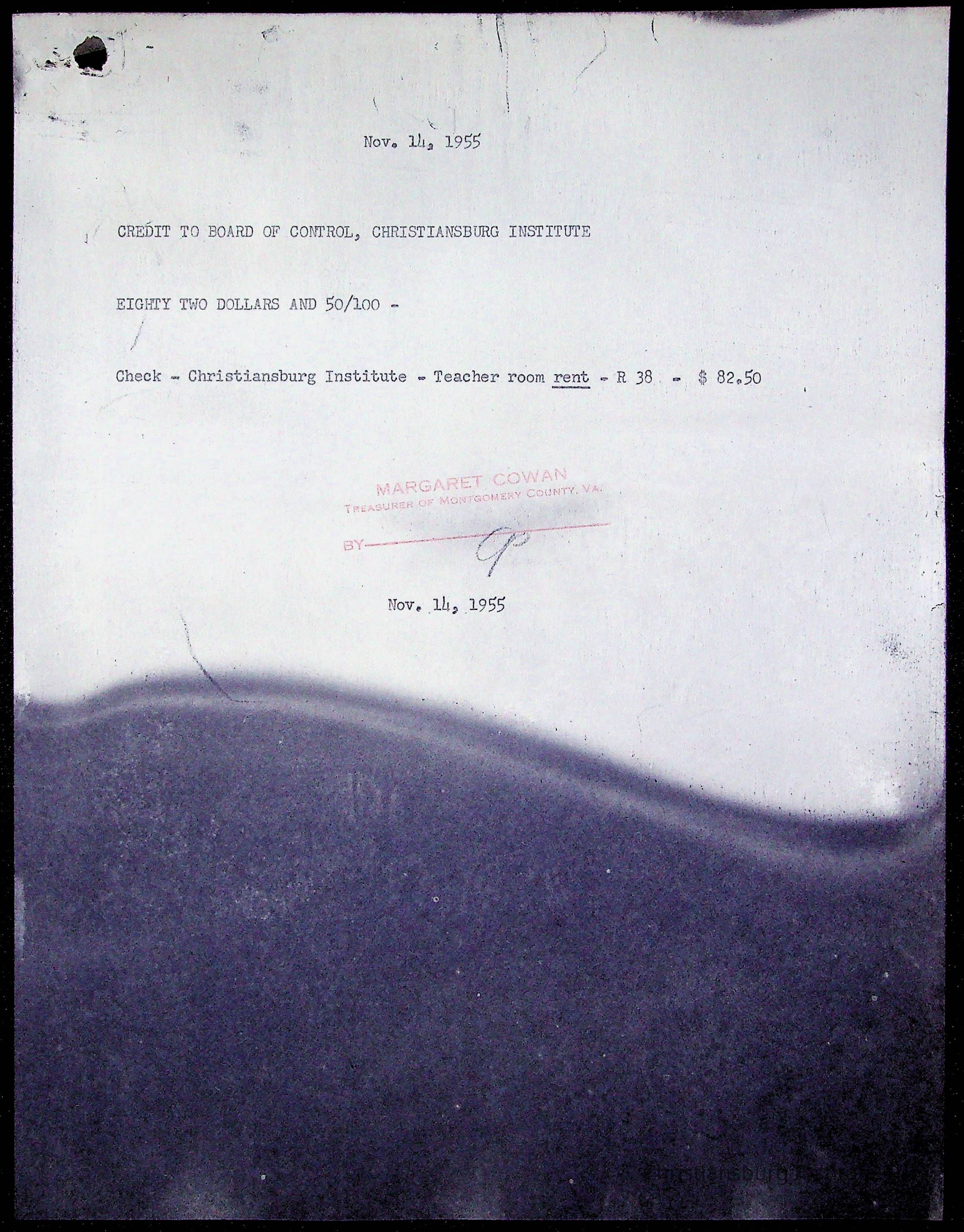 An archive of treasury receipts for Christiansburg Institute for the 1955-1956 school year.