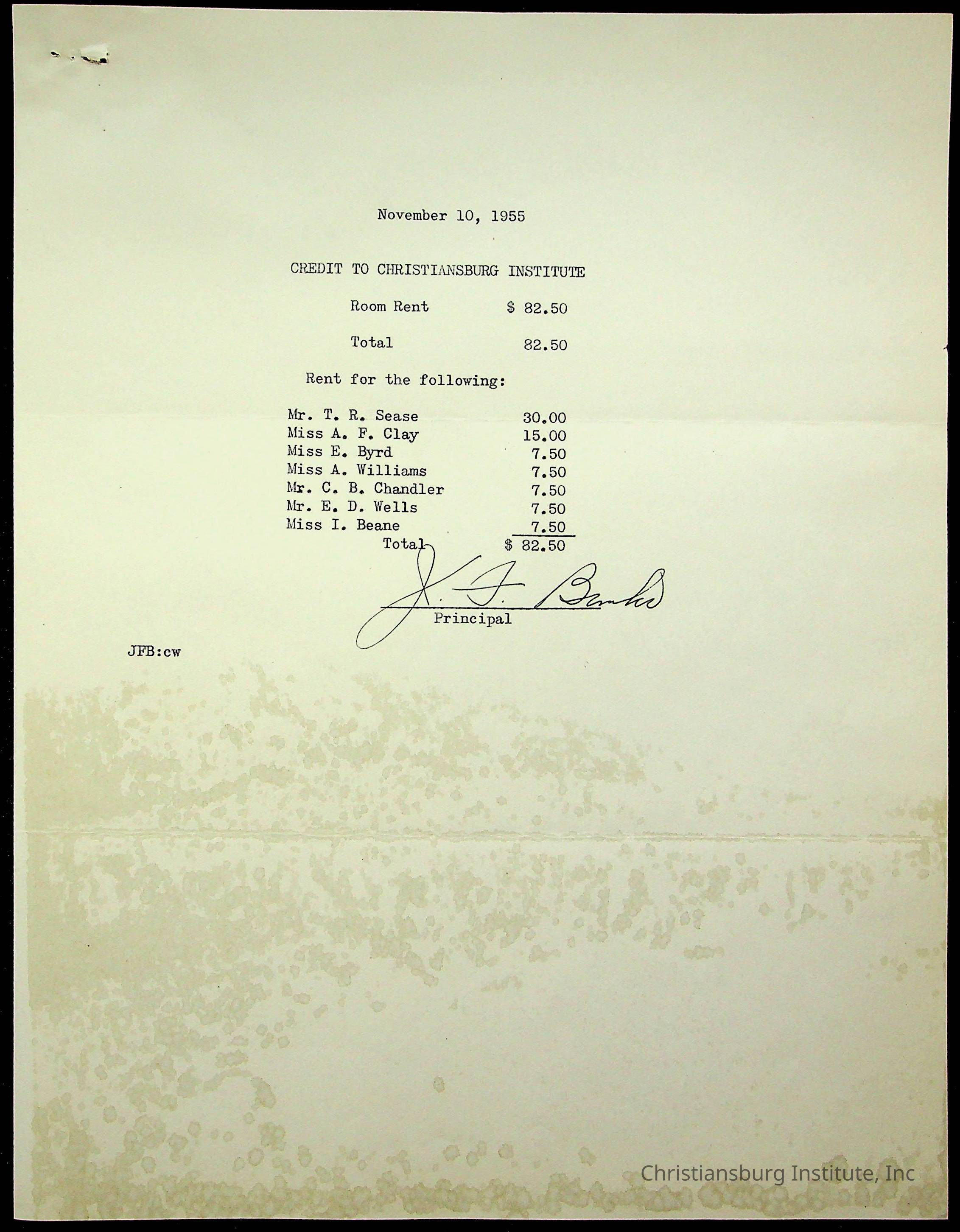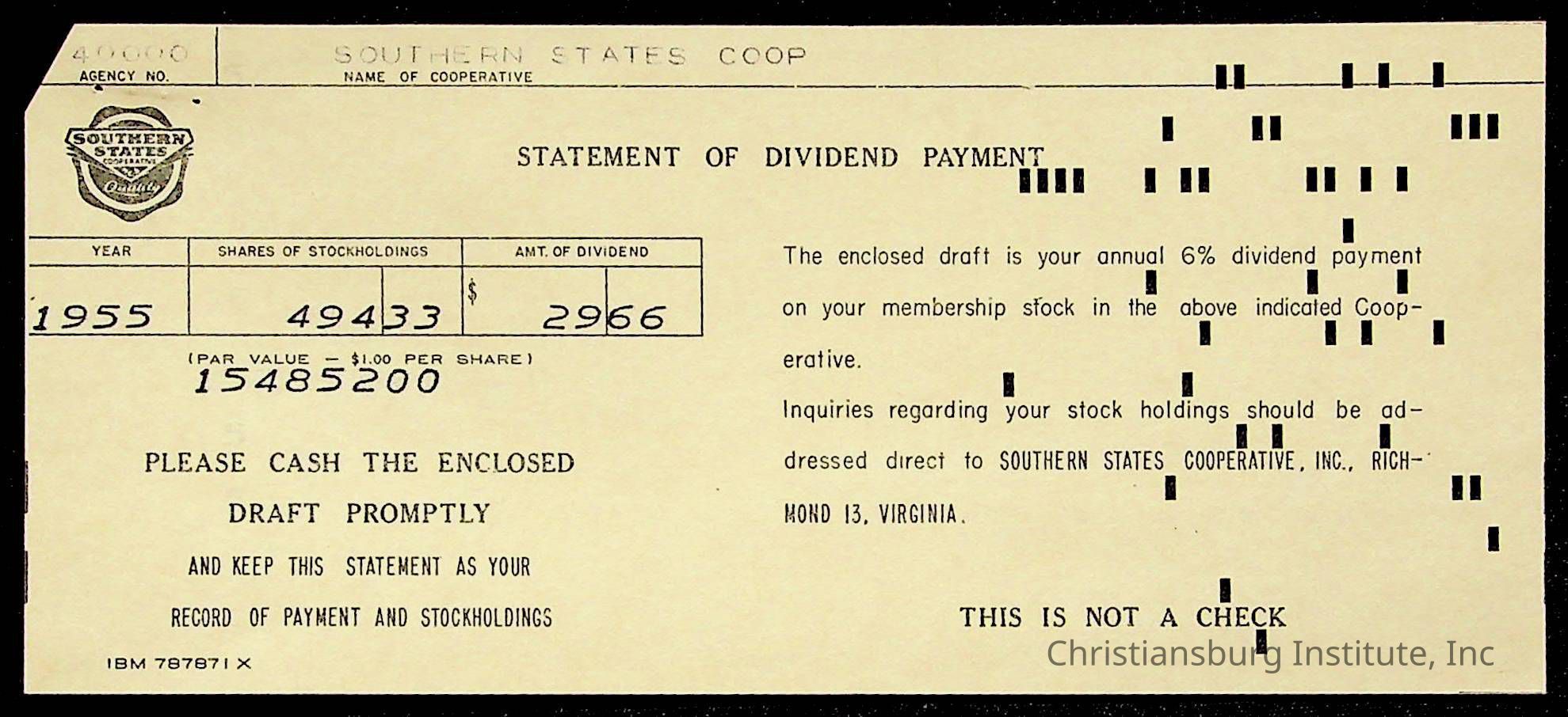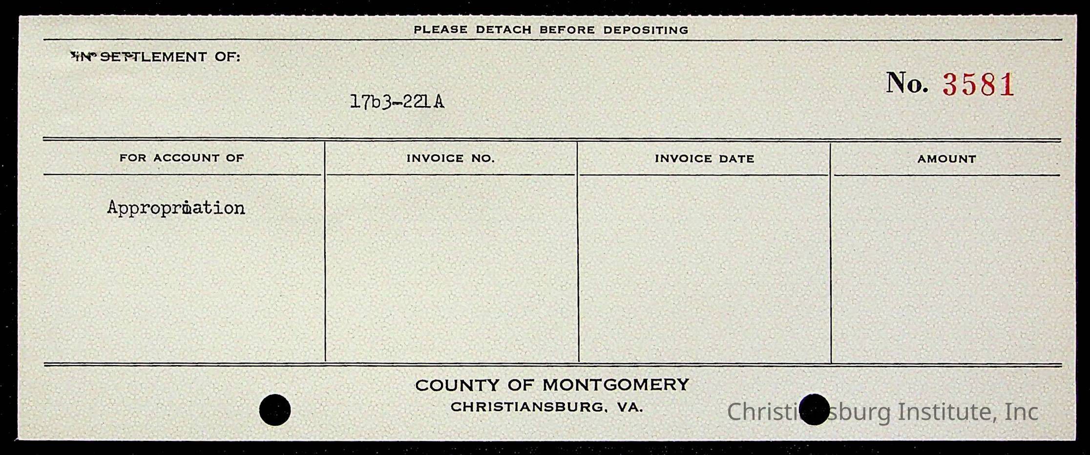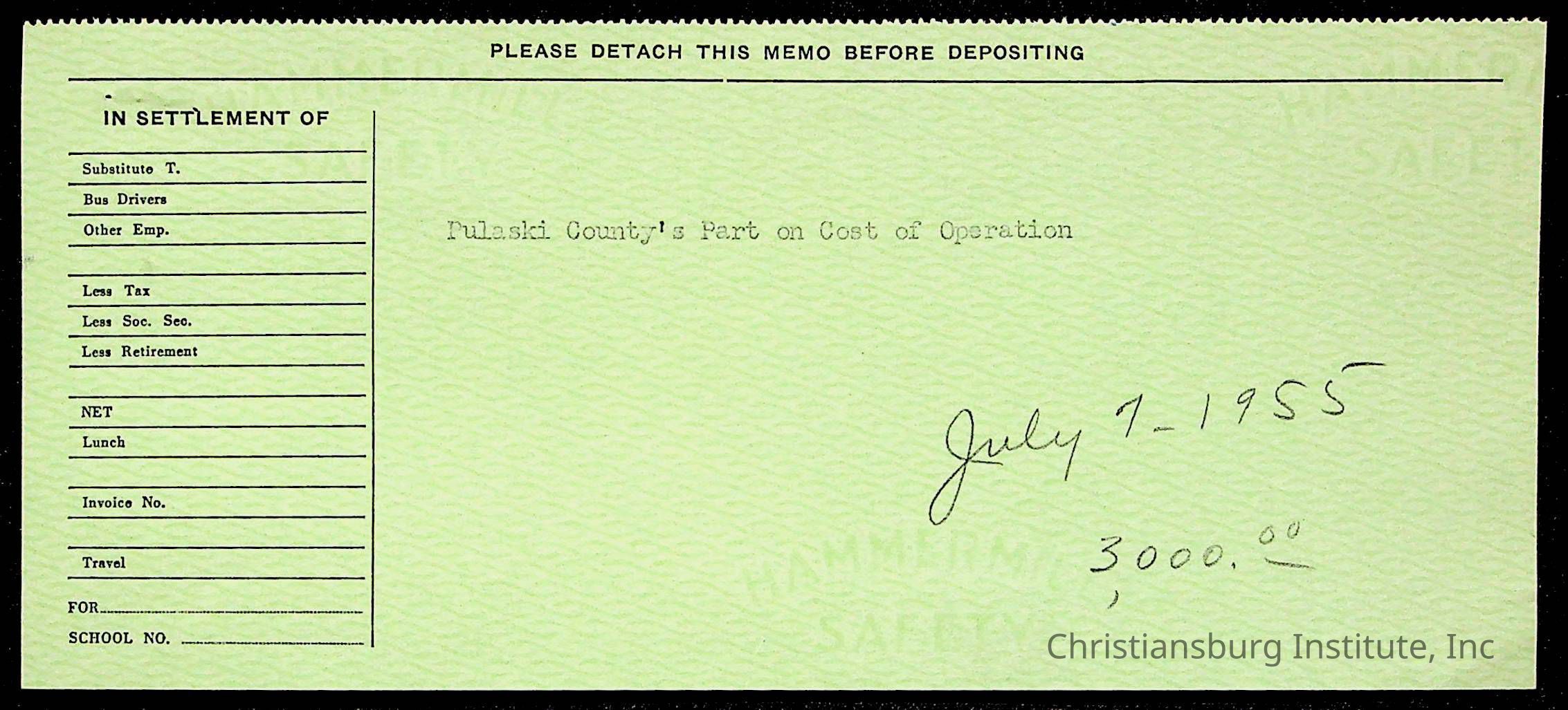 An archive of treasury receipts for Christiansburg Institute for the 1955-1956 school year.