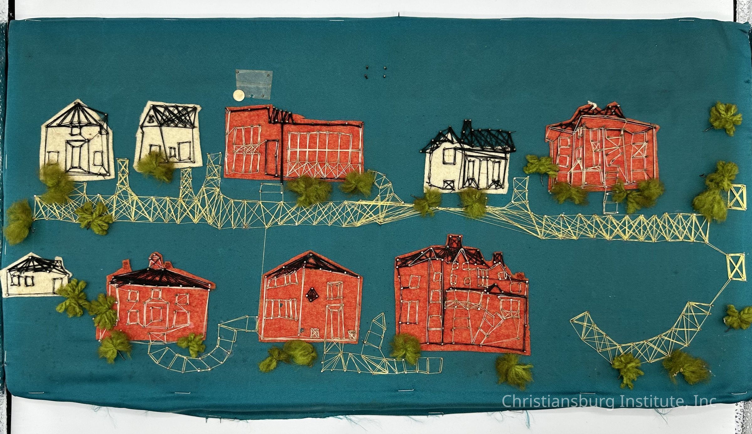 A multi-media artwork depiction of the Christiansburg Institute campus made by Amanda DeHart, undated.