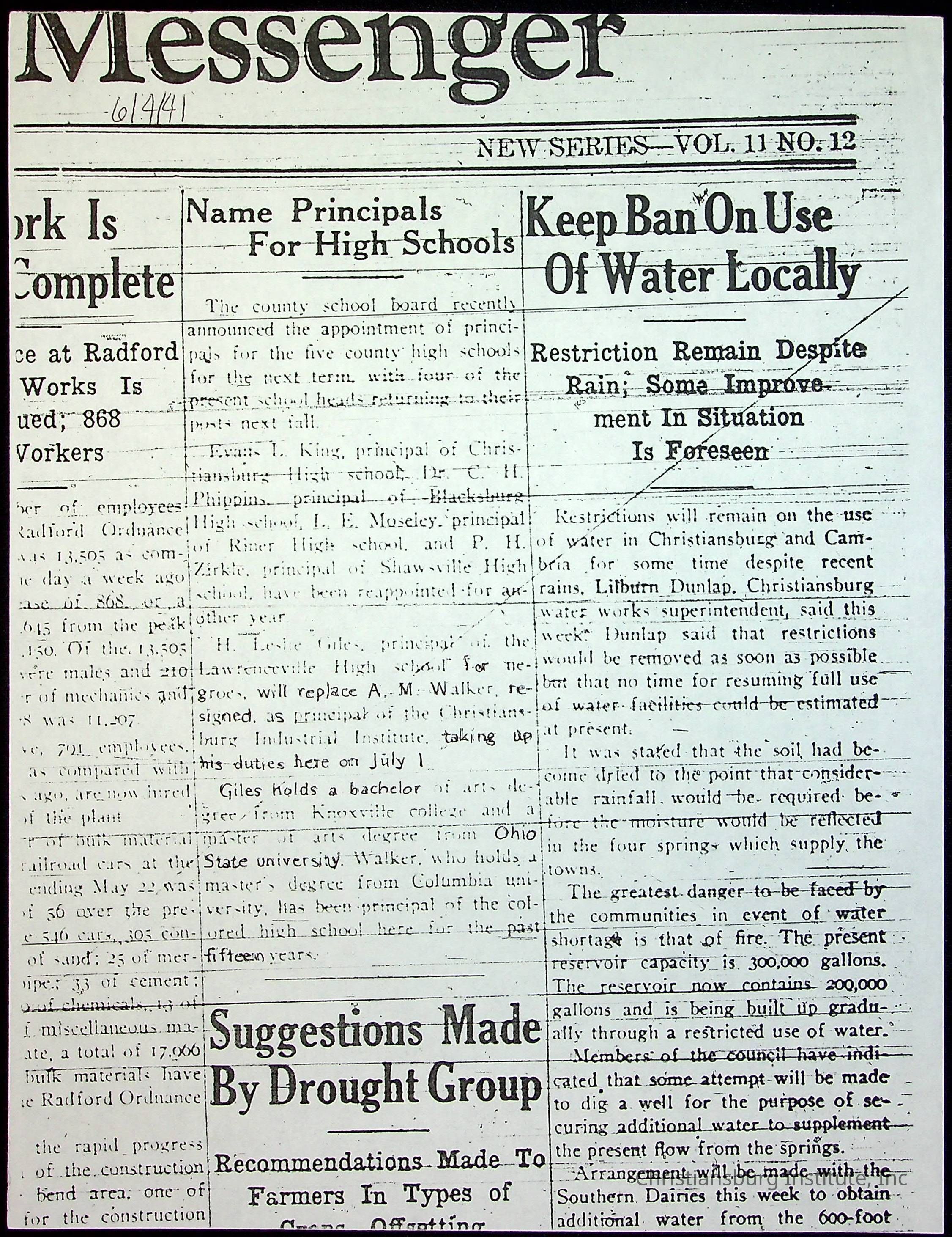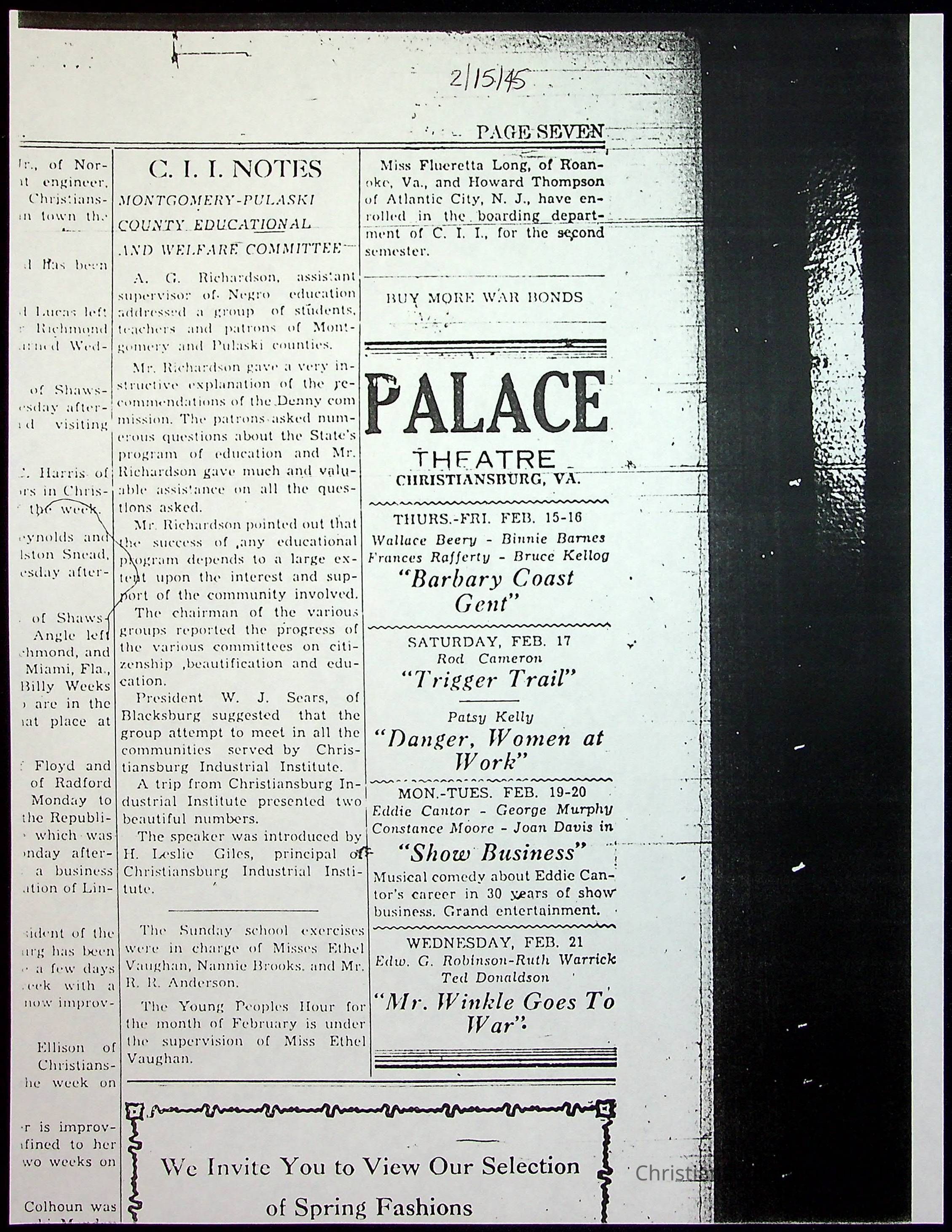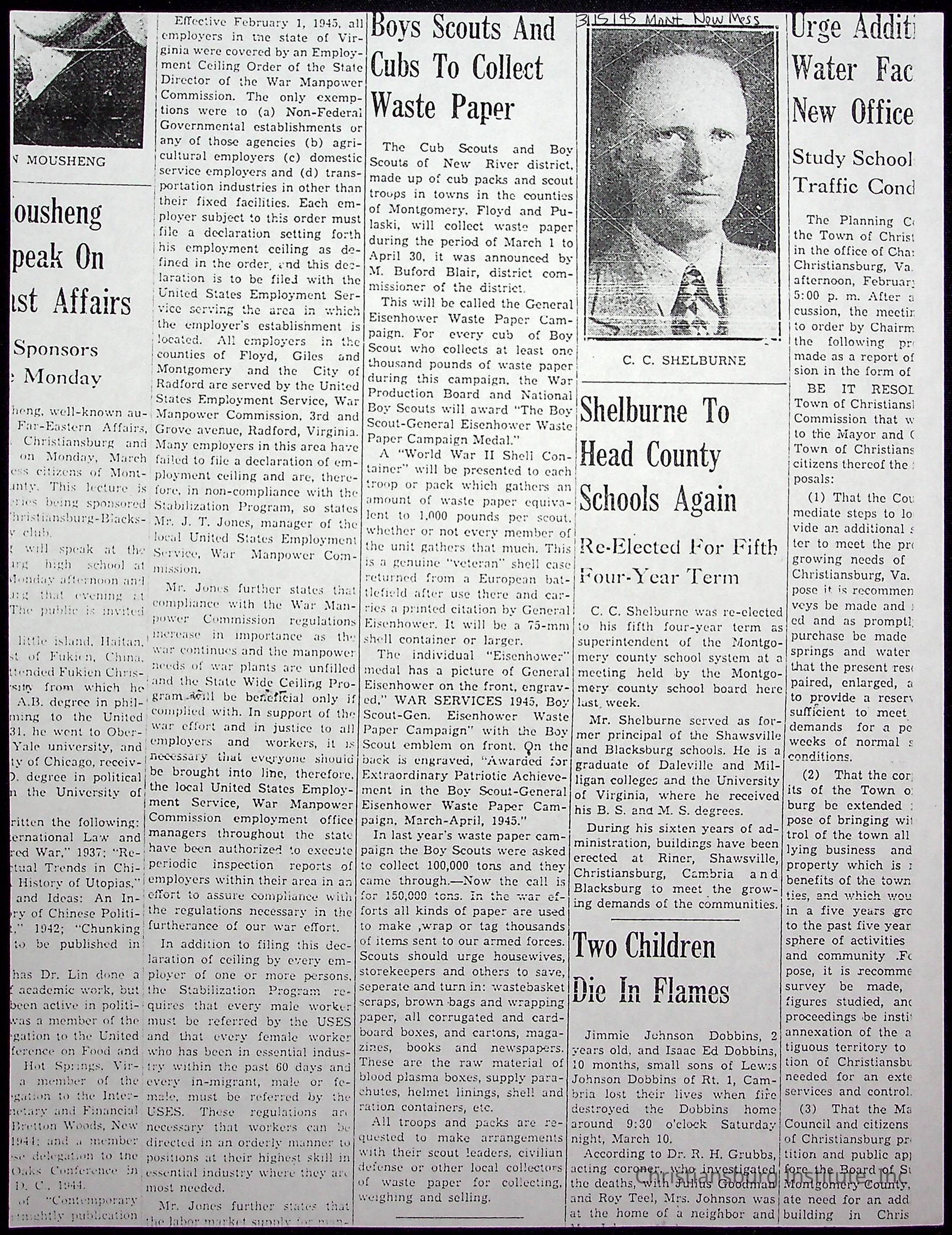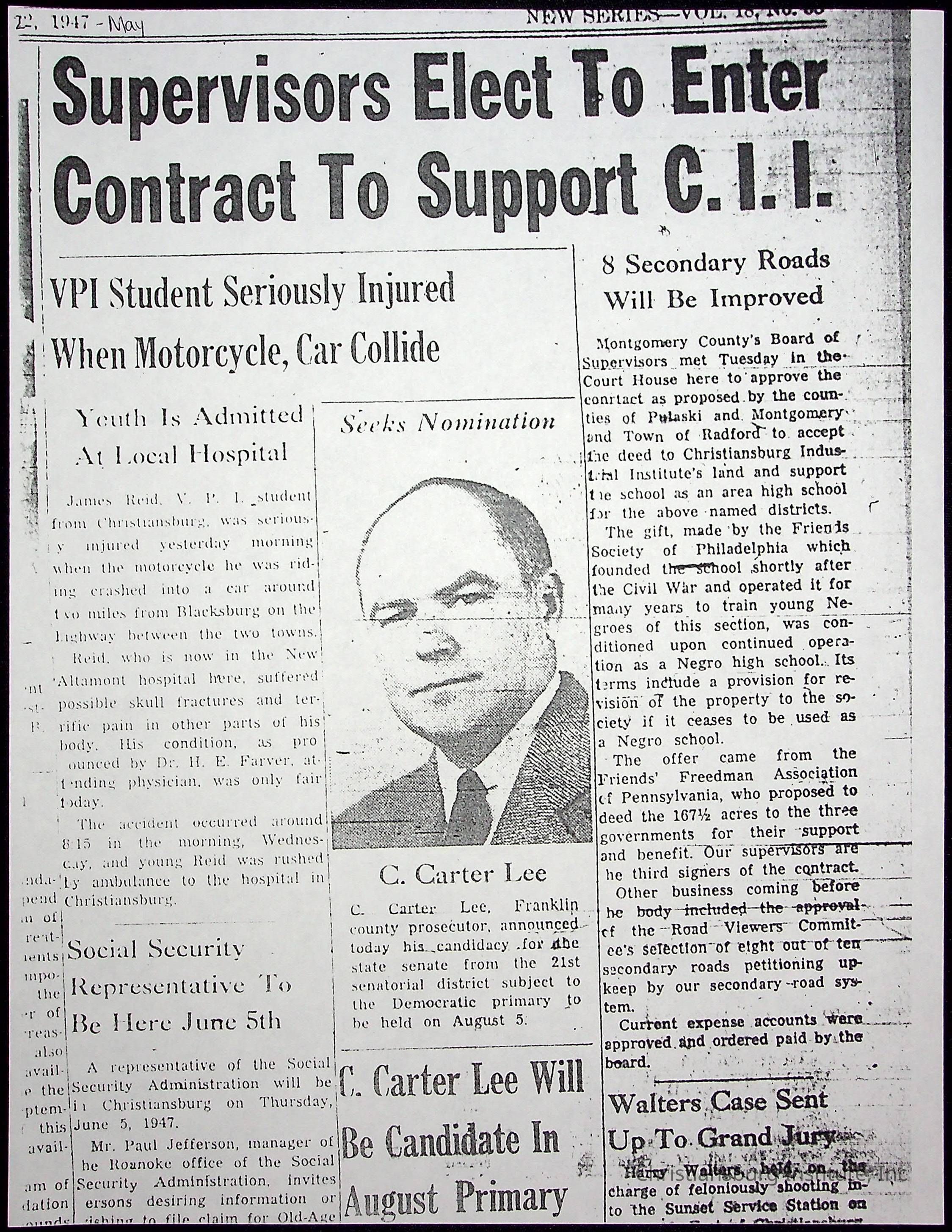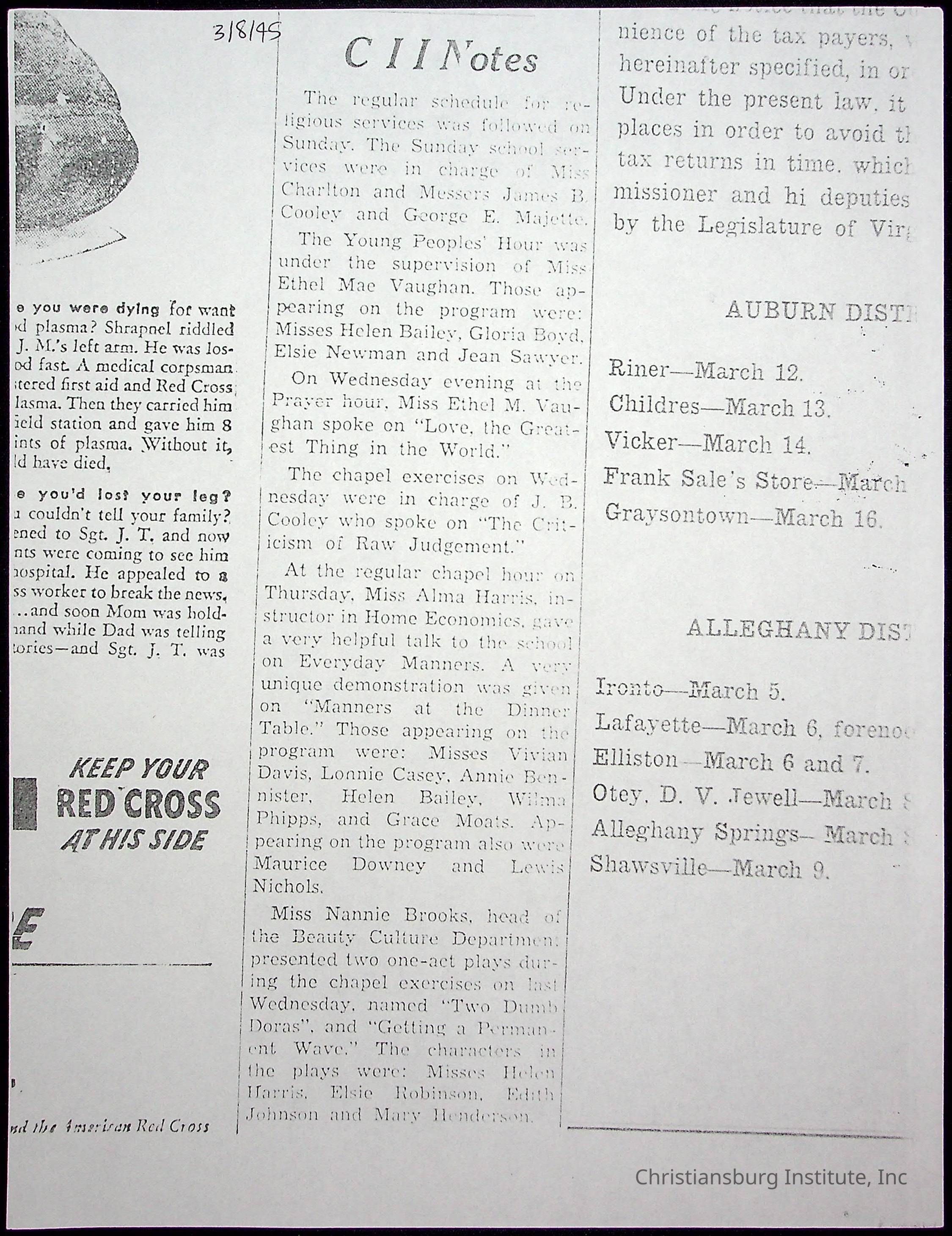 A collection of newspaper articles that feature stories about Christiansburg Institute and other Montgomery County schools dates range from 1941 through 1948. These articles come from various newspapers.Date(s) of Creation