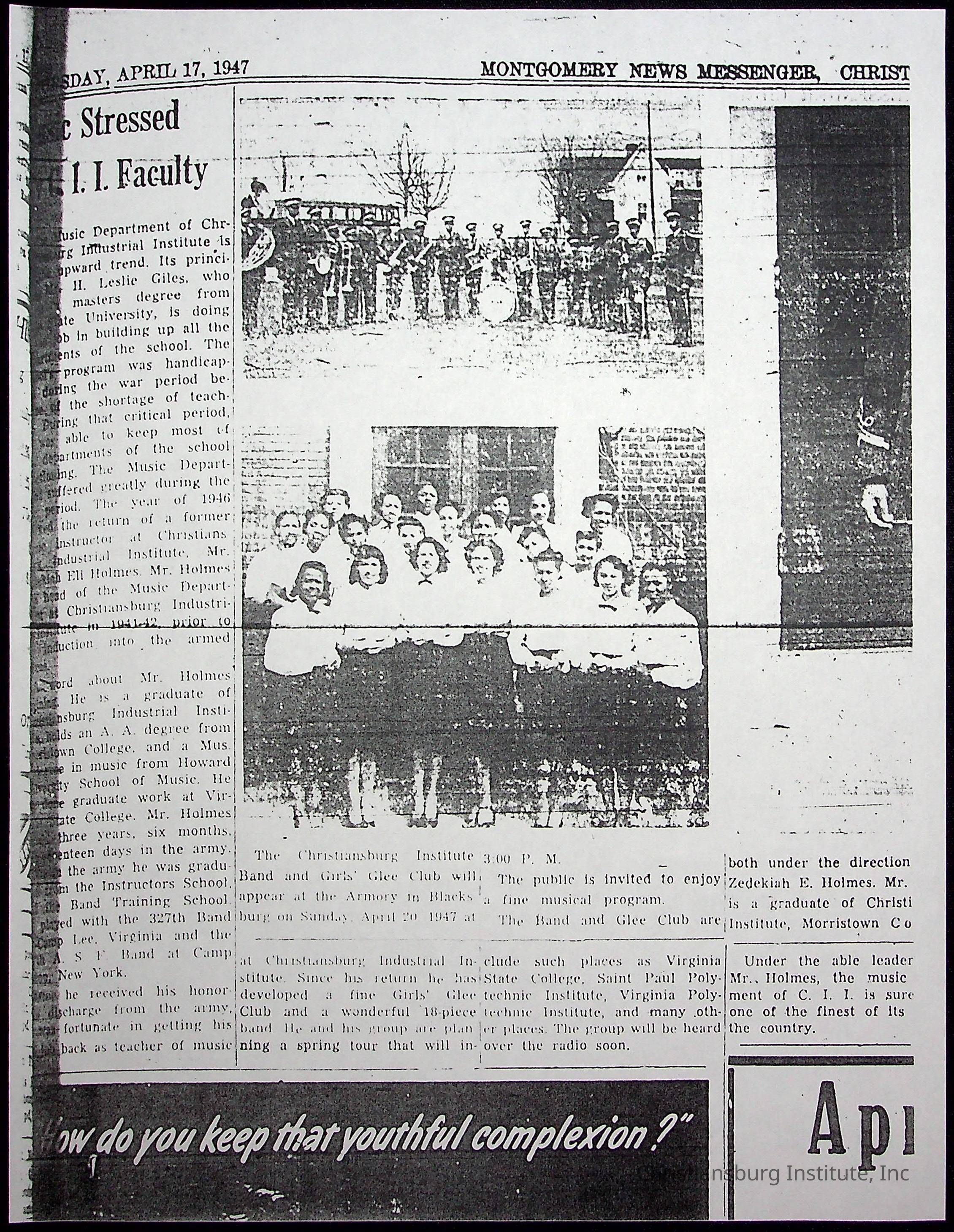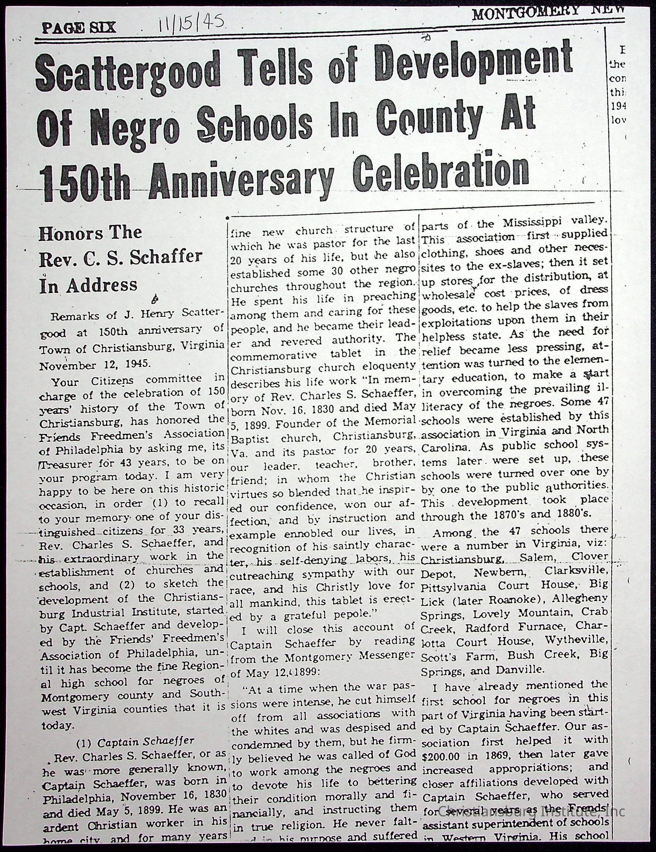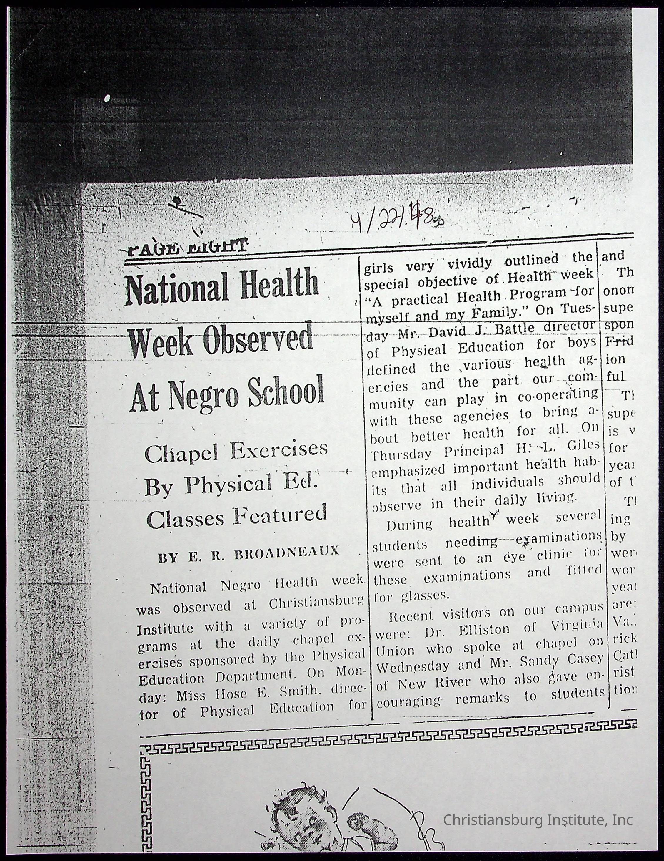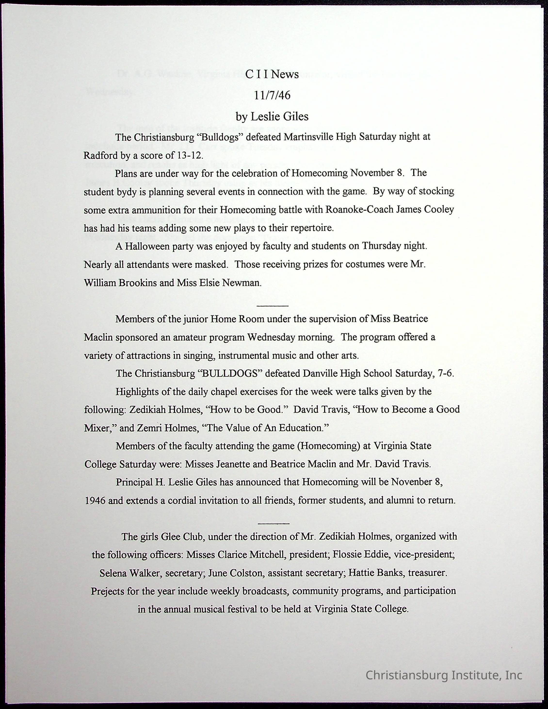 A collection of newspaper articles that feature stories about Christiansburg Institute and other Montgomery County schools dates range from 1941 through 1948. These articles come from various newspapers.Date(s) of Creation