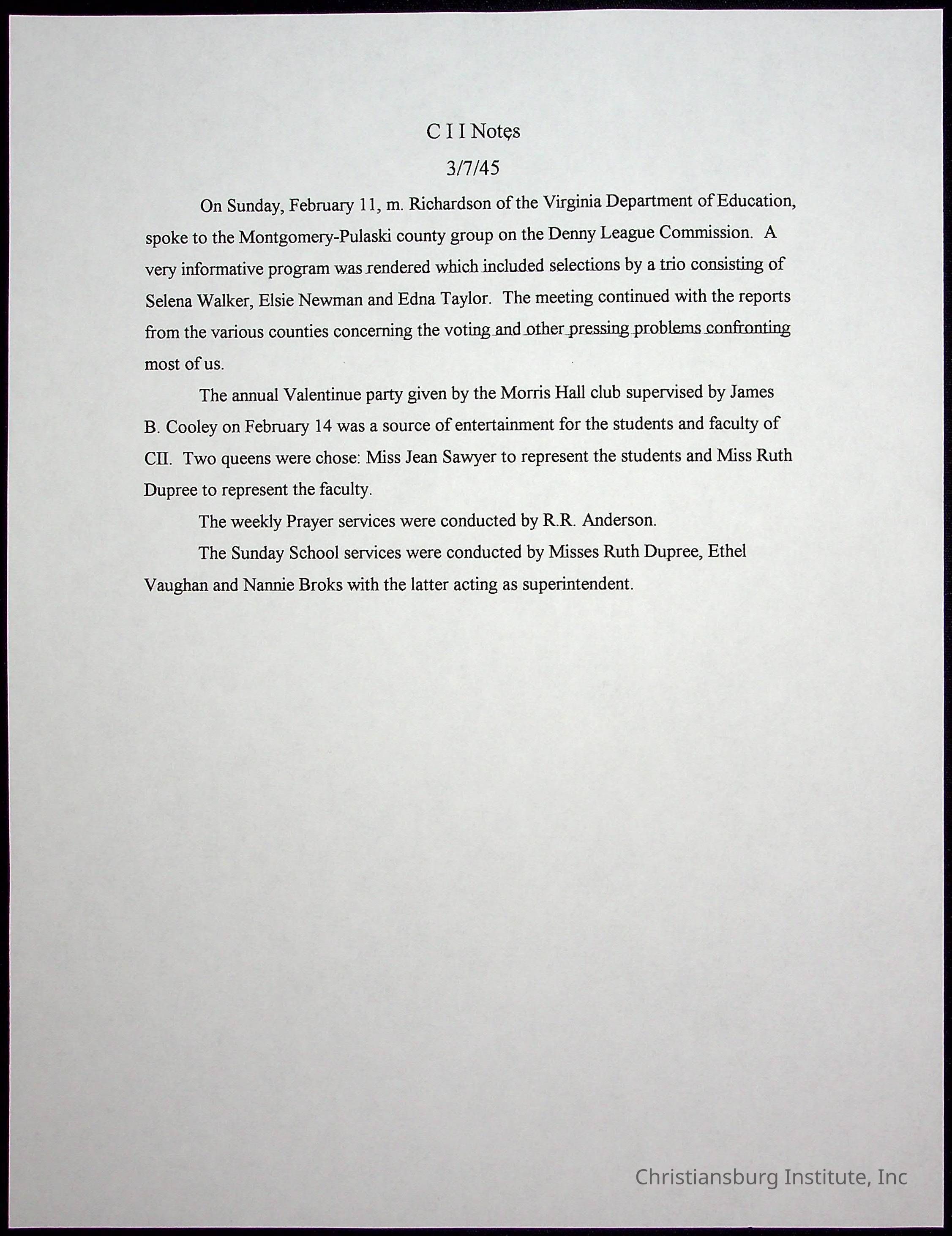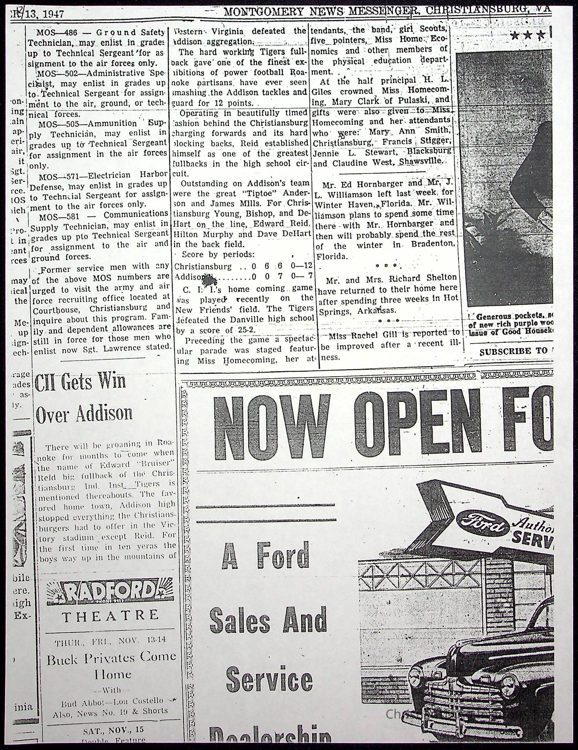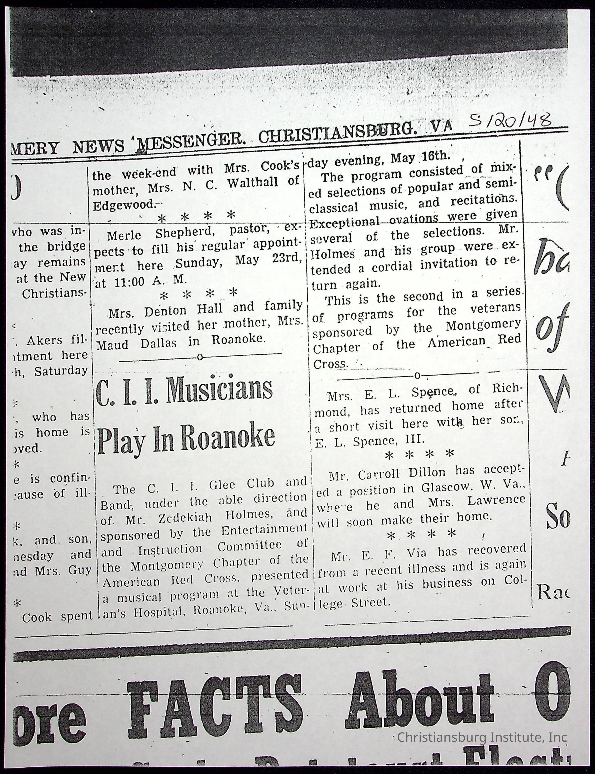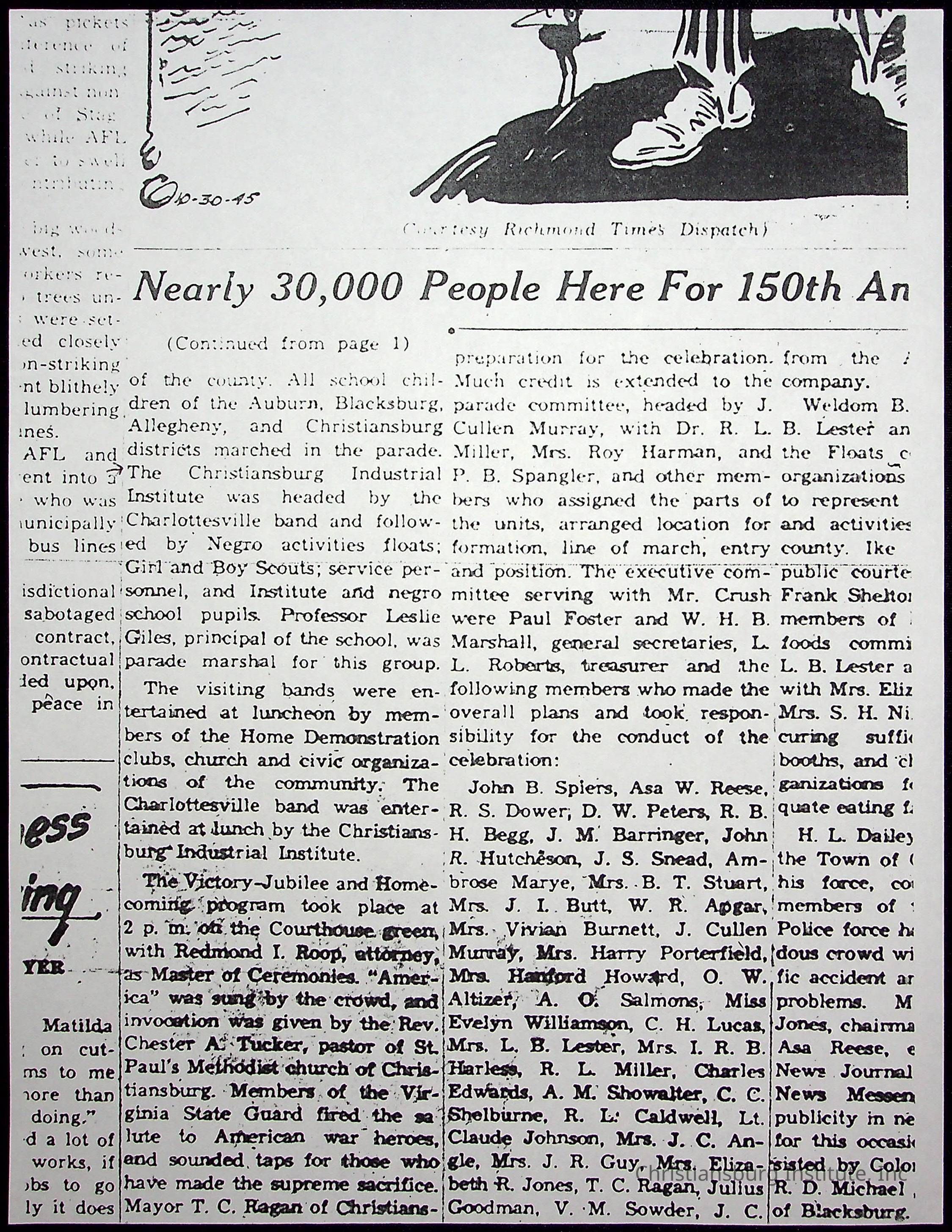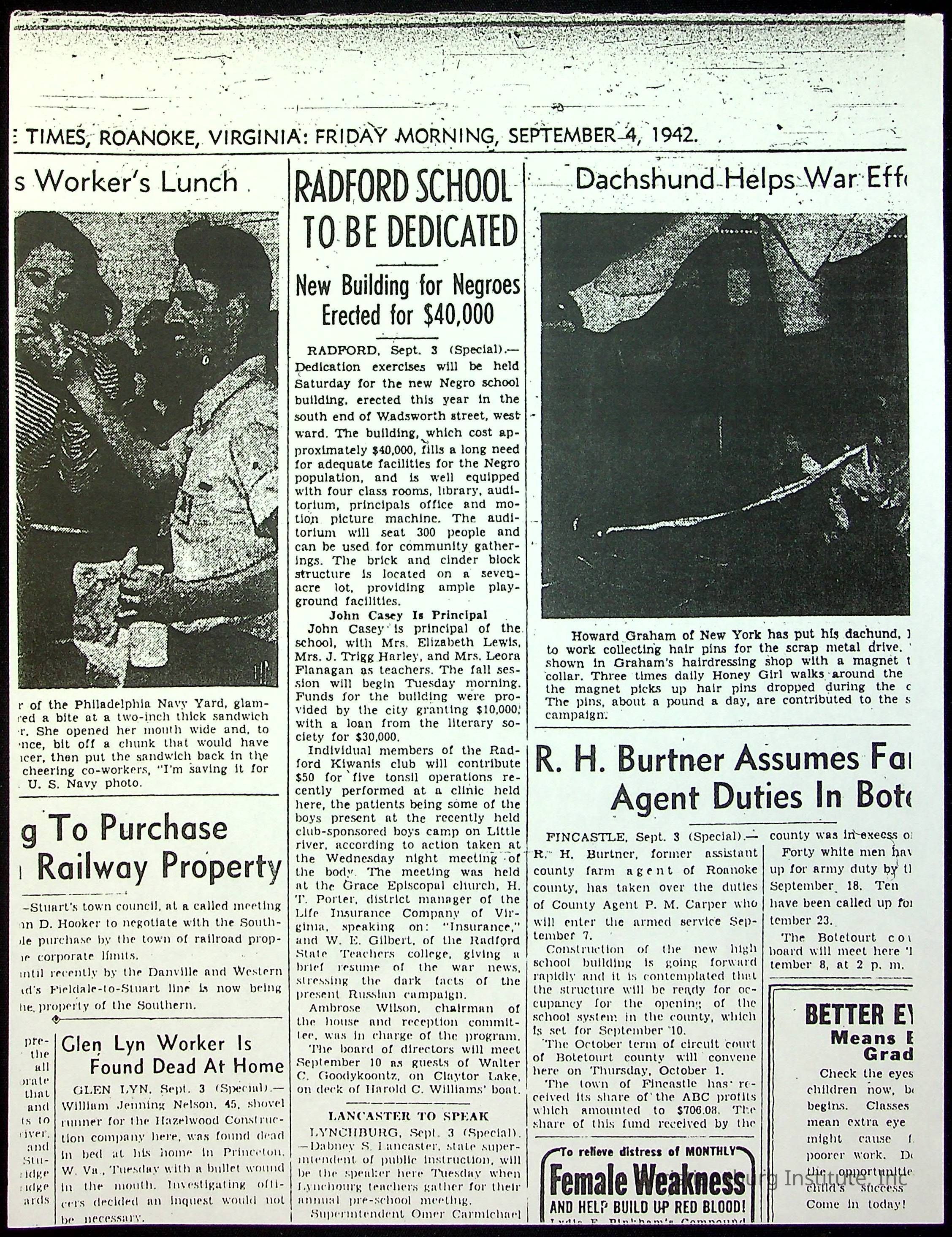 A collection of newspaper articles that feature stories about Christiansburg Institute and other Montgomery County schools dates range from 1941 through 1948. These articles come from various newspapers.Date(s) of Creation