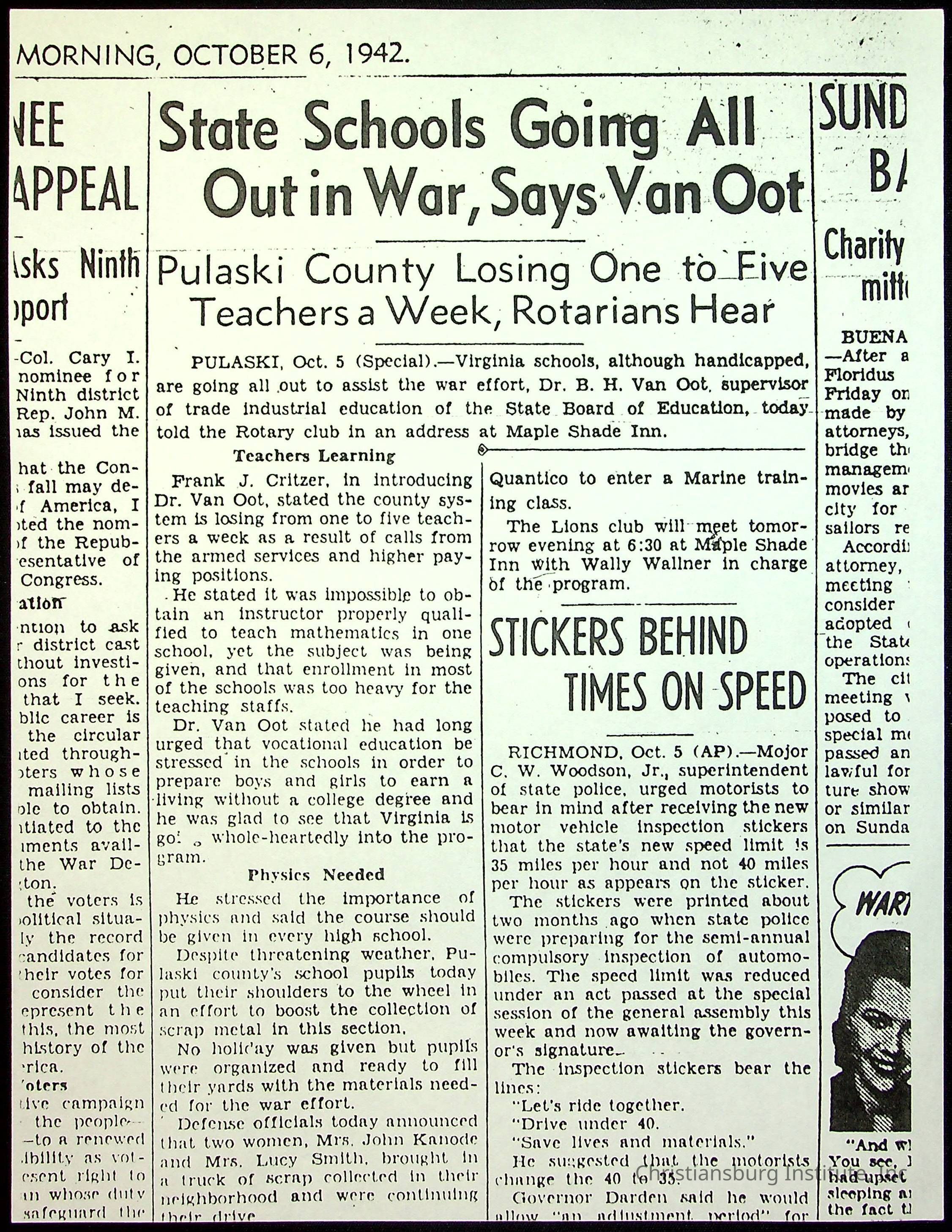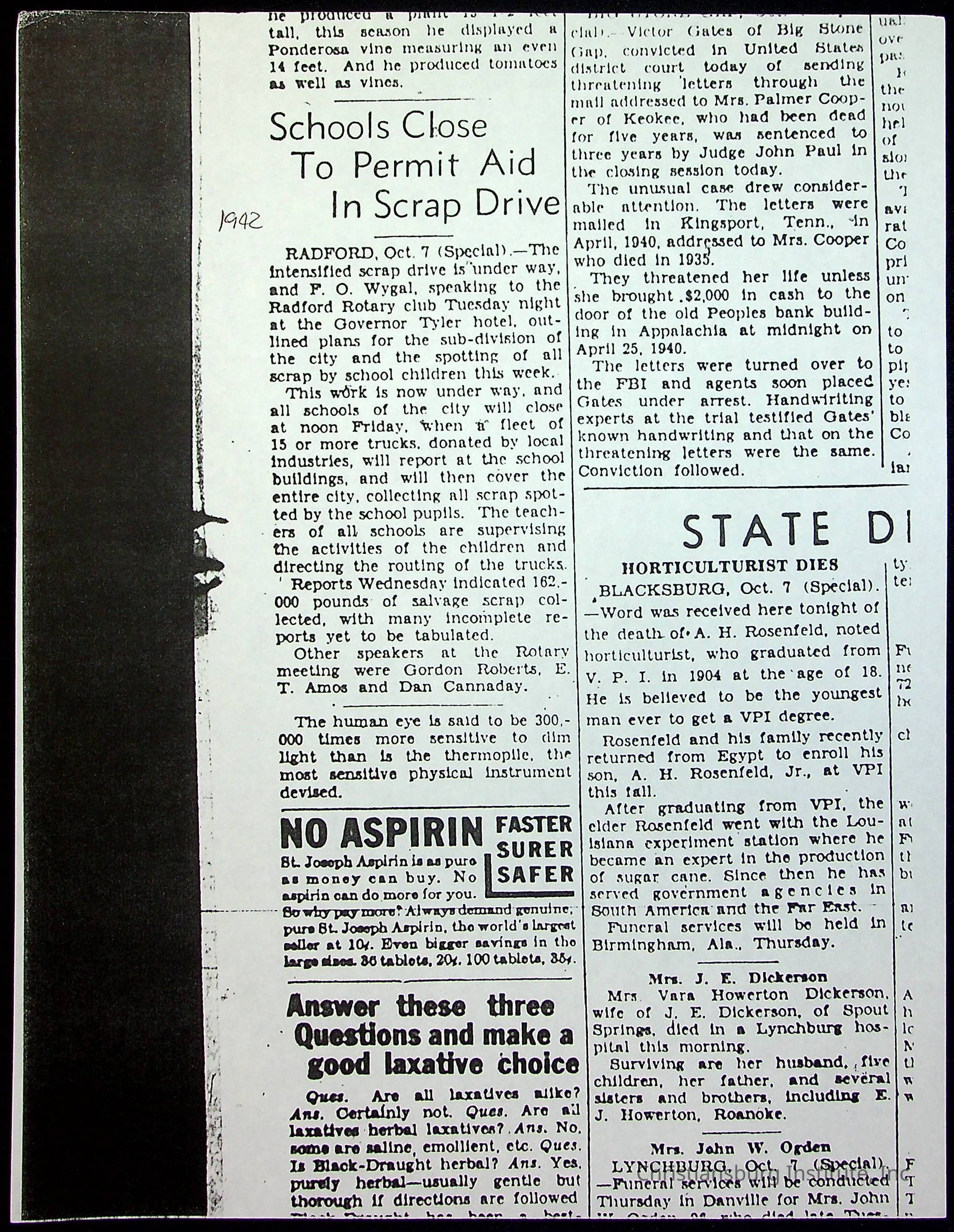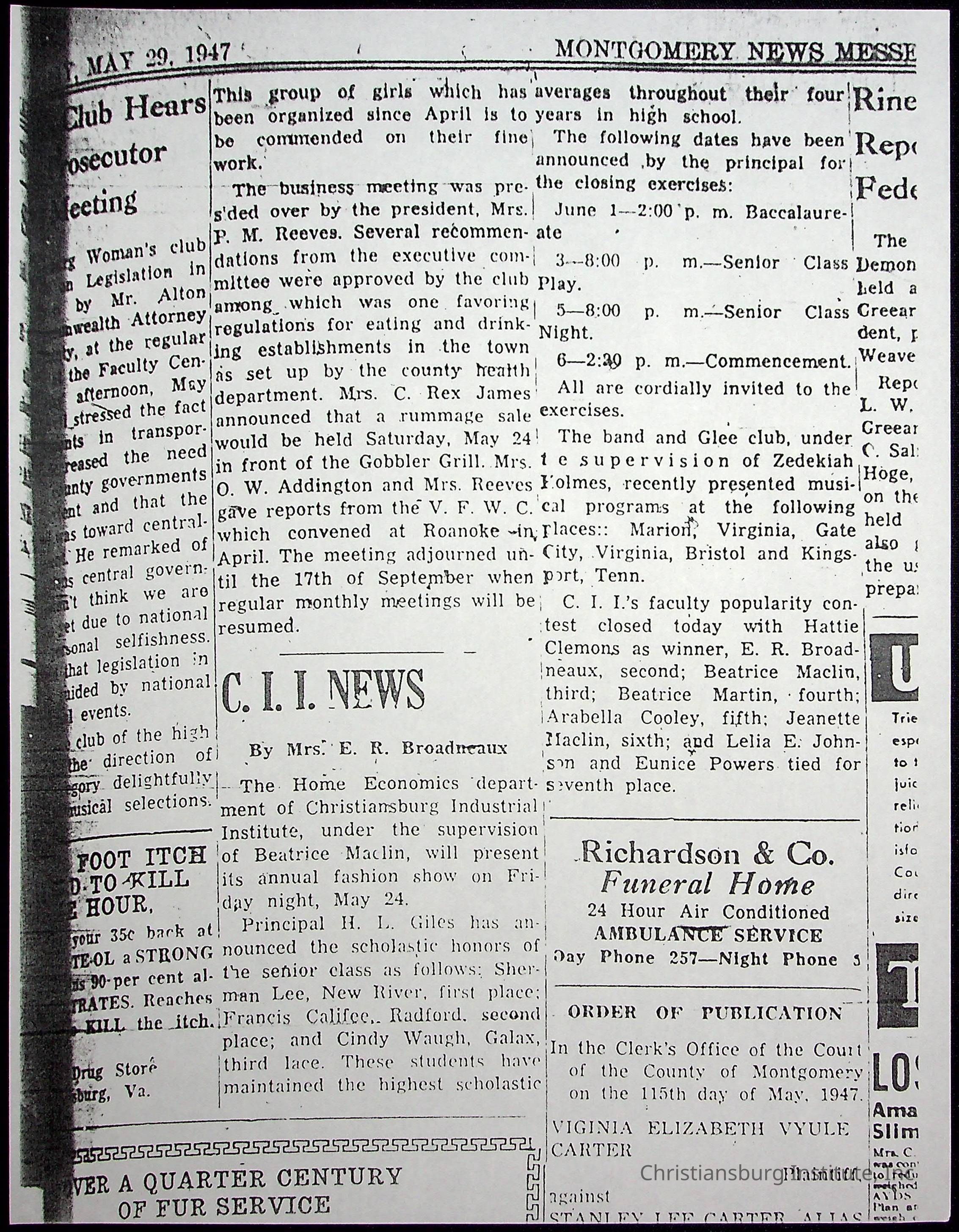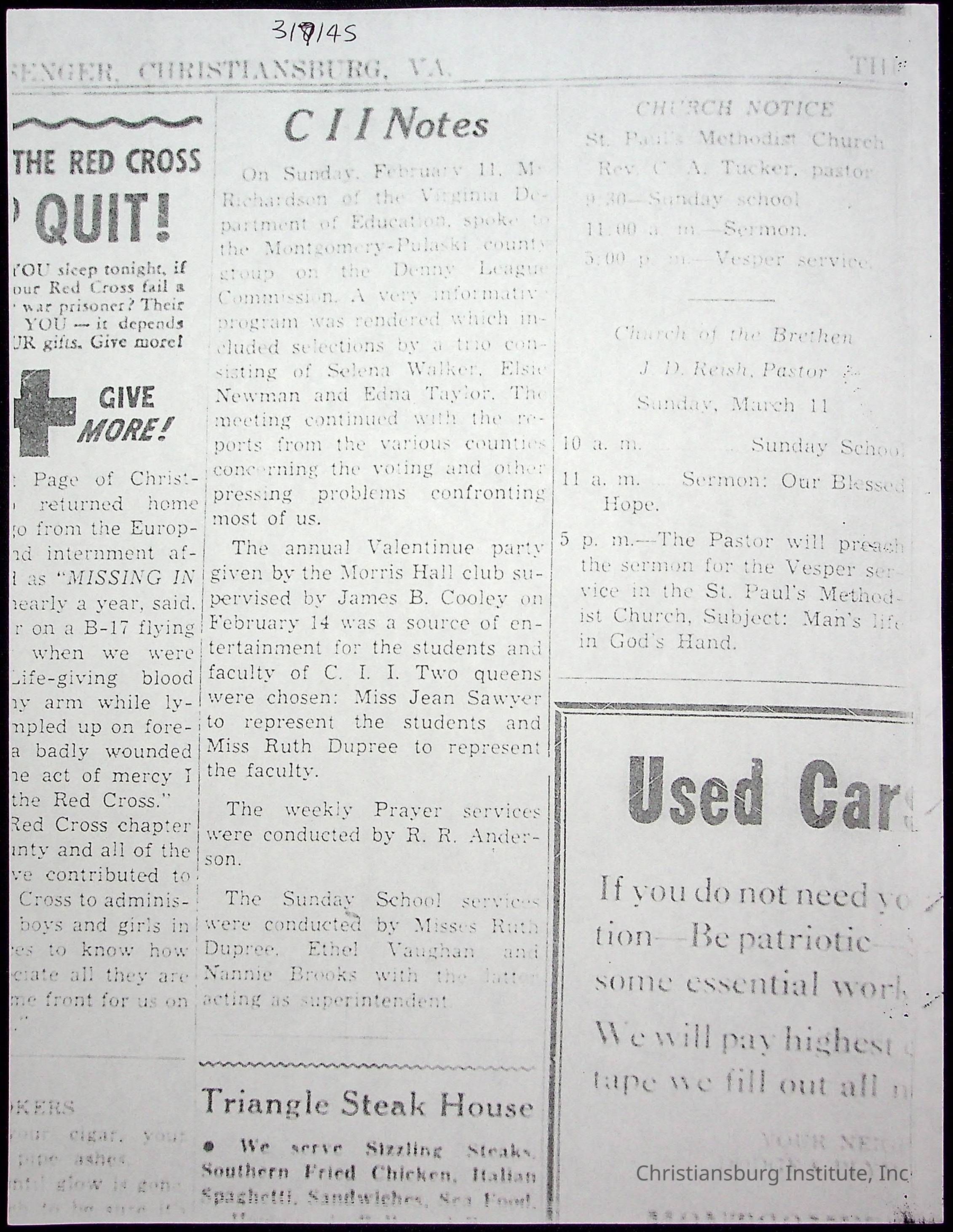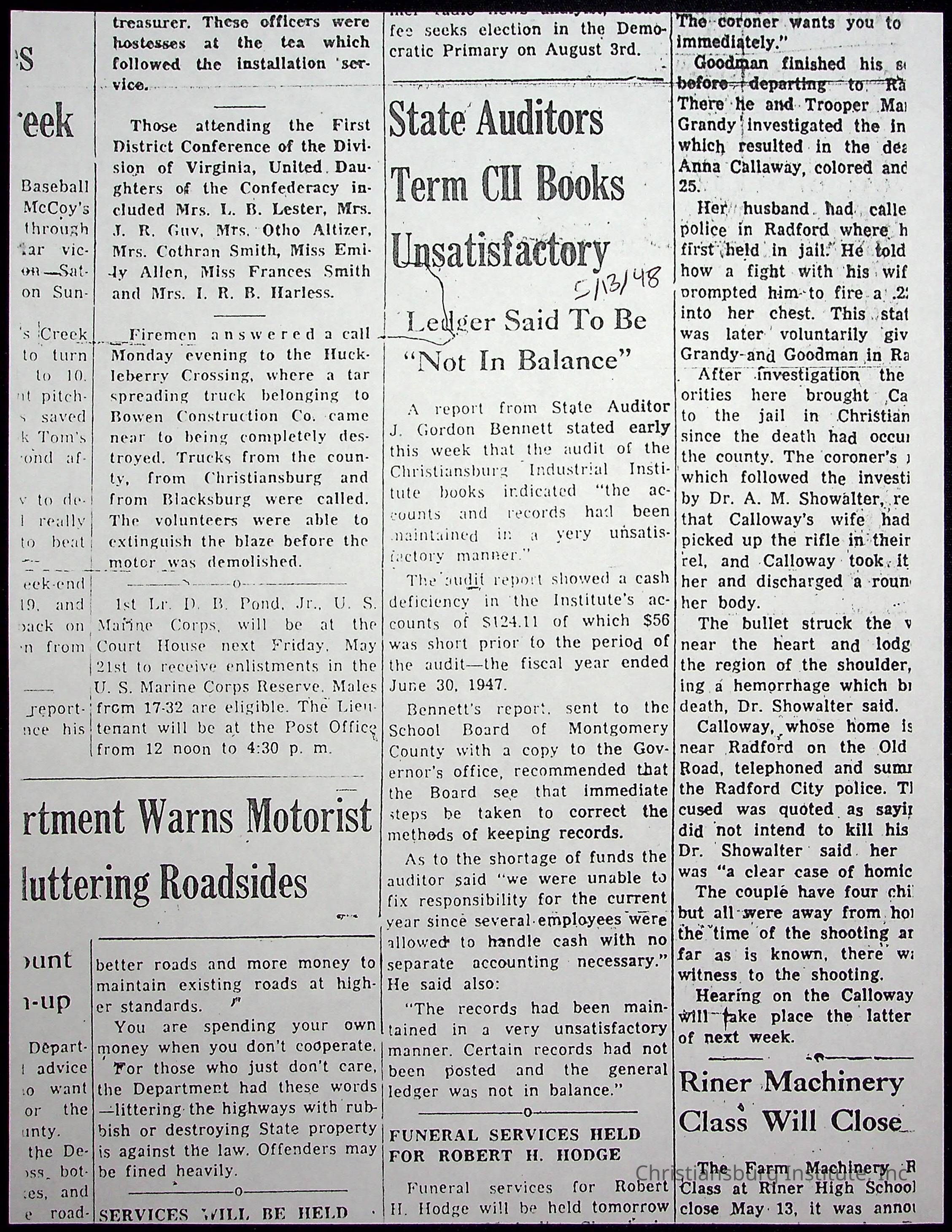 A collection of newspaper articles that feature stories about Christiansburg Institute and other Montgomery County schools dates range from 1941 through 1948. These articles come from various newspapers.Date(s) of Creation